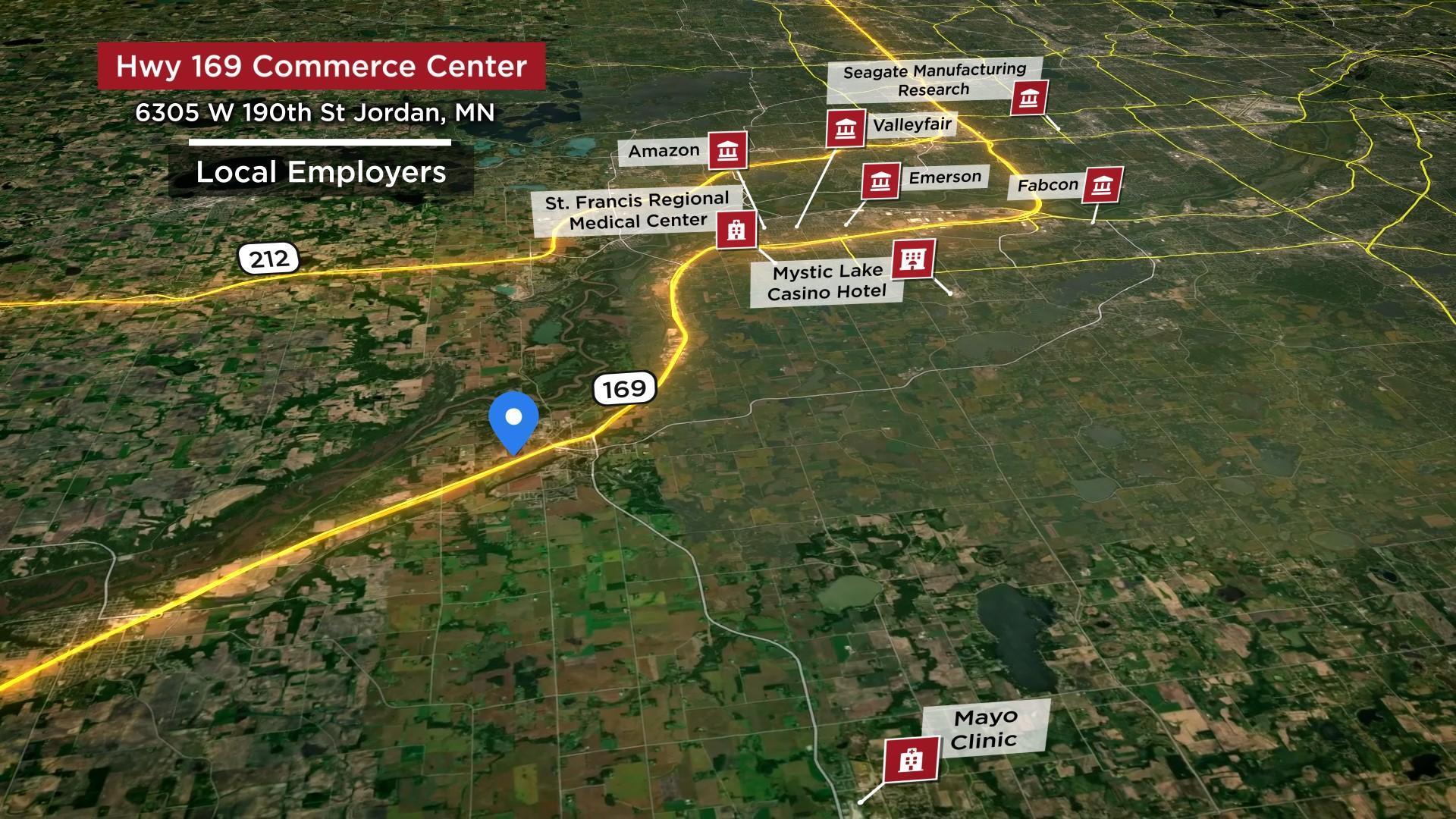 Great Highway 169 visibility! 60+ acres at the site of the City of Jordan's New Interchange. The property is guided for commercial use and there is more land available. Great access to Hwy 212 & Shakopee. City sewer & water. Potential to subdivide. Jordan is a growing area just south of Shakopee and 34 miles from the airport.
