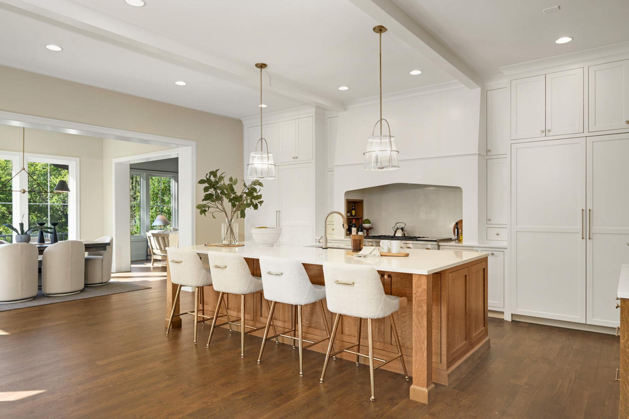 A custom-built home by Urban Edge Homes LLC and architect Kathy Alexander promises unique design and attention to detail. This residence offers ample room for comfort and entertainment. Situated on a large lot with private views, the property offers a serene and secluded setting. Gourmet kitchen with custom cabinets and top-of-the-line appliances is sure to delight any chef or culinary enthusiast. Enjoy the main floor's four season porch with vaulted ceiling. Lower level is a haven for entertainment, with a golf simulator, bar, and a family room that opens up to the screen porch, perfect for enjoying the outdoors in comfort. The luxurious owner's suite, featuring a marble-drenched bath, offers a serene escape within the home. The 4-car garage adds convenience and storage space. This is the epitome of luxury living, offering a blend of exquisite design, top-notch amenities, and a tranquil setting.