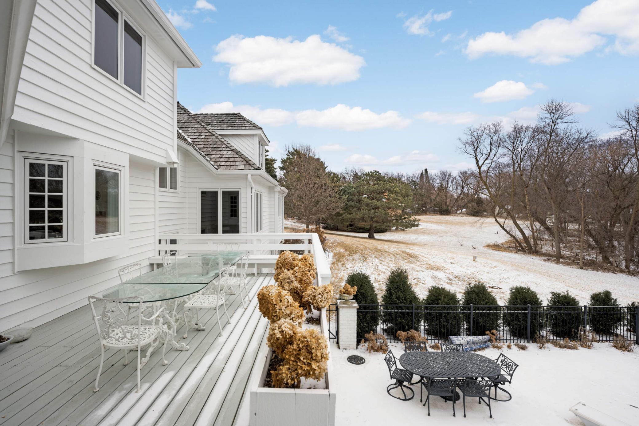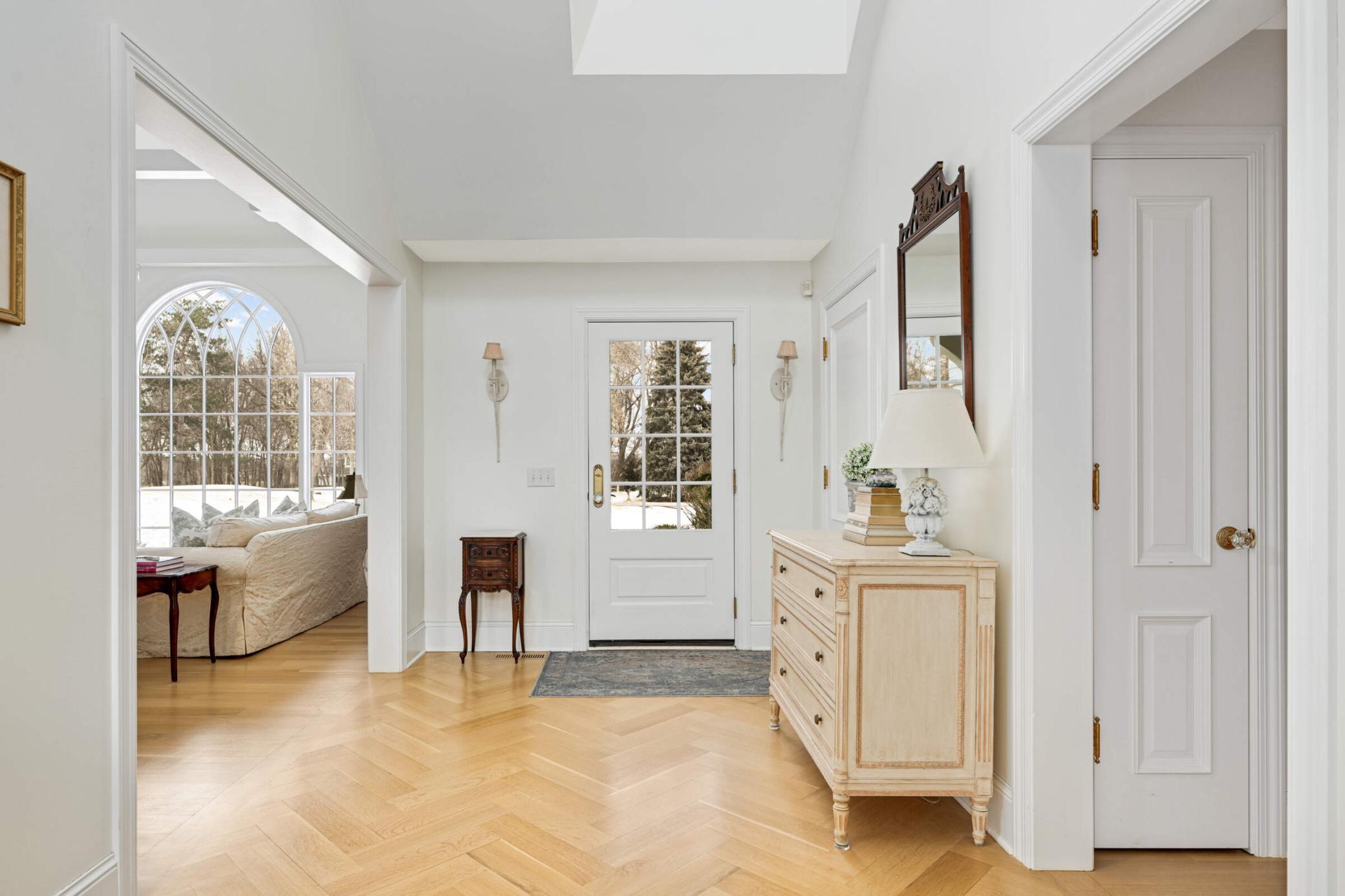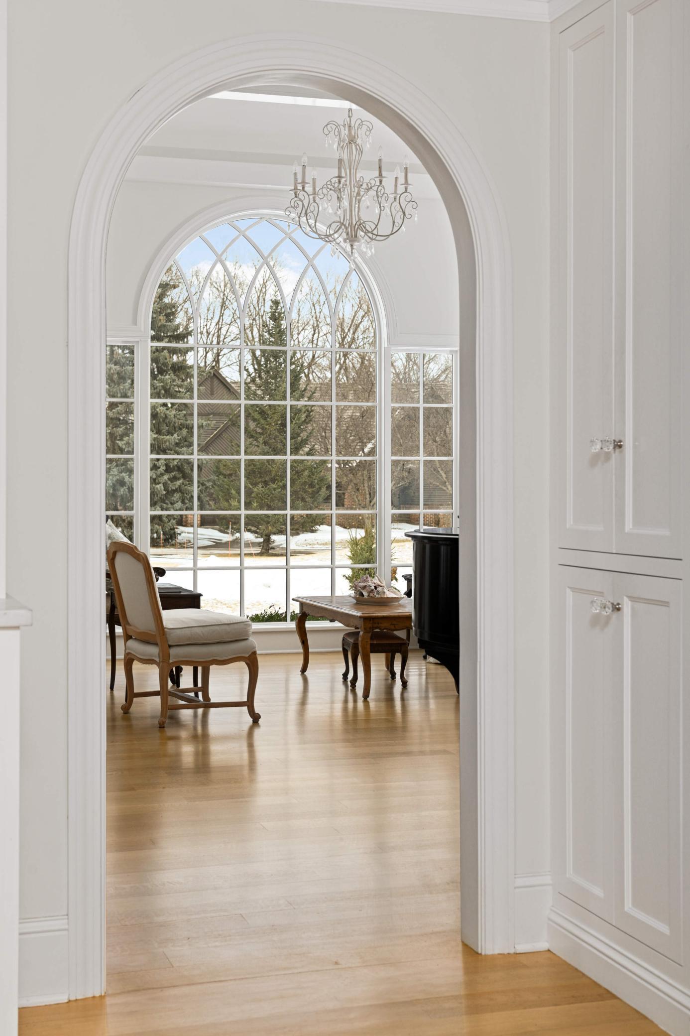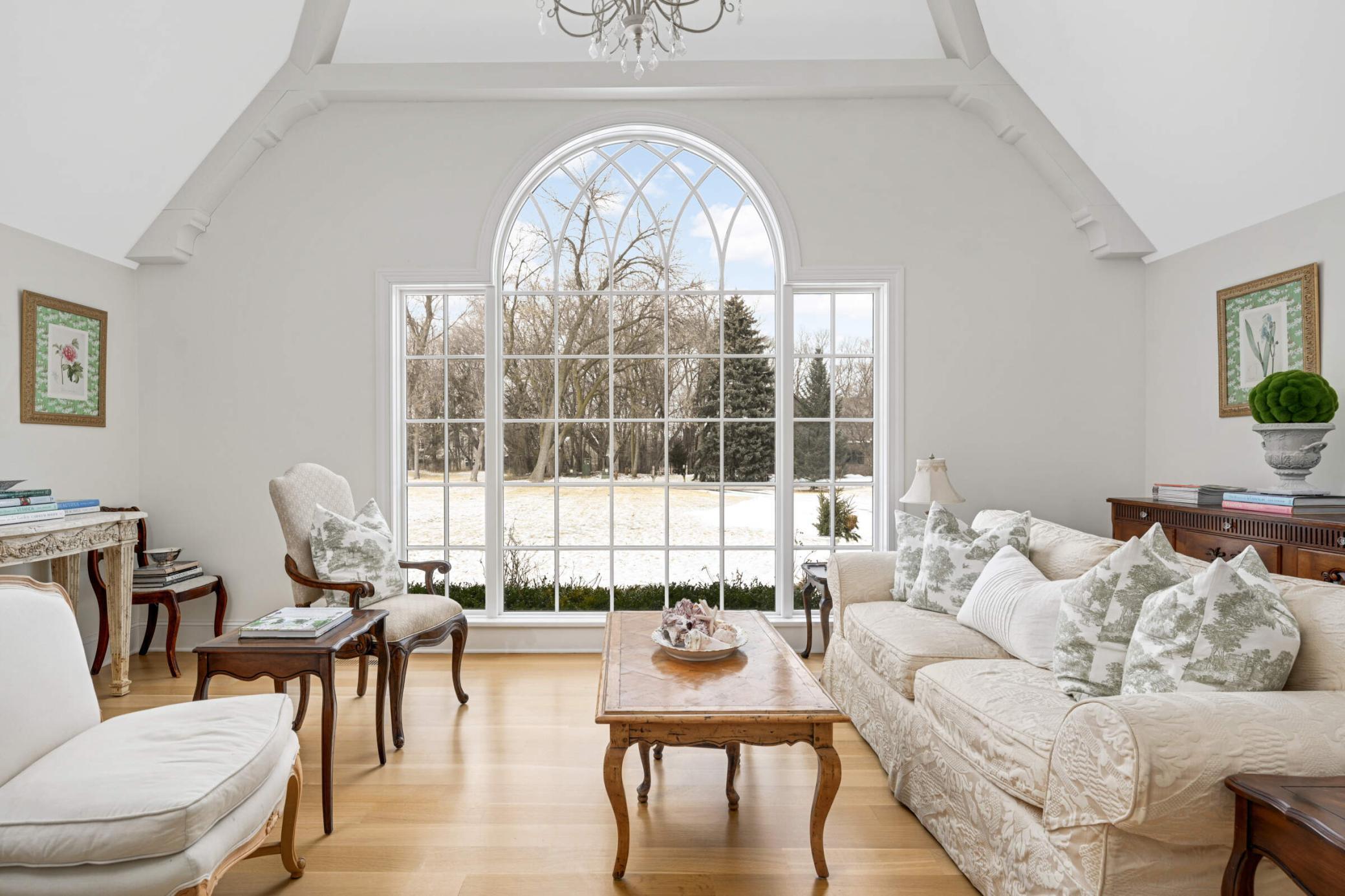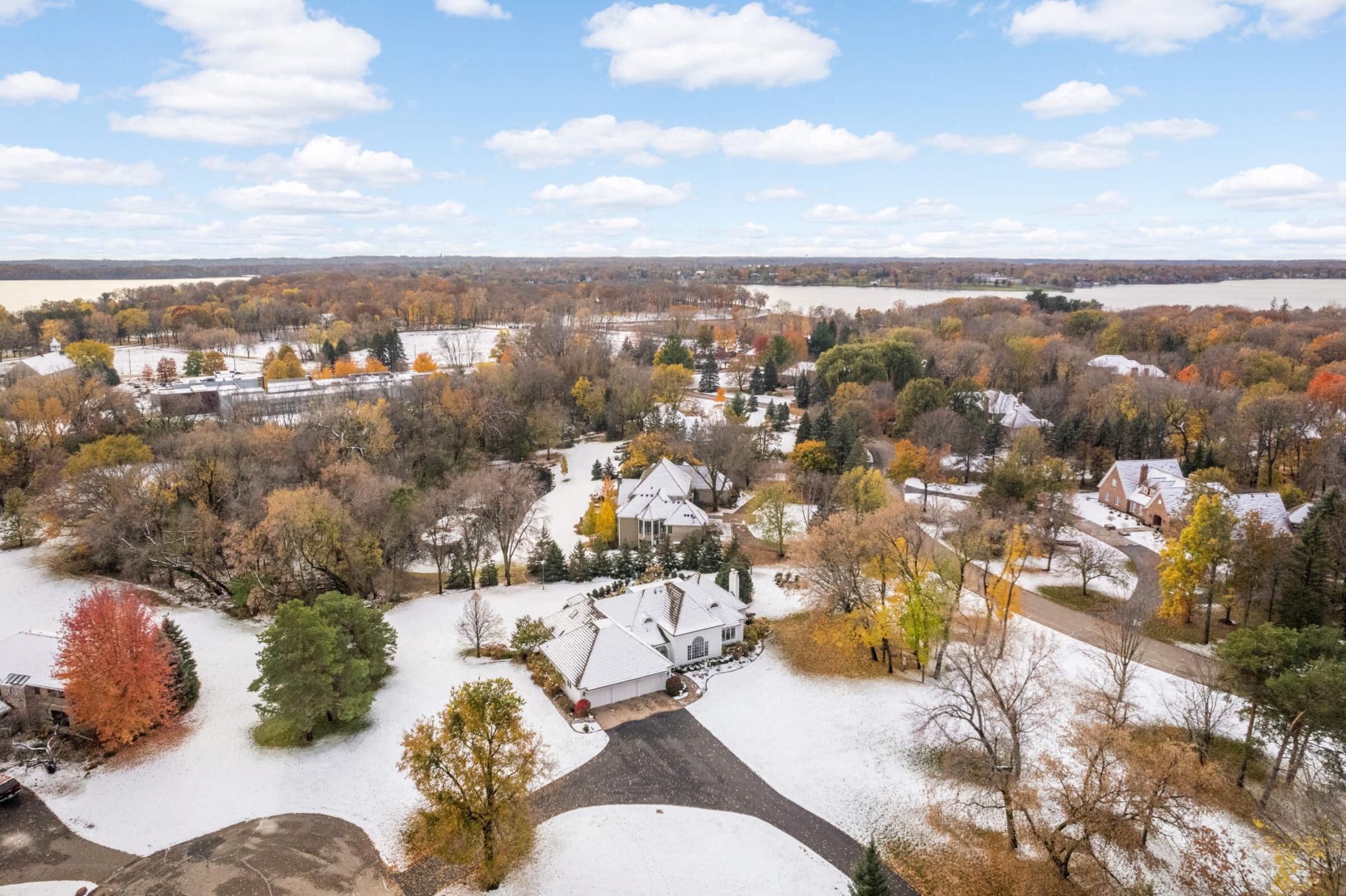 This remarkable home is an offering of fresh, French aesthetic in a bucolic setting. With timeless details and European elegance the airy floor plan is optimal for many lifestyles and both intimate and large gatherings. A true designer's home - over and above details, exceptional materials, artisan built. Each room is an open space, each defined with great attention to design integrity and master craftsmanship. The crown jewels are the giant custom Palladian window (by Marvin) to be enjoyed inside and out, the La Cornue range with double ovens, framed cathedral ceilings dramatic pedestal powder room sink, and the marble primary bathroom suite. The home is ultimate main level living, with three bedrooms upstairs and two additional in the walk-out lower level, every bedroom facing south overlooking wooded acreage. The coveted French Creek neighborhood is all private roads, and includes two tennis courts (one lined for pickle ball), a gazebo with fireplace to reserve, a peaceful connected lifestyle with a social presence. All the conveniences of lake life without the hassle and expense! Orono schools, seven minutes to Downtown Wayzata. Close to Lafayette, Woodhill, Wayzata Country Clubs and many marinas. If you for privacy, exquisite taste with lake-like living, this house is for you.