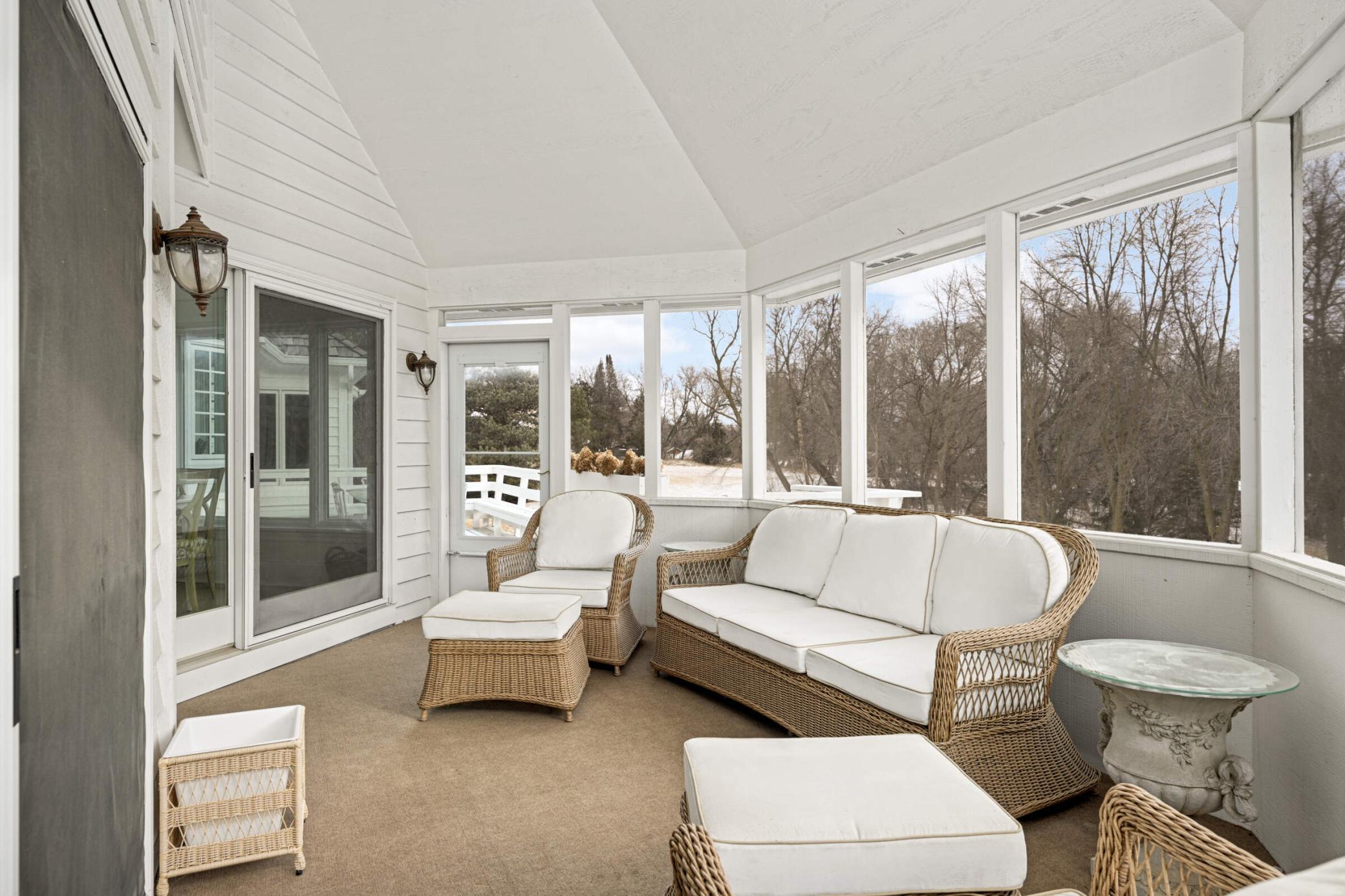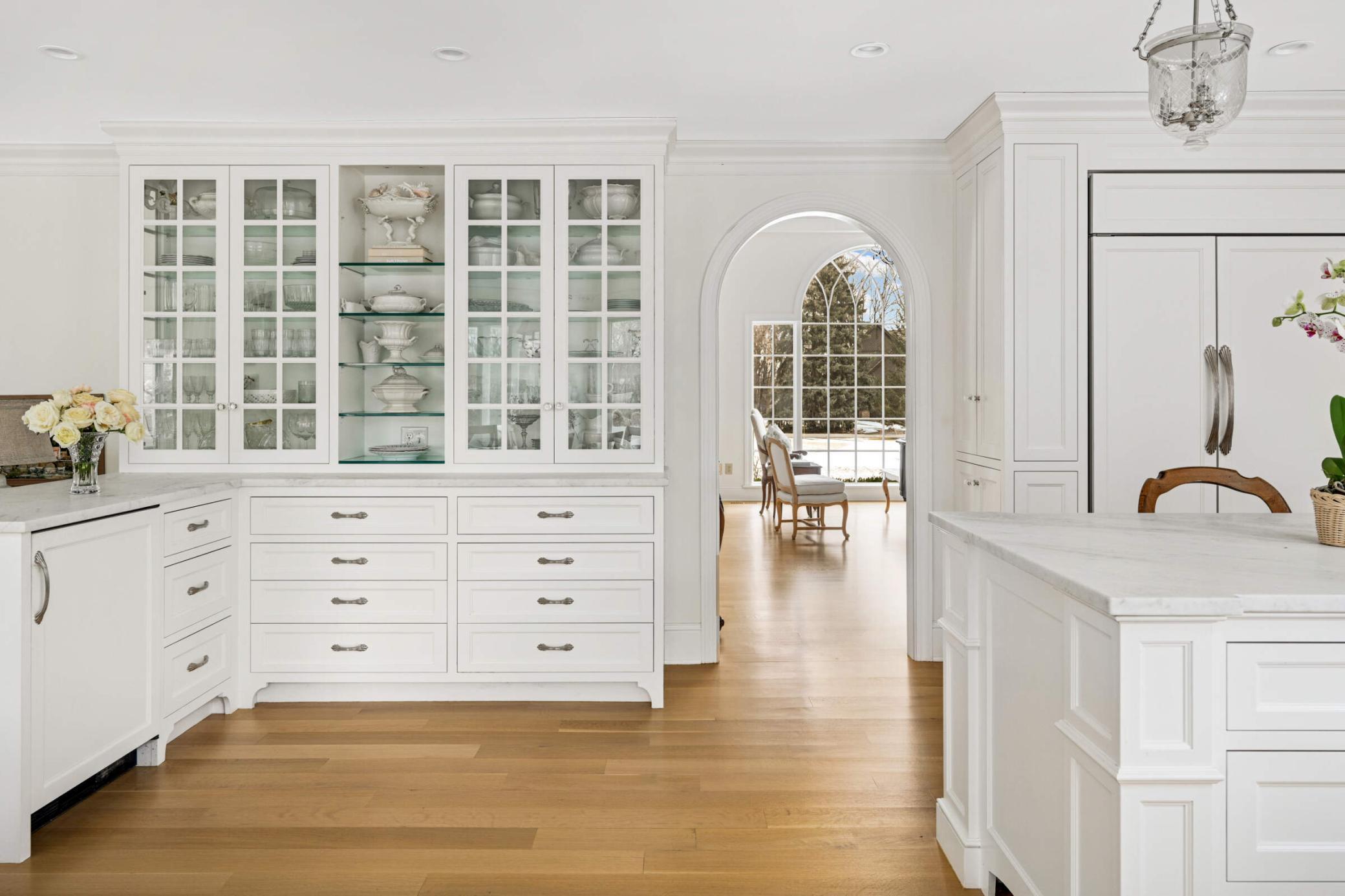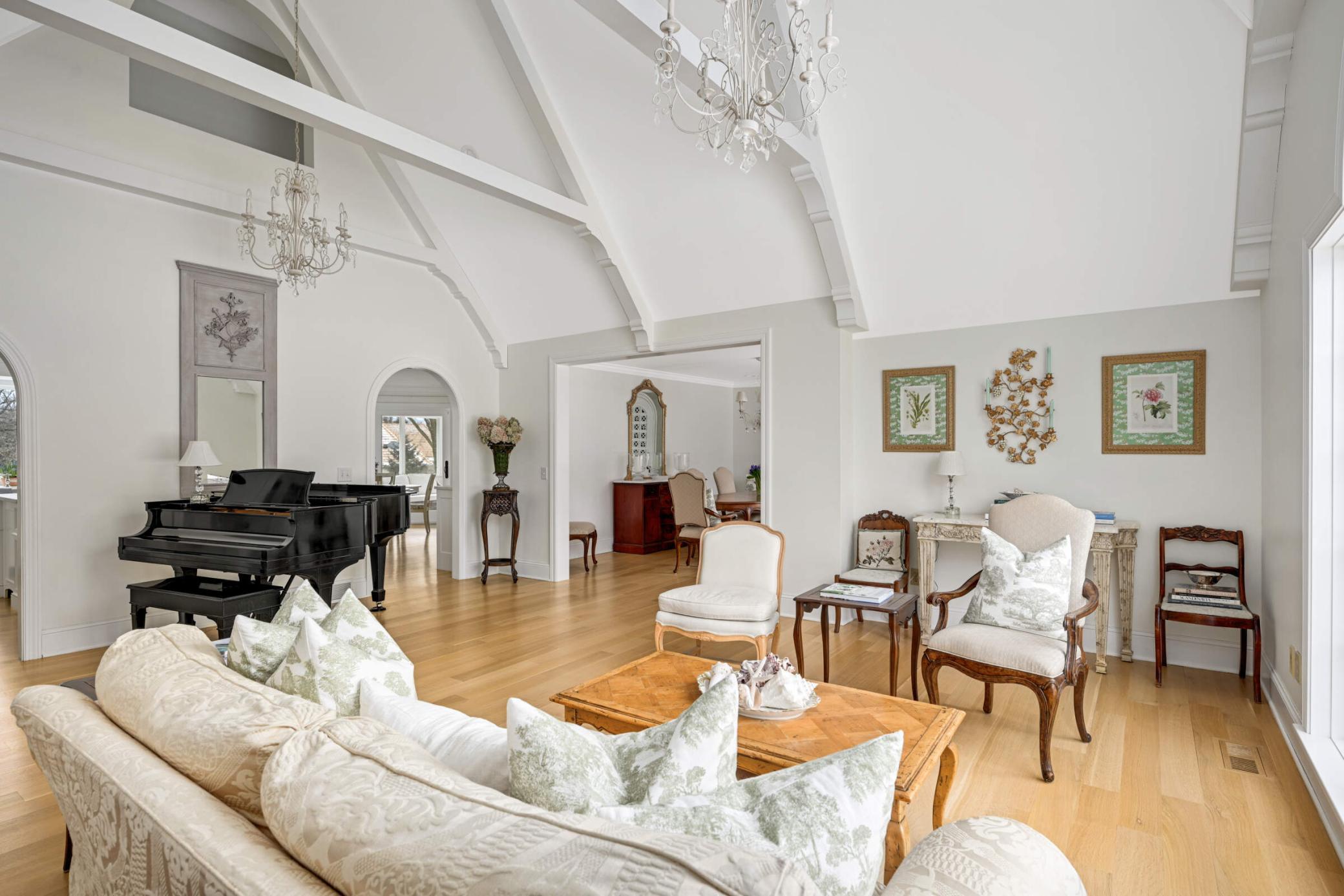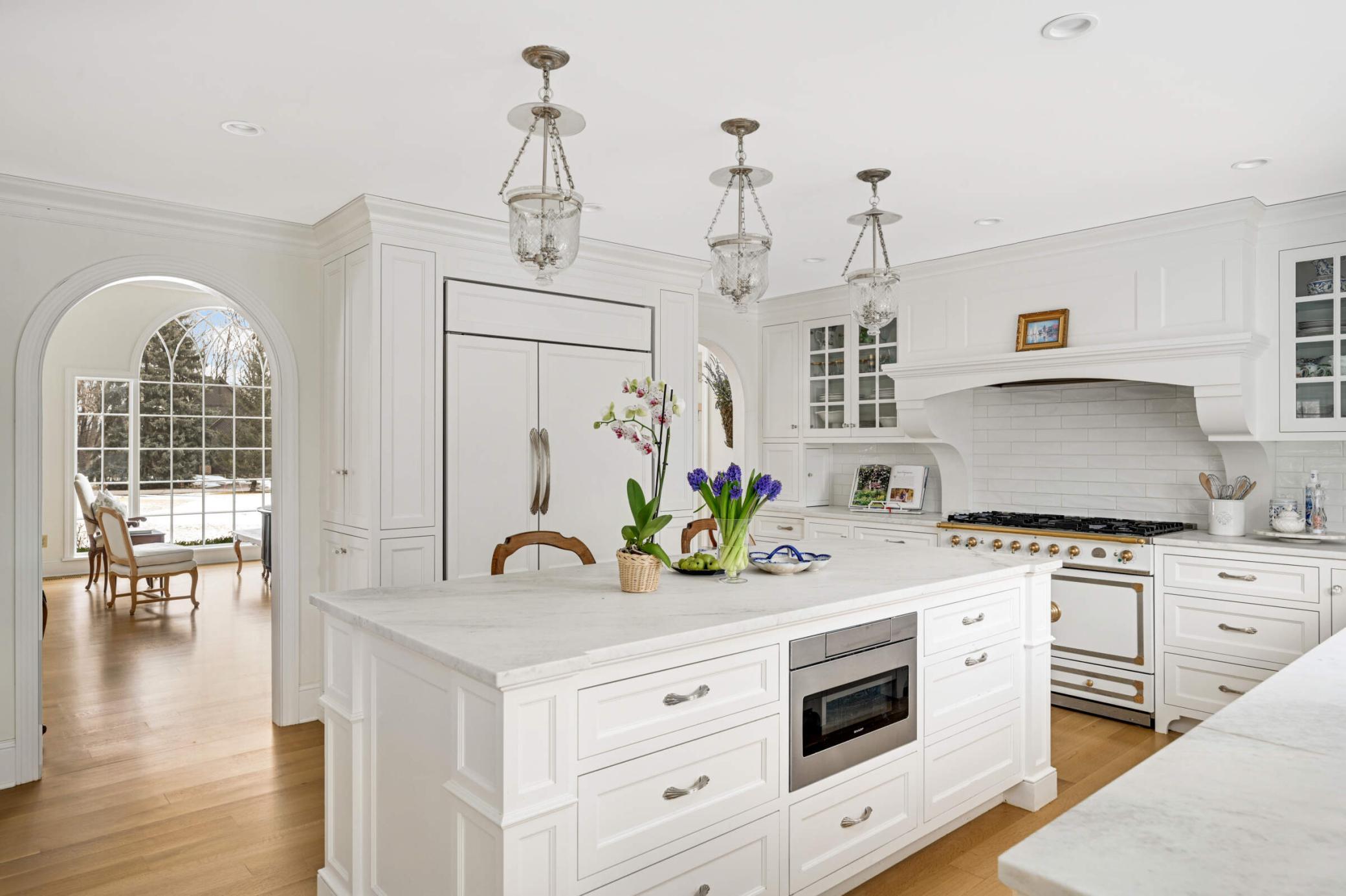 This remarkable home is an offering of fresh, French aesthetic in a bucolic setting. With timeless details and European elegance the airy floor plan is optimal for many lifestyles and both intimate and large gatherings. A true designer's home - over and above details, exceptional materials, artisan built. Each room is an open space, each defined with great attention to design integrity and master craftsmanship. The crown jewels are the giant custom Palladian window (by Marvin) to be enjoyed inside and out, the La Cornue range with double ovens, framed cathedral ceilings dramatic pedestal powder room sink, and the marble primary bathroom suite. The home is ultimate main level living, with three bedrooms upstairs and two additional in the walk-out lower level, every bedroom facing south overlooking wooded acreage. The coveted French Creek neighborhood is all private roads, and includes two tennis courts (one lined for pickle ball), a gazebo with fireplace to reserve, a peaceful connected lifestyle with a social presence. All the conveniences of lake life without the hassle and expense! Orono schools, seven minutes to Downtown Wayzata. Close to Lafayette, Woodhill, Wayzata Country Clubs and many marinas. If you for privacy, exquisite taste with lake-like living, this house is for you.