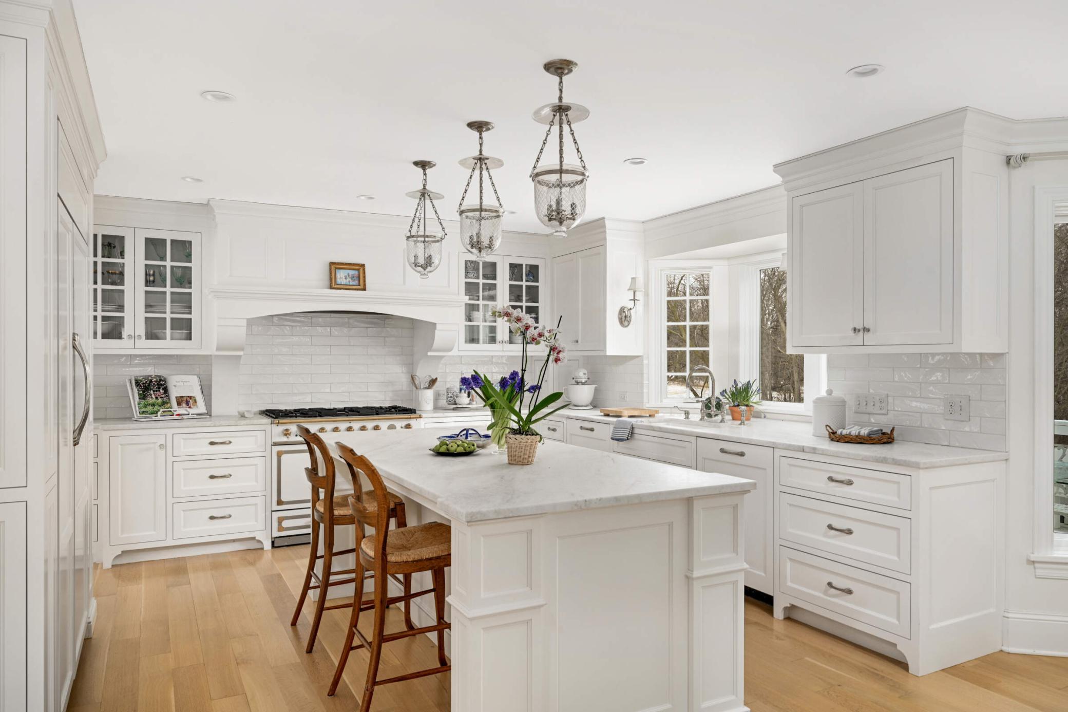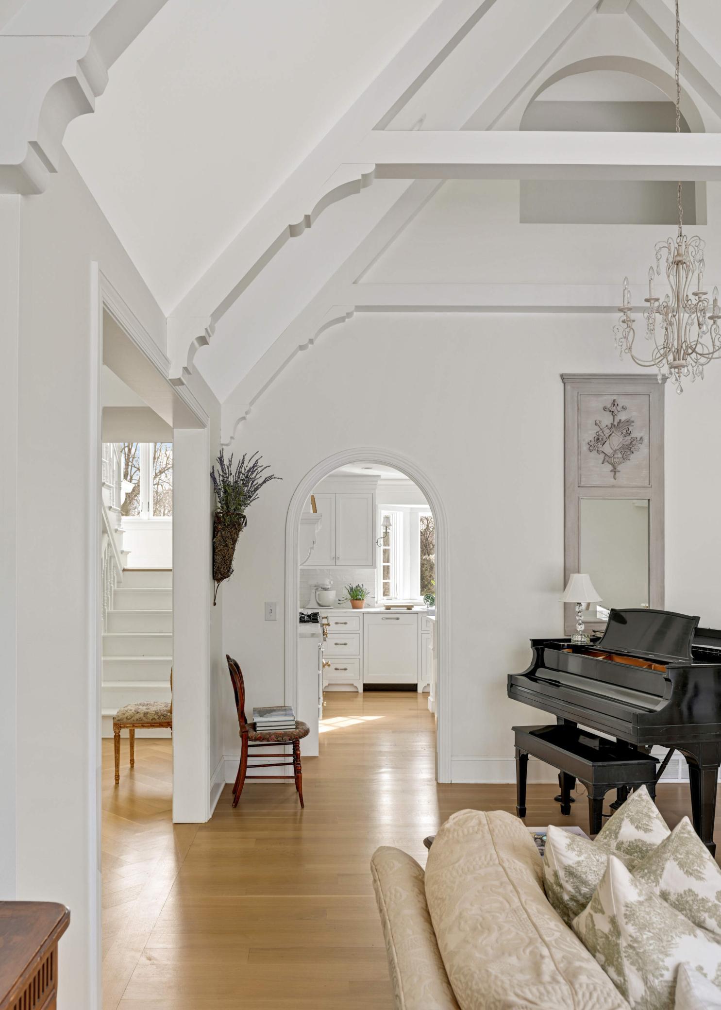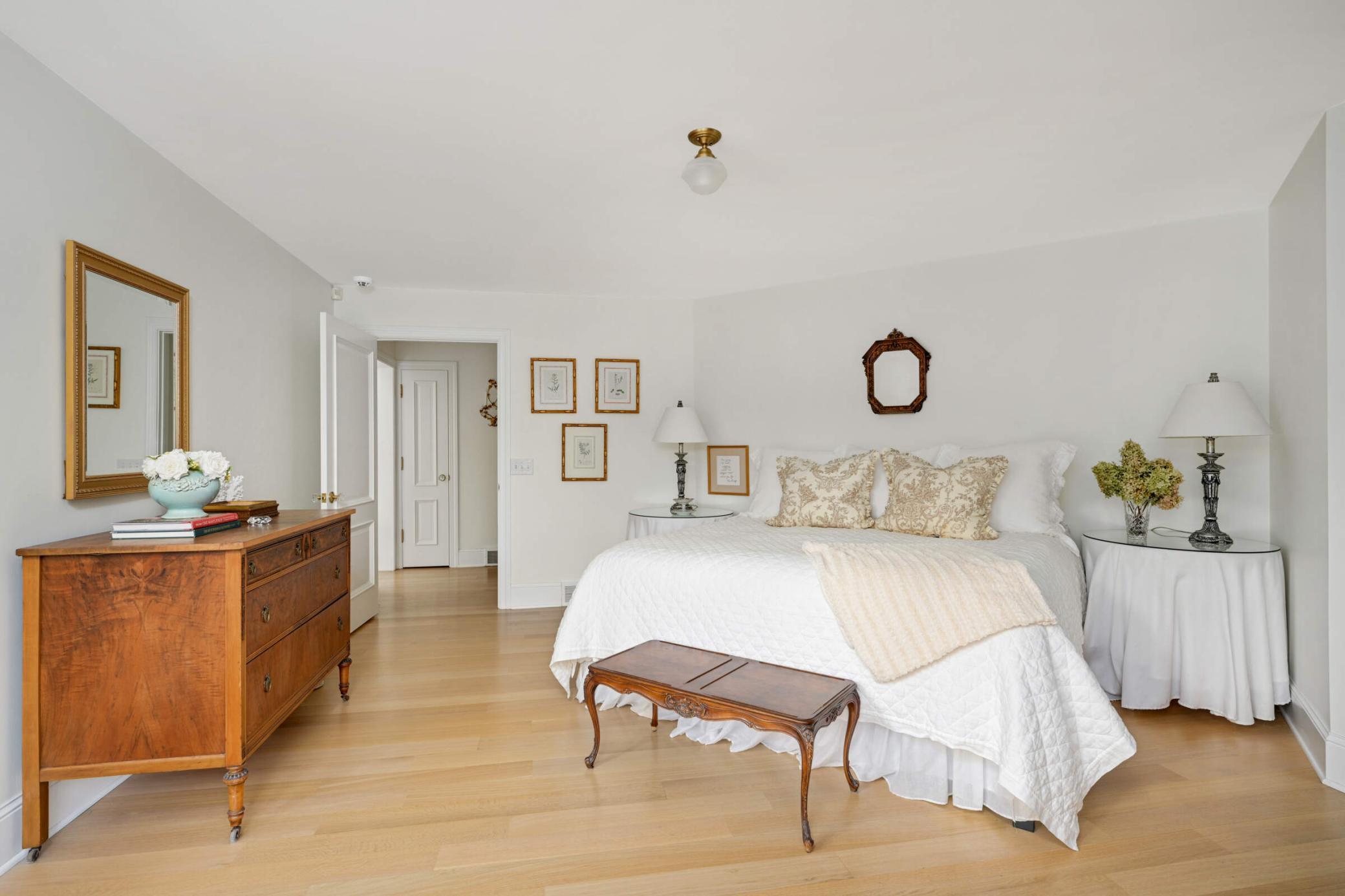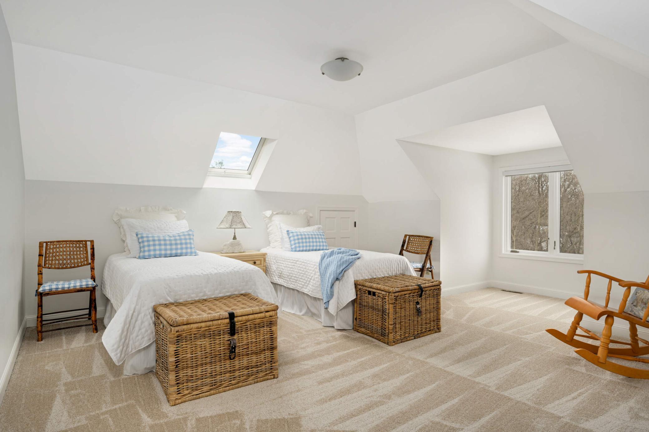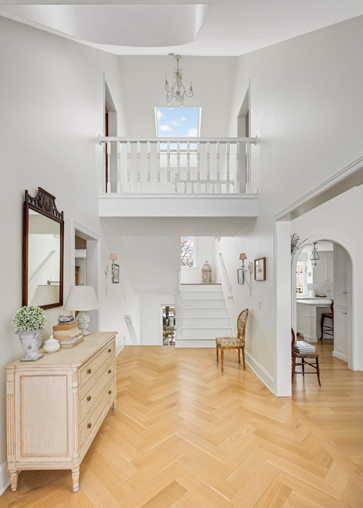 This remarkable home is an offering of fresh, French aesthetic in a bucolic setting. With timeless details and European elegance the airy floor plan is optimal for many lifestyles and both intimate and large gatherings. A true designer's home - over and above details, exceptional materials, artisan built. Each room is an open space, each defined with great attention to design integrity and master craftsmanship. The crown jewels are the giant custom Palladian window (by Marvin) to be enjoyed inside and out, the La Cornue range with double ovens, framed cathedral ceilings dramatic pedestal powder room sink, and the marble primary bathroom suite. The home is ultimate main level living, with three bedrooms upstairs and two additional in the walk-out lower level, every bedroom facing south overlooking wooded acreage. The coveted French Creek neighborhood is all private roads, and includes two tennis courts (one lined for pickle ball), a gazebo with fireplace to reserve, a peaceful connected lifestyle with a social presence. All the conveniences of lake life without the hassle and expense! Orono schools, seven minutes to Downtown Wayzata. Close to Lafayette, Woodhill, Wayzata Country Clubs and many marinas. If you for privacy, exquisite taste with lake-like living, this house is for you.