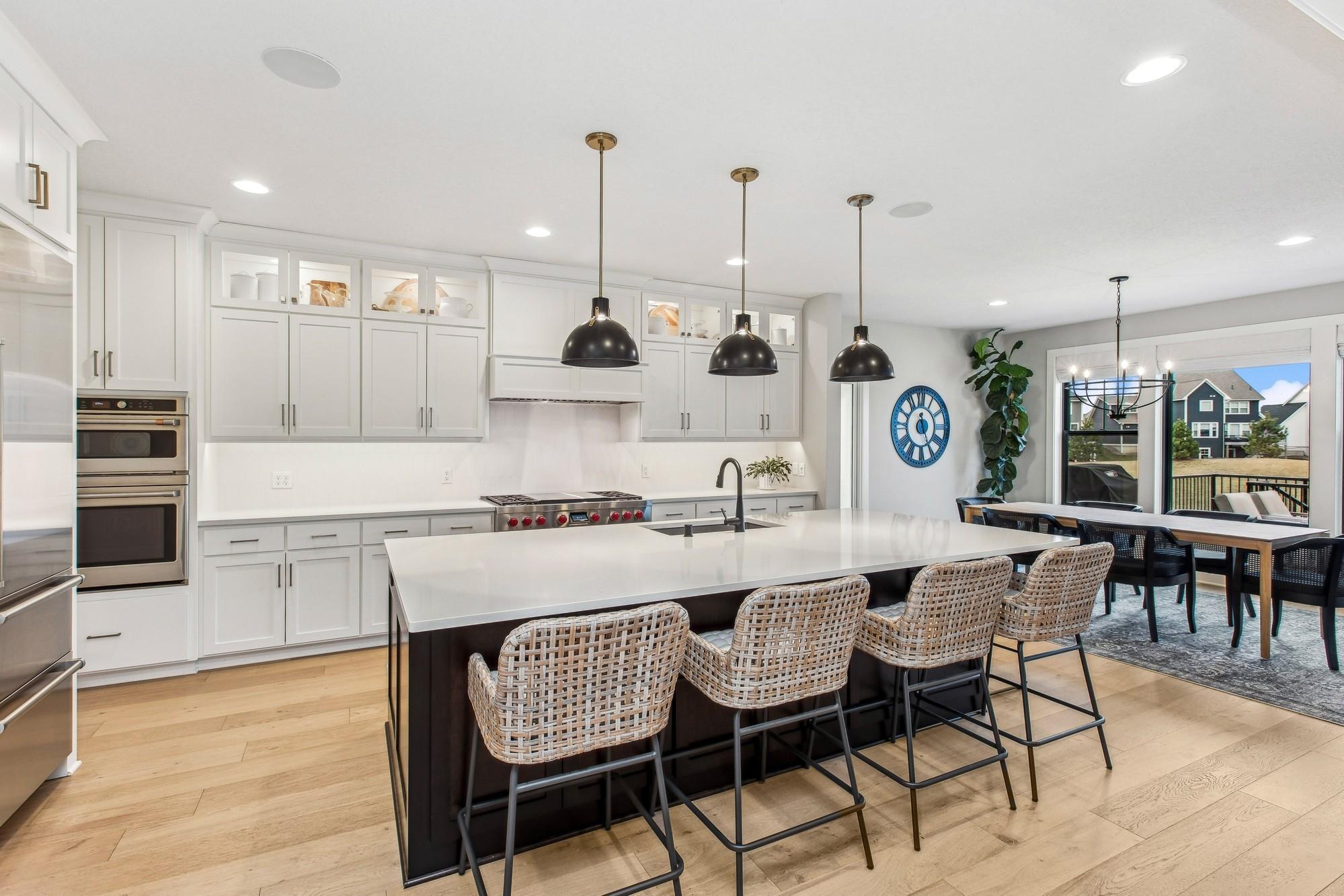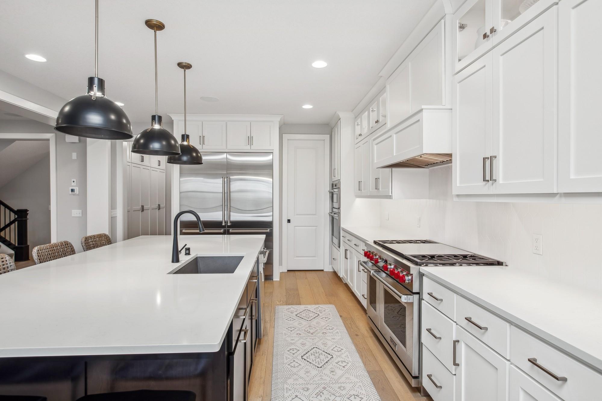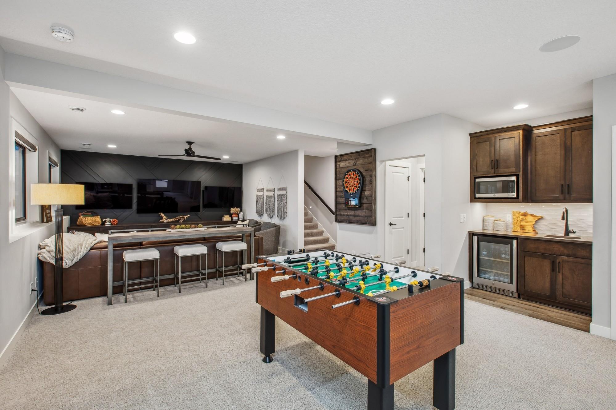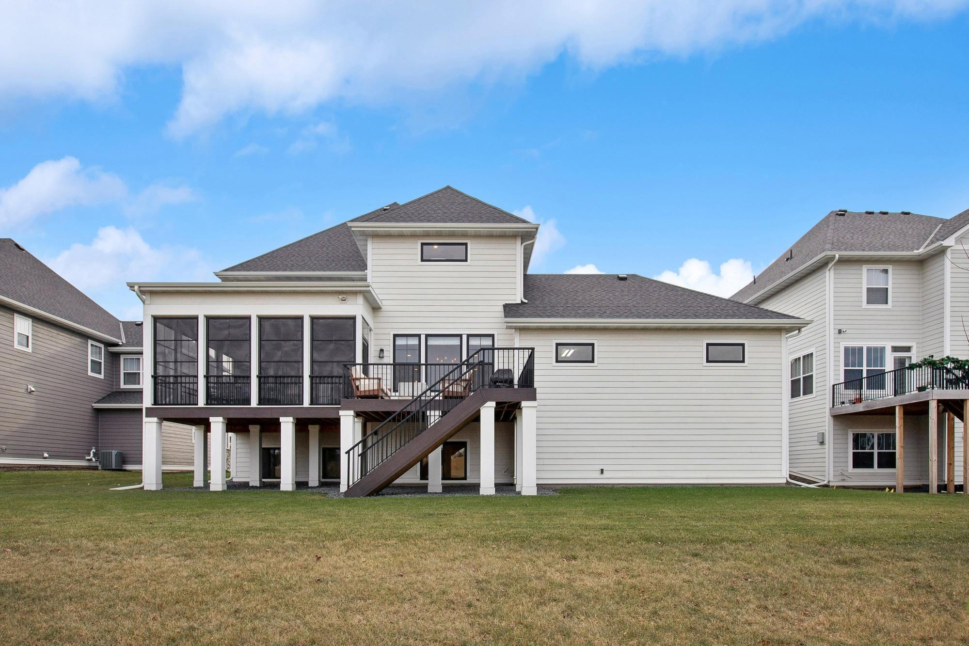 Are you aiming to win the Entertainer of the Year award? This home will surprise and delight you at every turn. Every detail has been meticulously curated, featuring Subzero and Wolf appliances, an upscale sport court, a heated rear deck with easy screens, a Finnleo sauna, high-end materials, custom cabinetry, and millwork throughout. Located in the prestigious Spirit of Brandtjen Farms neighborhood, where sophistication and charm converge, this home offers an open floor plan perfect for entertaining both indoors and out. The kitchen is a culinary masterpiece, boasting a decorative tile backsplash, high-end appliances, a walk-in pantry, and a center island bathed in natural light. Cozy up to the gas fireplace in the family room or enjoy the summer sun on the three-season porch equipped with easy screens, supplemental heat, and a back deck. The upper level features a primary suite with a walk-in shower, his and her walk-in closets, a junior suite, an additional ¾ bath, two more bedrooms, a large laundry room, and a walk-in storage closet. The lower level includes a spacious bedroom, a great room, a gaming area, a wet bar, a sauna, and a sport court. Even the mudroom in this home is impressive. This is truly a must-see home to fully appreciate its beauty and functionality.