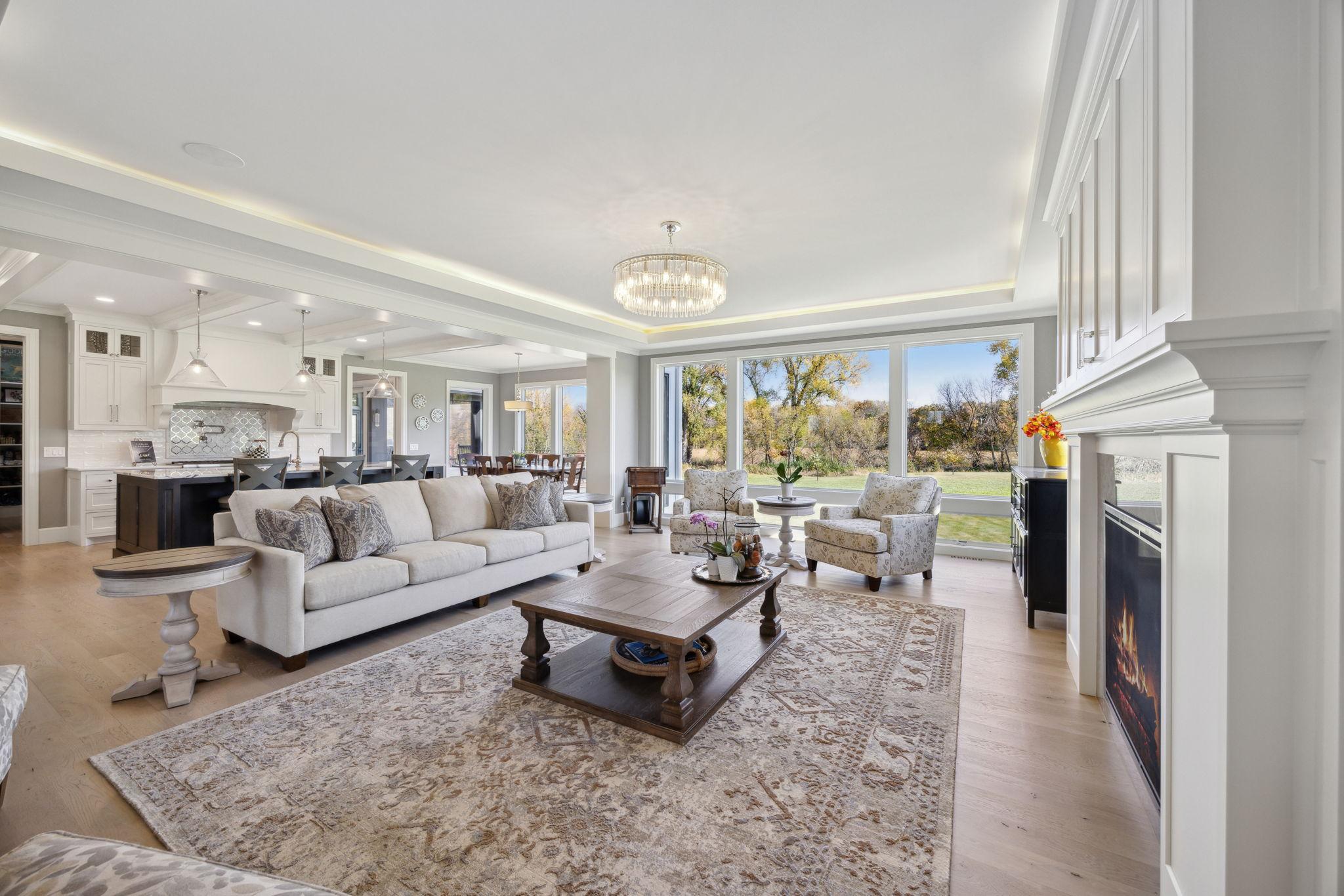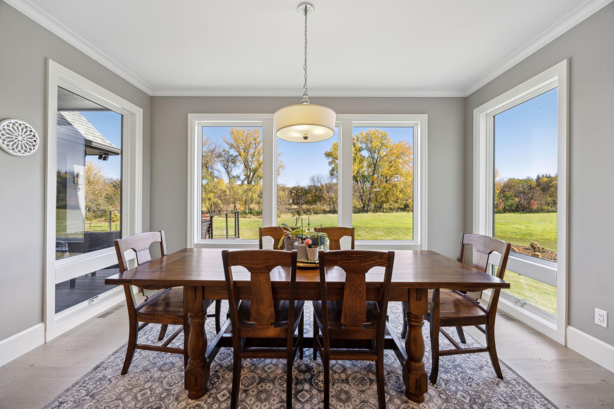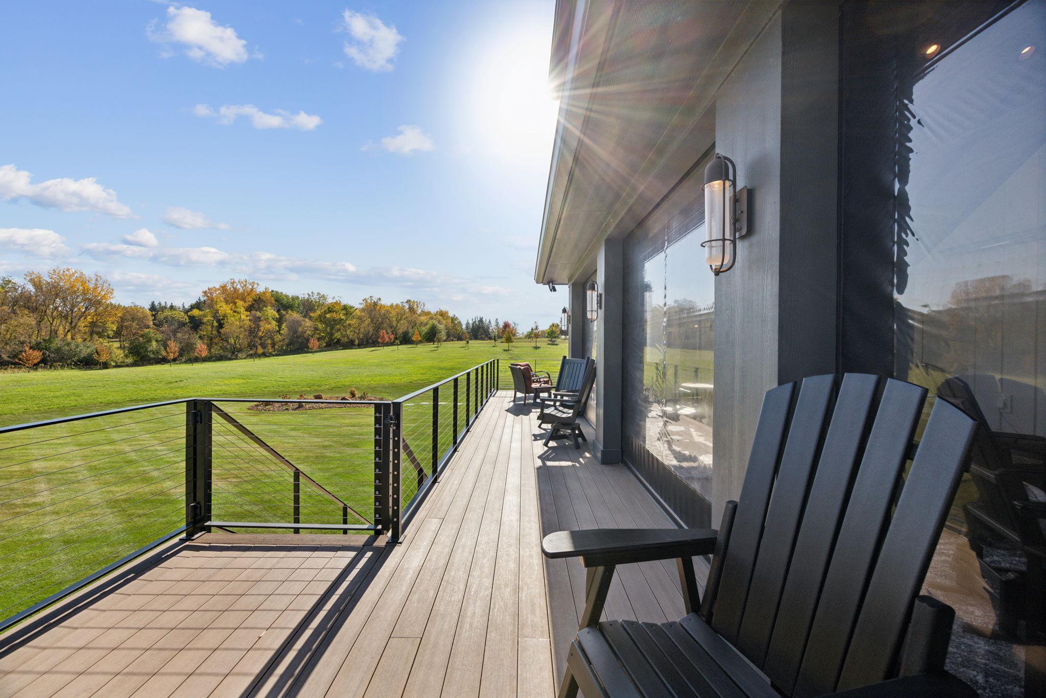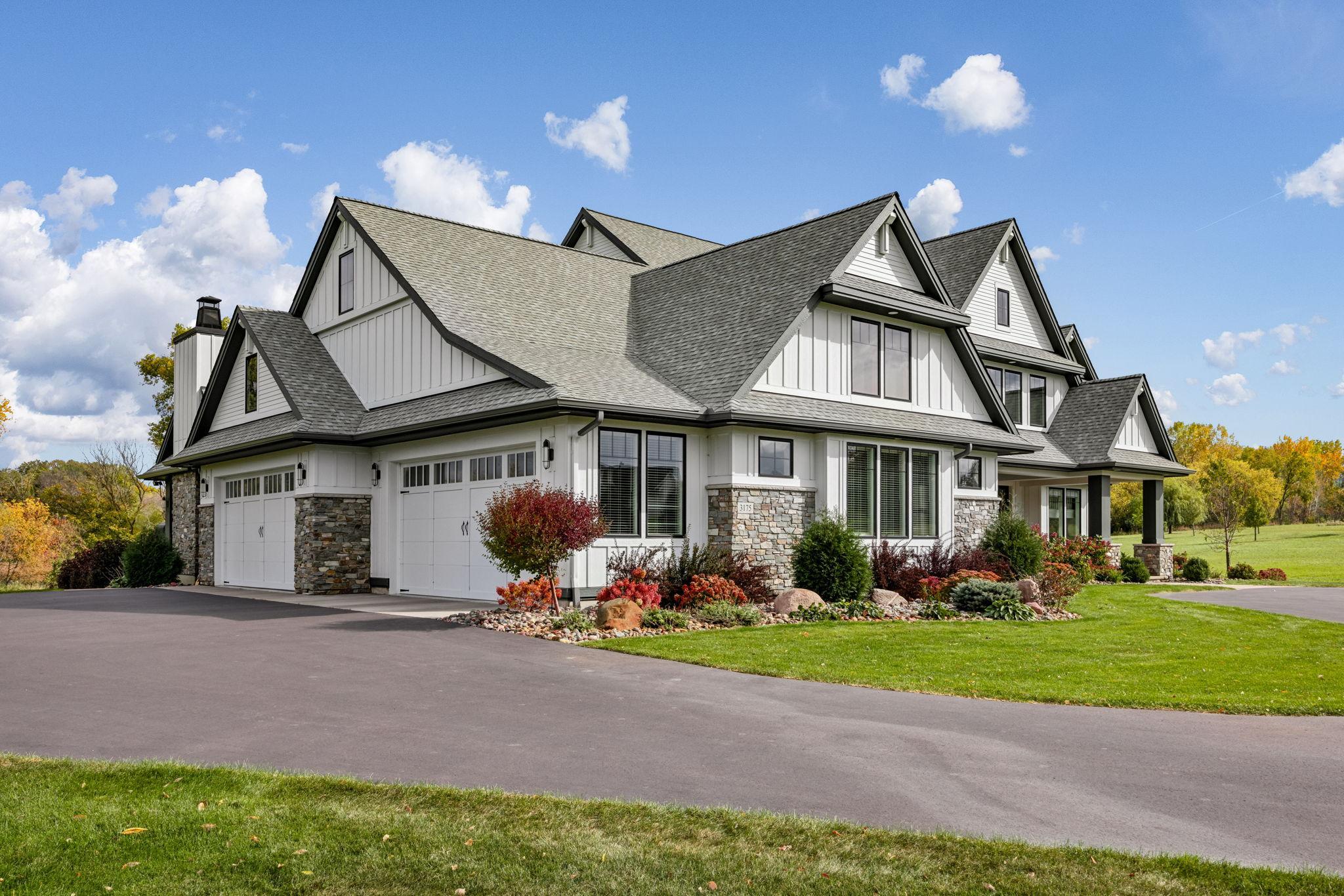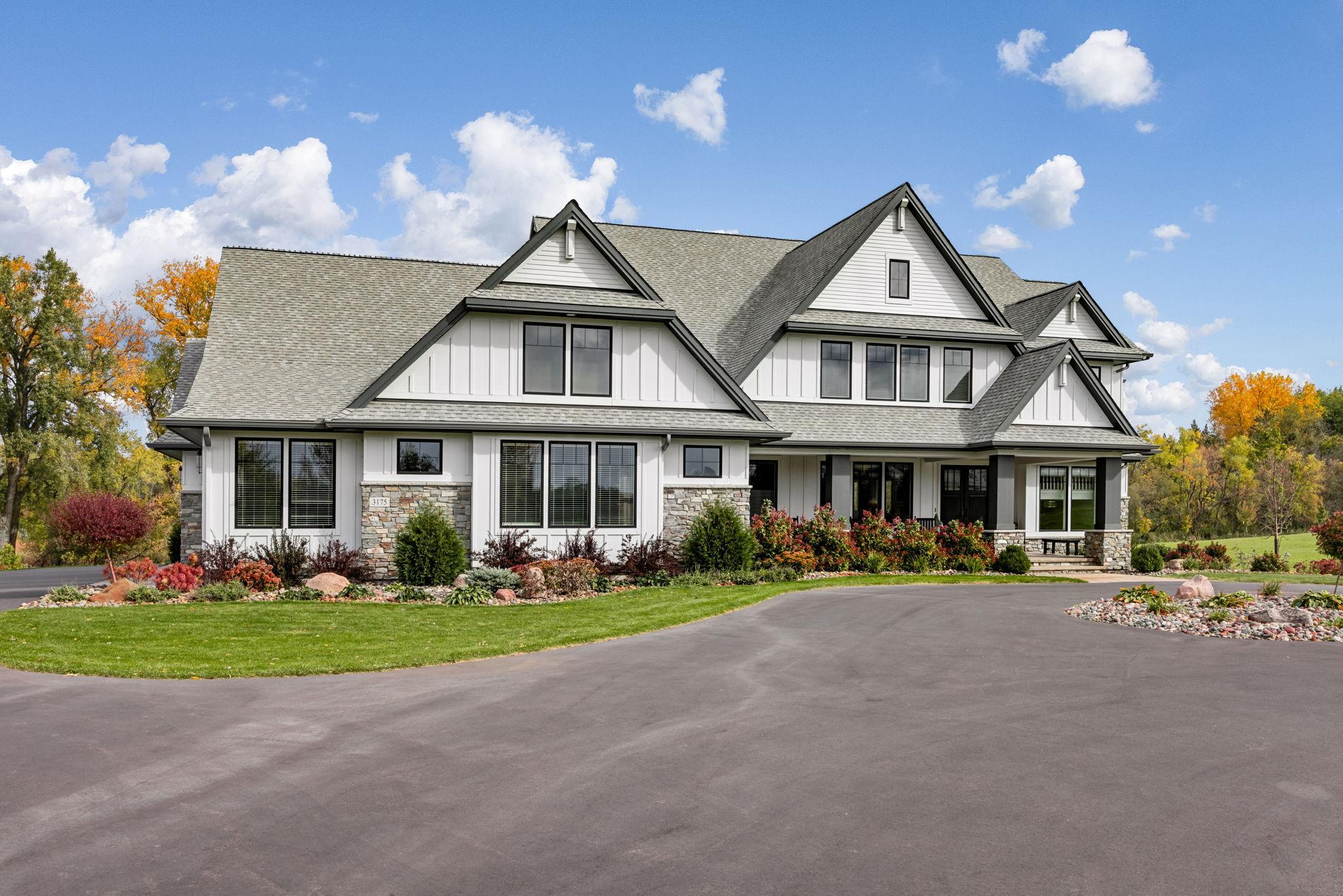 This exclusive custom-built home by Reggie Award-Winning Hartman Homes exemplifies unparalleled craftsmanship, luxurious finishes, and ample space for living, working, and entertaining in style. Situated on 7.5 private acres, this remarkable estate features a fully finished six-car garage with oversized doors, eleven-foot ceilings, built-in cabinetry, a hot/cold tiled dog wash station, and upper-level storage. The main level showcases rich custom woodwork, detailed crown molding, and a full-home Sonos surround sound system. Enjoy the spacious three-season screened porch with vaulted ceiling and a cozy river stone fireplace with built-in bench or relax on the maintenance-free wraparound deck. The gourmet kitchen is equipped with an oversized center island, top-tier stainless steel appliances, custom lighting, and a hidden prep kitchen with walk-in pantry and seven-foot-tall custom shelving. The open-concept great room features a gas fireplace and custom built-ins, while the formal dining room with a coffered ceiling and main-floor office with French doors provide elegant functionality. Upstairs, the luxurious owner’s suite offers a spa-like retreat, while each additional bedroom includes its own en-suite bath and walk-in closet. The upper-level laundry room is thoughtfully designed with built-ins, Cambria counters, and custom lighting. The walkout lower level is designed for entertainment, featuring a media room with custom built-ins and a two-sided fireplace, a full wet bar with high-end appliances, a 500-bottle temperature and humidity-controlled wine room with tasting station, a billiards room, exercise room, and a fifth bedroom with private patio access. This exceptional home has been meticulously crafted down to every detail—an extraordinary opportunity for those seeking space, privacy, and the highest level of custom living all within 25 minutes to downtown Minneapolis
