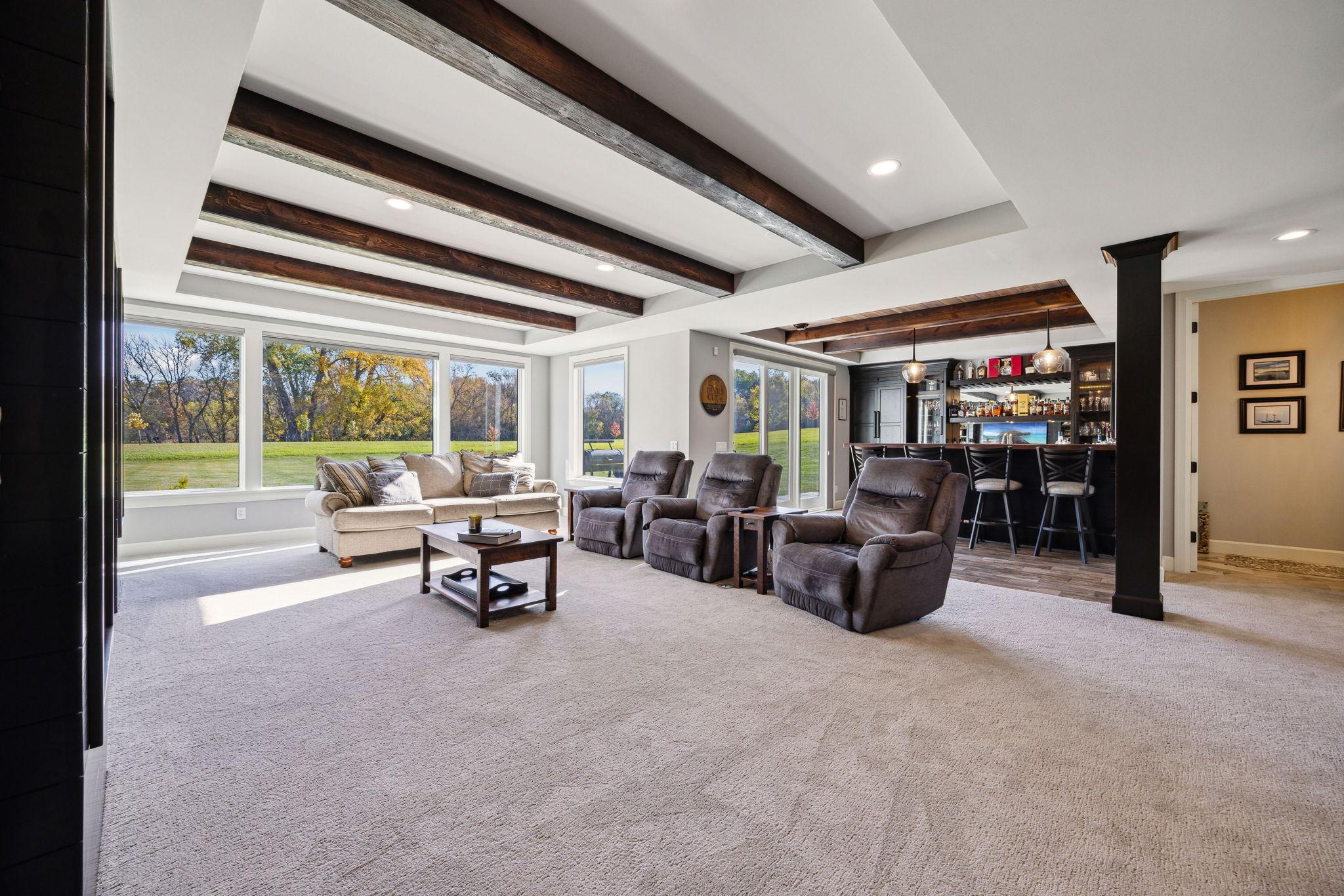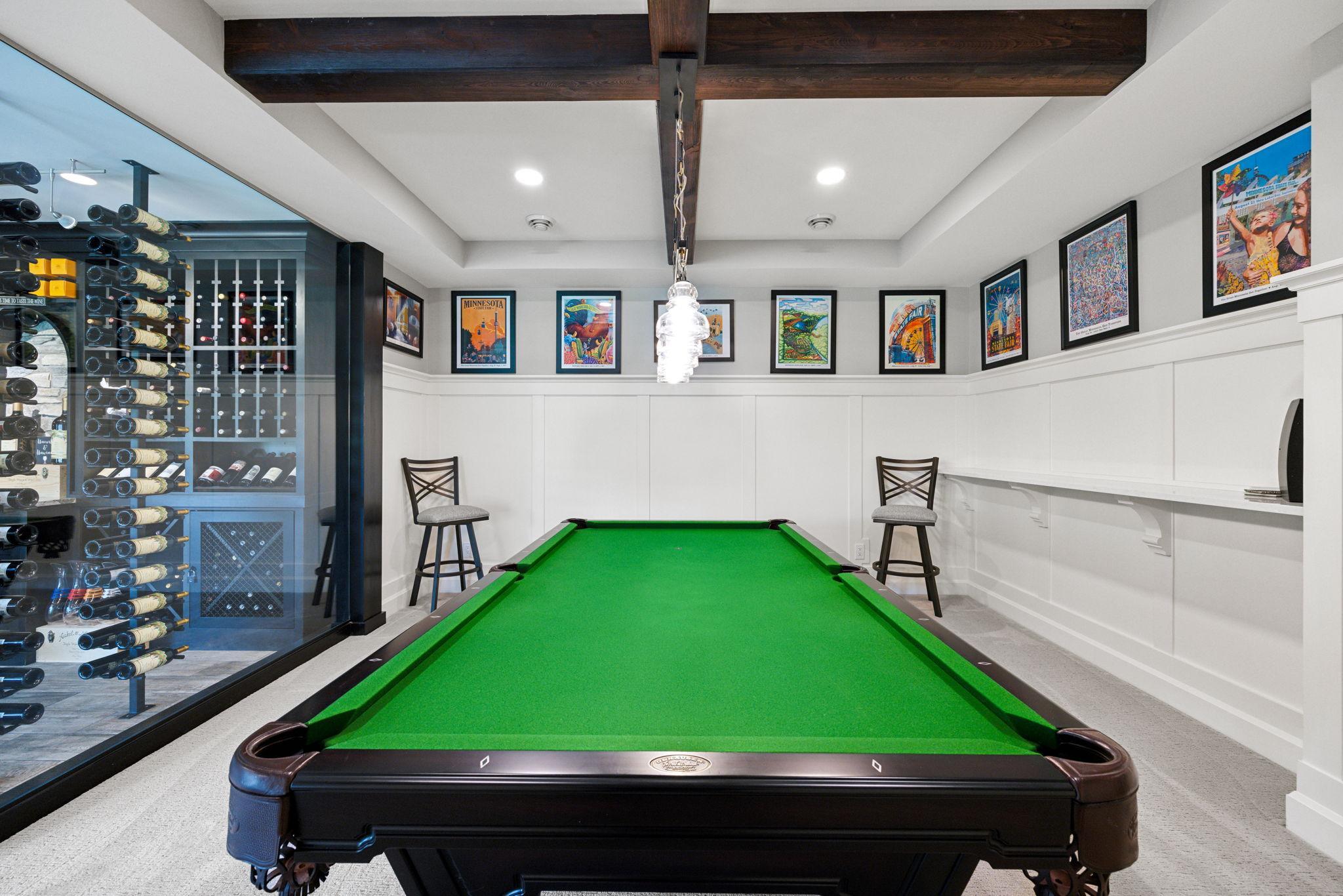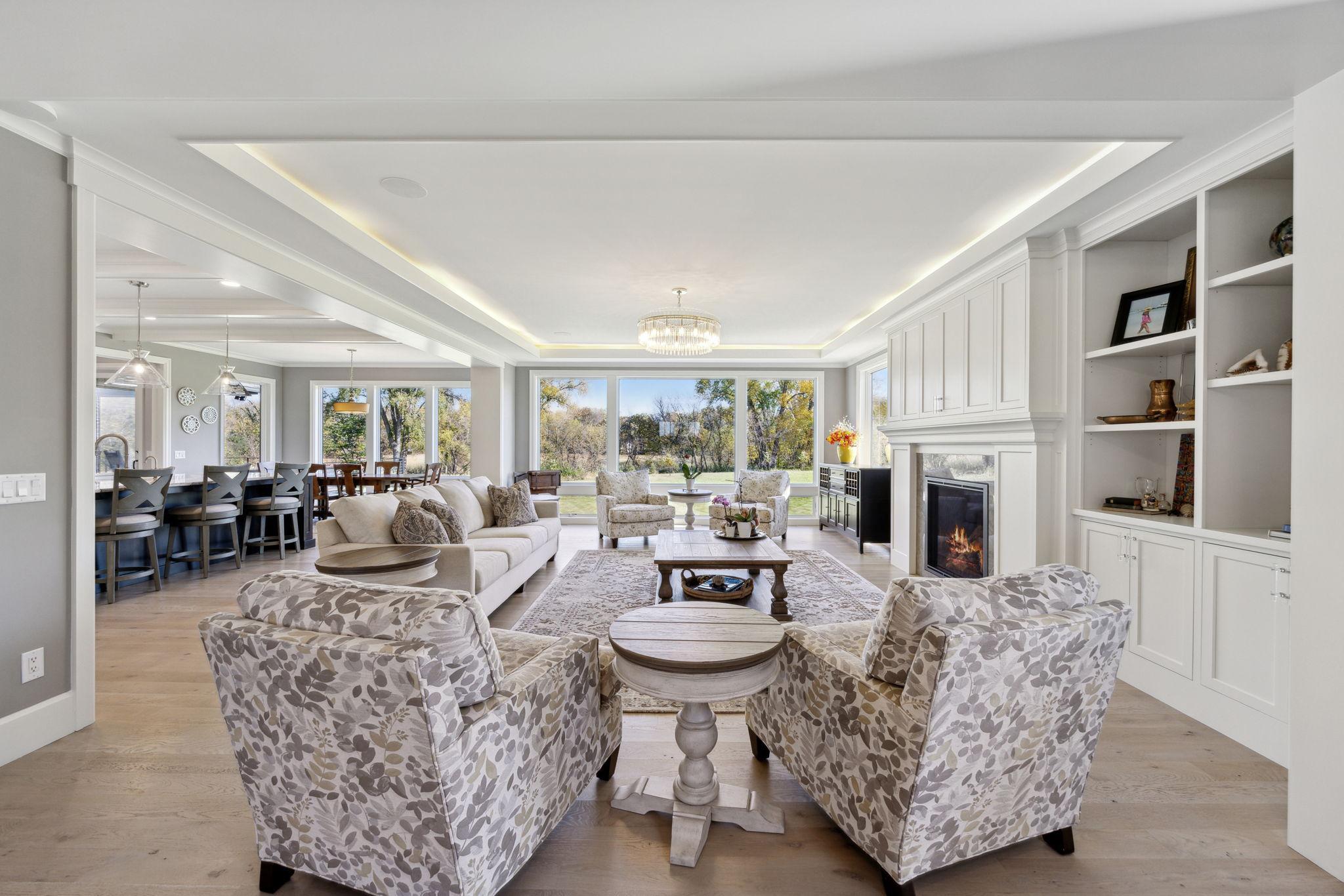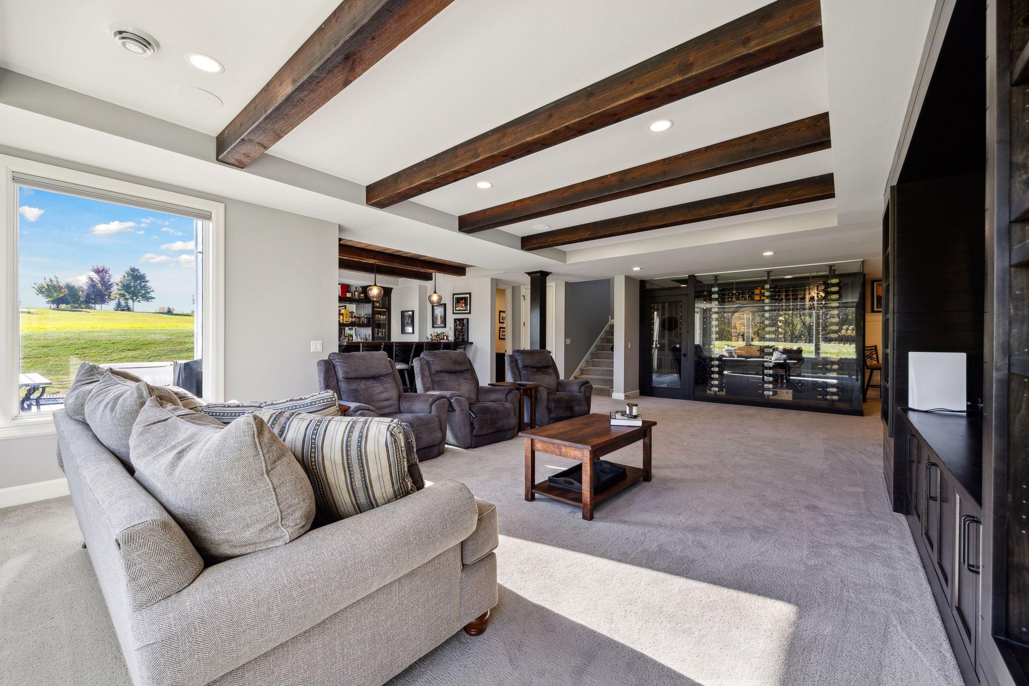 This exclusive custom-built home by Reggie Award-Winning Hartman Homes exemplifies unparalleled craftsmanship, luxurious finishes, and ample space for living, working, and entertaining in style. Situated on 7.5 private acres, this remarkable estate features a fully finished six-car garage with oversized doors, eleven-foot ceilings, built-in cabinetry, a hot/cold tiled dog wash station, and upper-level storage. The main level showcases rich custom woodwork, detailed crown molding, and a full-home Sonos surround sound system. Enjoy the spacious three-season screened porch with vaulted ceiling and a cozy river stone fireplace with built-in bench or relax on the maintenance-free wraparound deck. The gourmet kitchen is equipped with an oversized center island, top-tier stainless steel appliances, custom lighting, and a hidden prep kitchen with walk-in pantry and seven-foot-tall custom shelving. The open-concept great room features a gas fireplace and custom built-ins, while the formal dining room with a coffered ceiling and main-floor office with French doors provide elegant functionality. Upstairs, the luxurious owner’s suite offers a spa-like retreat, while each additional bedroom includes its own en-suite bath and walk-in closet. The upper-level laundry room is thoughtfully designed with built-ins, Cambria counters, and custom lighting. The walkout lower level is designed for entertainment, featuring a media room with custom built-ins and a two-sided fireplace, a full wet bar with high-end appliances, a 500-bottle temperature and humidity-controlled wine room with tasting station, a billiards room, exercise room, and a fifth bedroom with private patio access. This exceptional home has been meticulously crafted down to every detail—an extraordinary opportunity for those seeking space, privacy, and the highest level of custom living all within 25 minutes to downtown Minneapolis