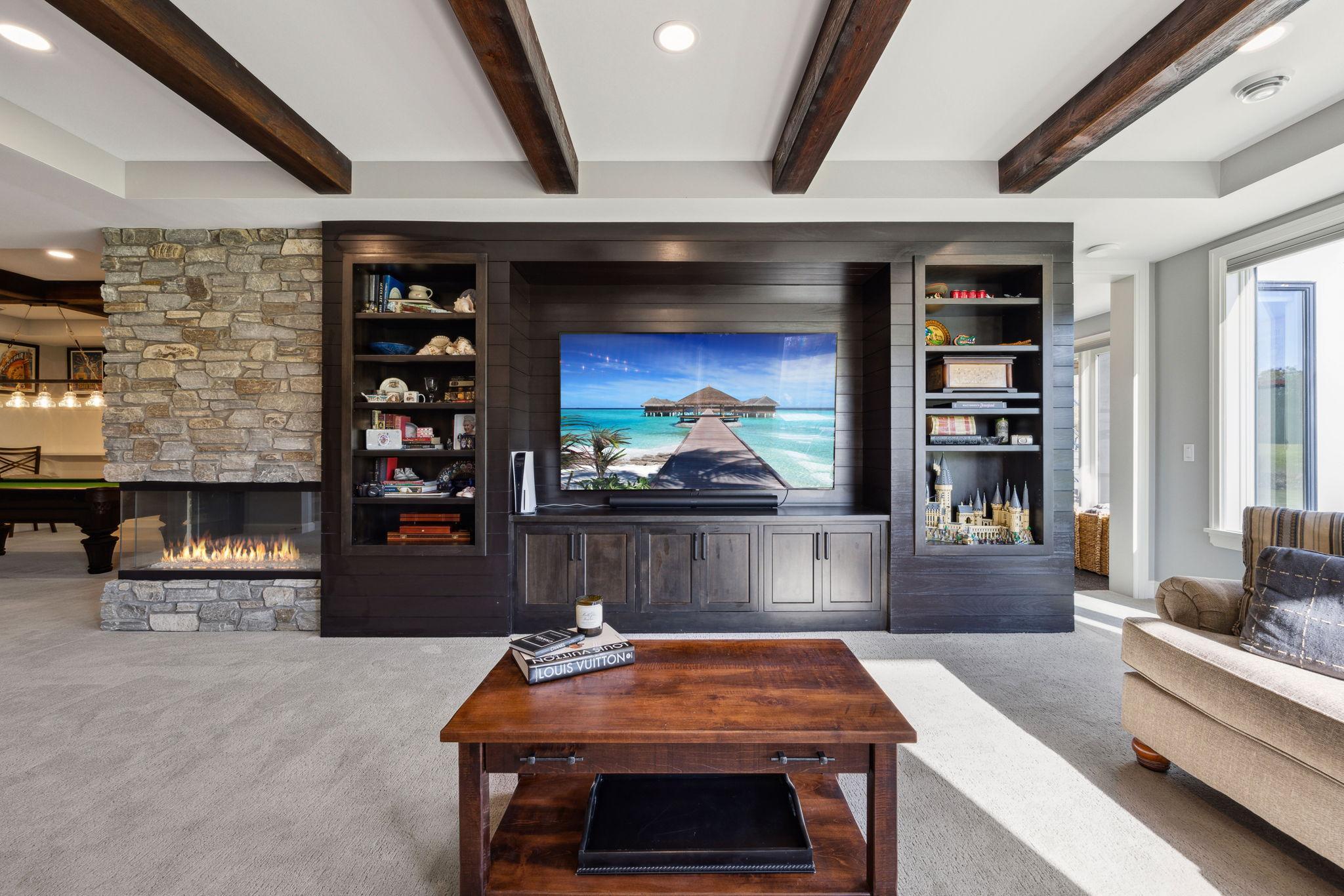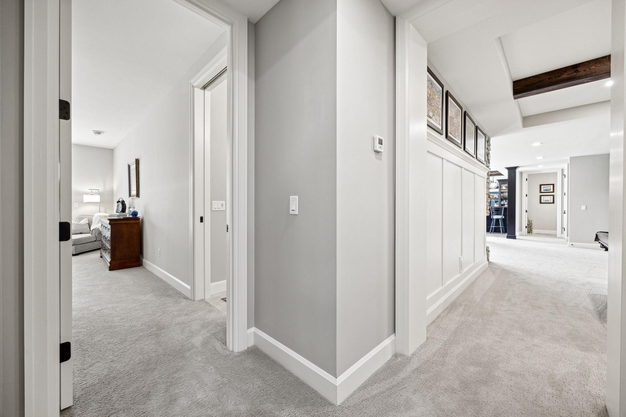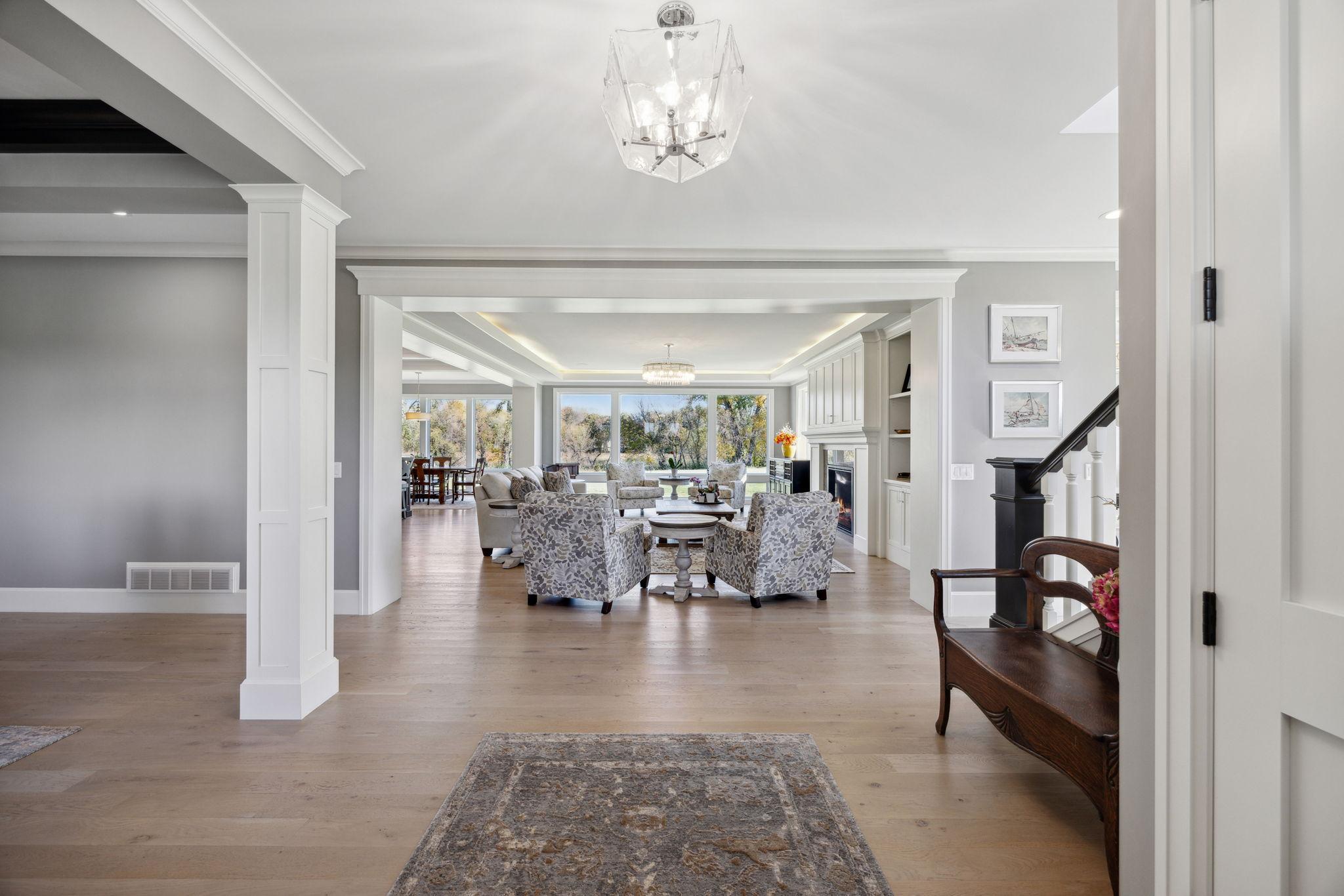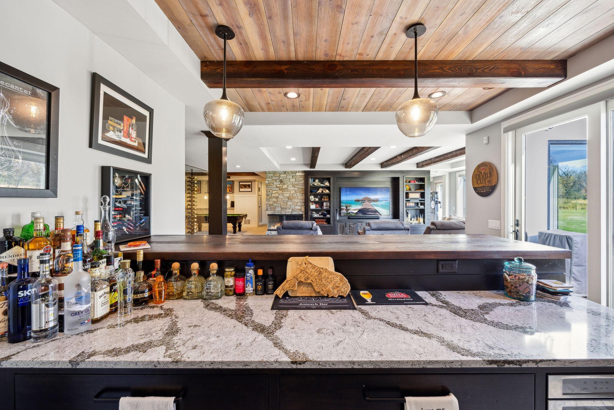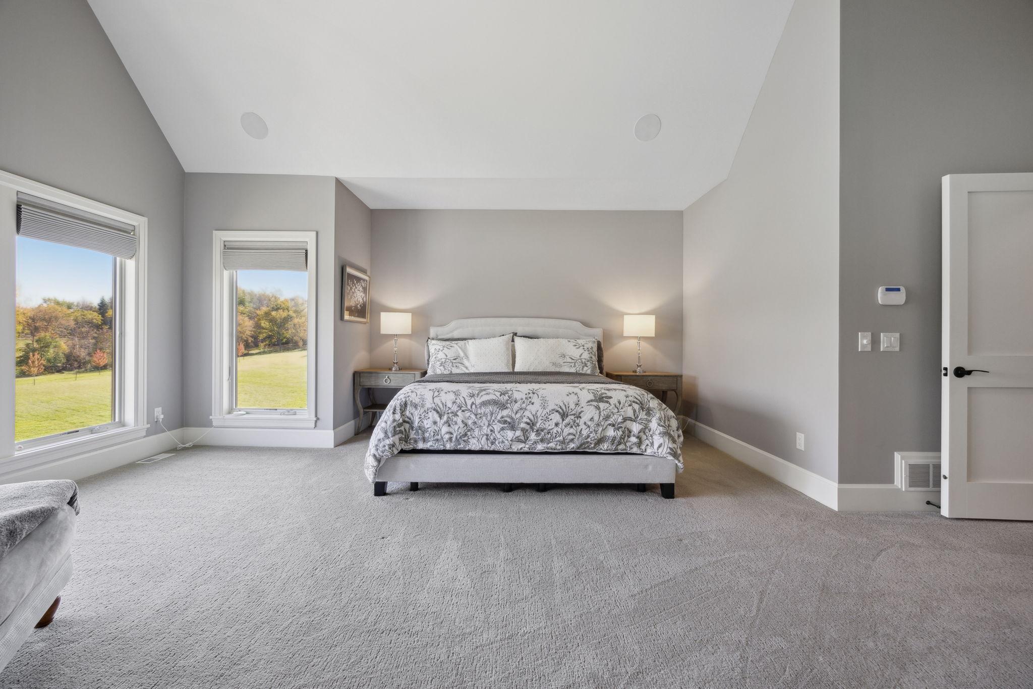 This exclusive custom-built home by Reggie Award-Winning Hartman Homes exemplifies unparalleled craftsmanship, luxurious finishes, and ample space for living, working, and entertaining in style. Situated on 7.5 private acres, this remarkable estate features a fully finished six-car garage with oversized doors, eleven-foot ceilings, built-in cabinetry, a hot/cold tiled dog wash station, and upper-level storage. The main level showcases rich custom woodwork, detailed crown molding, and a full-home Sonos surround sound system. Enjoy the spacious three-season screened porch with vaulted ceiling and a cozy river stone fireplace with built-in bench or relax on the maintenance-free wraparound deck. The gourmet kitchen is equipped with an oversized center island, top-tier stainless steel appliances, custom lighting, and a hidden prep kitchen with walk-in pantry and seven-foot-tall custom shelving. The open-concept great room features a gas fireplace and custom built-ins, while the formal dining room with a coffered ceiling and main-floor office with French doors provide elegant functionality. Upstairs, the luxurious owner’s suite offers a spa-like retreat, while each additional bedroom includes its own en-suite bath and walk-in closet. The upper-level laundry room is thoughtfully designed with built-ins, Cambria counters, and custom lighting. The walkout lower level is designed for entertainment, featuring a media room with custom built-ins and a two-sided fireplace, a full wet bar with high-end appliances, a 500-bottle temperature and humidity-controlled wine room with tasting station, a billiards room, exercise room, and a fifth bedroom with private patio access. This exceptional home has been meticulously crafted down to every detail—an extraordinary opportunity for those seeking space, privacy, and the highest level of custom living all within 25 minutes to downtown Minneapolis