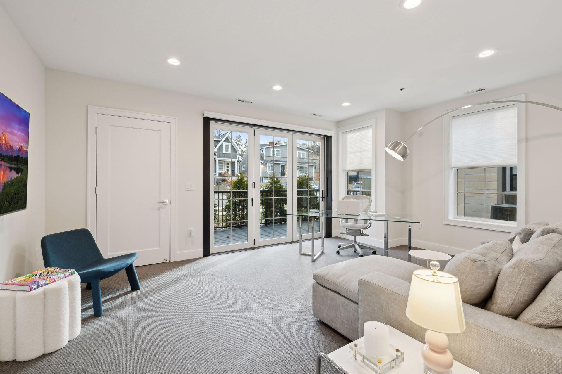 This beautiful main floor condo offers an open floor plan with 3 beds or 2 beds plus a large den/office. You will be impressed with the exceptional room sizes, quality, timeless design and attention to detail. Spacious gourmet kitchen with high end appliances. Large windows throughout flooding every room with an abundance of natural light. Enjoy the outdoors with 2 private front porches accessible from the great room and den/office via accordion sliding doors. This condo was meant for entertaining. Impressive primary suite with luxurious bath and walk-in closet. A very special feature to the unit is your own private attached oversized heated garage with ample storage. Truly a rare opportunity for urban living located in the heart of Edina.