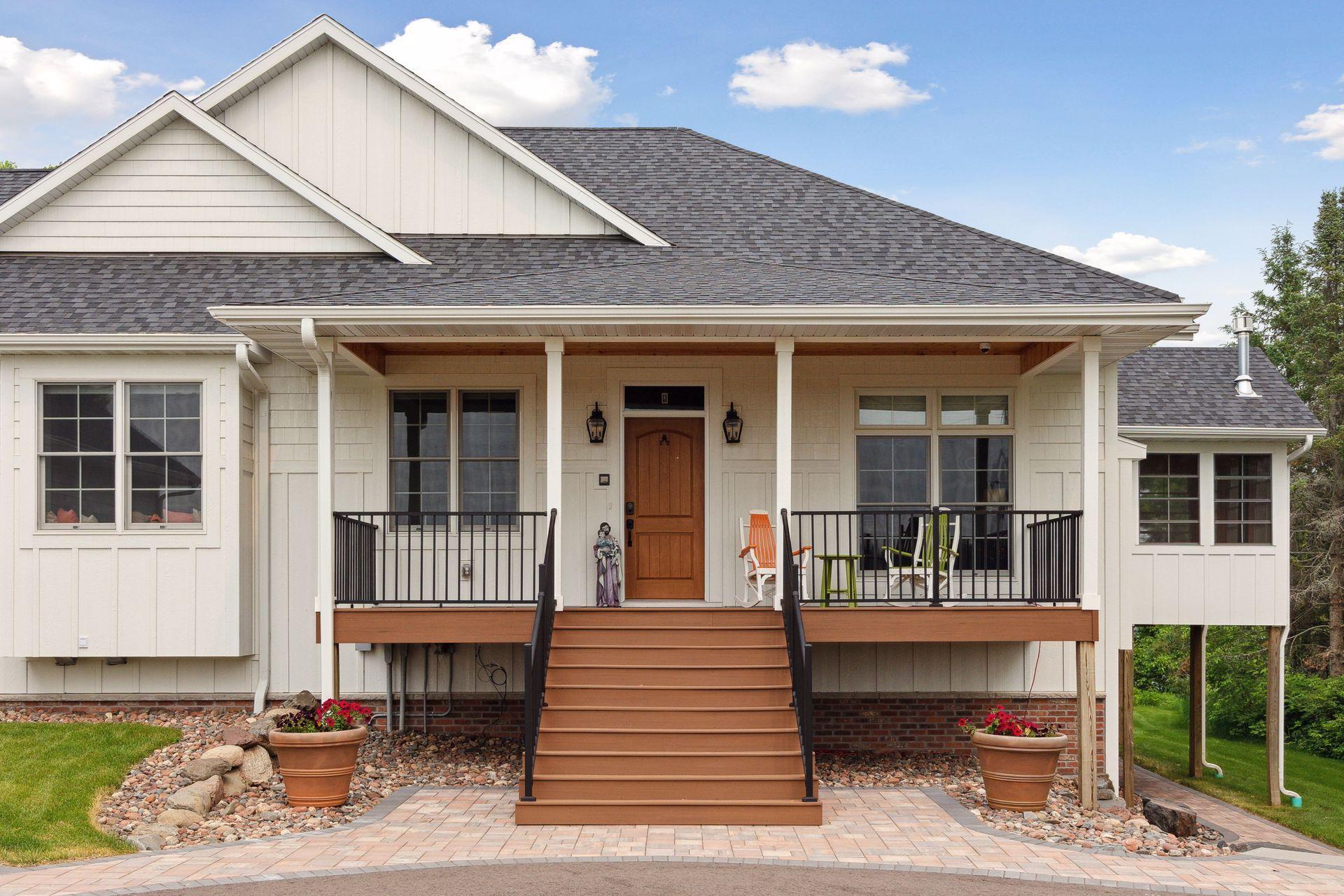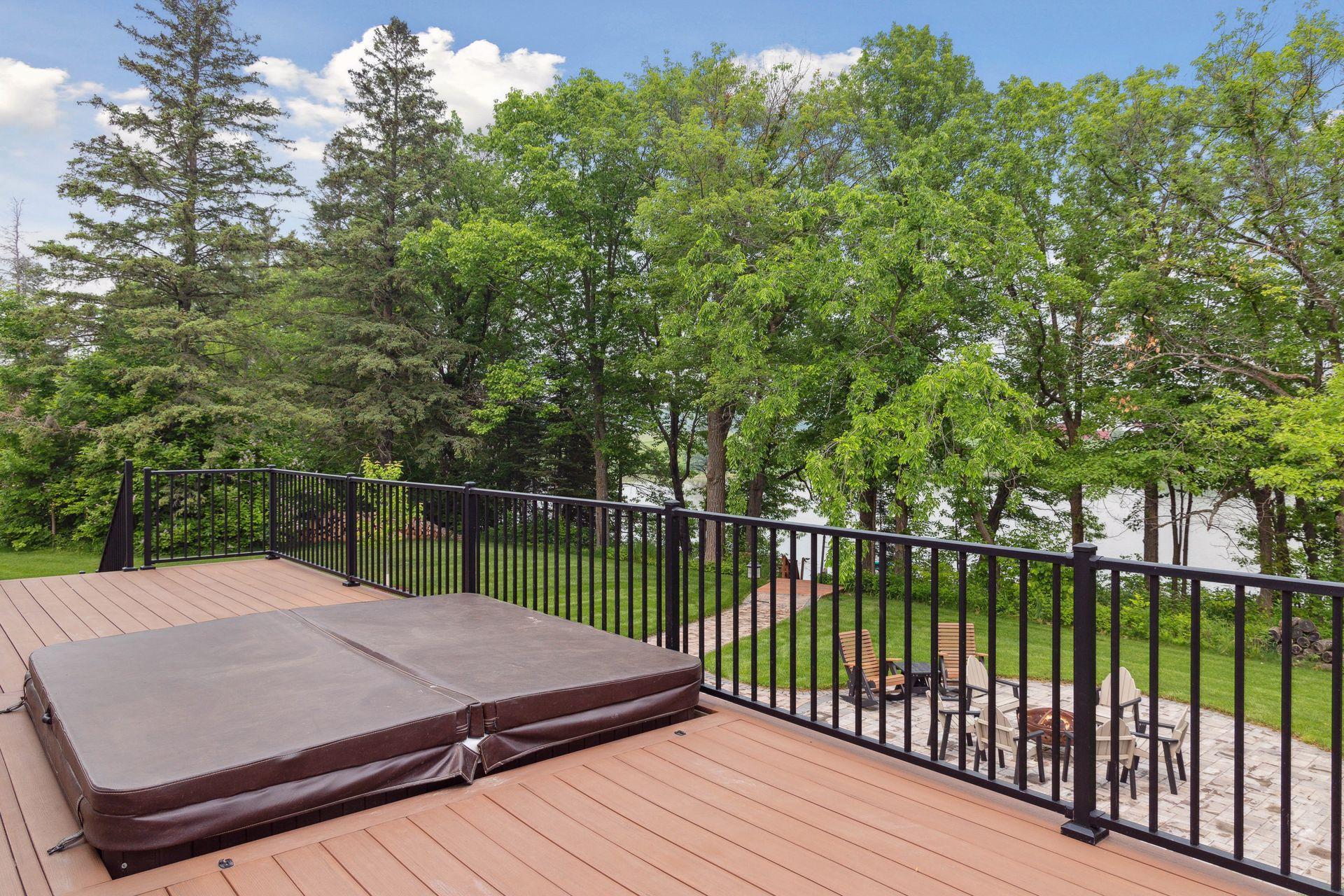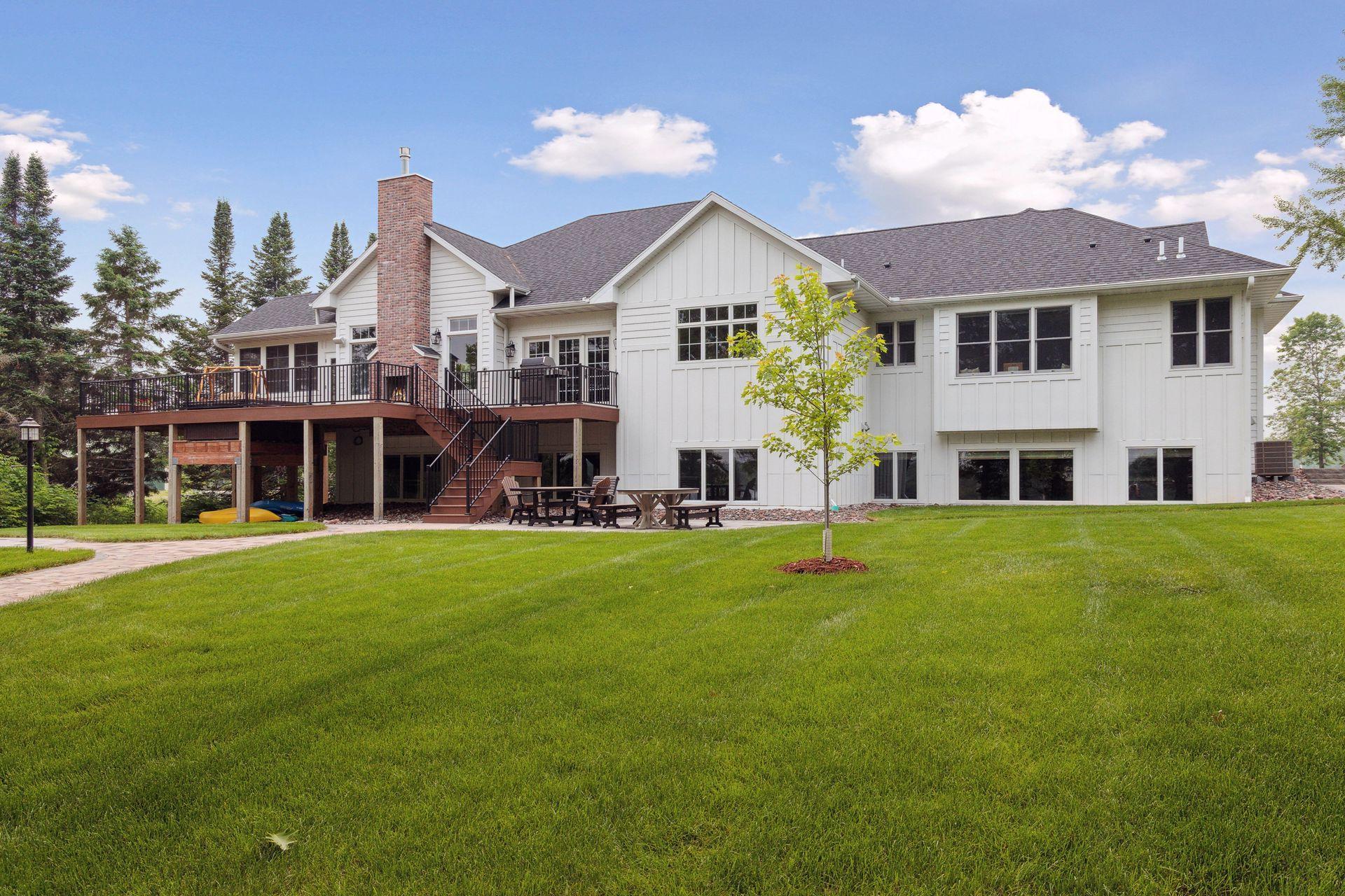 Located on a quiet full recreation lake, which is longer in length and great for skiing! This custom lake home built by St. Croix Home Builders is nothing short of extra ordinary. With natural light throughout and a breezy flow with an intentional balance of work, leisure, relationships and purpose. Andersen windows throughout! Chef's kitchen with upgraded appliances; Fisher Paykel dishwasher, Miele coffee maker, butler's pantry with wine cooler perfect for buffets or coffee bar. Breakfast nook w/built-in benches which rises and lowers. Office/den just off the main entry foyer with custom cabinets and lighting. Living room w/double-sided brick fireplace and vaulted ceilings with naturally aged barnwood beams. Deck overlooking the lake with sunken hot tub so as not to block any lake view and fireplace, perfect for entertaining/hosting events or staying warm on cool breezy days. All while enjoying the country outdoors. Sunroom with in-floor heat and gas fireplace perfect for quiet morning coffee and lake views. Master bed w/flow through wrap around to main level laundry room. Upper guest suite with extra thick walls, private sitting area, bath and bedroom make anyone's stay comfortable. Walk-out basement features 9 ft ceilings, in floor heat, 4 bedrooms w/large daylight windows, a Michael Phelps swim spa perfect for winter day training, storm hurricane shelter, craft room and an entry area with cabinets and laundry for swim clothes, towels and gear with door to the paved patio/firepit and path leading to the lake and dock. Custom security system and cameras throughout for the highest of safety. Surround sound throughout home with adjustable volume in each room. Garage features extra high ceilings, in-floor heat, faucet w/warm water for winter car and pet washing. The yard features a beautiful Japanese lilac tree and an abundance of evergreens, which make a great wind block and a sprinkler system for perfect yard and flower maintenance. Separate aqua master lake water circulating system to keep water flowing in the swimming area for the best of sunny swim days. Shoreline has a firm base good for swimming. Quiet lake is up to 49 feet deep and has wonderful fishing, stocked with walleye. Other fish include crappie, bass and sunnies. Take your paddle boat around the lake for an evening sunset stroll or cast a line on a calm day. So much opportunity and thought has gone into the detail of this home you will never find another quite like it!