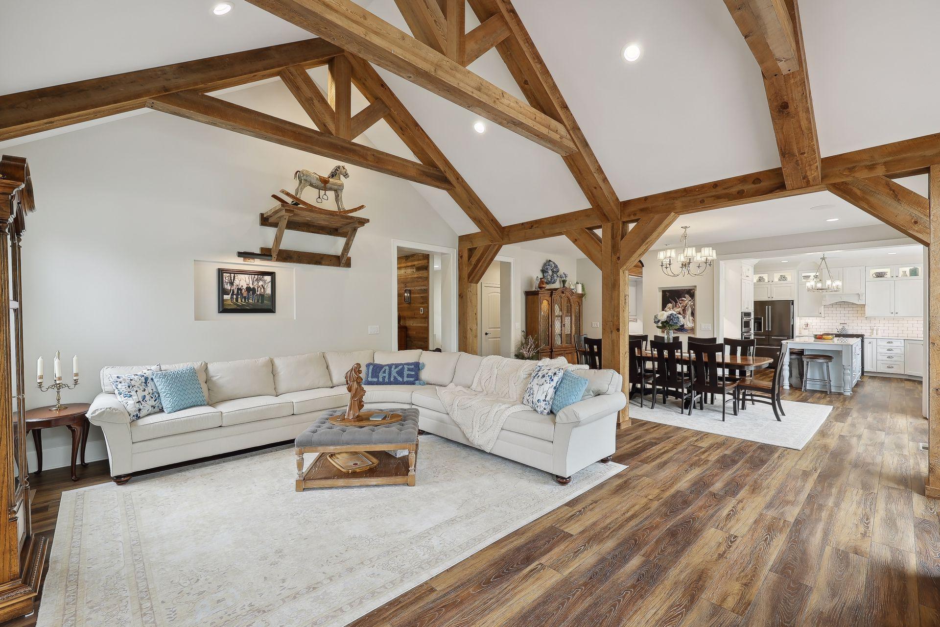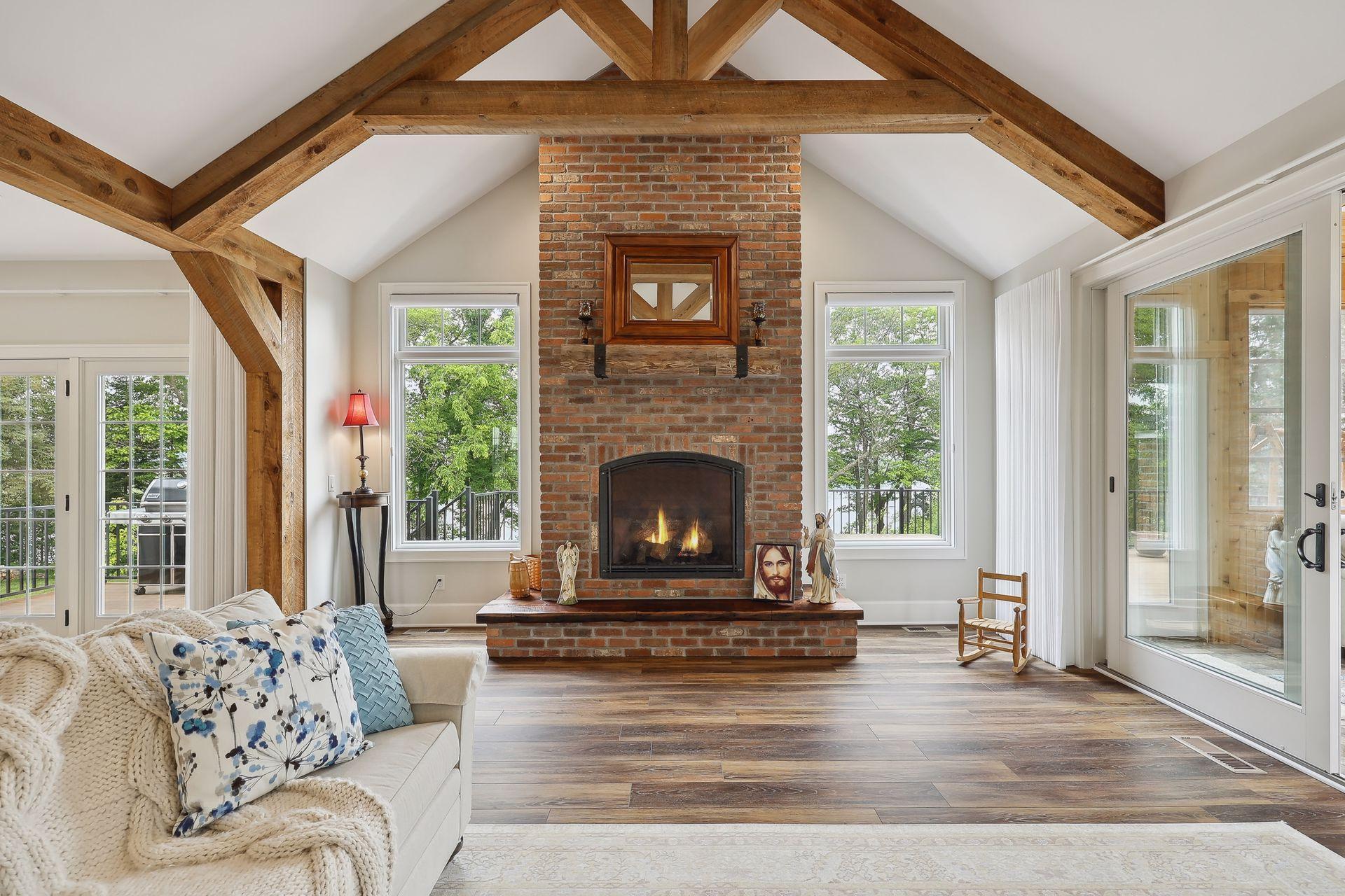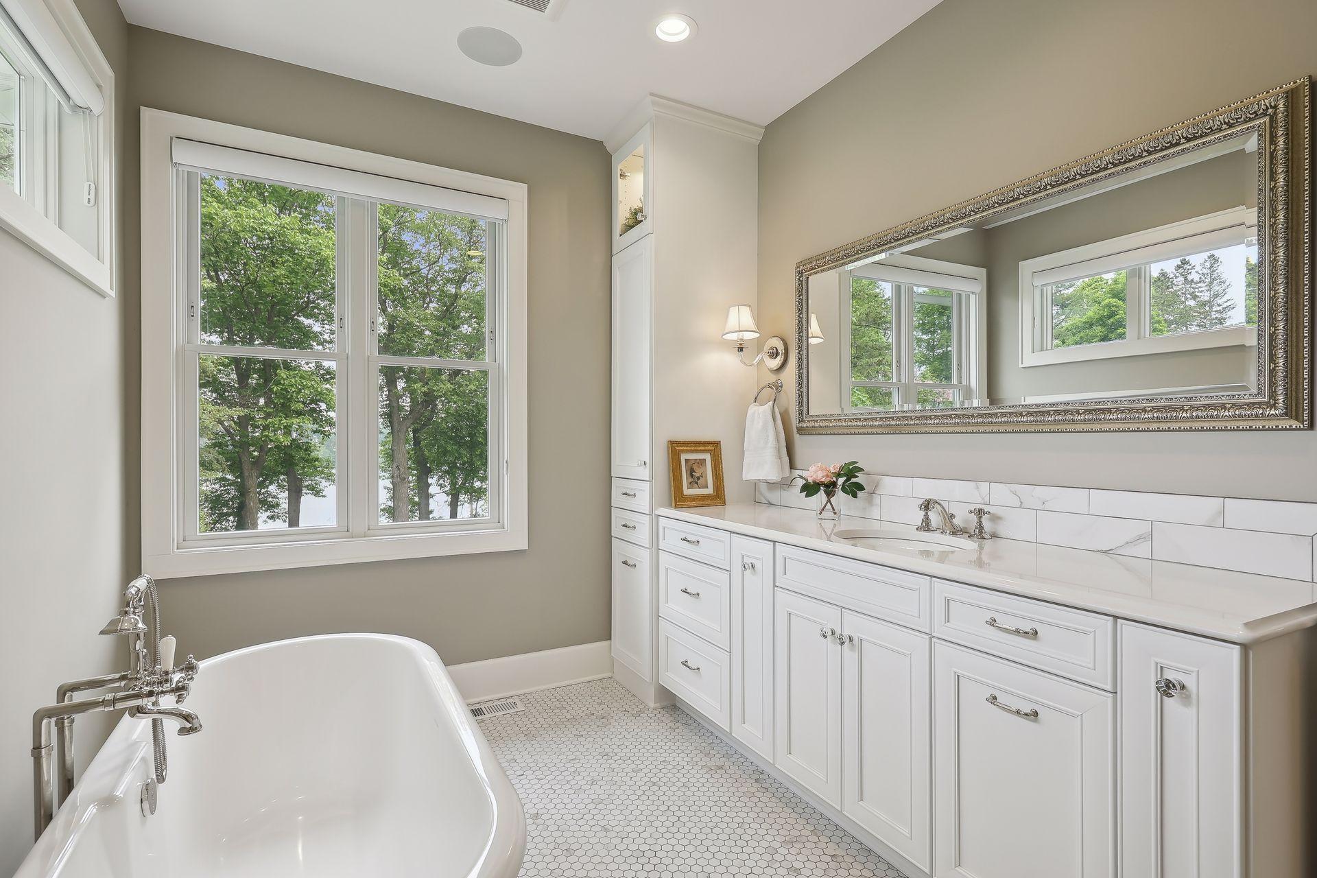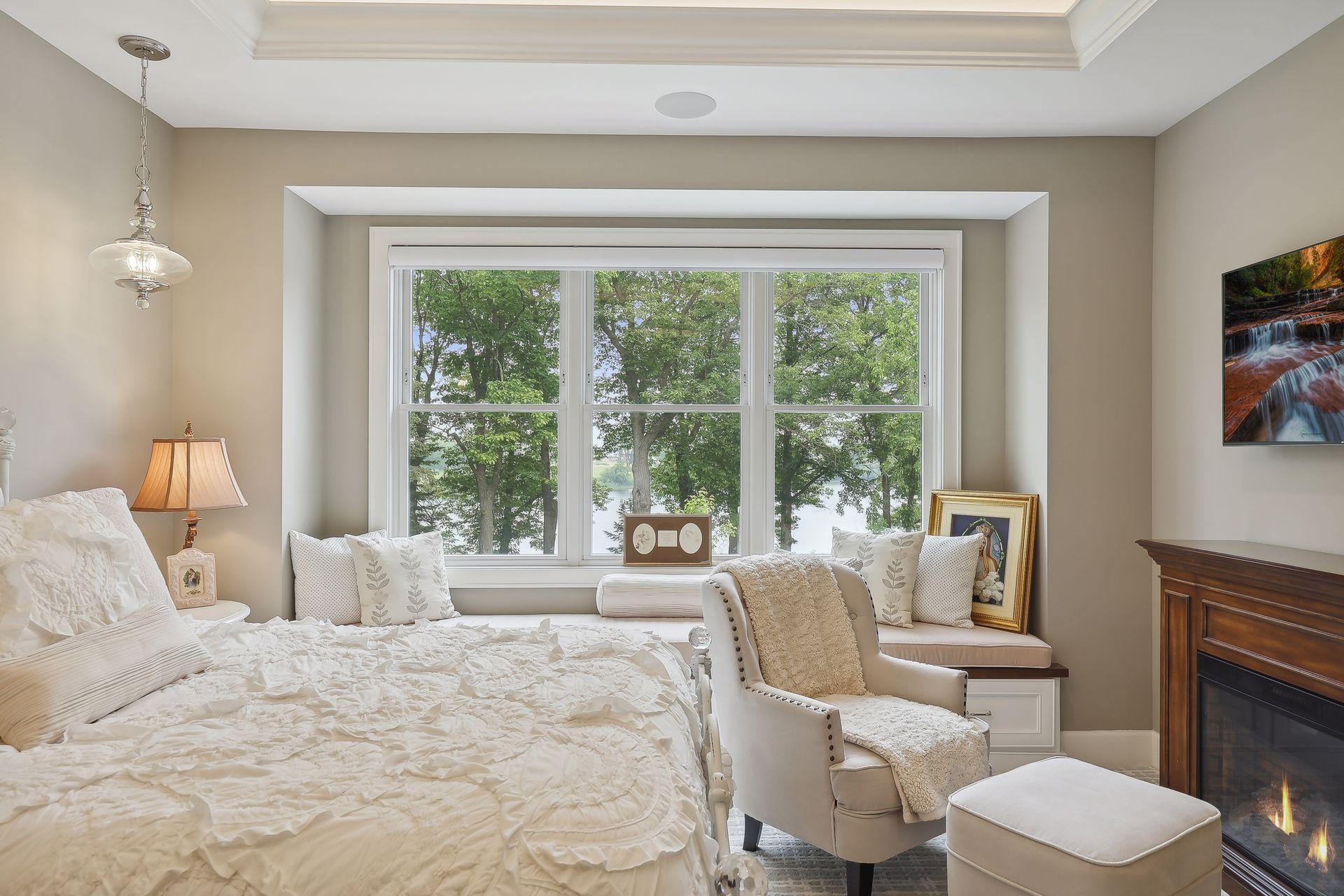 Located on a quiet full recreation lake, which is longer in length and great for skiing! This custom lake home built by St. Croix Home Builders is nothing short of extra ordinary. With natural light throughout and a breezy flow with an intentional balance of work, leisure, relationships and purpose. Andersen windows throughout! Chef's kitchen with upgraded appliances; Fisher Paykel dishwasher, Miele coffee maker, butler's pantry with wine cooler perfect for buffets or coffee bar. Breakfast nook w/built-in benches which rises and lowers. Office/den just off the main entry foyer with custom cabinets and lighting. Living room w/double-sided brick fireplace and vaulted ceilings with naturally aged barnwood beams. Deck overlooking the lake with sunken hot tub so as not to block any lake view and fireplace, perfect for entertaining/hosting events or staying warm on cool breezy days. All while enjoying the country outdoors. Sunroom with in-floor heat and gas fireplace perfect for quiet morning coffee and lake views. Master bed w/flow through wrap around to main level laundry room. Upper guest suite with extra thick walls, private sitting area, bath and bedroom make anyone's stay comfortable. Walk-out basement features 9 ft ceilings, in floor heat, 4 bedrooms w/large daylight windows, a Michael Phelps swim spa perfect for winter day training, storm hurricane shelter, craft room and an entry area with cabinets and laundry for swim clothes, towels and gear with door to the paved patio/firepit and path leading to the lake and dock. Custom security system and cameras throughout for the highest of safety. Surround sound throughout home with adjustable volume in each room. Garage features extra high ceilings, in-floor heat, faucet w/warm water for winter car and pet washing. The yard features a beautiful Japanese lilac tree and an abundance of evergreens, which make a great wind block and a sprinkler system for perfect yard and flower maintenance. Separate aqua master lake water circulating system to keep water flowing in the swimming area for the best of sunny swim days. Shoreline has a firm base good for swimming. Quiet lake is up to 49 feet deep and has wonderful fishing, stocked with walleye. Other fish include crappie, bass and sunnies. Take your paddle boat around the lake for an evening sunset stroll or cast a line on a calm day. So much opportunity and thought has gone into the detail of this home you will never find another quite like it!