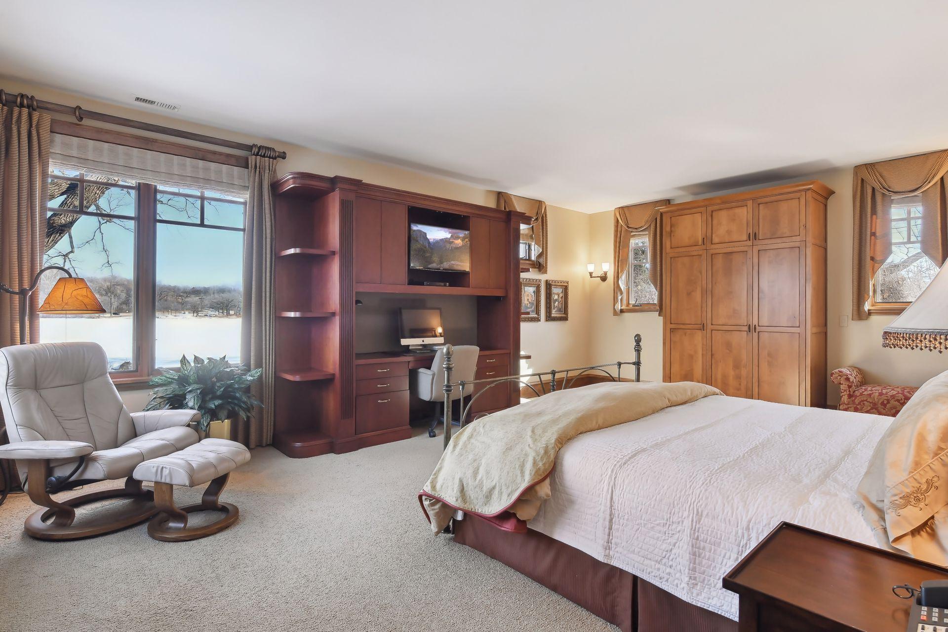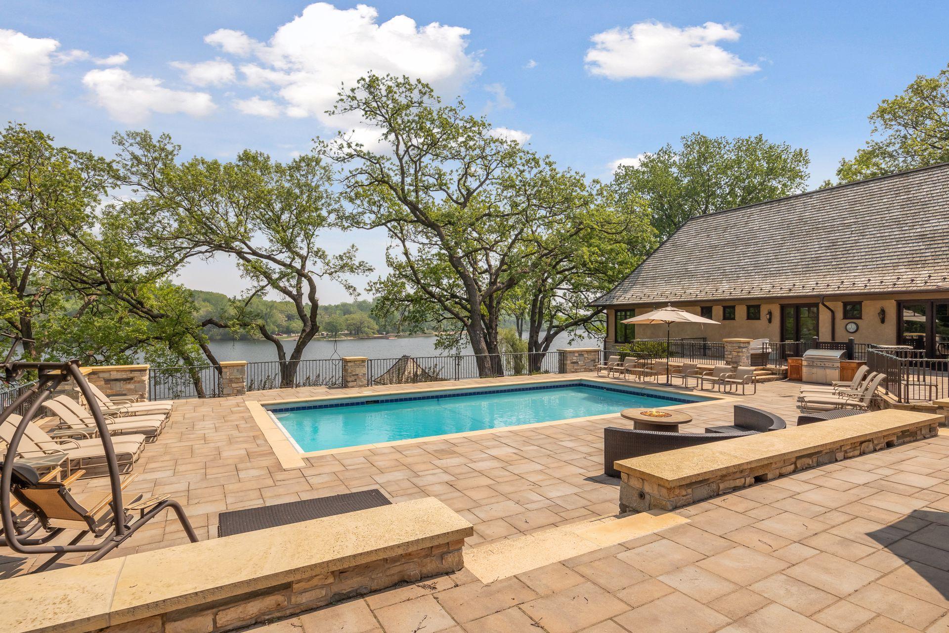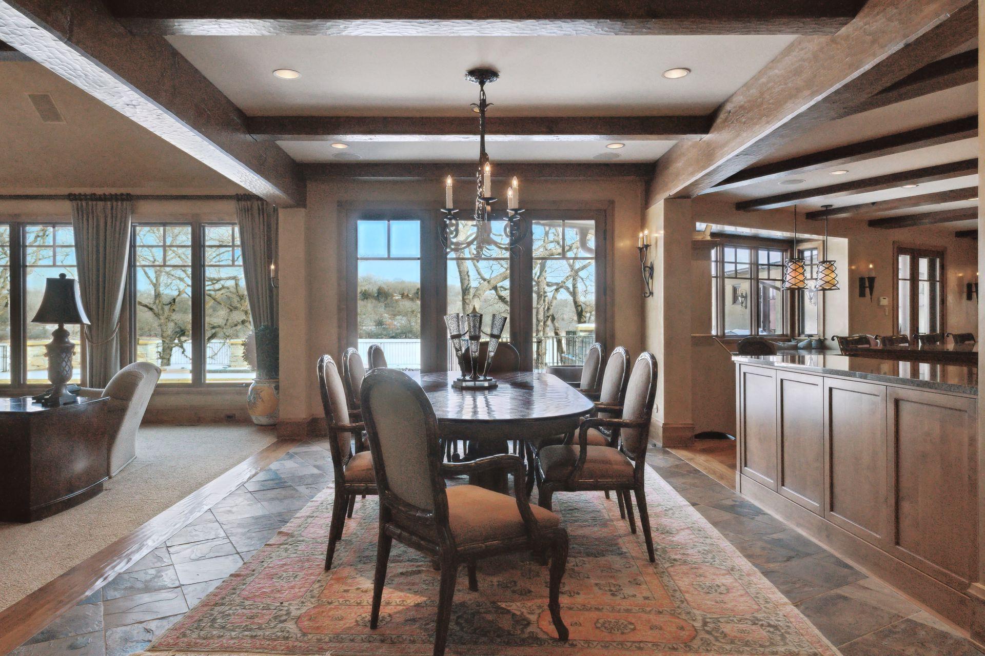 Boasting an impressive 9,404 square feet, this luxurious residence offers a remarkable living experience in a prime location. As you step inside, you'll be greeted by an expansive interior featuring a spacious layout and high-end finishes throughout. The main level is designed for both relaxation and entertainment, with a grand living area, elegant dining space, and a gourmet kitchen equipped with top-of-the-line appliances. The primary bedroom suite provides a serene retreat, complete with a lavish en-suite bathroom and ample closet space. This home also features multiple additional bedrooms, offering flexibility for guests, a home office, or a personal gym. The lower level presents an ideal space for recreation and leisure, with a generous entertainment area, a private theater room, secondary kitchenette, wine bar and golf simulator space. Outdoor spaces are equally impressive with large pool and patio spaces, BBQ area, expansive lawn to lake shore and boat house.