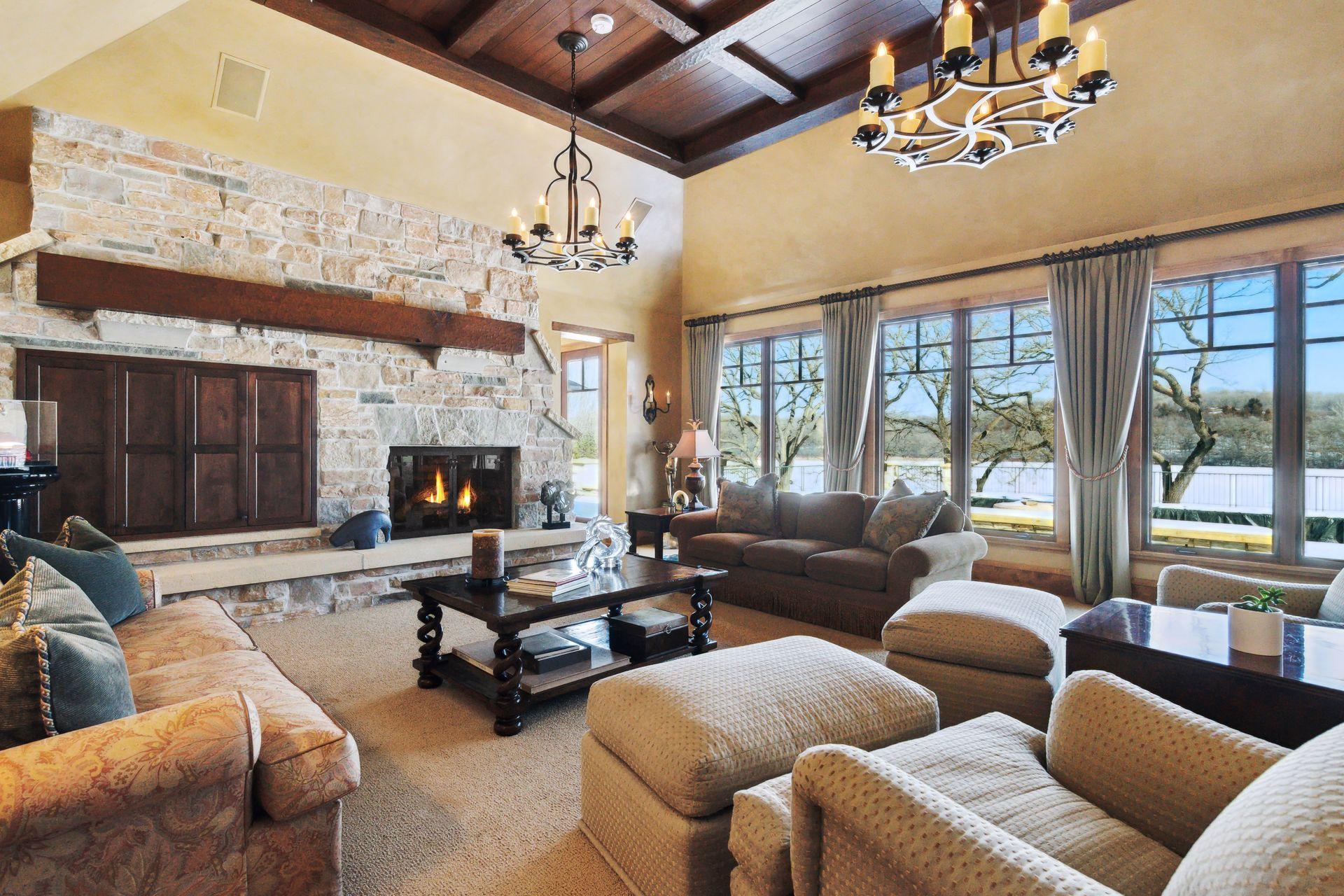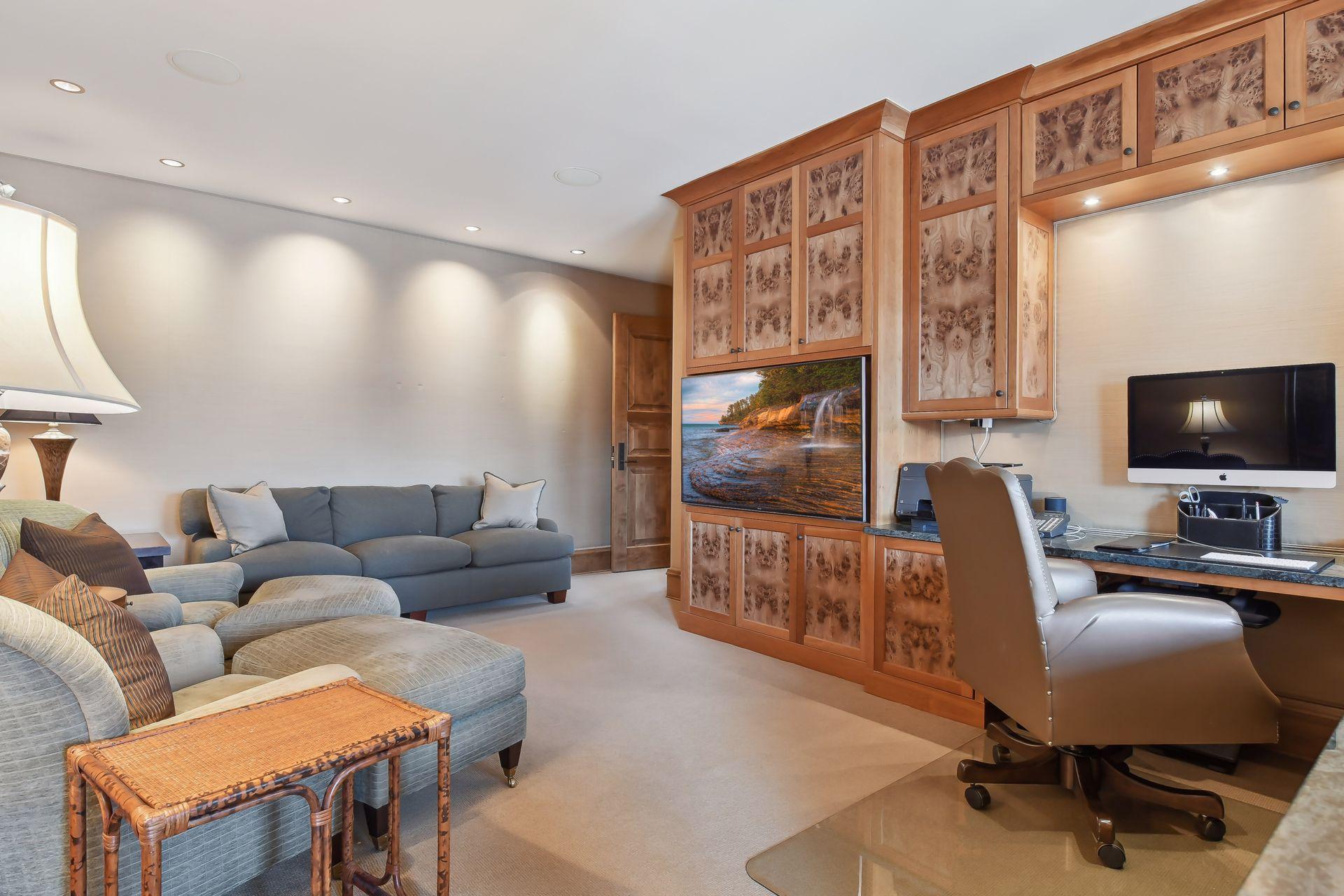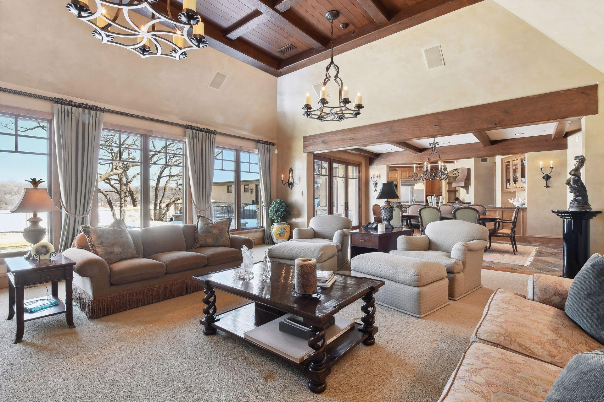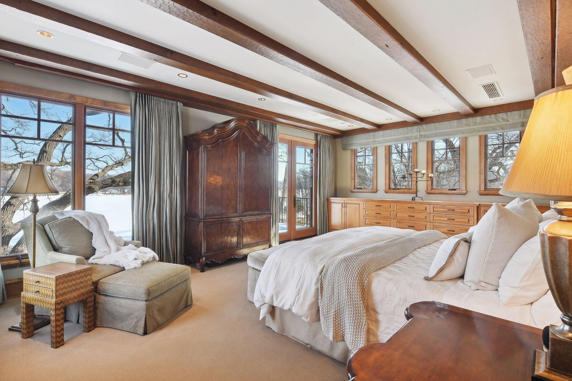 Boasting an impressive 9,404 square feet, this luxurious residence offers a remarkable living experience in a prime location. As you step inside, you'll be greeted by an expansive interior featuring a spacious layout and high-end finishes throughout. The main level is designed for both relaxation and entertainment, with a grand living area, elegant dining space, and a gourmet kitchen equipped with top-of-the-line appliances. The primary bedroom suite provides a serene retreat, complete with a lavish en-suite bathroom and ample closet space. This home also features multiple additional bedrooms, offering flexibility for guests, a home office, or a personal gym. The lower level presents an ideal space for recreation and leisure, with a generous entertainment area, a private theater room, secondary kitchenette, wine bar and golf simulator space. Outdoor spaces are equally impressive with large pool and patio spaces, BBQ area, expansive lawn to lake shore and boat house.