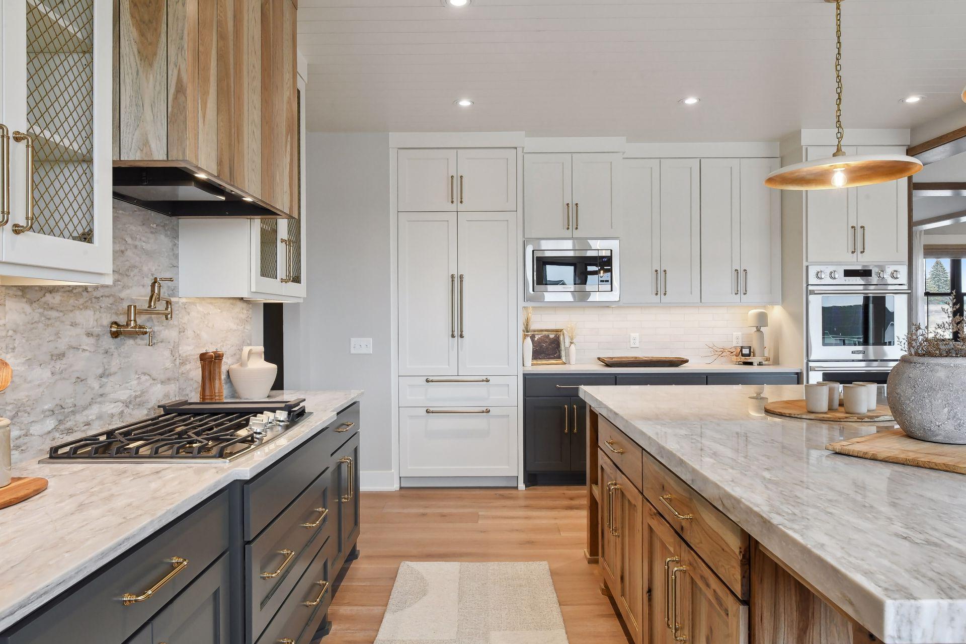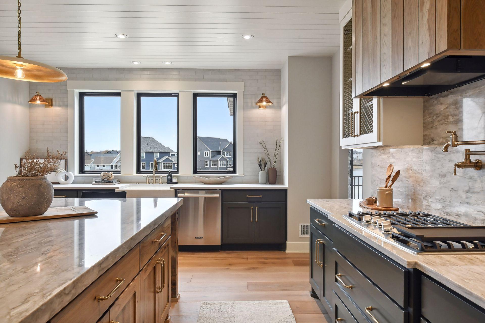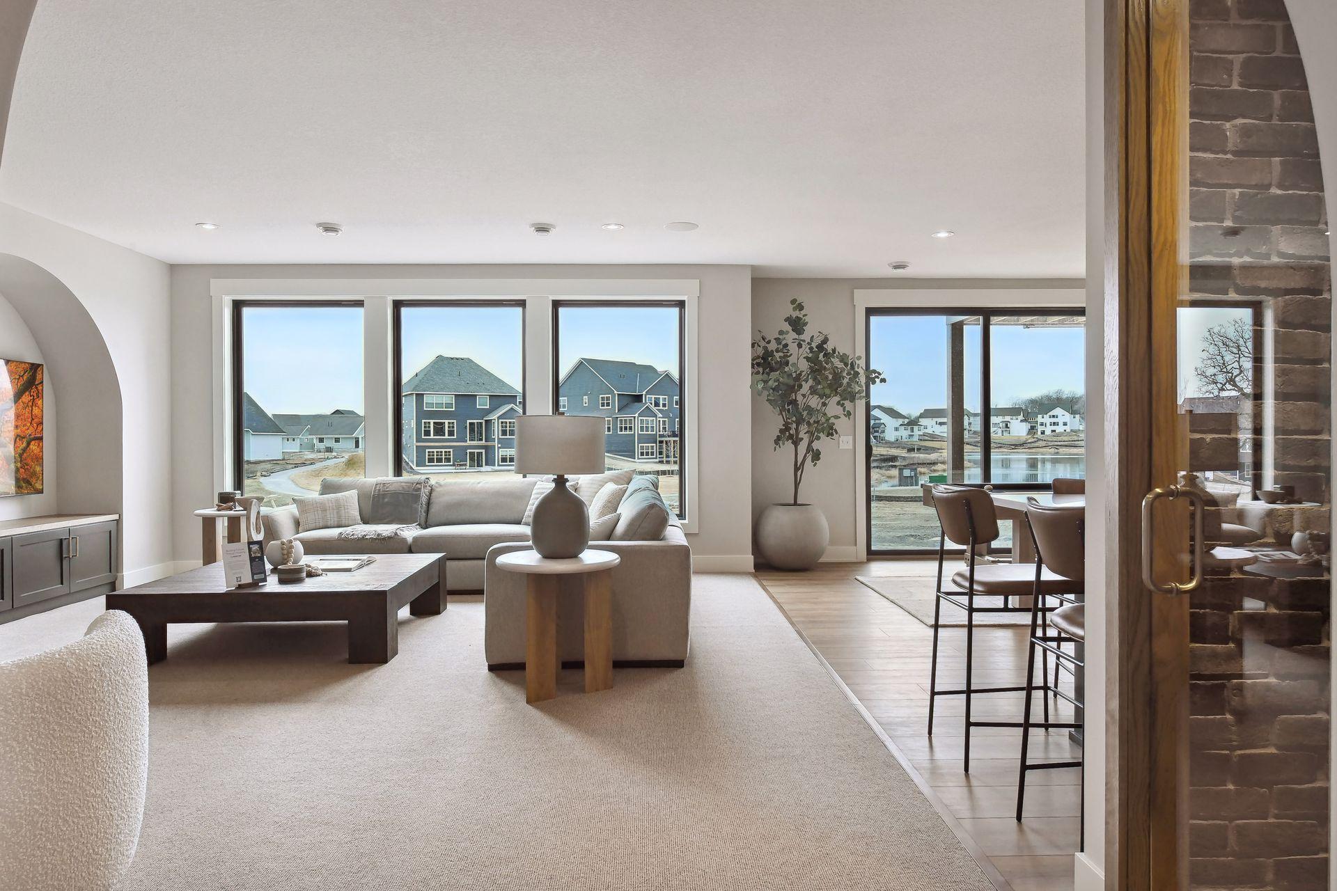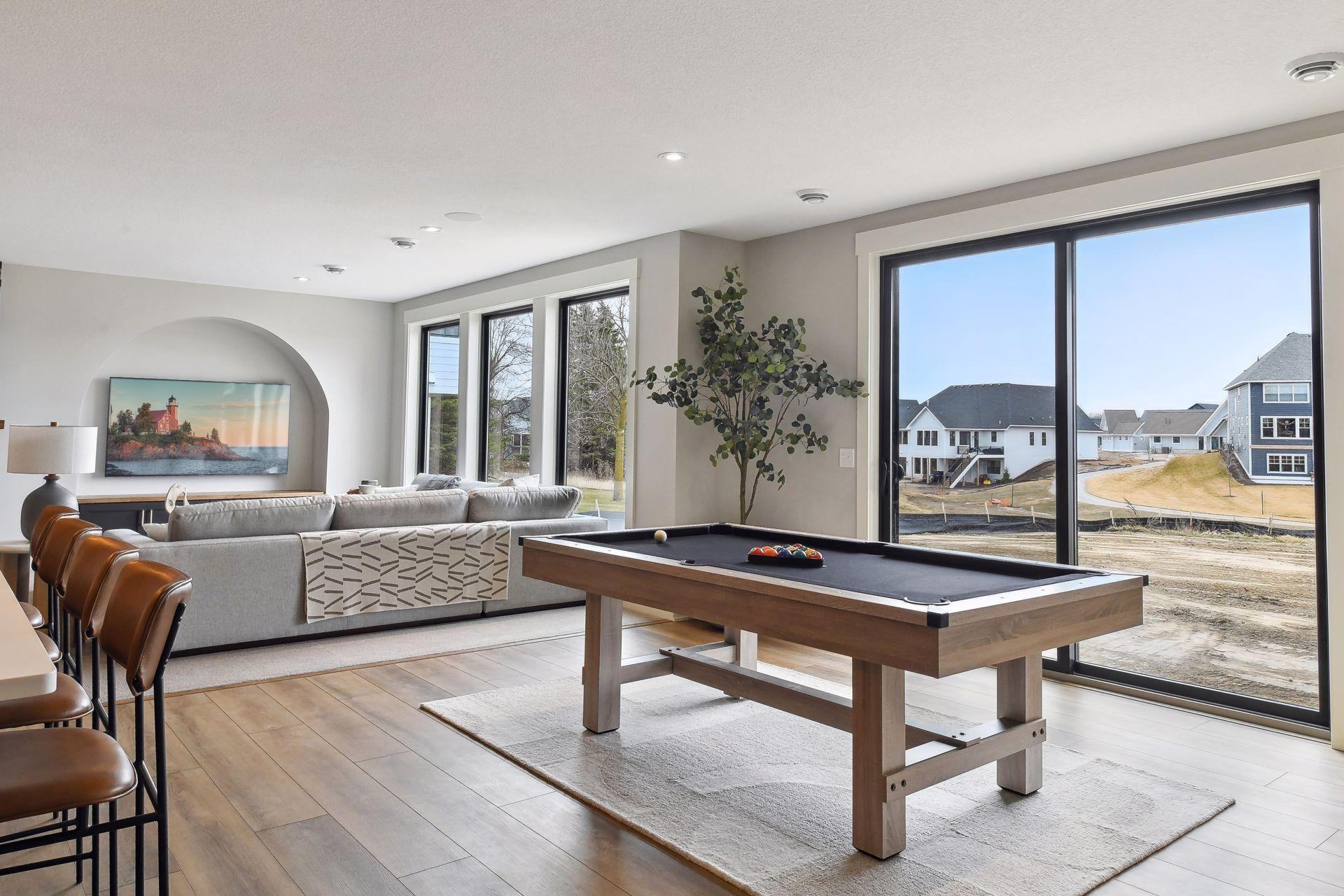 dining room, a gourmet kitchen with an oversized island and separate prep kitchen, a sunroom, spacious mudroom, powder bath, pocket office and fabulous great room. The upper level includes a luxurious owner’s suite with a soaking tub, tiled shower, and walk-in closet. Bedrooms 2 and 3 share a Jack & Jill bath and the 4th bedroom has a private 3/4 bath. The laundry room and spacious loft completes the upper level. The finished lower level is an entertainers dream! You're sure to enjoy the recreation/game room with a fireplace, wet bar with seating, multipurpose room (GOLF simulator space), exercise room, bedroom #5, and 3/4 bath. This 5,200+FSF home with a 4 car garage will be built on an amazing, over-sized, walk out, wooded lot over looking protected, conservation land and wildlife. Huntersbrook residence also get to enjoy the private pool and clubhouse! Victoria Elementary, Chaska East Middle, Chanhassen High School.