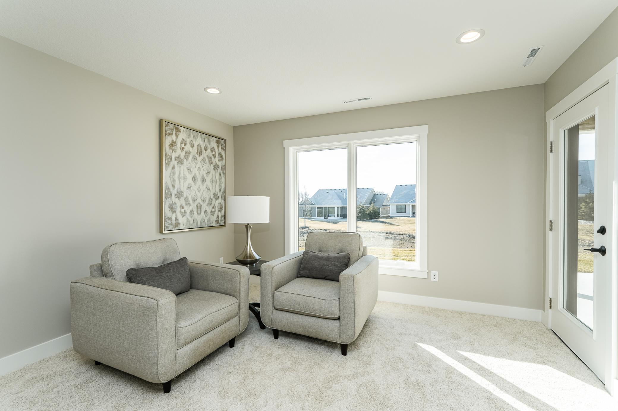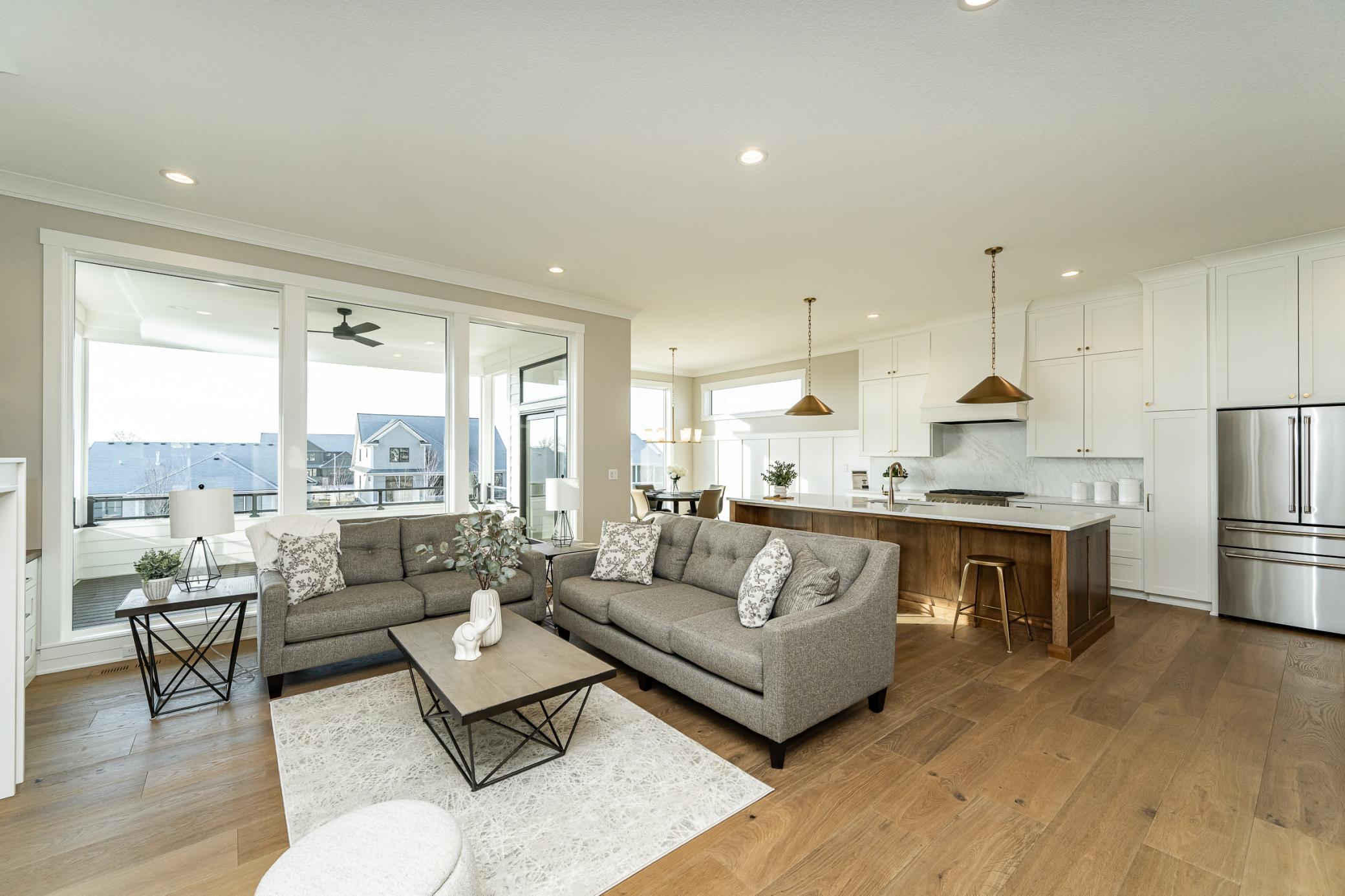 Experience Elevated Living at The Villas of Scenic Oaks West 2nd. Welcome to an exceptional community where thoughtfully designed easy living meets natural beauty. Nestled among meticulously landscaped grounds with strategically placed trees and generous yard spaces, this detached 3 car, walkout rambler offers both privacy and charm. Situated on a spacious elevated lot with coveted south-facing backyard exposure, this home is bathed in natural light through oversized windows. The main level boasts an open and airy layout, featuring a well-appointed kitchen with a walk-in pantry, a superb mudroom/laundry space, and a luxurious primary suite. A versatile den/office/bedroom complete the main floor, offering convenience and flexibility. The finished lower level provides ample space for relaxation and entertaining, with a generous family room and three well-sized bedrooms, including a junior ensuite and a cleverly designed pseudo Jack-and-Jill bathroom. Designed for effortless living, this home benefits from a minimal monthly association fee covering snow removal, lawn care, and trash service-allowing you to enjoy a low-maintenance lifestyle in a picturesque setting. Discover the perfect blend of comfort, style, and convenience at The Villas of Scenic Oaks West 2nd.