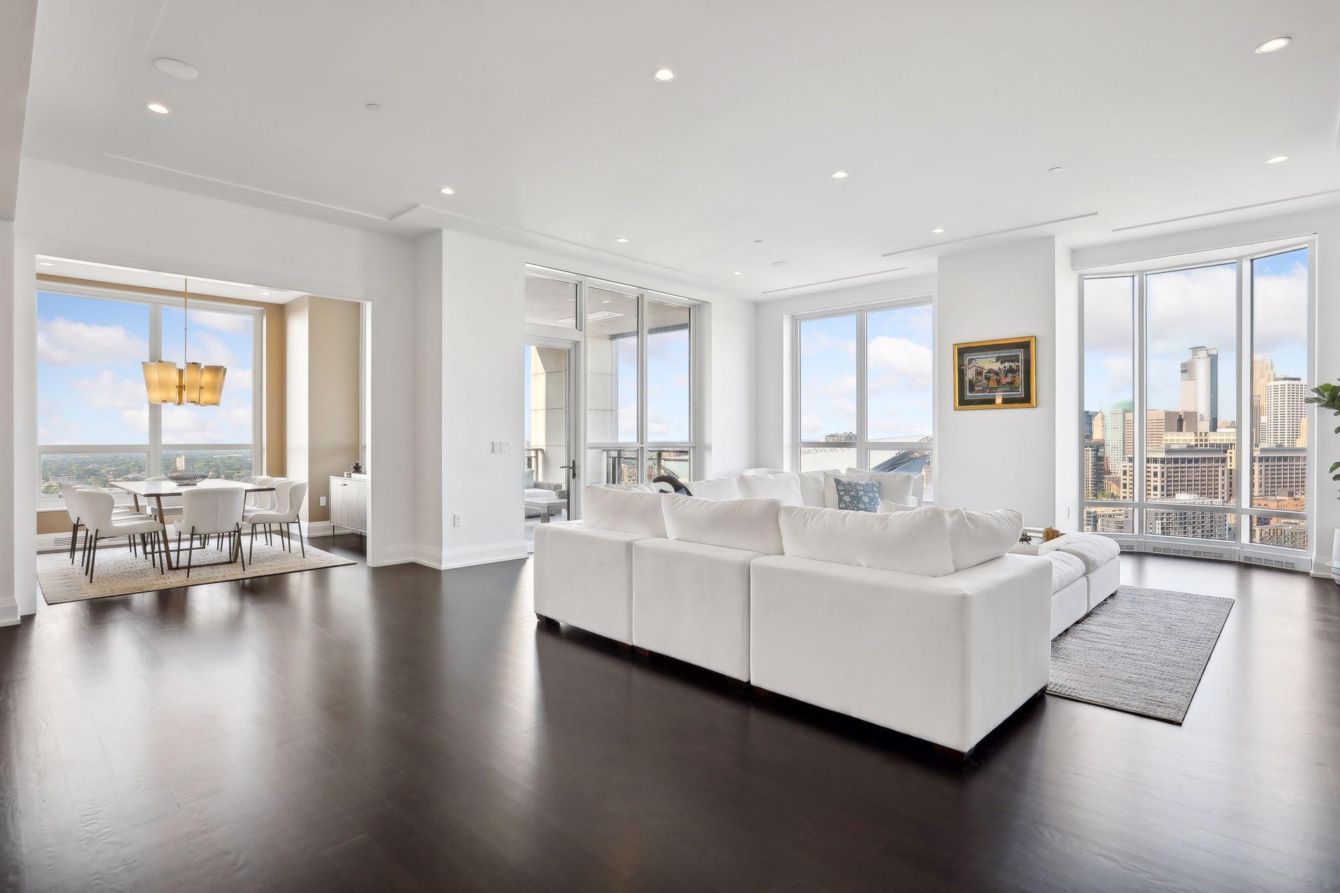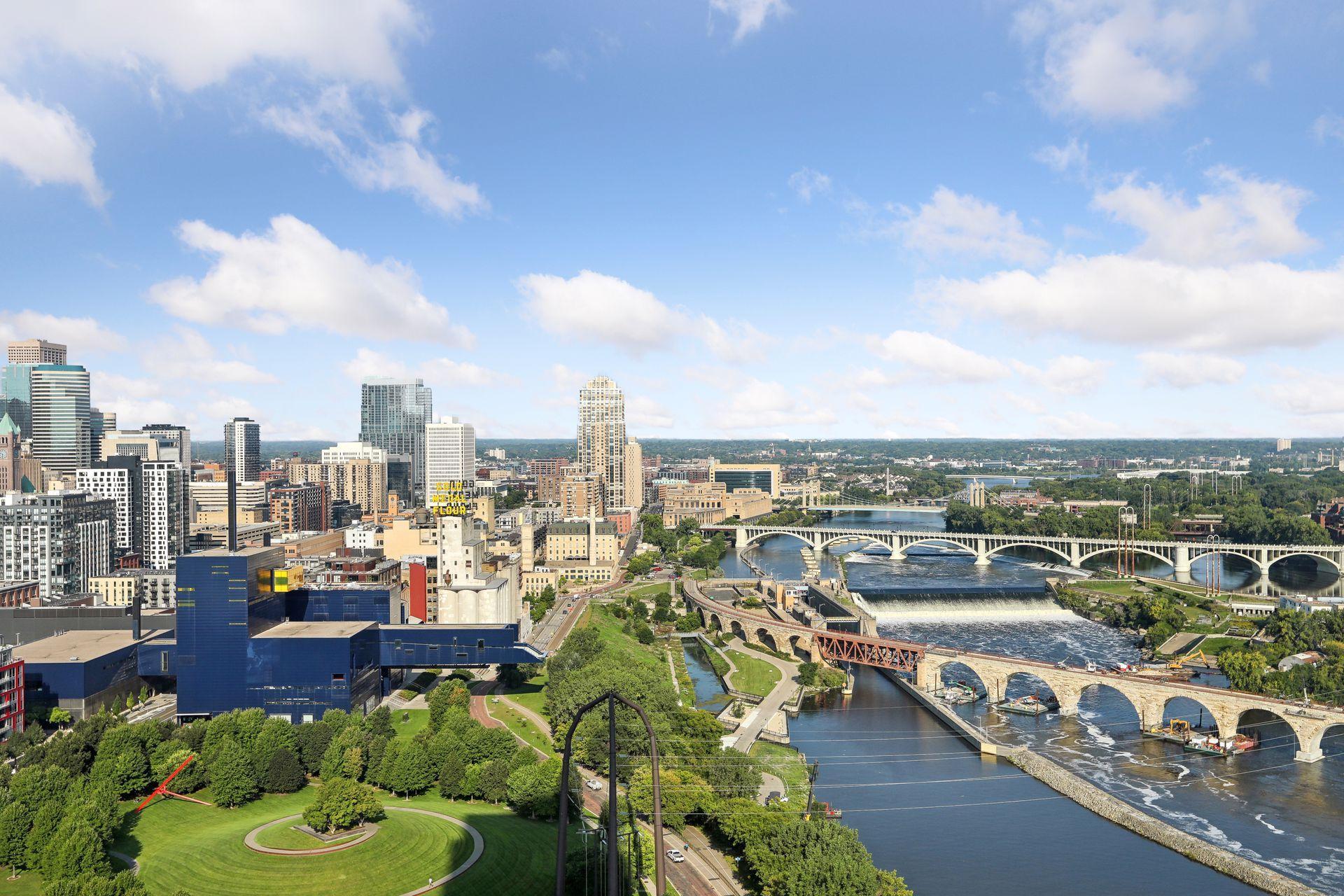 ELEVEN offers luxurious living with all the amenities of a five-star hotel without the hassle of hotel guests. This two-bedroom plus library unit is on the coveted Southwest side of the building where the views are nothing short of spectacular. The gracious open plan features a chef's kitchen with a large center island, double oven, high-end appliances and storage galore in stunning custom cabinetry; a wall to wall custom designed media unit in the great room; and in-ceiling Sonos wireless speakers and mesh Wi-Fi network for your enjoyment. Eleven foot ceilings and huge windows throughout offer lots of natural light and panoramic views from every room. Expansive 195 square feet outdoor loggia that is heated and covered. Extensive built-in storage throughout the home. ELEVEN marks the first residential condominium tower in the heart of Minneapolis by Robert A.M. Stern Architects. Set along the Mississippi riverfront, ELEVEN works beautifully within the fabric of the Mill District. It provides world-class design, unmatched finishes, thoughtful amenities and services, as well as stunning views of Gold Medal Park, Stone Arch Bridge and the Minneapolis skyline.