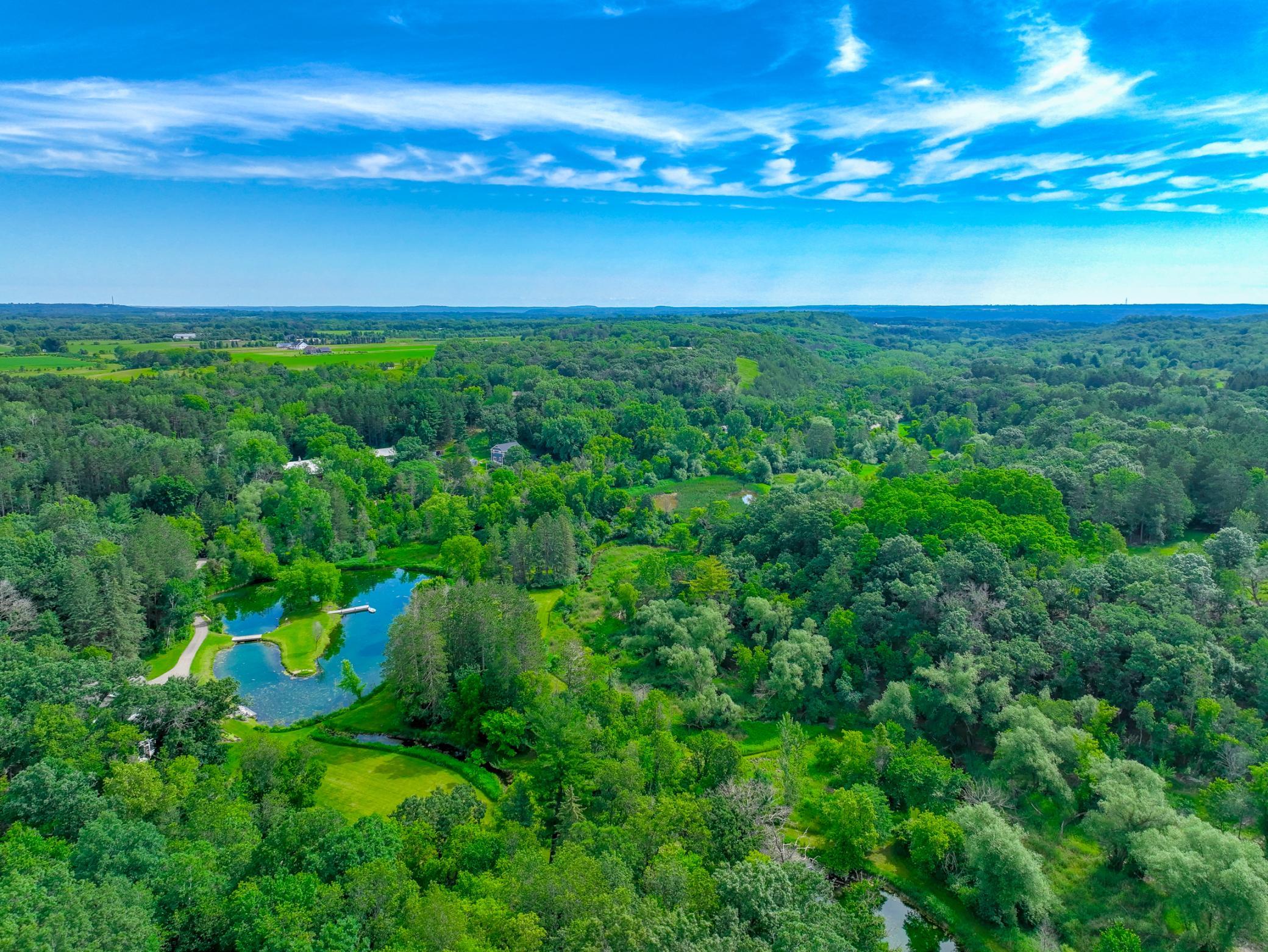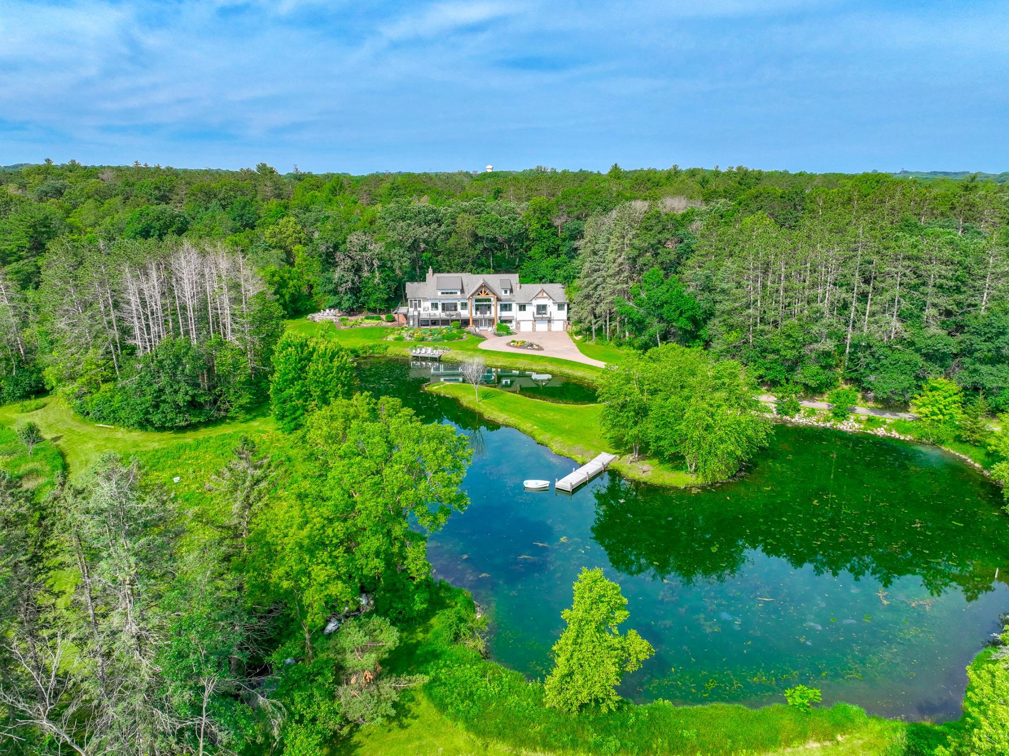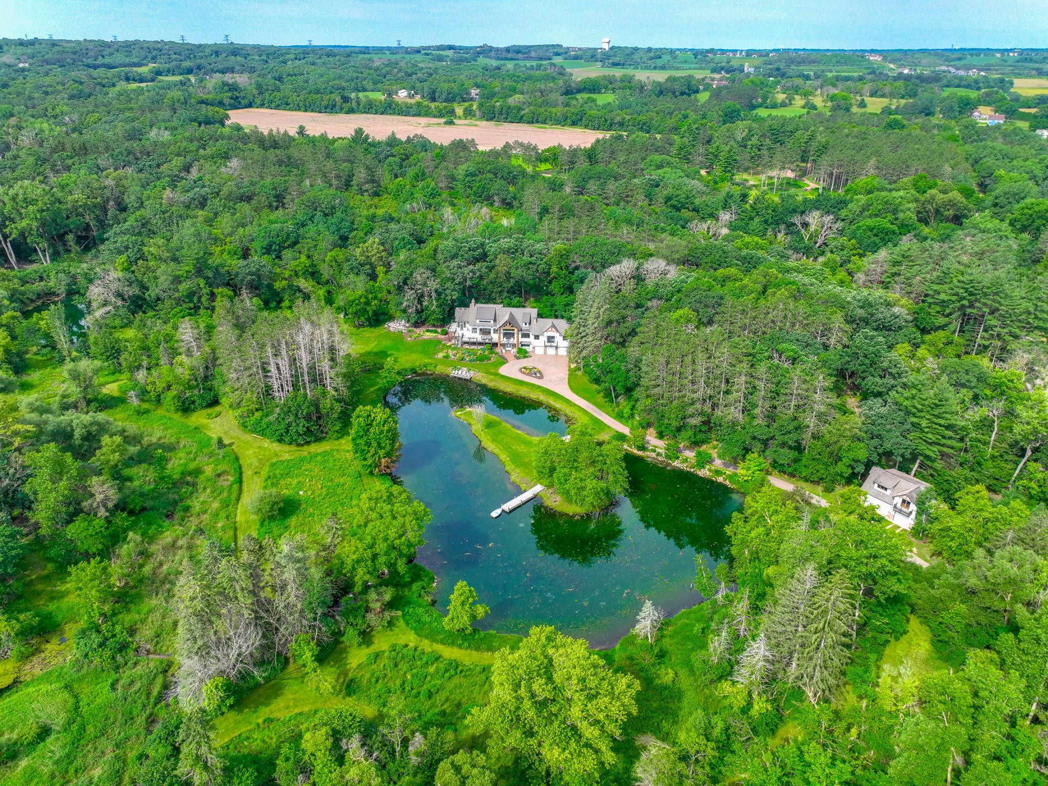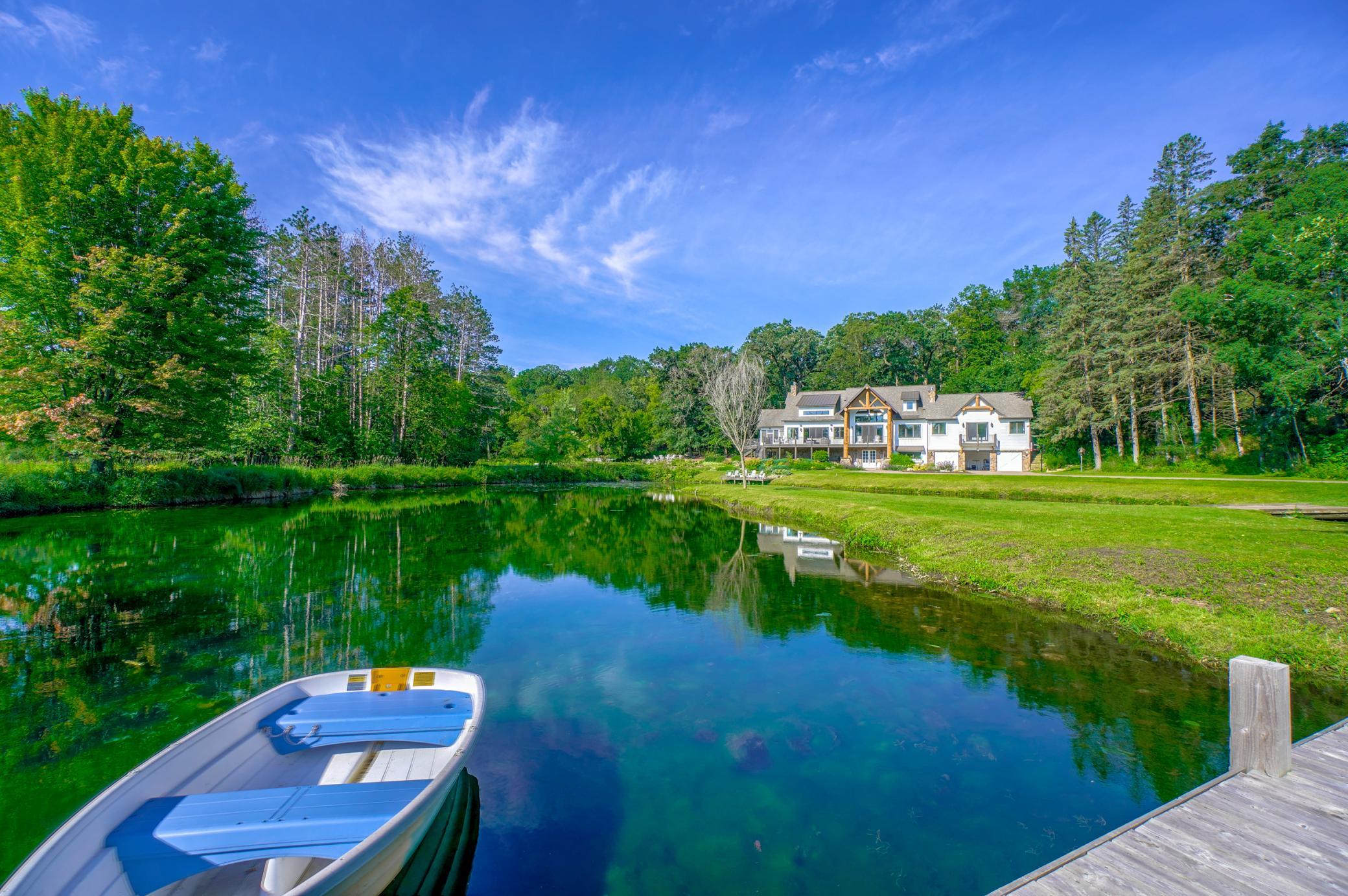 Valley Creek is one of the most desirable legacy estates in the Twin Cities. Boasting 20 acres and a world-class trout stream, the property includes a 7201sq ft designer-customized home with a heated auxiliary building, each built in 2011. With 4 bedrooms and 6 baths, and an elevator for ease of living, the home has thoughtful and intentional interior design and finishes. The open floor plan on the main level highlights the expansive views. The large lower level has media, family, exercise, and mud rooms, and there are both inside and outside entertaining areas. The vast and picturesque estate is one-of-a-kind. There are 3 spring fed ponds, which produce over 3 million gallons of clear spring water every day. The estate also has over 300ft of streams and waterfalls, as well as over a mile of private walking trails. Just 20 mins to the Cites, 15 mins to Stillwater. There is school bus service to Stillwater Schools and St. Croix Prep Academy. Once in a lifetime opportunity.