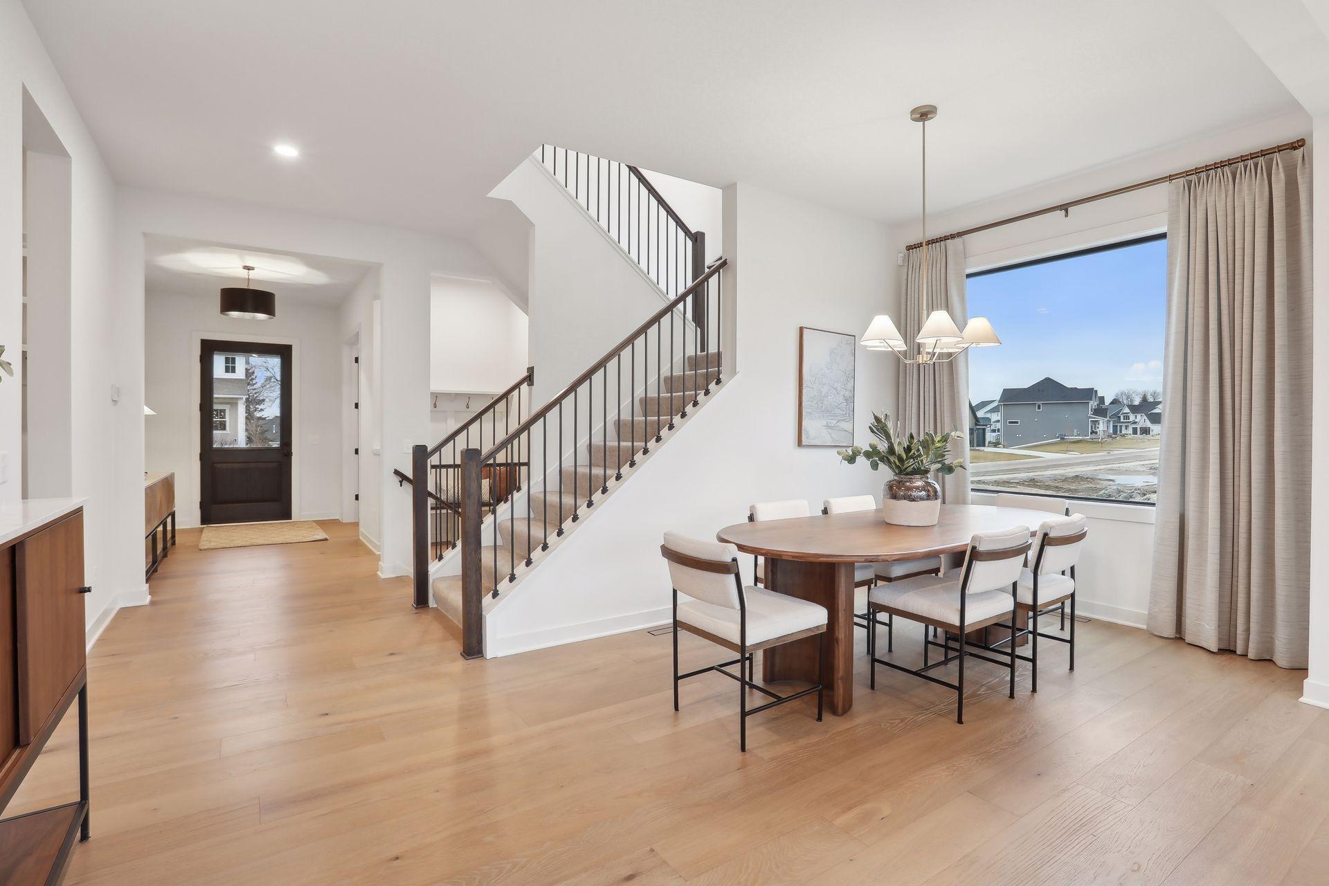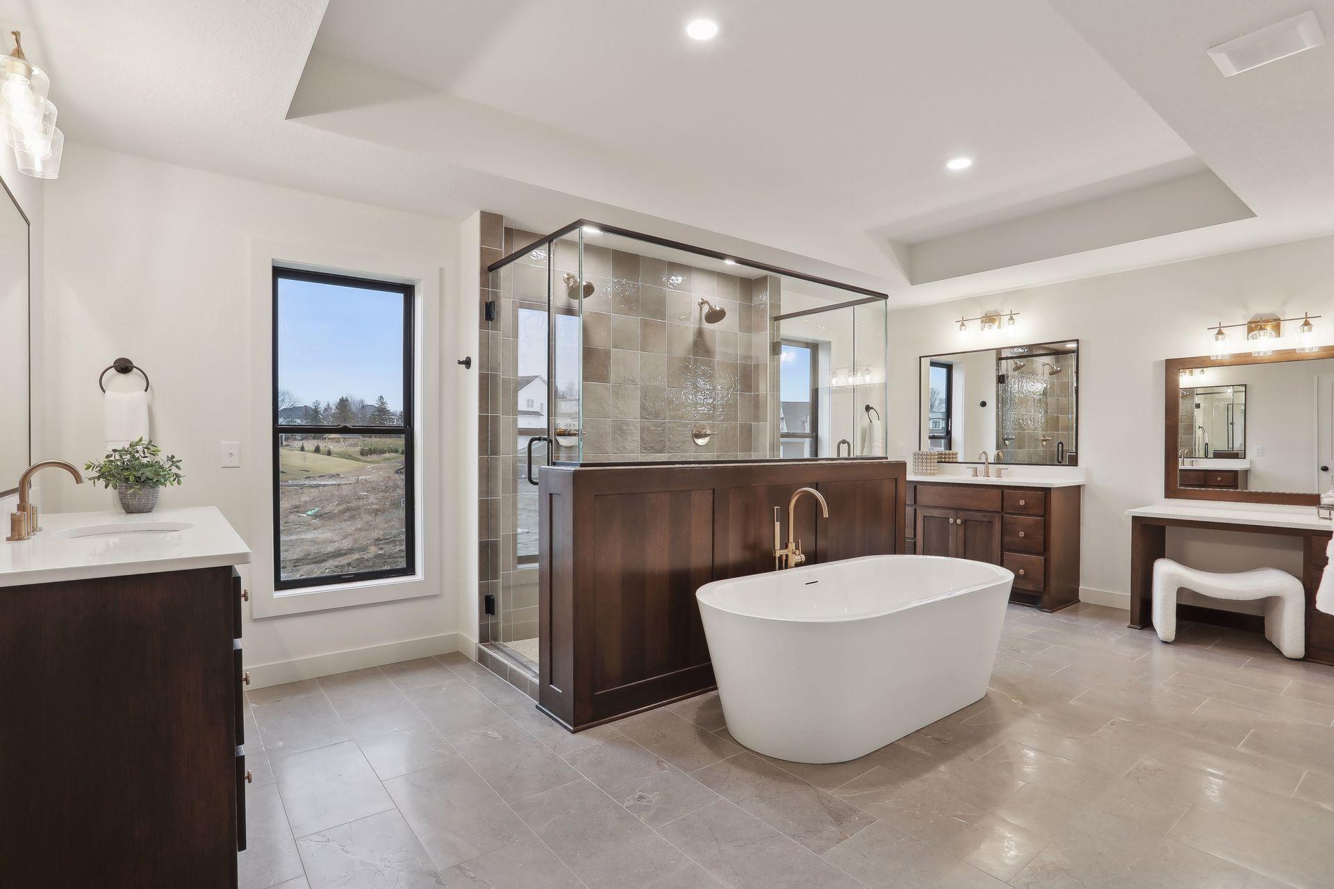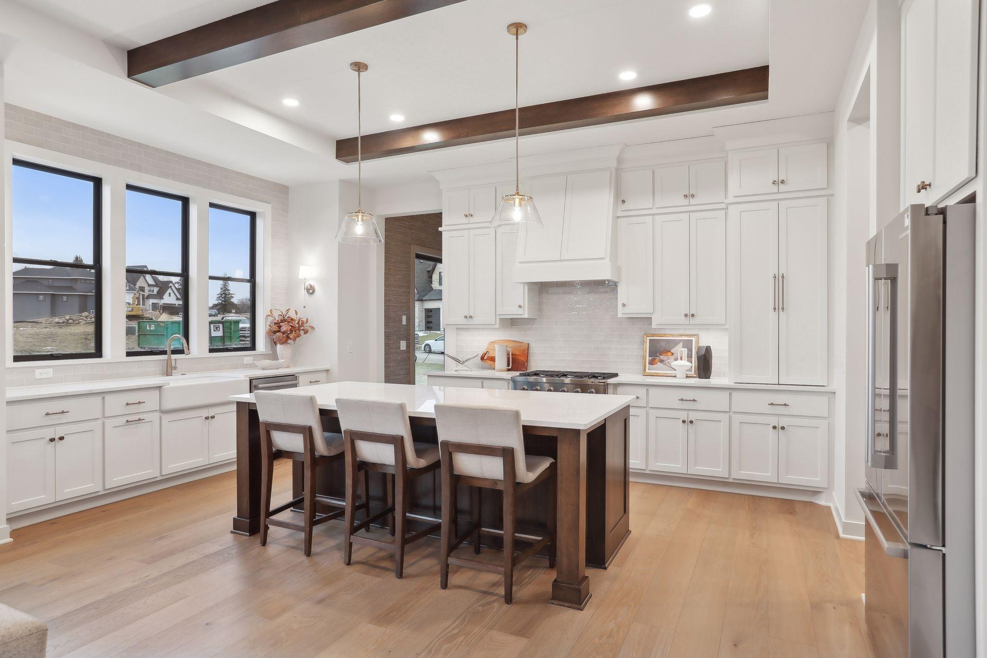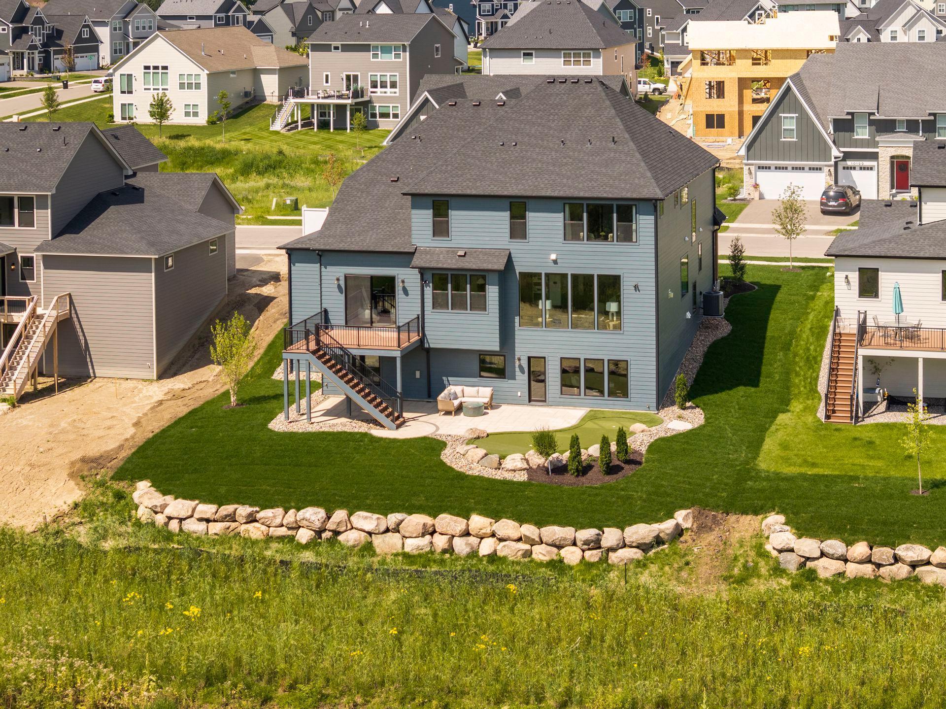 Stunning St. Jude Dream Home by HANSON BUILDERS in Maple Grove’s Evanswood! Nestled among 31 homesites with serene wooded, pond, and creek views, this Sutton Sport model, featured in the 2025 Fall Parade of Homes as a Dream Home, is completed and packed with luxury. Main Level: Soaring 10’ ceilings, wood beams accenting the Great Room and Kitchen, a walk-through prep pantry with built-in coffee machine, spacious walk-in pantry, elegant single Dining area with arched dry bar, and a cozy Sunroom with vaulted ceiling and fireplace. Upper Level: Expansive Great Hall with wood floors, a private Owner’s Suite with spa-inspired bathroom, a Junior Suite with walk-in closet, Jack and Jill bedrooms with separate vanities, a step-down Bonus Room, and a generous Laundry. Lower Level: 862 SQFT Sport Center, Sports Bar, Family Room, and Game area for endless entertainment. Premium features include Marvin Windows, Bosch and Thermador appliances, James Hardie siding, Shaw Flooring, and Brizo faucets. Enjoy the Community Pool and Clubhouse, with a new elementary school coming soon and Maple Grove High School!