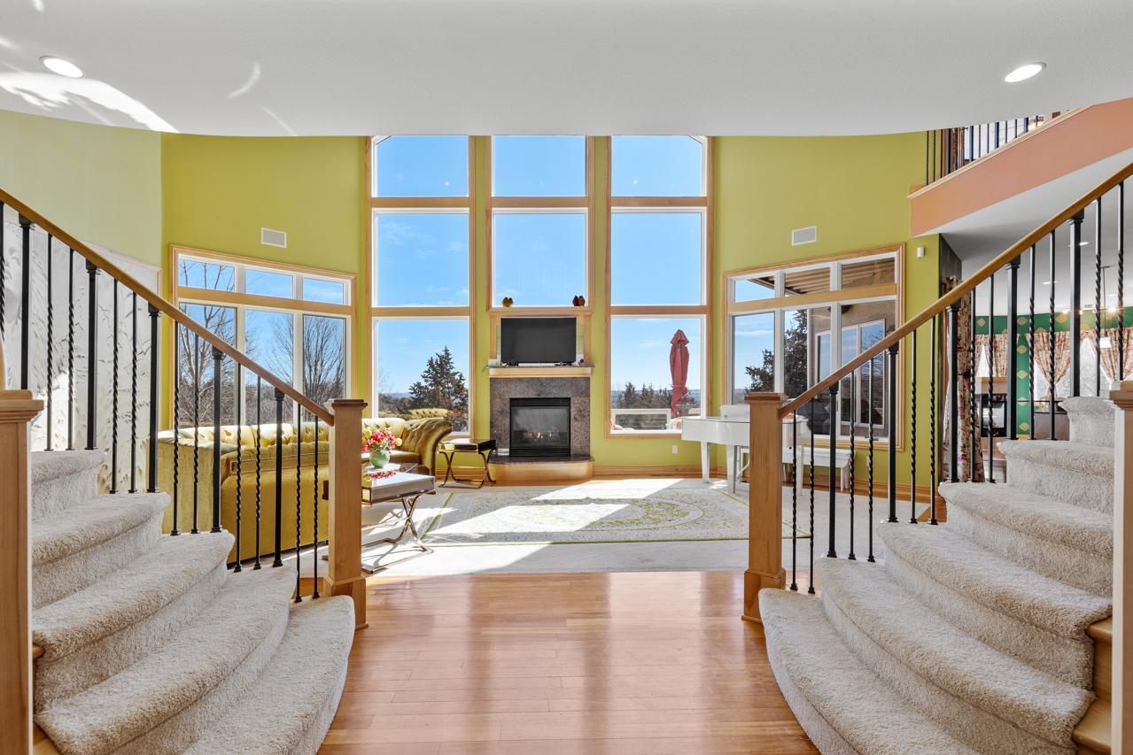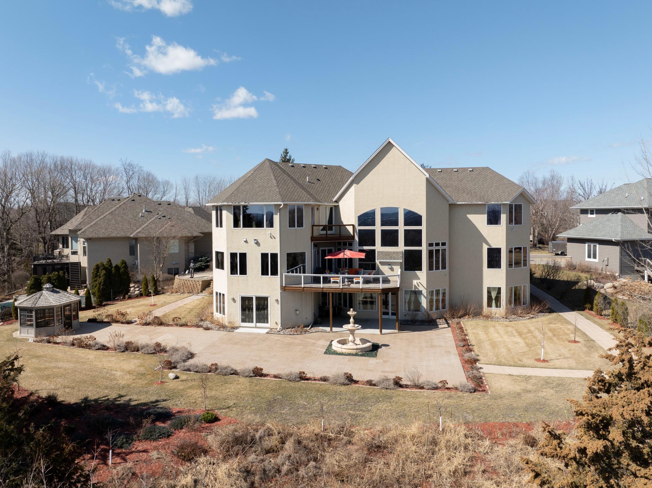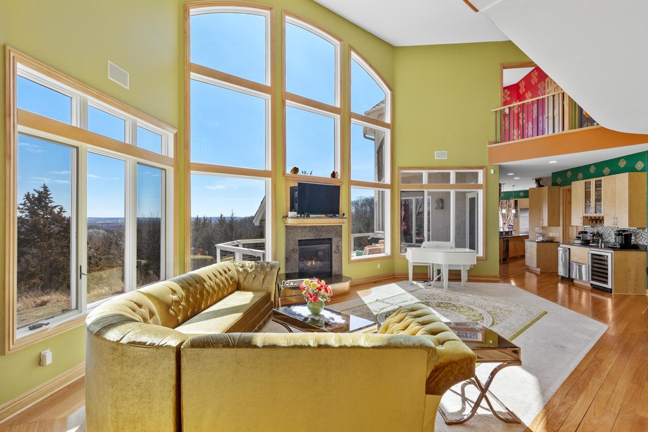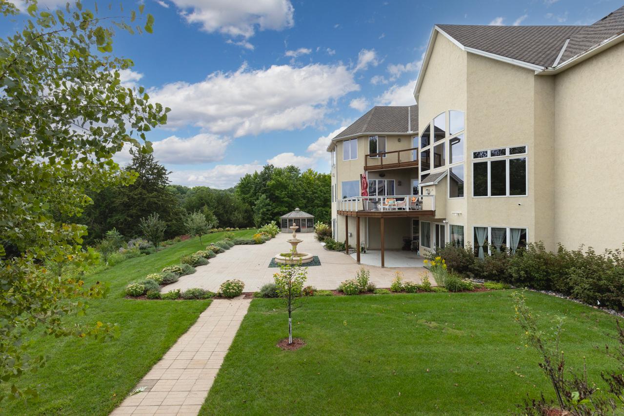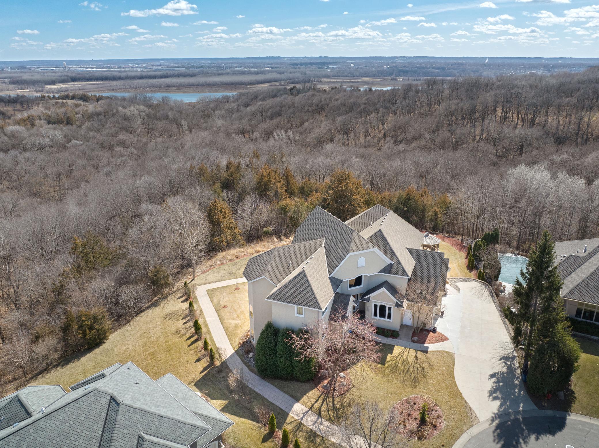 Incredible, tranquil views for miles - undoubtedly the finest bluff view in the neighborhood! Extraordinary gem in the sought-after Settler’s Ridge neighborhood with breathtaking views of the Minnesota River Valley! This exquisite home is perfectly situated on a quiet 1.13-acre overlook cul-de-sac lot with 7,000sqft of stunning living space & remarkable high-end finishes throughout! Stunning panoramic views, a striking wall of windows that floods the space with natural light, astonishing open floor plan with soaring high ceilings seamlessly blending luxury and comfort. Expansive gourmet kitchen with high-end appliances, gleaming hardwood floors, cozy fireplaces, luxurious primary suite with unbelievable, serene views & private deck space. Lots of upgrades inside such as newly painted and stenciled walls, new updated appliances, epoxy floor and cabinetry in garage and gorgeous outside including extension of backyard with newly expansive pavement and walkway area, a large new Gazebo to gather, and serene fountain with enchanted garden and wildflowers, fruit trees and more!! Exceptional walkout lower level with wet bar, wine cellar, spacious living spaces and an impressive vast patio space you must see to believe! This home is an entertainer’s dream-inside & out! Unbelievable home with incredible attention to detail & craftmanship at every angle. This impressive home feels like it’s in a secluded remote area in a superb location with easy access to everything! Convenient location close to parks, trails, schools, shopping, restaurants & more! You’ll love the shared outdoor pool during the warm summer Minnesota months! Prepare to be captivated–this unbelievable home is an experience, inside & out! It’s a unique rare hideaway!