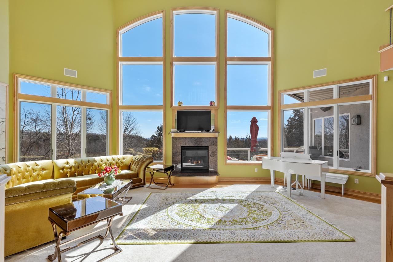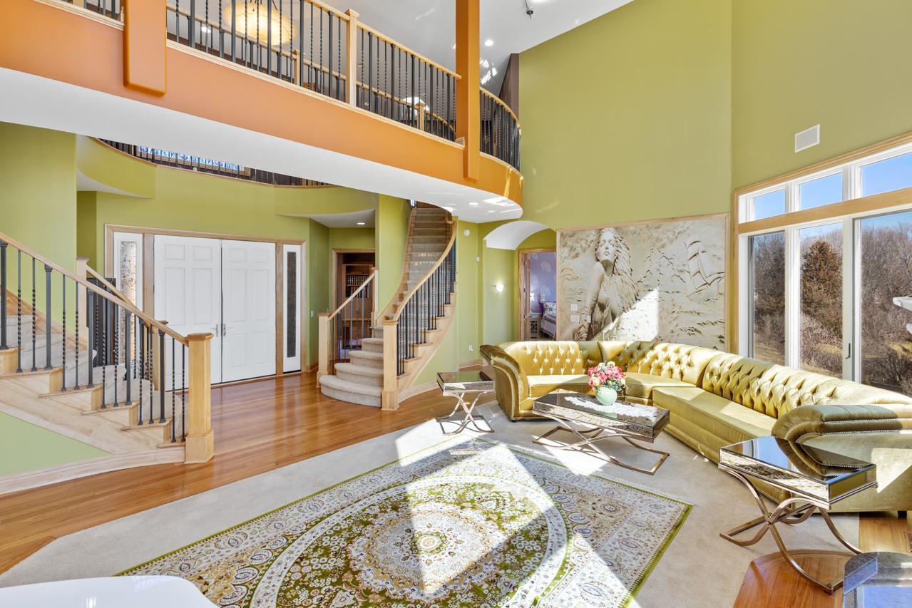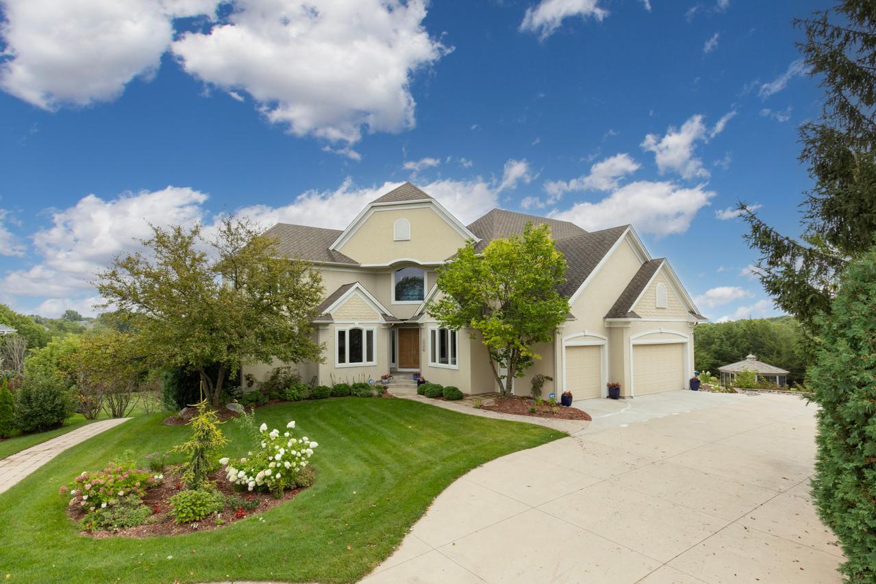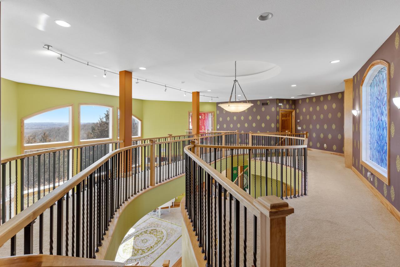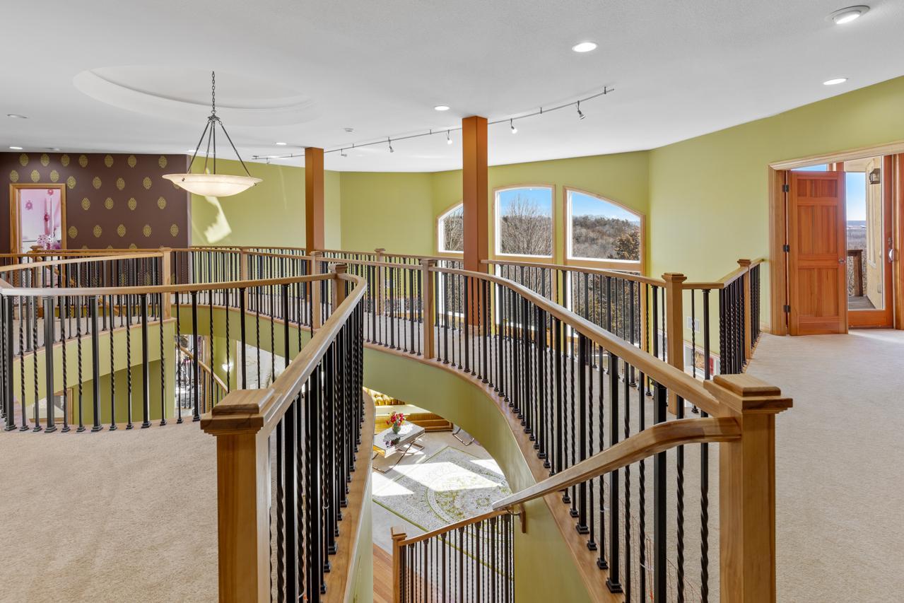 Incredible, tranquil views for miles - undoubtedly the finest bluff view in the neighborhood! Extraordinary gem in the sought-after Settler’s Ridge neighborhood with breathtaking views of the Minnesota River Valley! This exquisite home is perfectly situated on a quiet 1.13-acre overlook cul-de-sac lot with 7,000sqft of stunning living space & remarkable high-end finishes throughout! Stunning panoramic views, a striking wall of windows that floods the space with natural light, astonishing open floor plan with soaring high ceilings seamlessly blending luxury and comfort. Expansive gourmet kitchen with high-end appliances, gleaming hardwood floors, cozy fireplaces, luxurious primary suite with unbelievable, serene views & private deck space. Lots of upgrades inside such as newly painted and stenciled walls, new updated appliances, epoxy floor and cabinetry in garage and gorgeous outside including extension of backyard with newly expansive pavement and walkway area, a large new Gazebo to gather, and serene fountain with enchanted garden and wildflowers, fruit trees and more!! Exceptional walkout lower level with wet bar, wine cellar, spacious living spaces and an impressive vast patio space you must see to believe! This home is an entertainer’s dream-inside & out! Unbelievable home with incredible attention to detail & craftmanship at every angle. This impressive home feels like it’s in a secluded remote area in a superb location with easy access to everything! Convenient location close to parks, trails, schools, shopping, restaurants & more! You’ll love the shared outdoor pool during the warm summer Minnesota months! Prepare to be captivated–this unbelievable home is an experience, inside & out! It’s a unique rare hideaway!