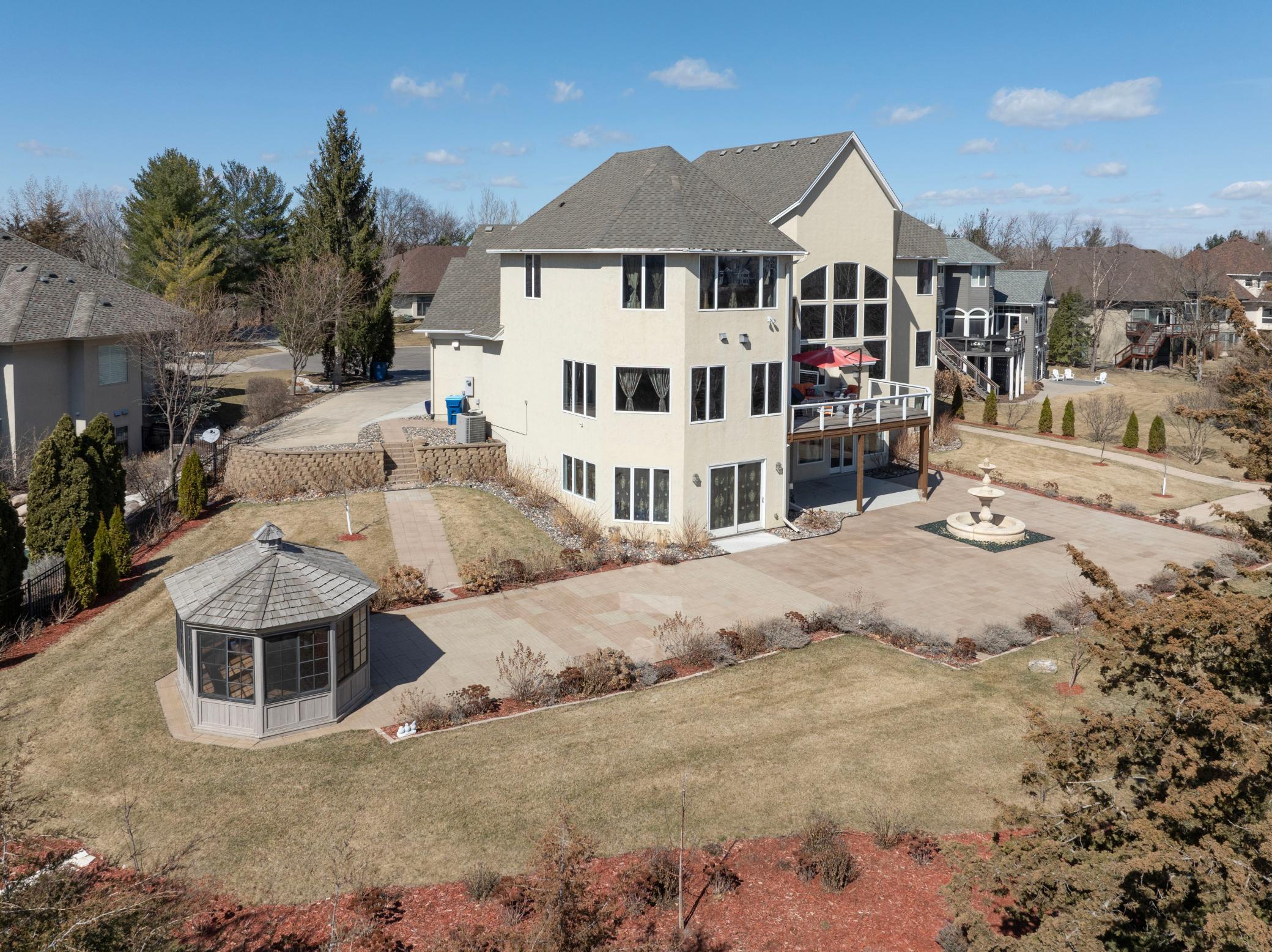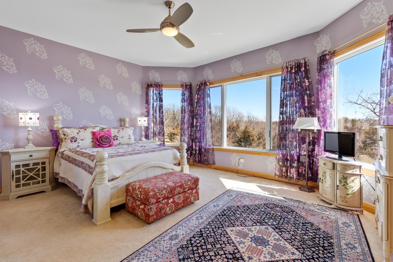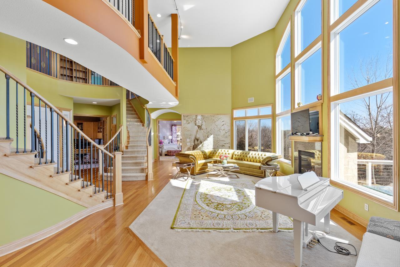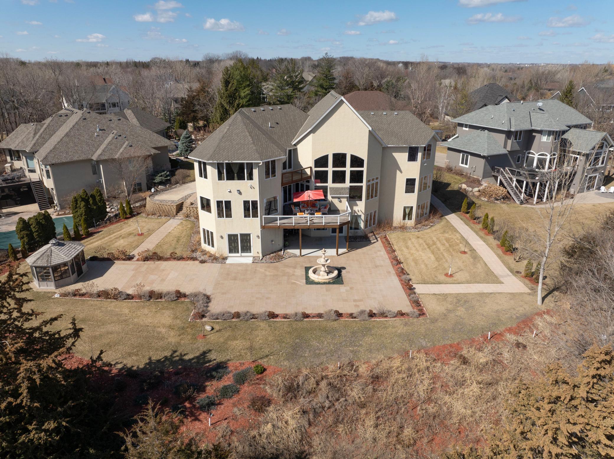 Incredible, tranquil views for miles - undoubtedly the finest bluff view in the neighborhood! Extraordinary gem in the sought-after Settler’s Ridge neighborhood with breathtaking views of the Minnesota River Valley! This exquisite home is perfectly situated on a quiet 1.13-acre overlook cul-de-sac lot with 7,000sqft of stunning living space & remarkable high-end finishes throughout! Stunning panoramic views, a striking wall of windows that floods the space with natural light, astonishing open floor plan with soaring high ceilings seamlessly blending luxury and comfort. Expansive gourmet kitchen with high-end appliances, gleaming hardwood floors, cozy fireplaces, luxurious primary suite with unbelievable, serene views & private deck space. Lots of upgrades inside such as newly painted and stenciled walls, new updated appliances, epoxy floor and cabinetry in garage and gorgeous outside including extension of backyard with newly expansive pavement and walkway area, a large new Gazebo to gather, and serene fountain with enchanted garden and wildflowers, fruit trees and more!! Exceptional walkout lower level with wet bar, wine cellar, spacious living spaces and an impressive vast patio space you must see to believe! This home is an entertainer’s dream-inside & out! Unbelievable home with incredible attention to detail & craftmanship at every angle. This impressive home feels like it’s in a secluded remote area in a superb location with easy access to everything! Convenient location close to parks, trails, schools, shopping, restaurants & more! You’ll love the shared outdoor pool during the warm summer Minnesota months! Prepare to be captivated–this unbelievable home is an experience, inside & out! It’s a unique rare hideaway!