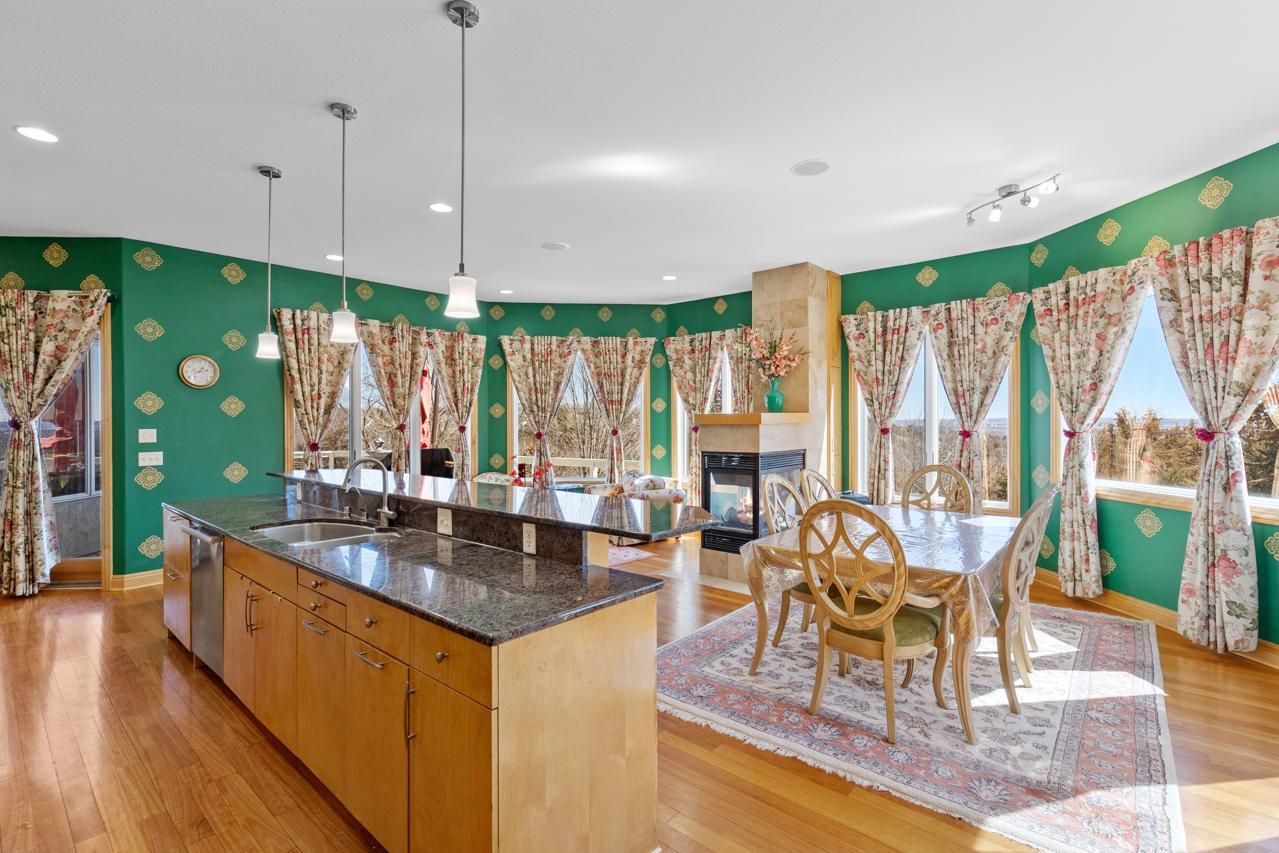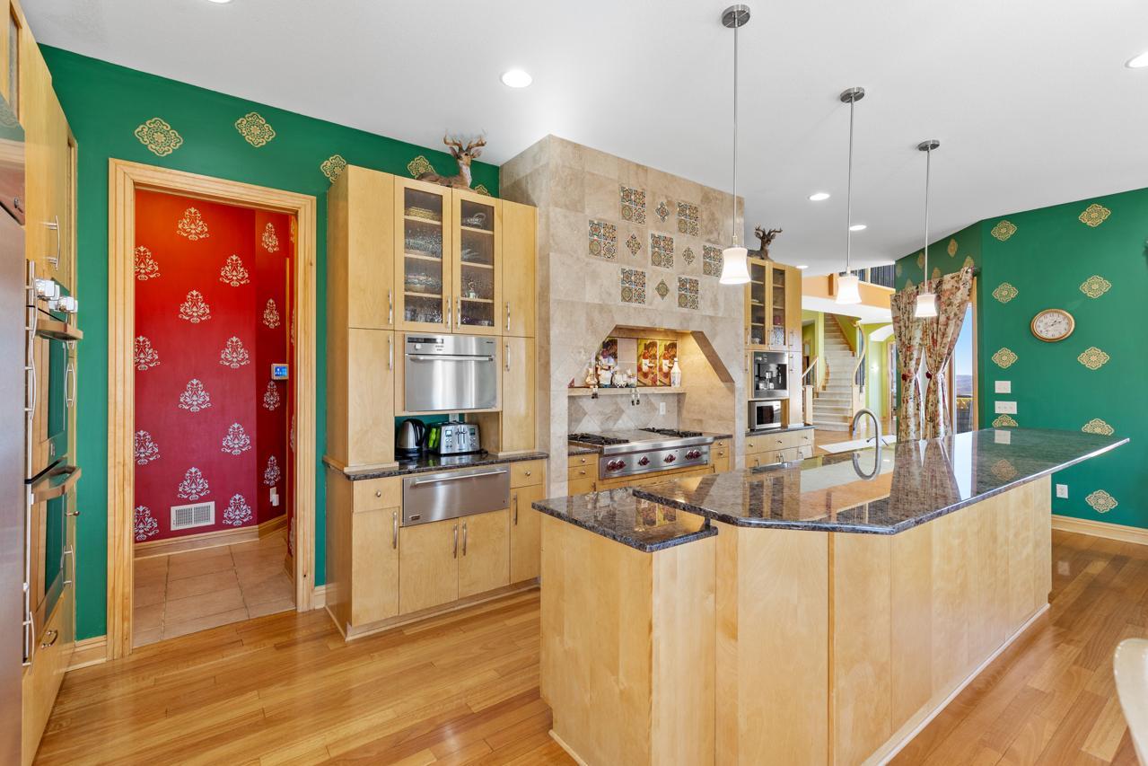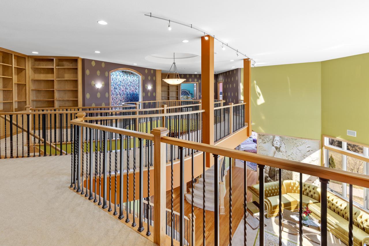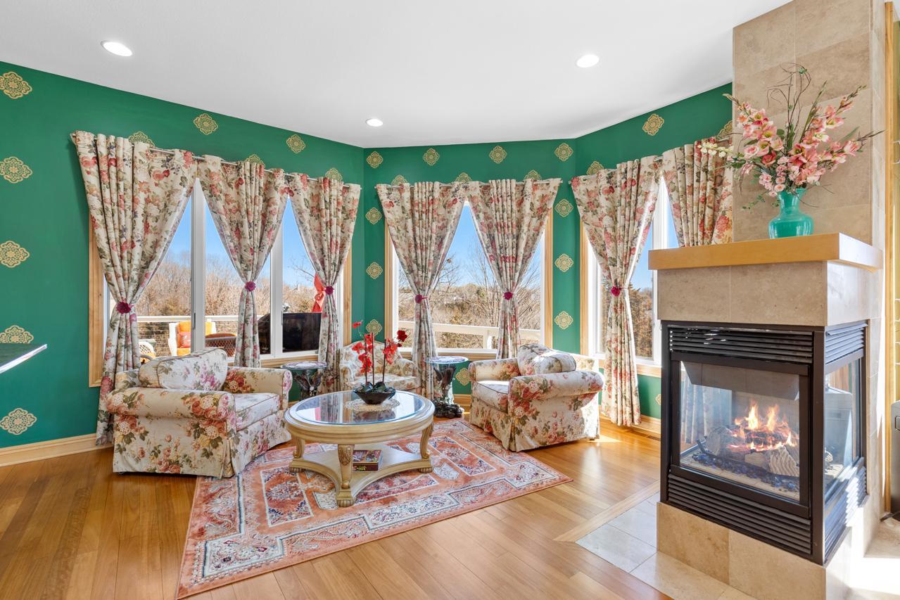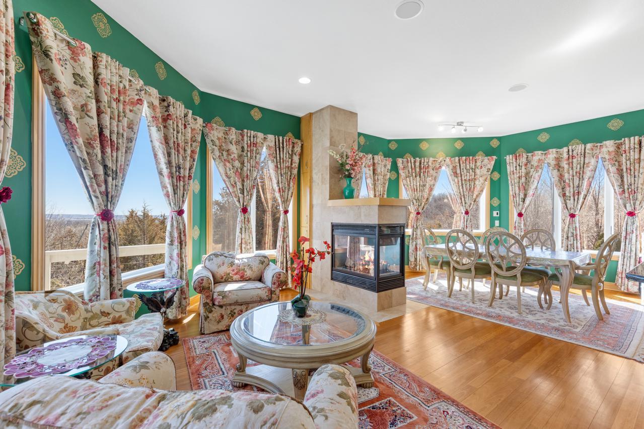 Incredible, tranquil views for miles - undoubtedly the finest bluff view in the neighborhood! Extraordinary gem in the sought-after Settler’s Ridge neighborhood with breathtaking views of the Minnesota River Valley! This exquisite home is perfectly situated on a quiet 1.13-acre overlook cul-de-sac lot with 7,000sqft of stunning living space & remarkable high-end finishes throughout! Stunning panoramic views, a striking wall of windows that floods the space with natural light, astonishing open floor plan with soaring high ceilings seamlessly blending luxury and comfort. Expansive gourmet kitchen with high-end appliances, gleaming hardwood floors, cozy fireplaces, luxurious primary suite with unbelievable, serene views & private deck space. Lots of upgrades inside such as newly painted and stenciled walls, new updated appliances, epoxy floor and cabinetry in garage and gorgeous outside including extension of backyard with newly expansive pavement and walkway area, a large new Gazebo to gather, and serene fountain with enchanted garden and wildflowers, fruit trees and more!! Exceptional walkout lower level with wet bar, wine cellar, spacious living spaces and an impressive vast patio space you must see to believe! This home is an entertainer’s dream-inside & out! Unbelievable home with incredible attention to detail & craftmanship at every angle. This impressive home feels like it’s in a secluded remote area in a superb location with easy access to everything! Convenient location close to parks, trails, schools, shopping, restaurants & more! You’ll love the shared outdoor pool during the warm summer Minnesota months! Prepare to be captivated–this unbelievable home is an experience, inside & out! It’s a unique rare hideaway!