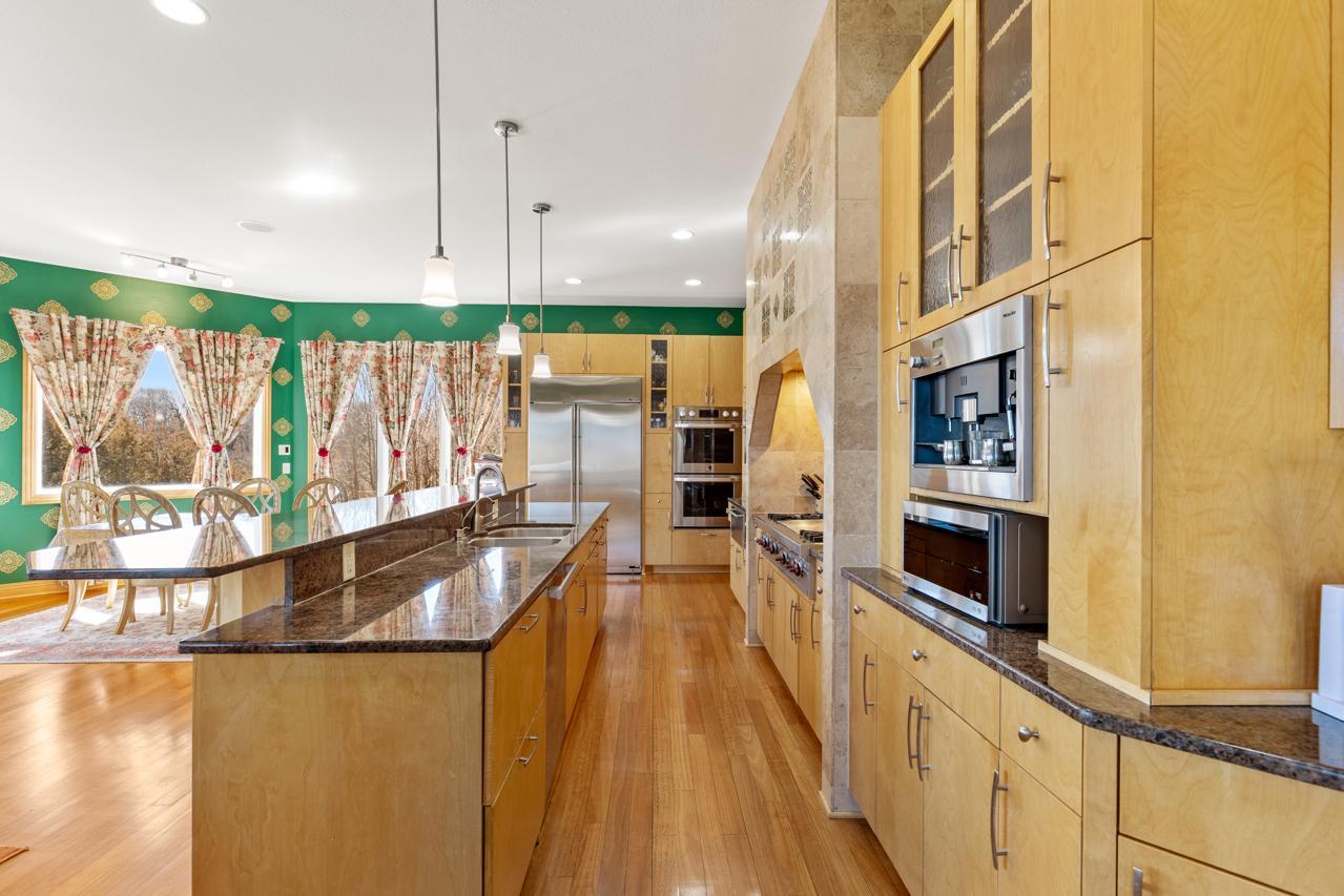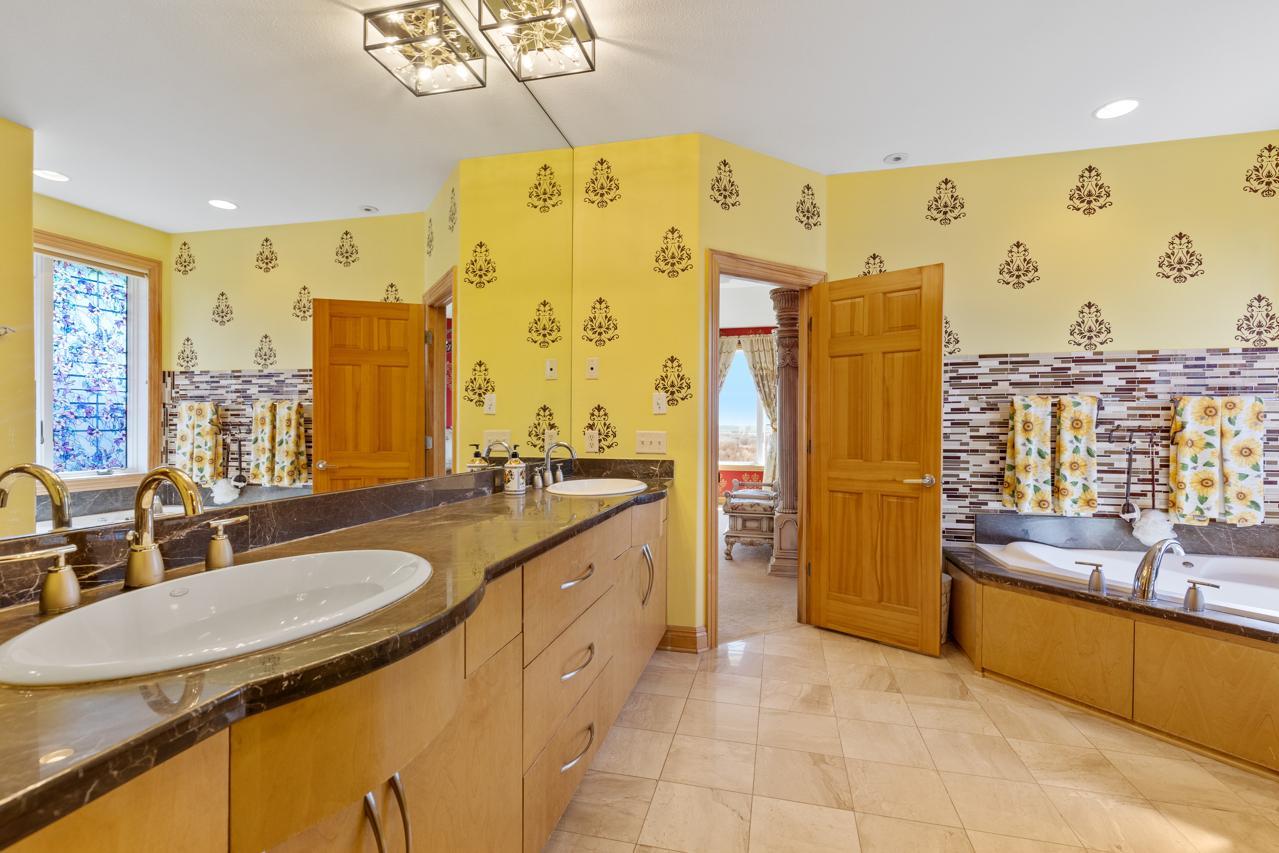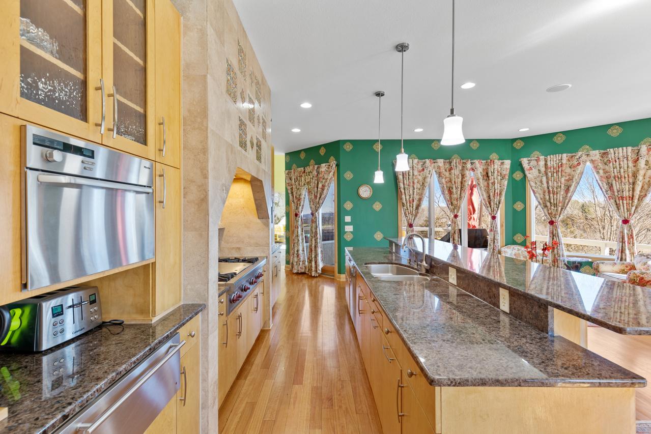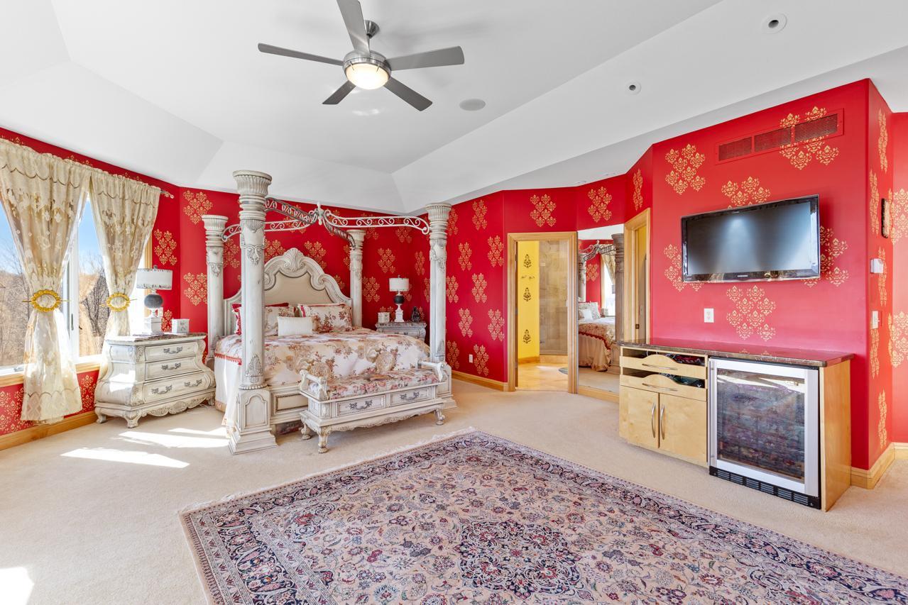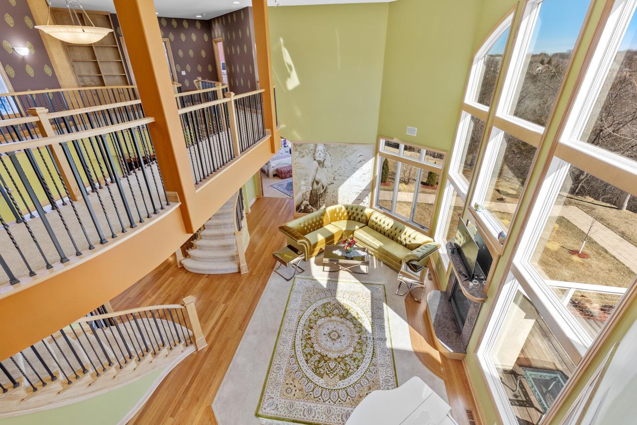 Incredible, tranquil views for miles - undoubtedly the finest bluff view in the neighborhood! Extraordinary gem in the sought-after Settler’s Ridge neighborhood with breathtaking views of the Minnesota River Valley! This exquisite home is perfectly situated on a quiet 1.13-acre overlook cul-de-sac lot with 7,000sqft of stunning living space & remarkable high-end finishes throughout! Stunning panoramic views, a striking wall of windows that floods the space with natural light, astonishing open floor plan with soaring high ceilings seamlessly blending luxury and comfort. Expansive gourmet kitchen with high-end appliances, gleaming hardwood floors, cozy fireplaces, luxurious primary suite with unbelievable, serene views & private deck space. Lots of upgrades inside such as newly painted and stenciled walls, new updated appliances, epoxy floor and cabinetry in garage and gorgeous outside including extension of backyard with newly expansive pavement and walkway area, a large new Gazebo to gather, and serene fountain with enchanted garden and wildflowers, fruit trees and more!! Exceptional walkout lower level with wet bar, wine cellar, spacious living spaces and an impressive vast patio space you must see to believe! This home is an entertainer’s dream-inside & out! Unbelievable home with incredible attention to detail & craftmanship at every angle. This impressive home feels like it’s in a secluded remote area in a superb location with easy access to everything! Convenient location close to parks, trails, schools, shopping, restaurants & more! You’ll love the shared outdoor pool during the warm summer Minnesota months! Prepare to be captivated–this unbelievable home is an experience, inside & out! It’s a unique rare hideaway!