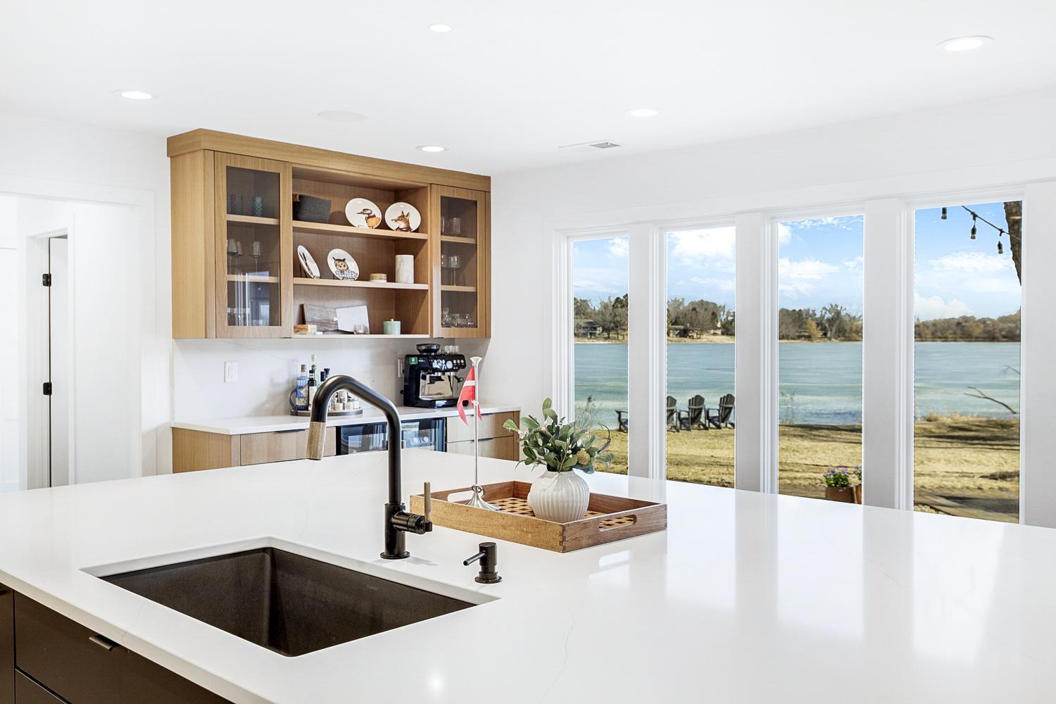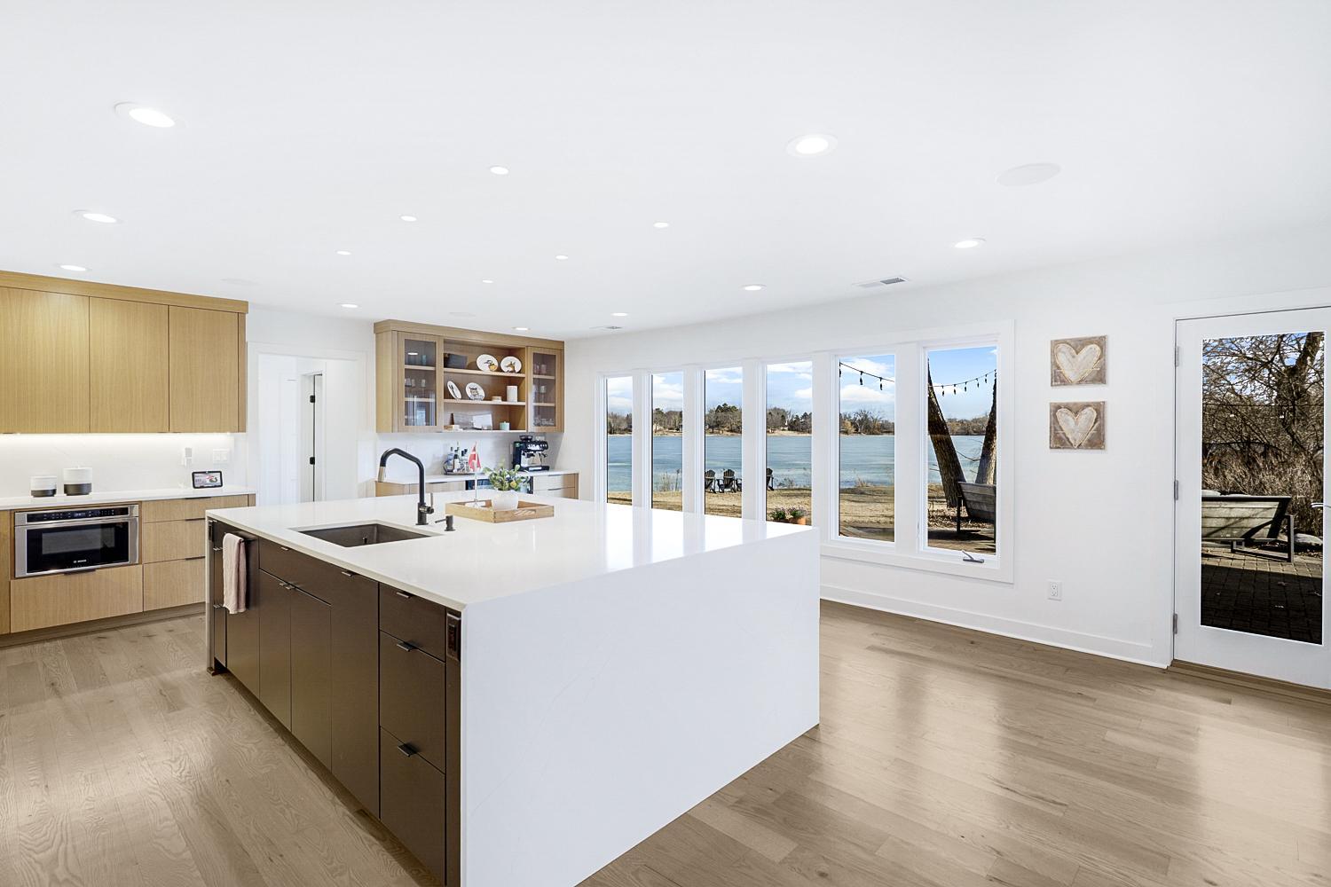 The home features a spacious three-car garage for ample parking and storage, while a separate artist studio offers an inspiring lakeside space ideal for creativity, remote work, or a private retreat. Floor-to-ceiling windows and an open-concept layout highlight breathtaking lake views from nearly every room, creating a seamless flow between indoor and outdoor living.