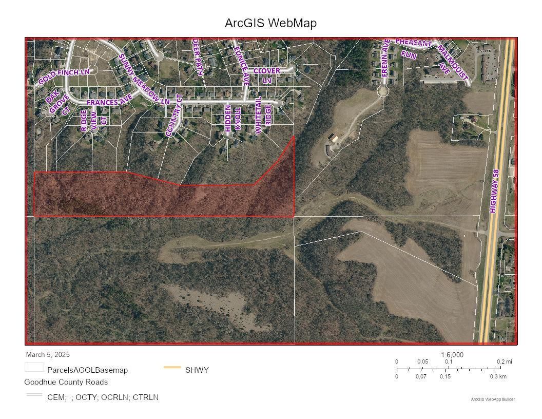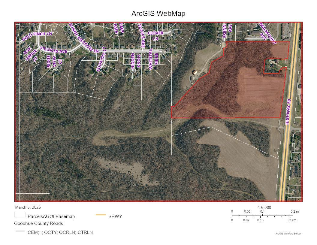 Great development opportunity on the outskirts of the city of Red Wing near the high school and tech college and convenient to downtown! 3 parcels totaling 83.51 acres with northern 67.9 acres within the city limits and southern 15.61 acres in Hay Creek Township. Currently zoned agricultural with survey completed for the 15.61 acres and the other 67.9 acres is platted. See supplements for the survey and also Sunny Meadow additions that border the westerly parcel to the north. City water and sewer is available. Main development parcel is accessible from Hwy. 58 and city streets. Loads of potential with wooded acreage for hiking trails and open pasture/tillable acreage for a housing development, whether it's several homes on large acreage parcels or multiple homes! Could also be a private santuary for your personal use such as hobby farm or hunter's paradise!