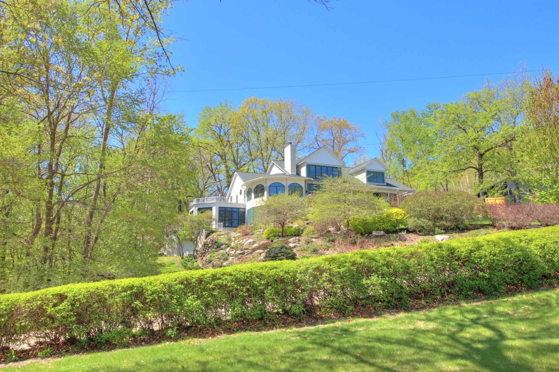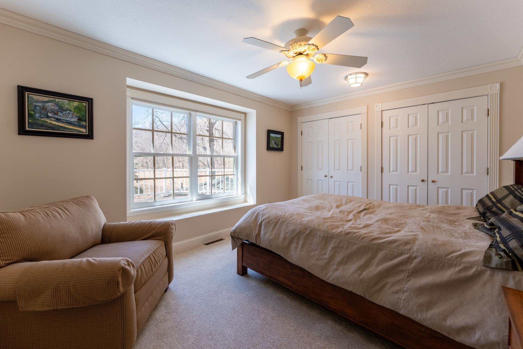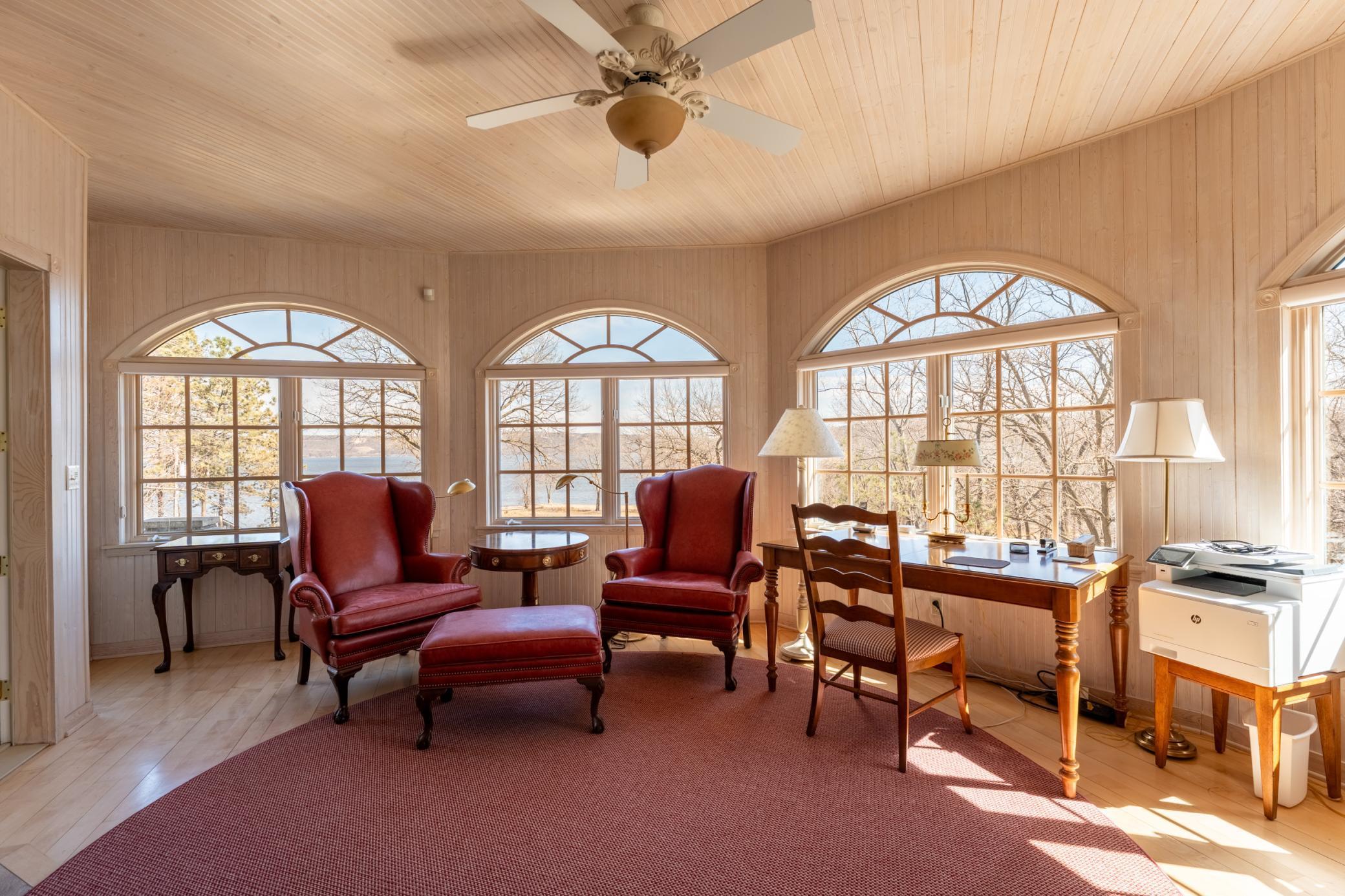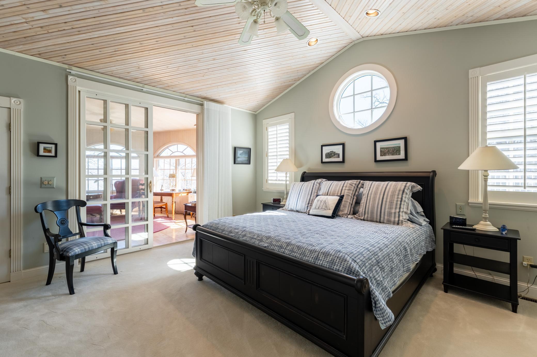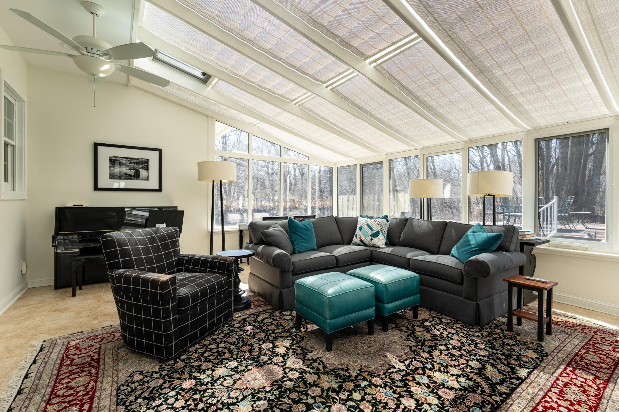 An amazing opportunity to own this 3.68-acre Old Frontenac estate with over 200 ft of sandy beach frontage on gorgeous Lake Pepin/Mississippi River. Ennjoy fishing, swimming, boating, kayaking and more right out your front door. Your backyard is 2600 acre Frontenac State Park that includes 17 miles of hiking and cross country ski trails, camping and the highest bird species count of any park in the state. Custom designed 4 bedroom, 4 bath home with over 5200 sq. ft. of finished living space and panoramic river and bluff land views. Main level includes a vaulted living room with fireplace and floor to ceiling windows, a formal dining room, library, a sun-filled conservatory with in-floor heat, auto ceiling blinds and a gas fireplace, eat-in kitchen with center island/breakfast bar, informal dining with a wood burning fireplace and built in desk, primary bedroom suite with multiple closets and a full bath with hot tub, adjacent sun room/office with fireplace, 1/2 bath, foyer and mud room. Mudroom has space for future washer/dryer but hookups are not yet installed. Upper level includes 3 bedrooms and a 3/4 bath with tiled shower. In the lower level, you'll find family room/den with a beautiful built-in entertainment center, 3/4 bath, a billiards room with gas fireplace, laundry, storage, and utility room. Attached 2 car garage with a 3rd (tuck-under, insulated and heated) garage with plenty of space (504 sq. ft.) for additional toys and workshop. Front, rear and side stone patio areas and a dining deck. Private and wooded backyard with attractive landscaping, rock garden, fountain, and rock steps. Front yard is an expansive 3 acre lawn that rolls gently down to over 200 ft. of sandy beach shoreline with phenomenal views in all directions. You also have the privilege of watching an active bald eagle nest high in a tree close to the water. 1 hour to MSP; 40 minutes to Rochester. Surrounded by Frontenac State Park and Lake Pepin, Old Frontenac was founded in the 1850s and retains a gentle, peaceful ambience of the past. This property offers a quiet and private lifestyle in a charming, unique and historic community.