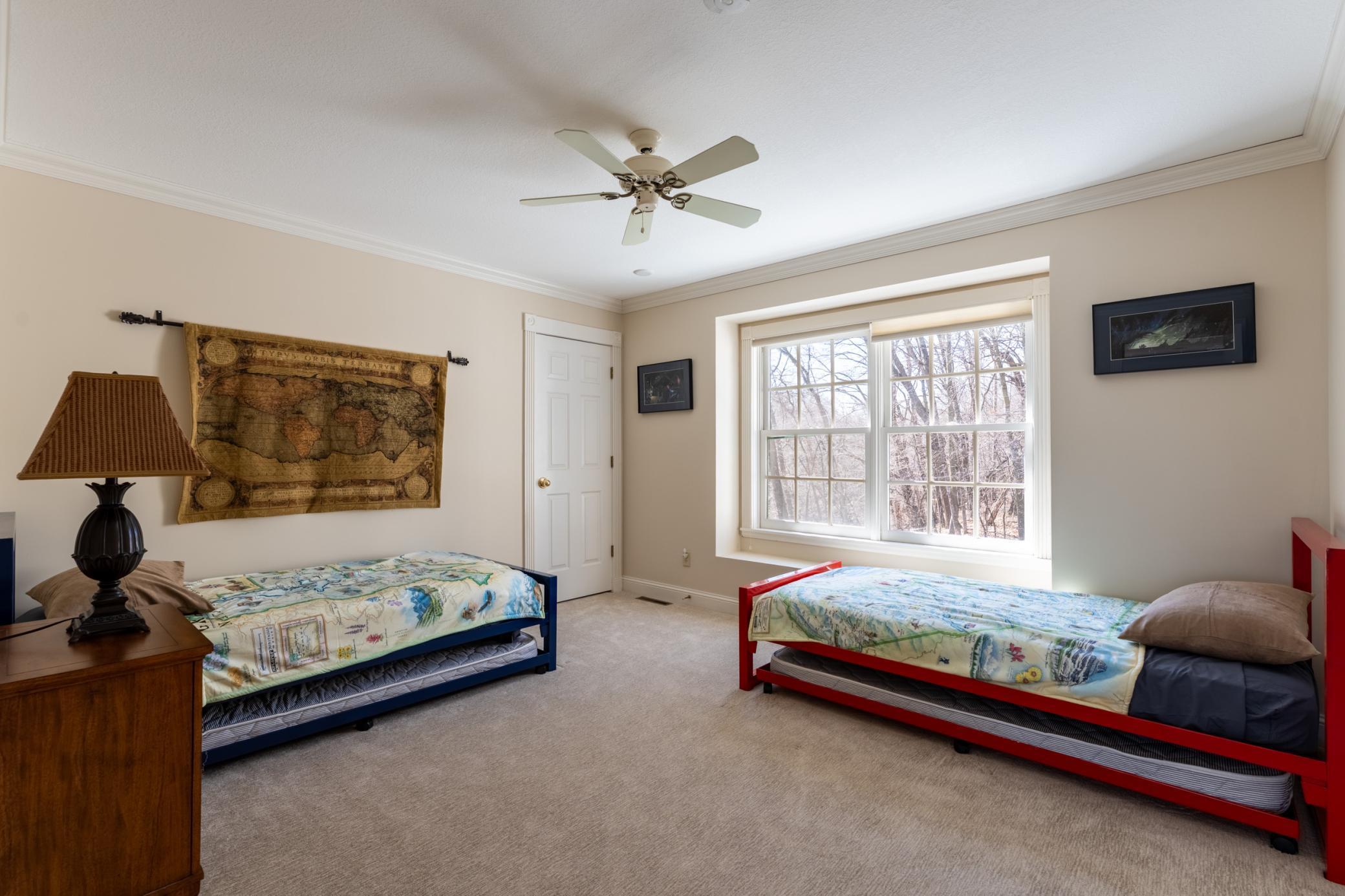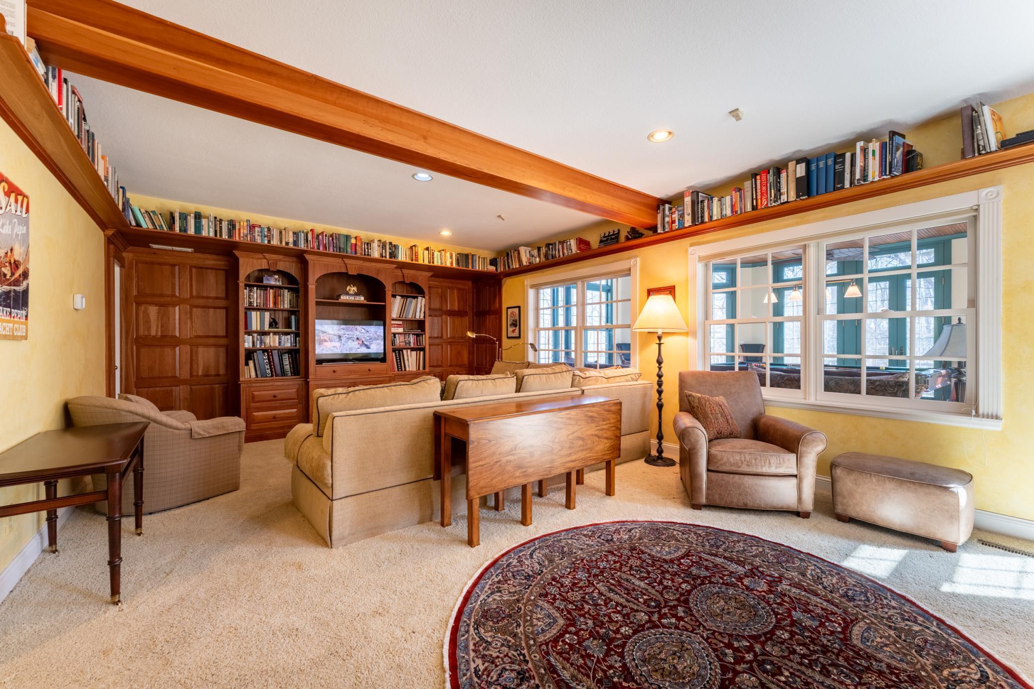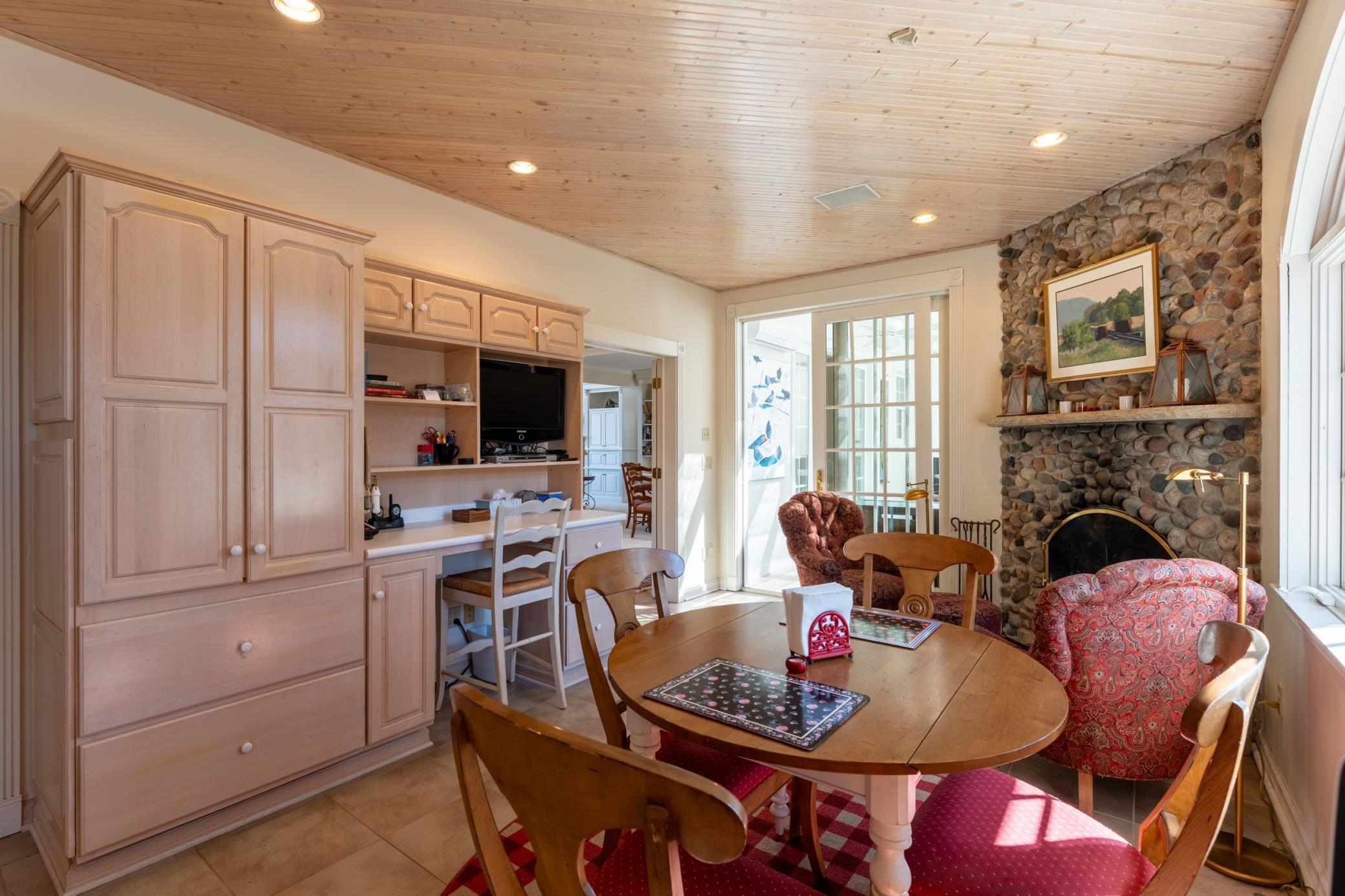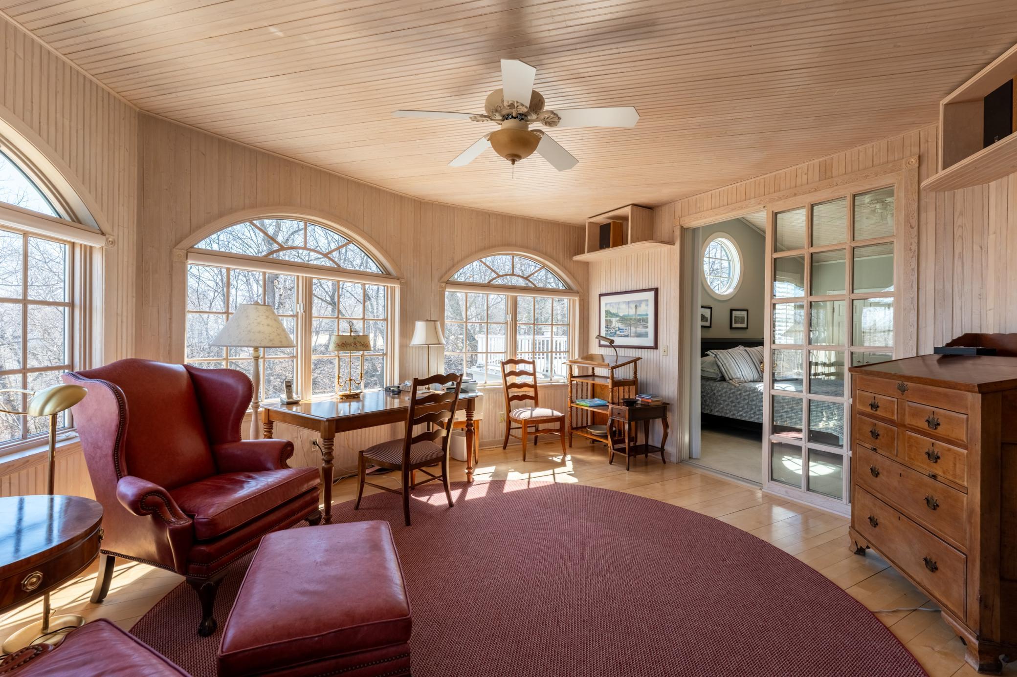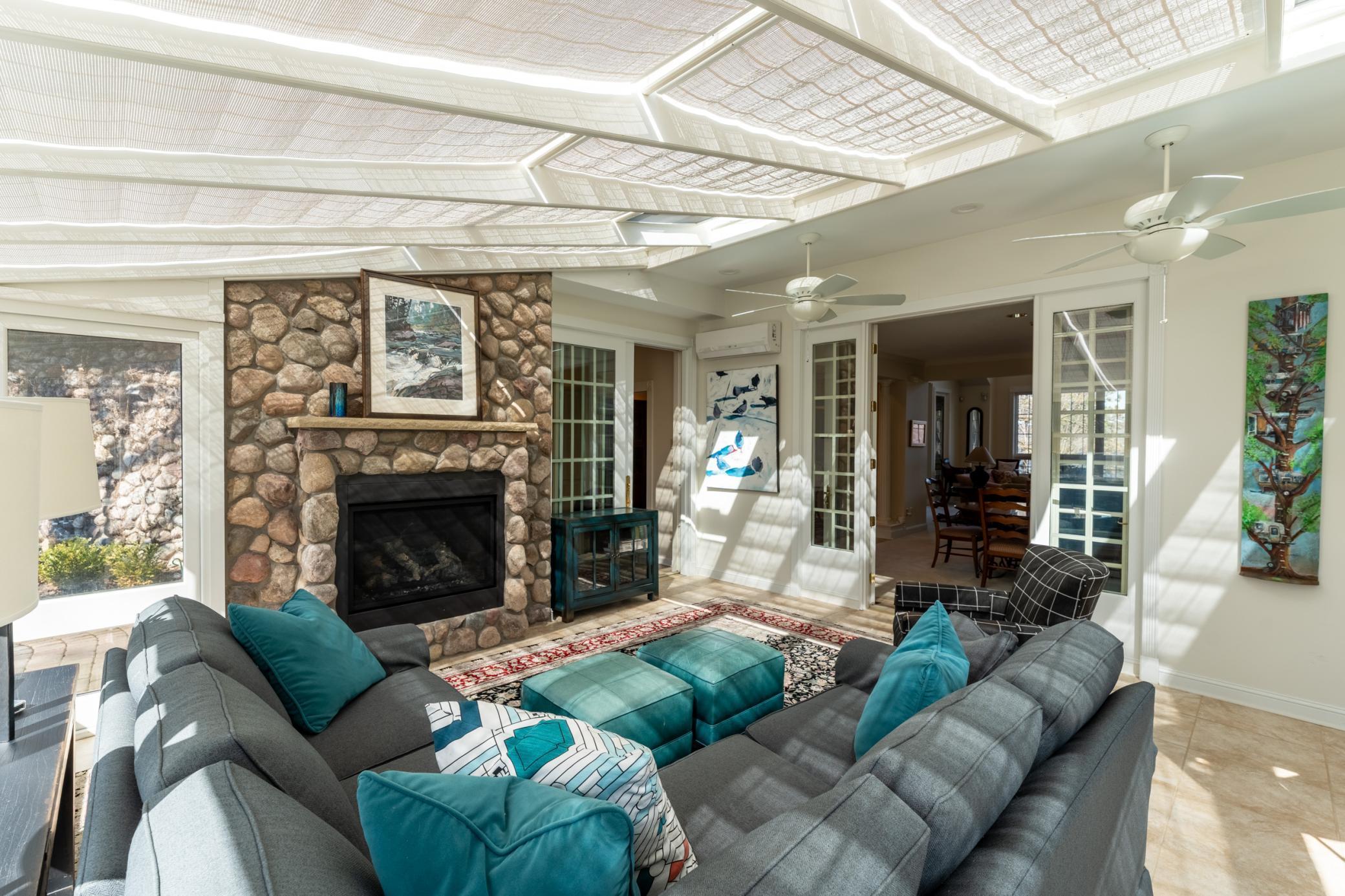 An amazing opportunity to own this 3.68-acre Old Frontenac estate with over 200 ft of sandy beach frontage on gorgeous Lake Pepin/Mississippi River. Ennjoy fishing, swimming, boating, kayaking and more right out your front door. Your backyard is 2600 acre Frontenac State Park that includes 17 miles of hiking and cross country ski trails, camping and the highest bird species count of any park in the state. Custom designed 4 bedroom, 4 bath home with over 5200 sq. ft. of finished living space and panoramic river and bluff land views. Main level includes a vaulted living room with fireplace and floor to ceiling windows, a formal dining room, library, a sun-filled conservatory with in-floor heat, auto ceiling blinds and a gas fireplace, eat-in kitchen with center island/breakfast bar, informal dining with a wood burning fireplace and built in desk, primary bedroom suite with multiple closets and a full bath with hot tub, adjacent sun room/office with fireplace, 1/2 bath, foyer and mud room. Mudroom has space for future washer/dryer but hookups are not yet installed. Upper level includes 3 bedrooms and a 3/4 bath with tiled shower. In the lower level, you'll find family room/den with a beautiful built-in entertainment center, 3/4 bath, a billiards room with gas fireplace, laundry, storage, and utility room. Attached 2 car garage with a 3rd (tuck-under, insulated and heated) garage with plenty of space (504 sq. ft.) for additional toys and workshop. Front, rear and side stone patio areas and a dining deck. Private and wooded backyard with attractive landscaping, rock garden, fountain, and rock steps. Front yard is an expansive 3 acre lawn that rolls gently down to over 200 ft. of sandy beach shoreline with phenomenal views in all directions. You also have the privilege of watching an active bald eagle nest high in a tree close to the water. 1 hour to MSP; 40 minutes to Rochester. Surrounded by Frontenac State Park and Lake Pepin, Old Frontenac was founded in the 1850s and retains a gentle, peaceful ambience of the past. This property offers a quiet and private lifestyle in a charming, unique and historic community.