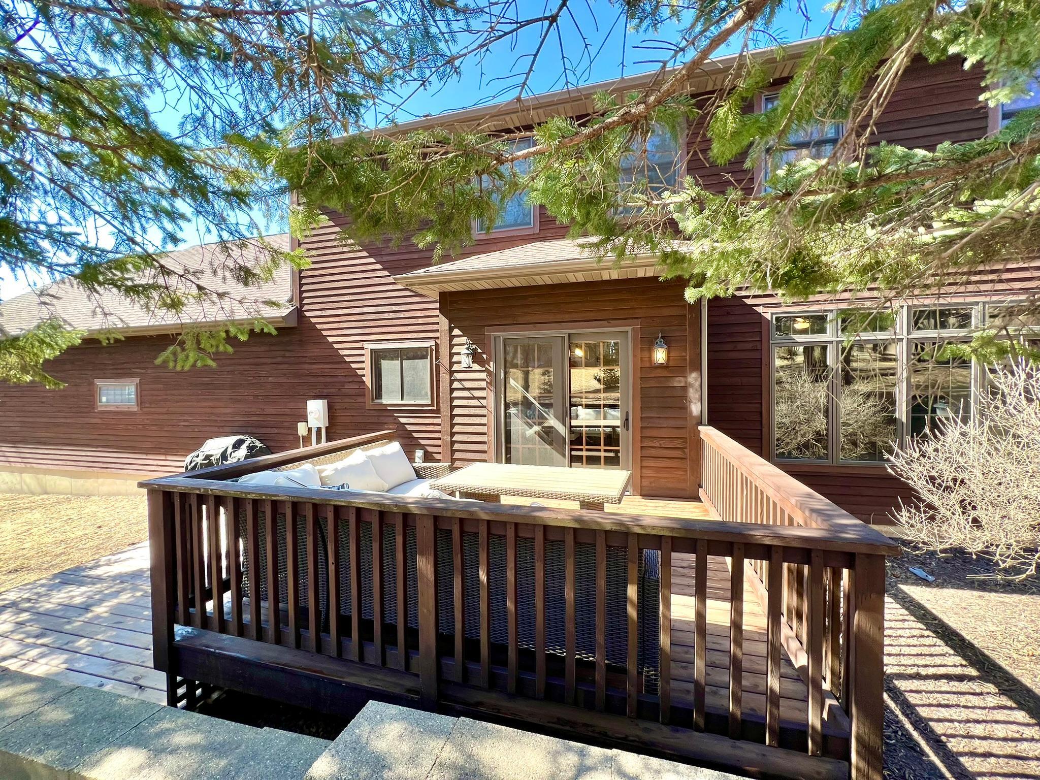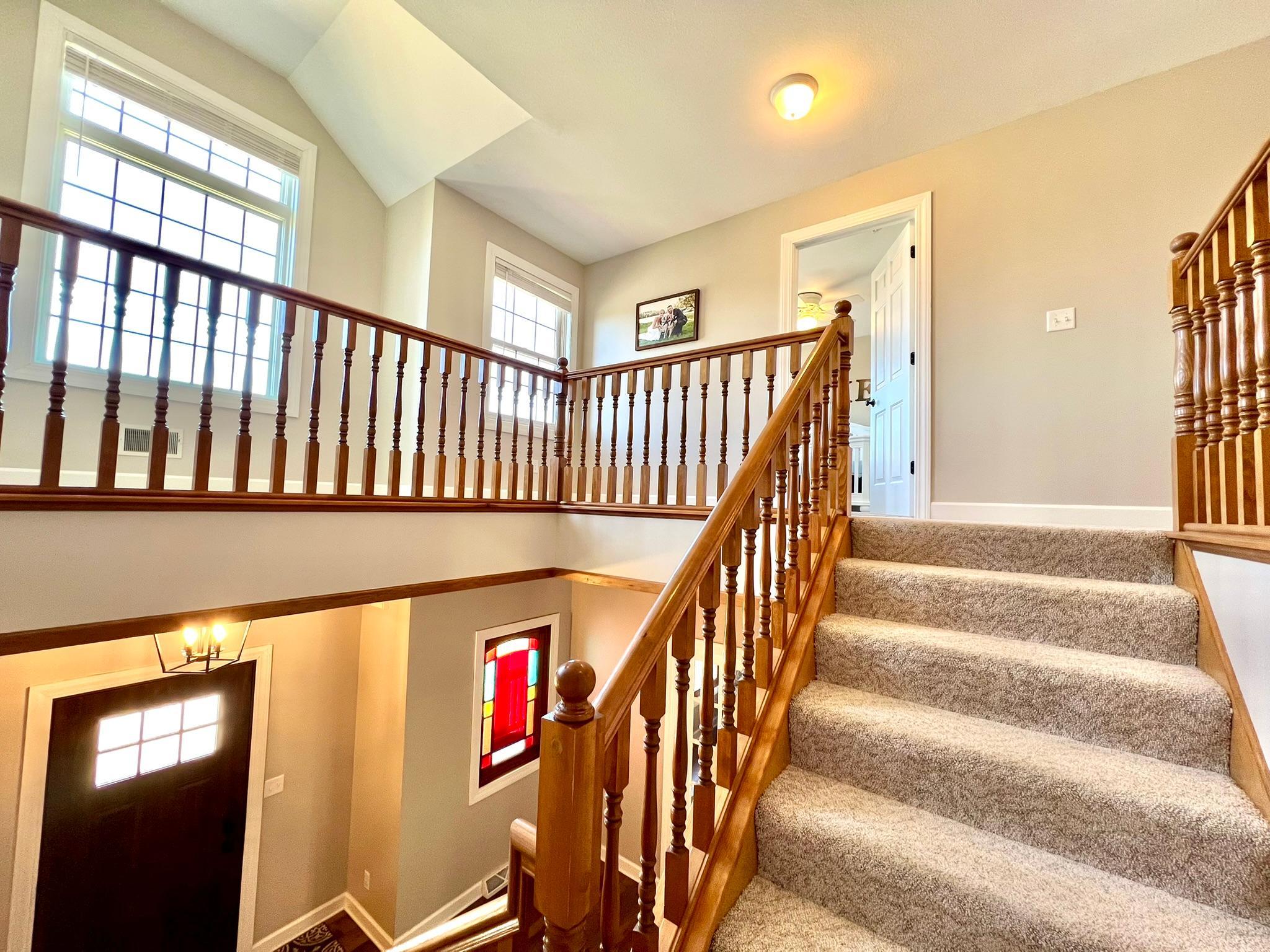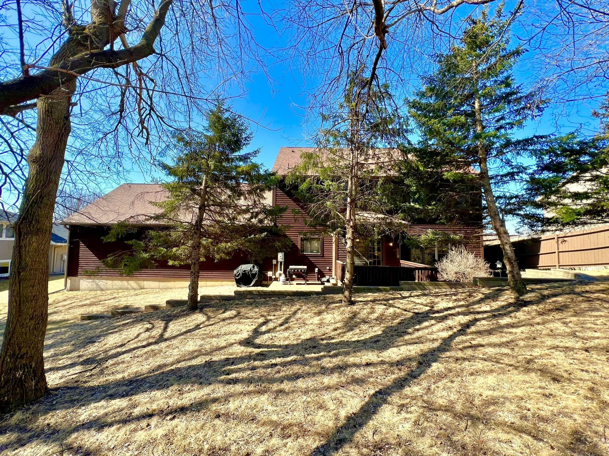 Beautifully remodeled 2-story home with 4 bedrooms and 3 1/2 baths features stylish and classy decor! You will love the numerous updates, open great room and kitchen concept, light and bright rooms and wonderful floor plan. From the moment you arrive, the instant appeal of the large front porch and natural Redwood siding draws you right in. As you enter, there's a welcoming 2-story entry with open staircase to the upper level. The main level features an office/den with French doors, newly remodeled great room and kitchen area with island seating, dining room, laundry room, back entry with siting area, 1/2 bath and two-tiered deck. Upstairs, you'll find a lovely owner's bedroom suite with a large walk-in closet and private full bath. Plus, 3 more bedrooms, a walk-thru full bath and a sitting area/landing that would be a perfect nook for reading or computer work. The expansive lower level is versatile and currently has an exercise area, game room and family room with new barn doors to a storage area and glass doors to a large closet. Plus, a 4th newly finished 3/4 bathroom. The 3 car garage is divided into a 2 car space with sealed flooring and finished walls and a 3rd stall currently used for storage. Welcome to your new dream home! List of updates by owners since 2022: New sidewalk, front door, luxury vinyl plank through main level and all bathrooms, lighting fixtures, appliances, painted whole house (walls, doors and trim), granite countertops in kitchen, new countertop in laundry room, new 3/4 bathroom in basement, tore down wall between kitchen and living room, new toilets in all bathrooms, carpet throughout, epoxy garage floor 2024, updated landscaping, cleaned up backyard brush to usable grass, new water heater 2022.