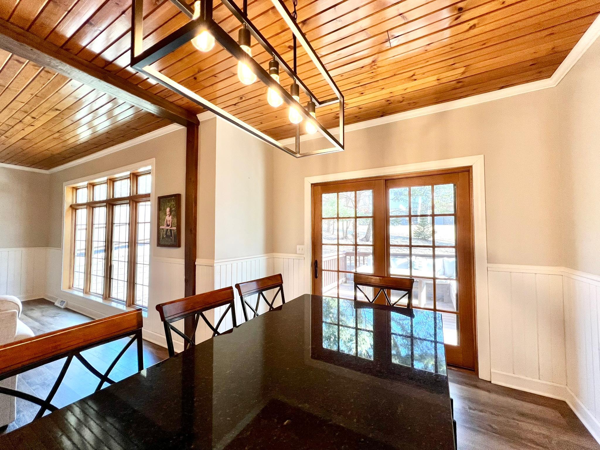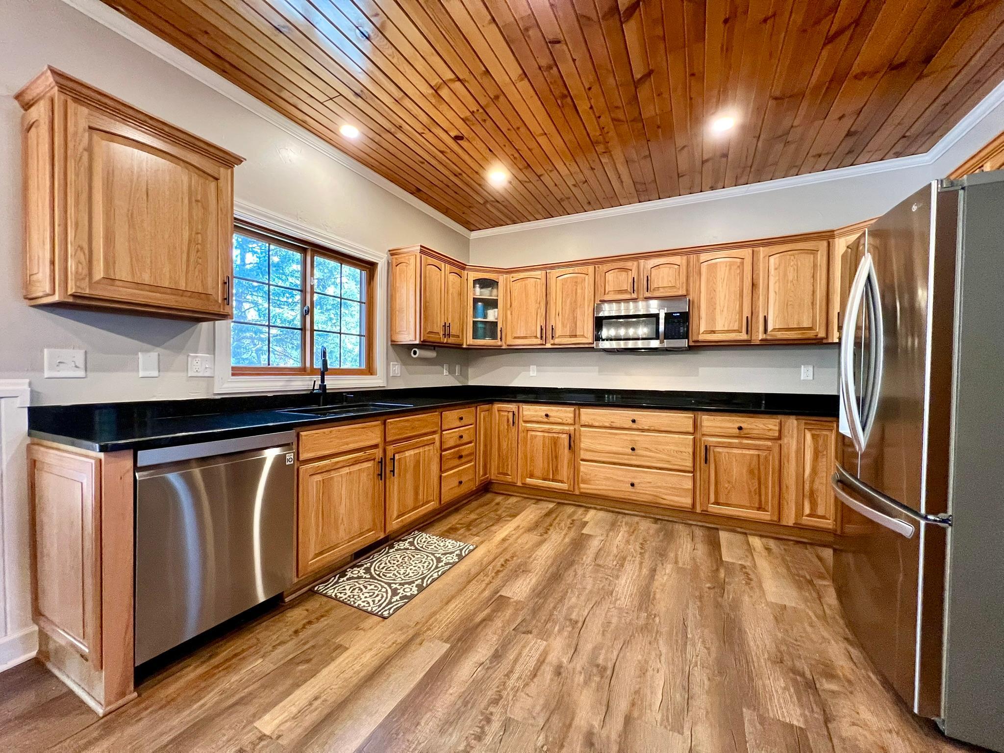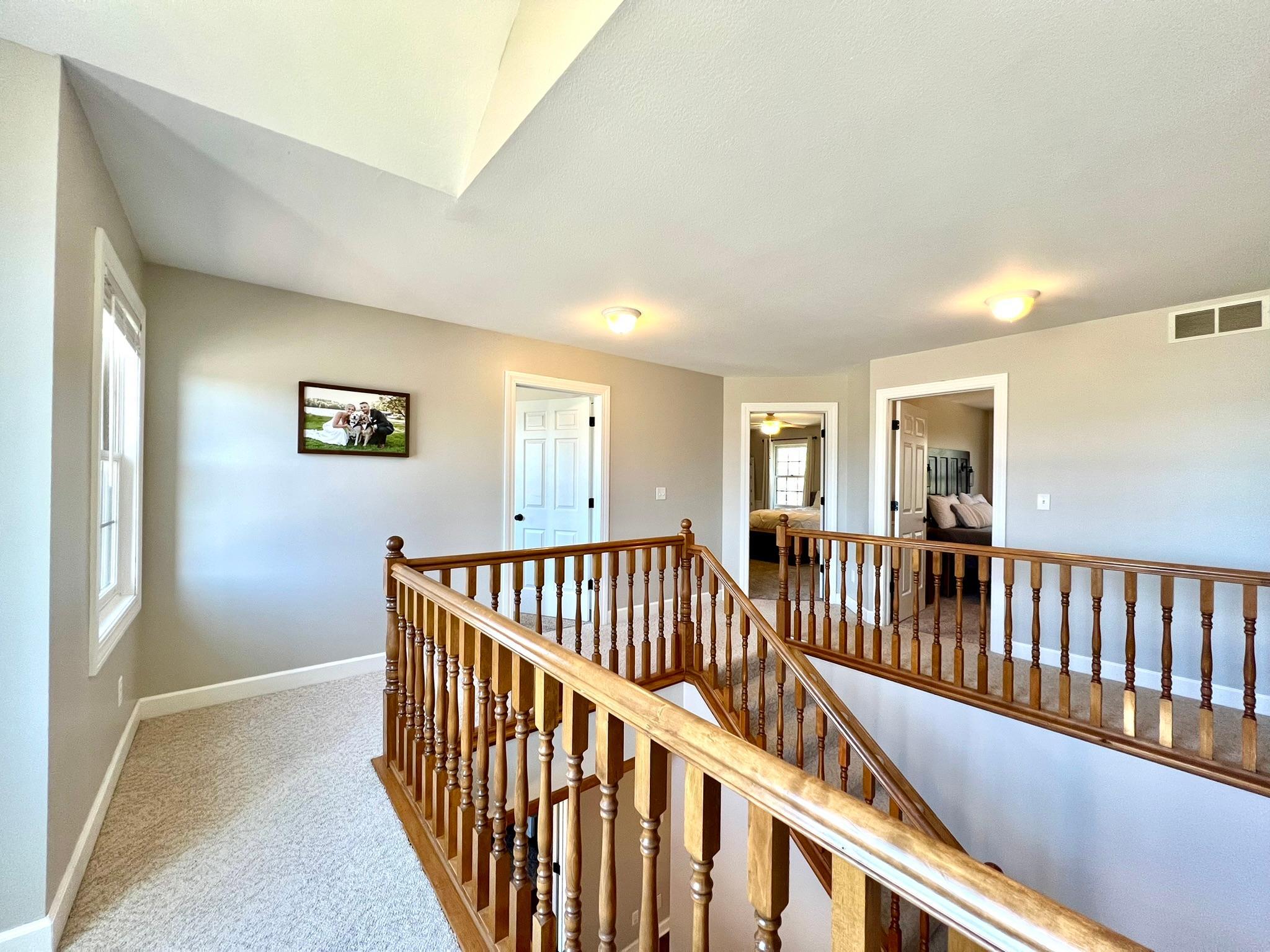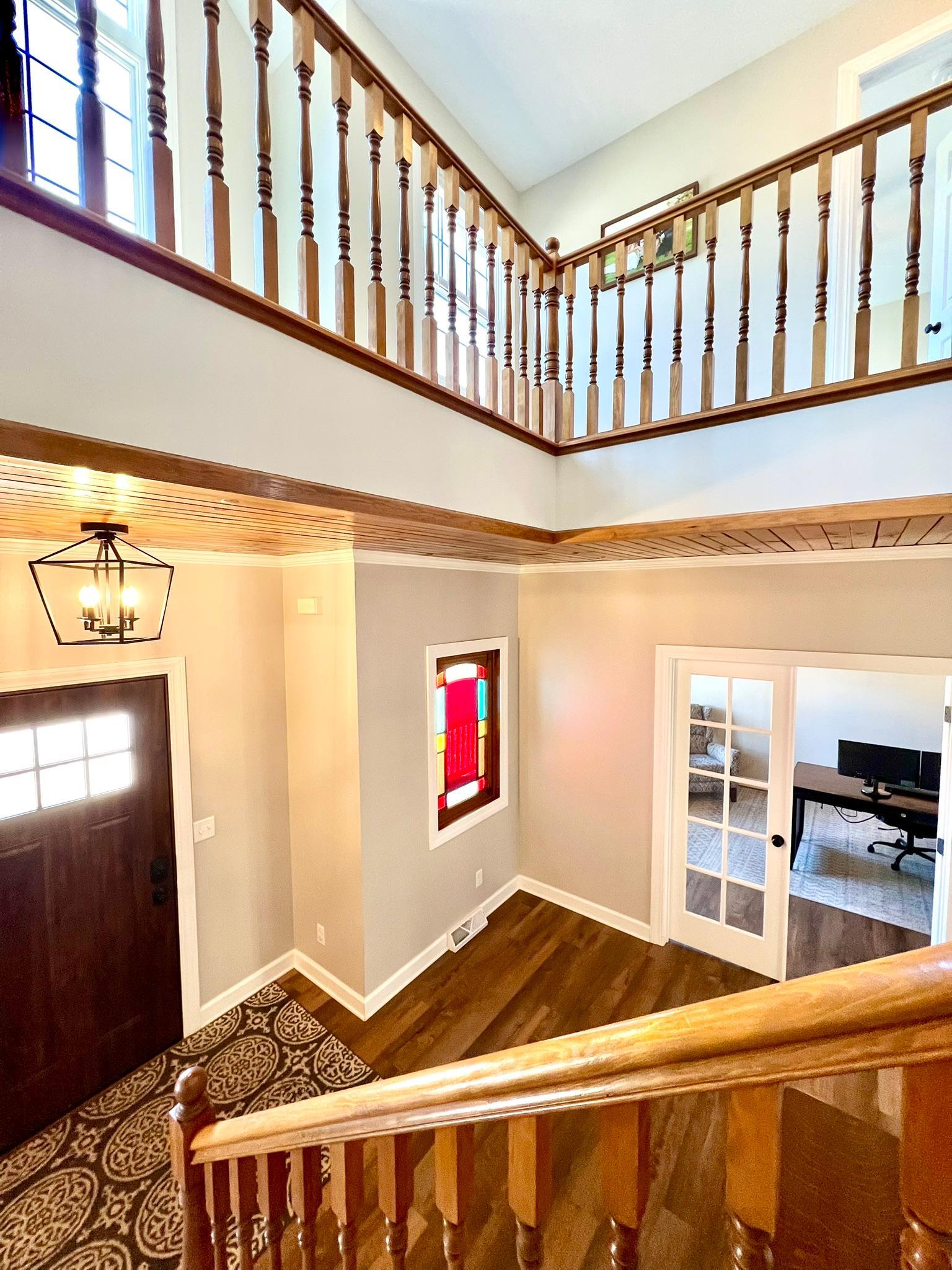 Beautifully remodeled 2-story home with 4 bedrooms and 3 1/2 baths features stylish and classy decor! You will love the numerous updates, open great room and kitchen concept, light and bright rooms and wonderful floor plan. From the moment you arrive, the instant appeal of the large front porch and natural Redwood siding draws you right in. As you enter, there's a welcoming 2-story entry with open staircase to the upper level. The main level features an office/den with French doors, newly remodeled great room and kitchen area with island seating, dining room, laundry room, back entry with siting area, 1/2 bath and two-tiered deck. Upstairs, you'll find a lovely owner's bedroom suite with a large walk-in closet and private full bath. Plus, 3 more bedrooms, a walk-thru full bath and a sitting area/landing that would be a perfect nook for reading or computer work. The expansive lower level is versatile and currently has an exercise area, game room and family room with new barn doors to a storage area and glass doors to a large closet. Plus, a 4th newly finished 3/4 bathroom. The 3 car garage is divided into a 2 car space with sealed flooring and finished walls and a 3rd stall currently used for storage. Welcome to your new dream home! List of updates by owners since 2022: New sidewalk, front door, luxury vinyl plank through main level and all bathrooms, lighting fixtures, appliances, painted whole house (walls, doors and trim), granite countertops in kitchen, new countertop in laundry room, new 3/4 bathroom in basement, tore down wall between kitchen and living room, new toilets in all bathrooms, carpet throughout, epoxy garage floor 2024, updated landscaping, cleaned up backyard brush to usable grass, new water heater 2022.