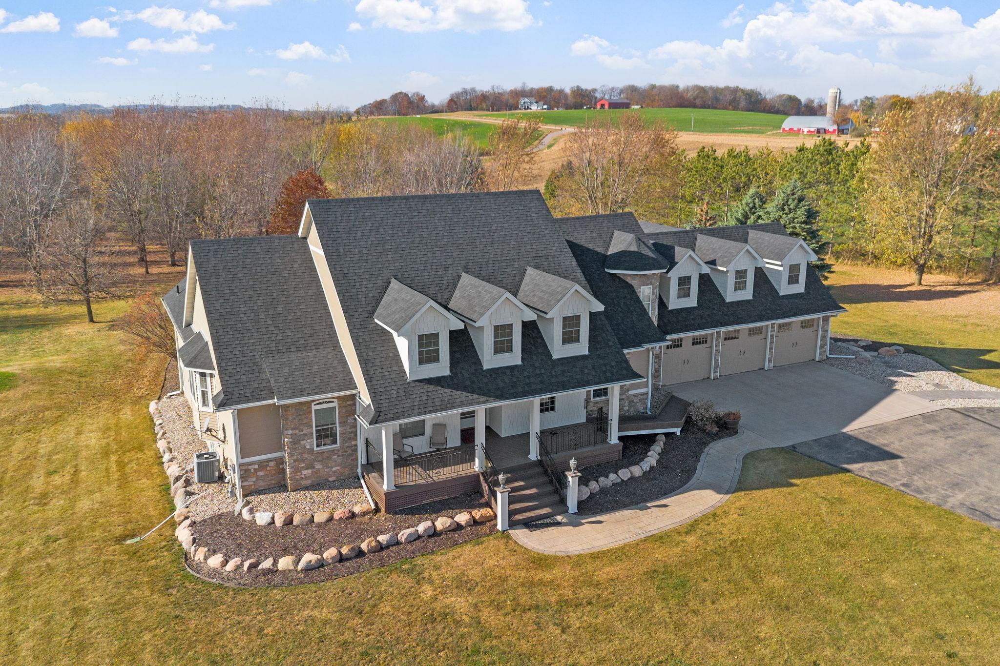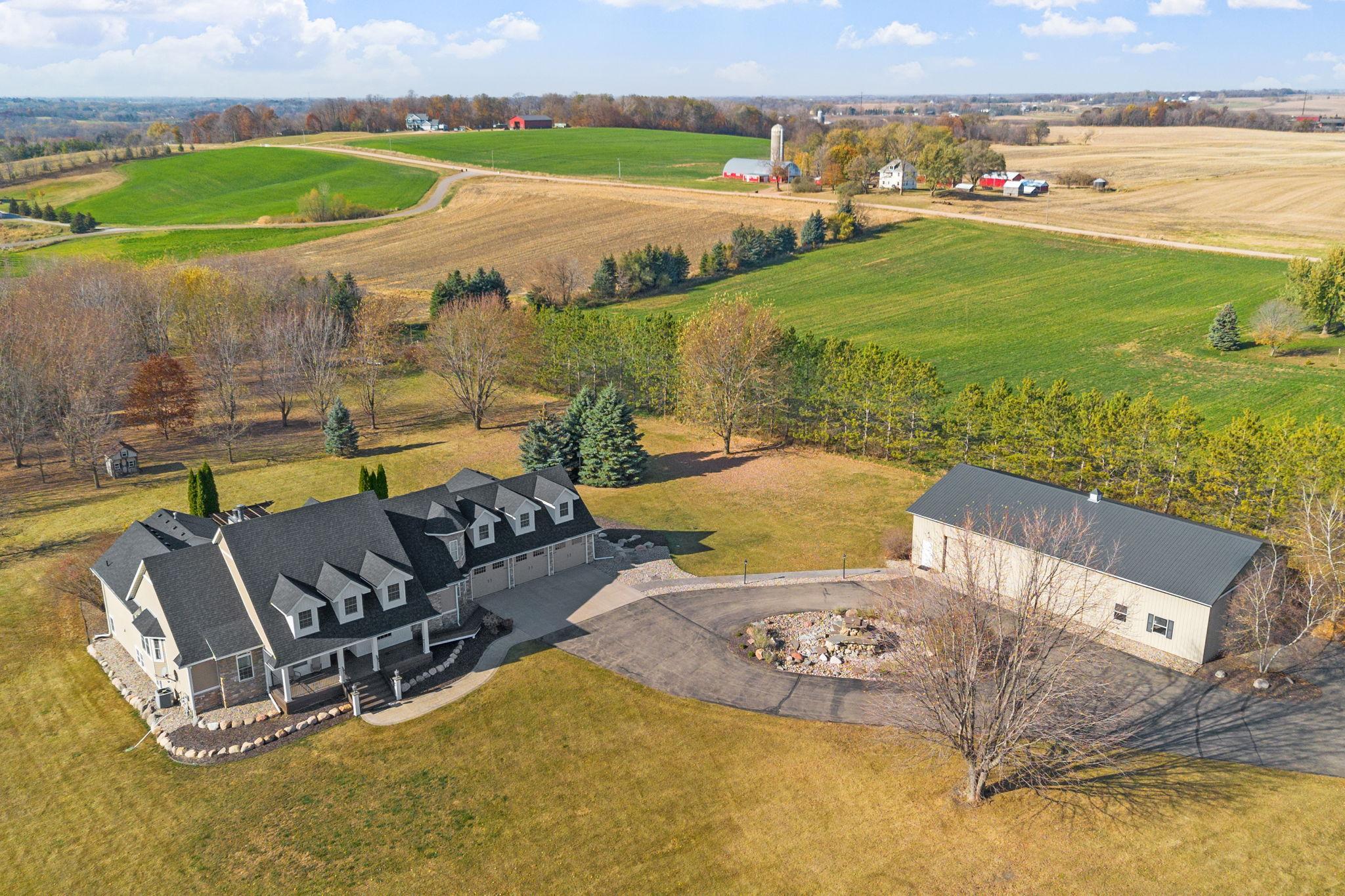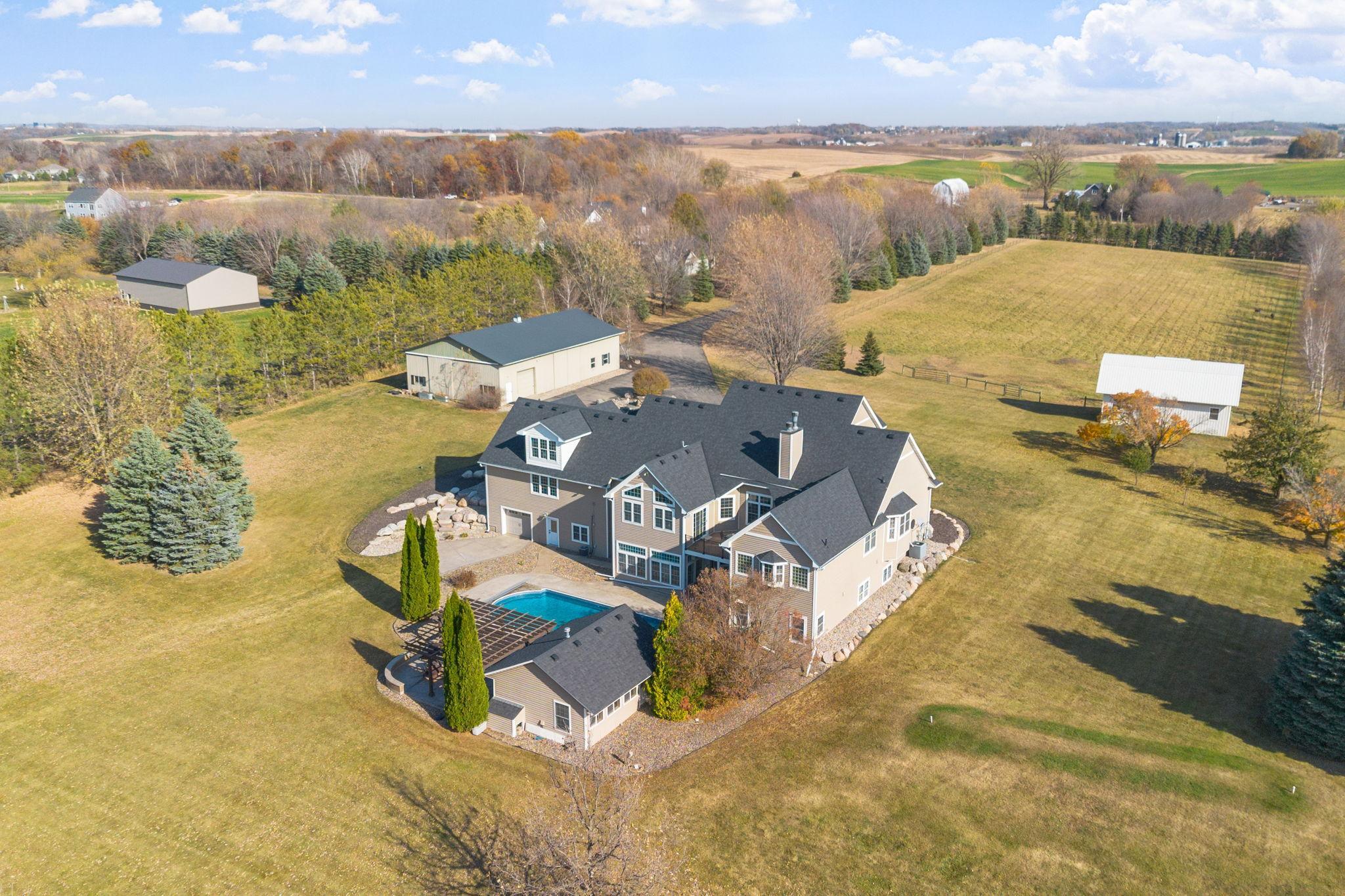 You’ll spot the stone water feature as you roll up the driveway, trees lining the way like they’re guarding something worth finding—and they are. This isn’t just a house; it’s a property that hands you the keys to live big, however you define it. Sunlight spills through big windows, hitting white oak floors while vaulted ceilings give the great room a lift. The kitchen’s hickory cabinets and quartz counters are ready for your next meal, and the four-season porch with glass walls frames the green sprawl—acres that could mean barbecues, a garden, or just room for everyone to spread out. An elevator ties it all together, taking passengers and packages from the heated three-car garage to a bonus room and every floor in between. A lower level wood-burning fireplace anchors a family room with a bar and second kitchen, spilling out to a stamped concrete patio and pool that’s primed for summer chaos—cannonballs included. There’s a heated pool house for wet towels, extra guests, or stashing gear, plus a pole barn for your weekend projects and an animal barn with pasture access that could mean chickens, horses, or the resident donkey's!. The open land’s a blank slate—space for your cars, your toys, your hobbies. It’s a house that’s lived-in ready, with nearly every detail waiting to be discovered. You don’t just move in here—you start living the second you arrive. See the many features included in this offering!