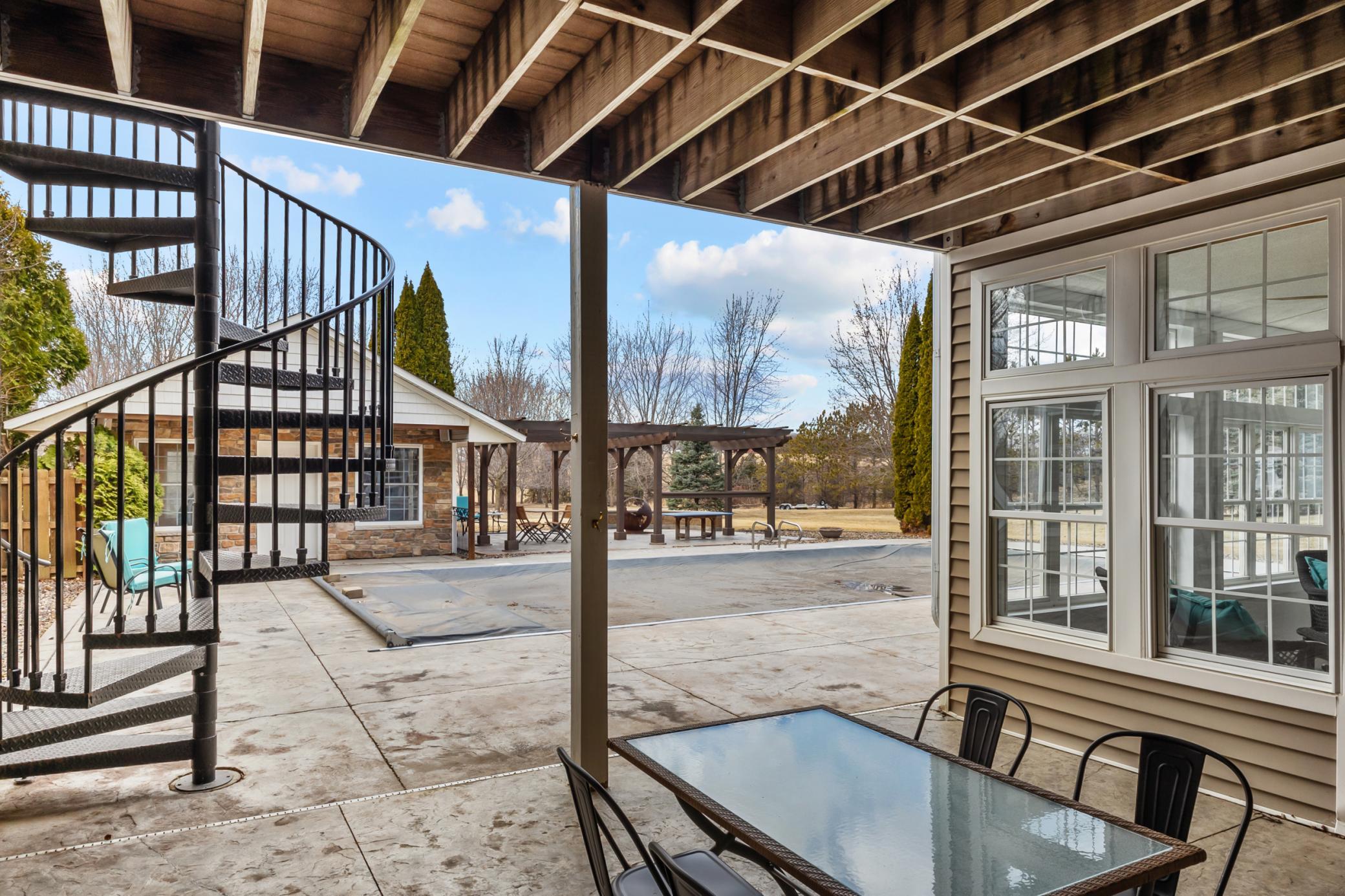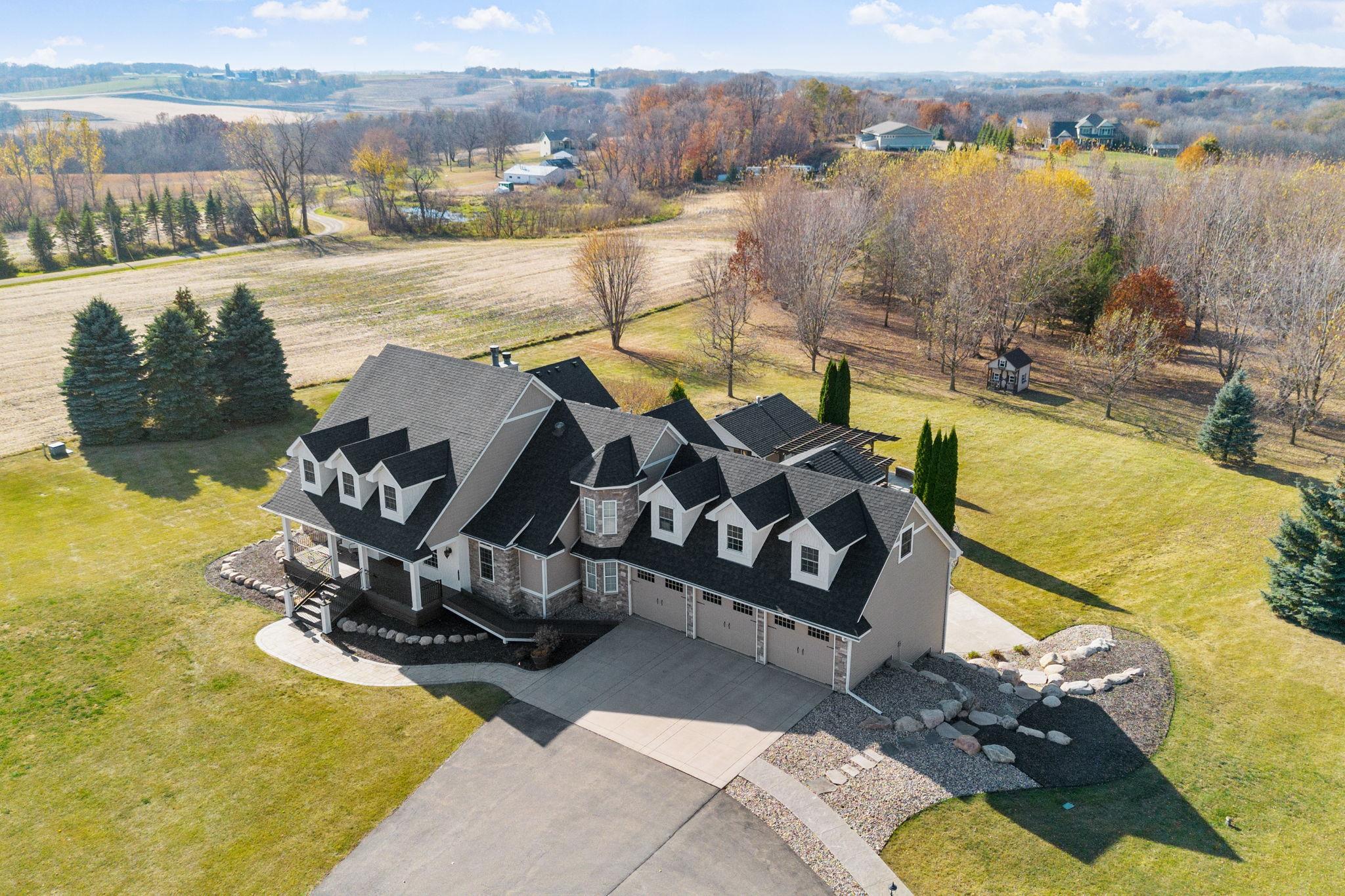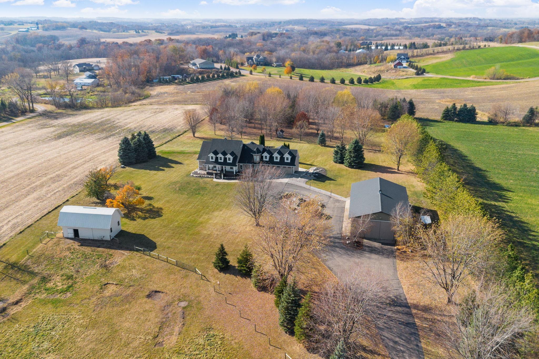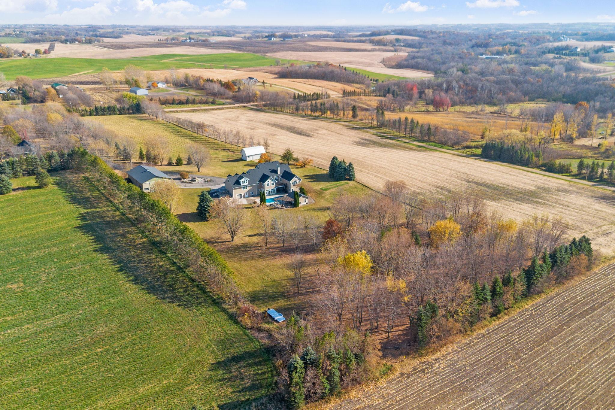 You’ll spot the stone water feature as you roll up the driveway, trees lining the way like they’re guarding something worth finding—and they are. This isn’t just a house; it’s a property that hands you the keys to live big, however you define it. Sunlight spills through big windows, hitting white oak floors while vaulted ceilings give the great room a lift. The kitchen’s hickory cabinets and quartz counters are ready for your next meal, and the four-season porch with glass walls frames the green sprawl—acres that could mean barbecues, a garden, or just room for everyone to spread out. An elevator ties it all together, taking passengers and packages from the heated three-car garage to a bonus room and every floor in between. A lower level wood-burning fireplace anchors a family room with a bar and second kitchen, spilling out to a stamped concrete patio and pool that’s primed for summer chaos—cannonballs included. There’s a heated pool house for wet towels, extra guests, or stashing gear, plus a pole barn for your weekend projects and an animal barn with pasture access that could mean chickens, horses, or the resident donkey's!. The open land’s a blank slate—space for your cars, your toys, your hobbies. It’s a house that’s lived-in ready, with nearly every detail waiting to be discovered. You don’t just move in here—you start living the second you arrive. See the many features included in this offering!
