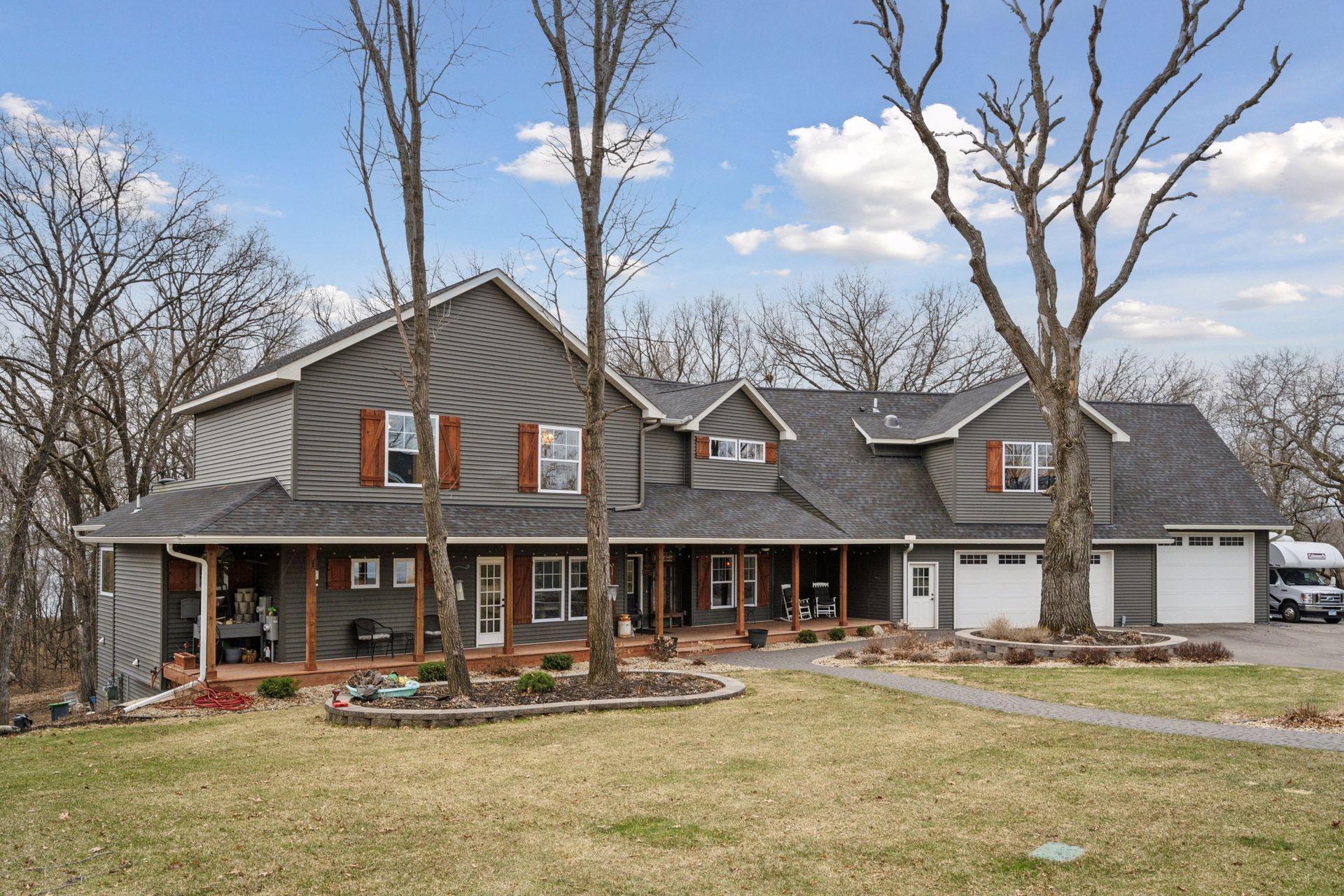Set along the tranquil shores of both Orono Lake and the Elk River, this extraordinary 29-acre estate embodies the absolute best of refined living and natural splendor. With over 2,000+- feet of private shoreline and even its own island, this property offers a setting unlike any other, a place where privacy, recreation, and craftsmanship converge in perfect balance. At its center stands a custom-built residence highlighting over 6,700+- square feet of thoughtfully designed space. Every detail reflects quality and intention, from the grand vaulted great room and fireside gathering area to the impressive chef’s kitchen, complete with butler’s pantry, and fabulous bar room. The main level is anchored by a serene primary suite. Upstairs, dual wings provide exceptional versatility. One serves as a peaceful bedroom wing with bedrooms and deck, while the other offers a professional office suite with a sunroom, twin decks, and an executive workspace ideal for productivity and inspiration. The walkout level extends the home’s inviting atmosphere with a theater, secondary kitchen, guest bedroom, and expansive recreation spaces perfect for gatherings of any size. A separate single-level guest residence adds another dimension to the property, offering 1,600+- square feet of stylish comfort. Featuring two bedrooms, a full kitchen, a vaulted living room, screened porch, and loft, it is a welcoming haven for visitors, extended family, or a caretaker. Outside there is 1,900+- square feet of deck space, where sweeping water and woodland views frame every sunrise and sunset. Collectors and hobbyists alike will appreciate the 2,800+- square feet of garage and storage area, providing ample room for vehicles, equipment, or recreation gear. This lakeside sanctuary delivers the rare combination of luxury, versatility, and complete privacy, a true destination property designed for those who value both craftsmanship and connection to the land. There is a fully assumable VA loan. Balance: $1,098,000, interest rate: 2.5%, 321 months remaining, P & I payment: $4,675.00. You do not need to be a Veteran, there is no appraisal required, no closing costs, and no mortgage insurance.