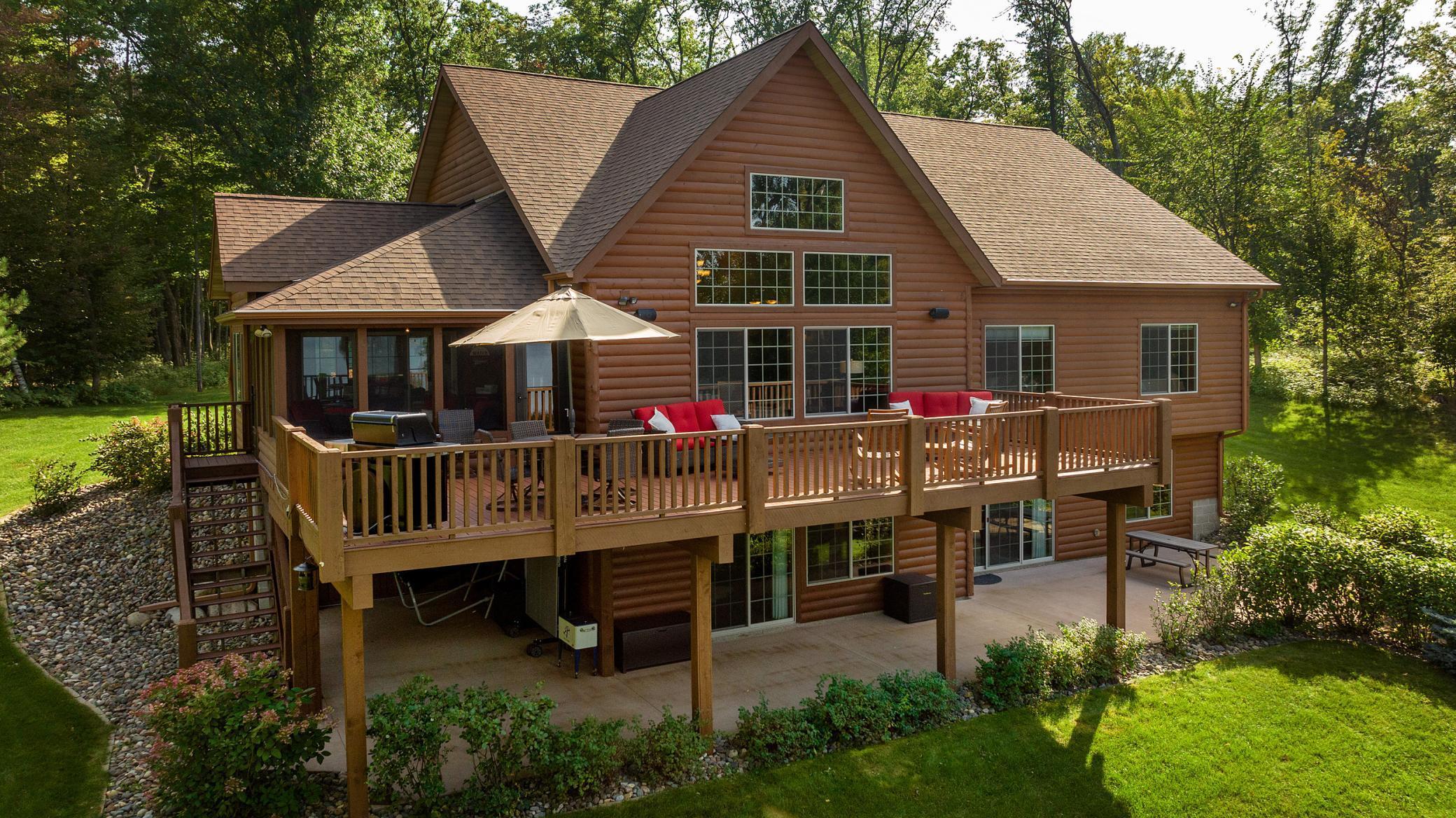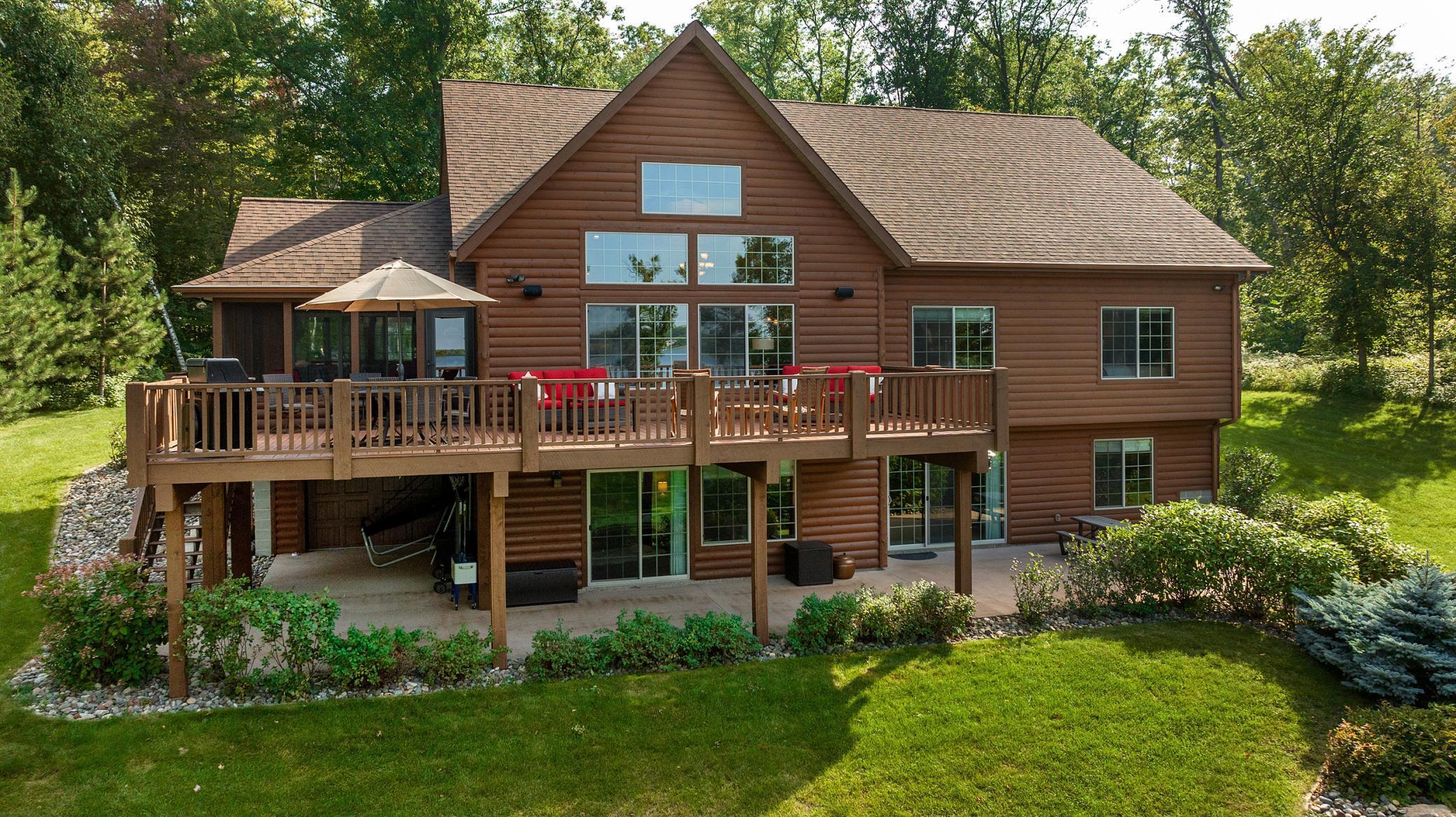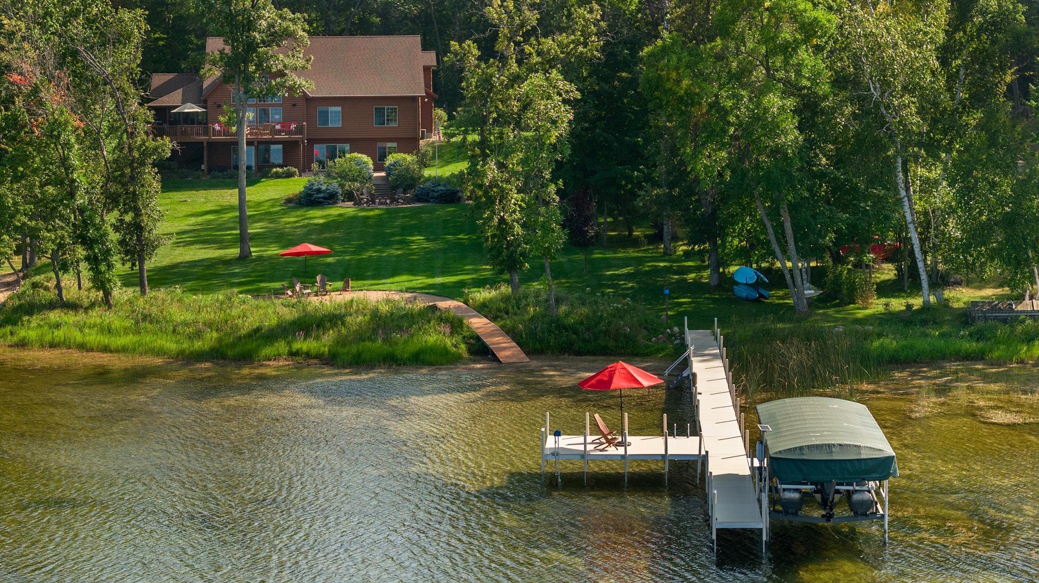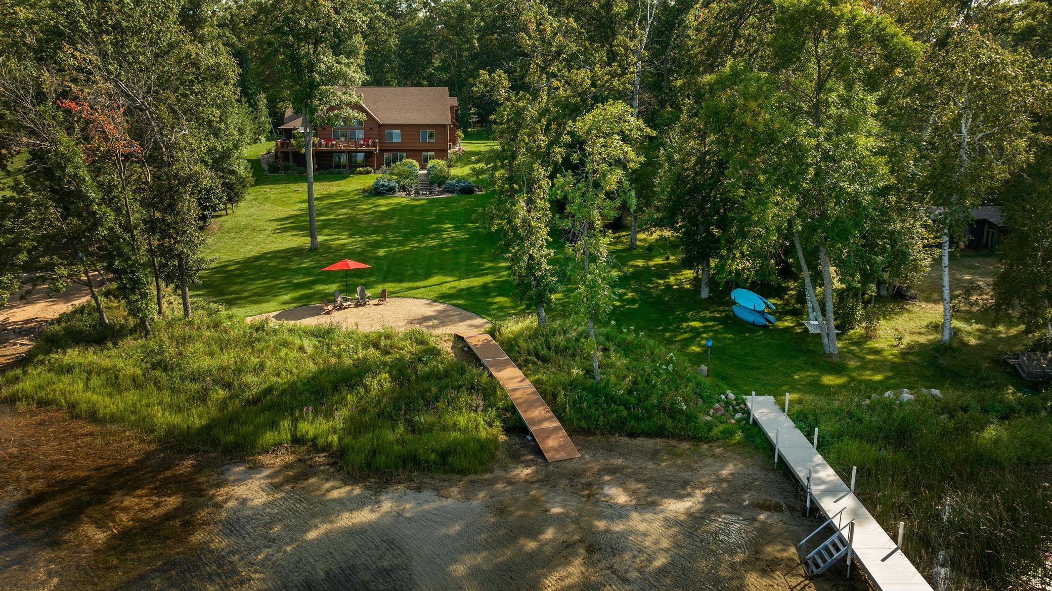 Discover an exquisite lakefront paradise on North Long Lake, boasting 130 feet of frontage and 2.2 acres of wooded splendor. This stunning VRBO property offers rental history and nearly $75k in bookings for this summer. Enjoy this as your primary lake home or vacation retreat with breathtaking views and effortless living in the open-concept layout featuring vaulted ceilings, custom kitchen, stone fireplace, and seamless indoor-outdoor living spaces. The main level includes a luxurious primary suite, additional bedroom, laundry, and two full bathrooms. The lower level offers a family room, wet bar, two bedrooms, and a full bathroom, while the upper level houses an additional living room, built-in beds, and a 3/4 bathroom. Relax on the lakeside deck or screened porch amidst meticulously landscaped grounds with a custom fire ring and gentle slope to the lake. The three-car finished, heated garage ensures ample storage for all your needs. Dont forget the lakeside tuck under garage stall for lake toys and your mower. Enjoy the lake view or private sand beach with a hard sand bottom out front by the dock. Perfectly located on a quiet dead end street, this fully furnished, turnkey property grants easy access to the best of the Brainerd Lakes area. Perfectly situated 15 mins to Baxter, Nisswa, and Breezy Point. Don't miss this chance to experience the ultimate lakefront lifestyle.