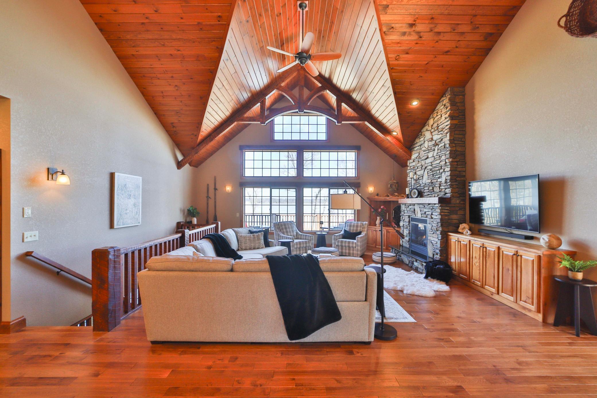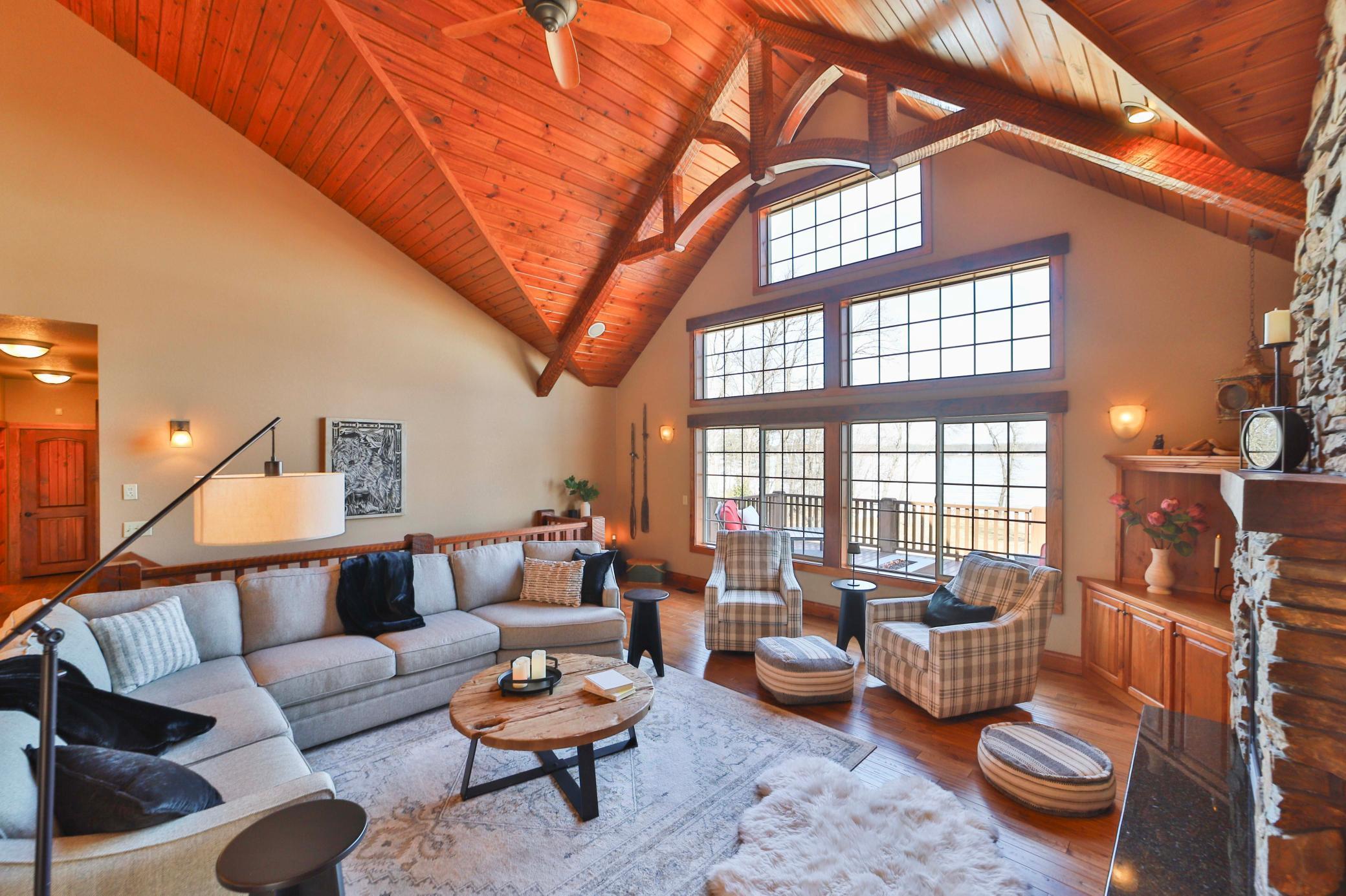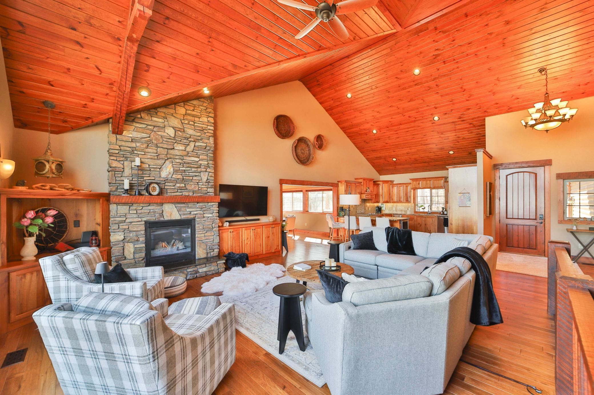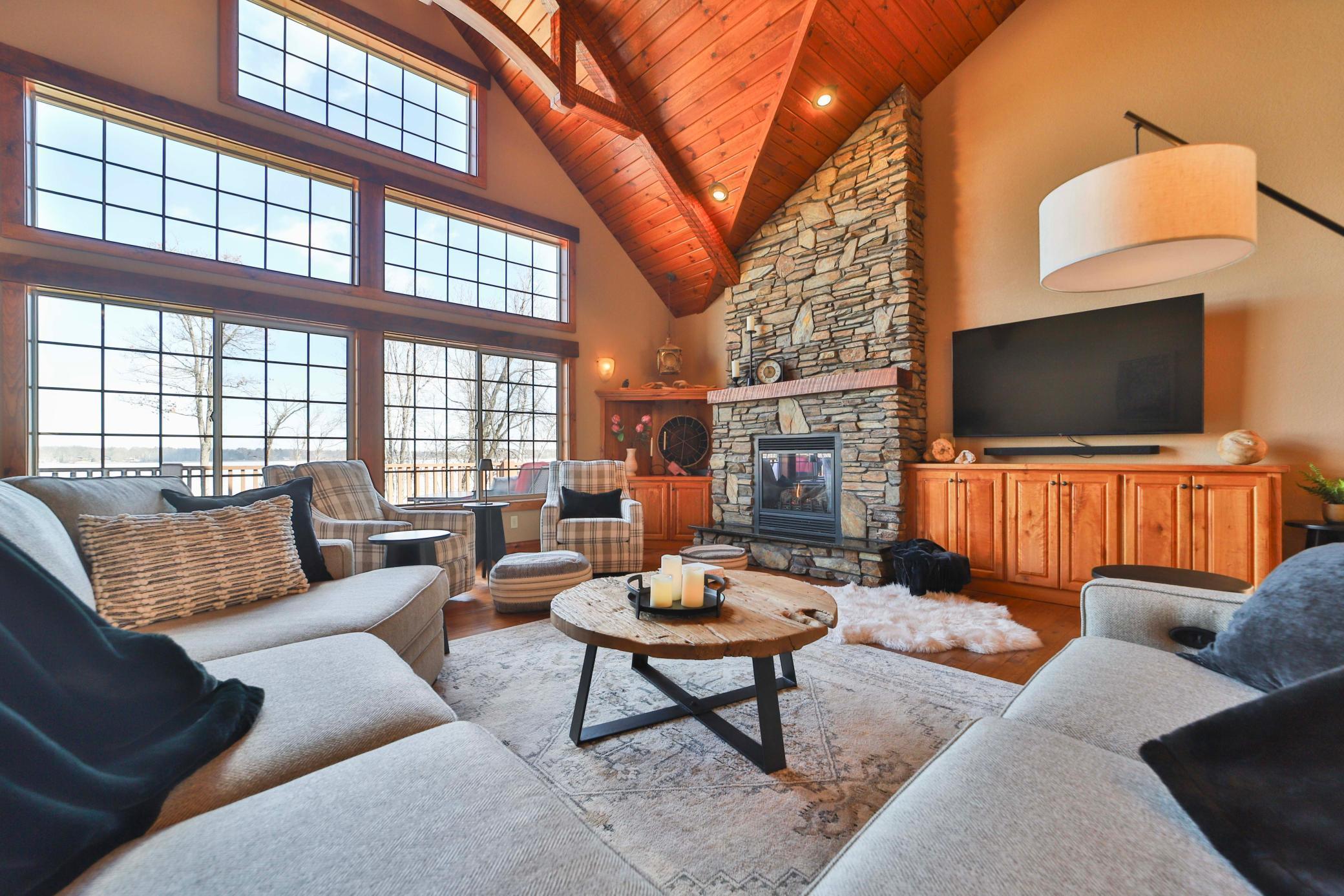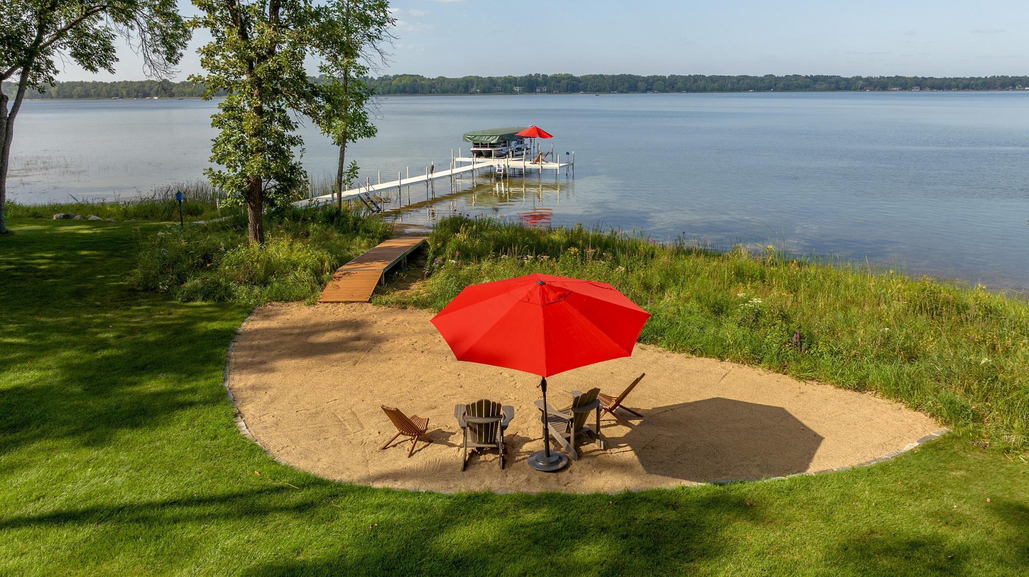 Discover an exquisite lakefront paradise on North Long Lake, boasting 130 feet of frontage and 2.2 acres of wooded splendor. This stunning VRBO property offers rental history and nearly $75k in bookings for this summer. Enjoy this as your primary lake home or vacation retreat with breathtaking views and effortless living in the open-concept layout featuring vaulted ceilings, custom kitchen, stone fireplace, and seamless indoor-outdoor living spaces. The main level includes a luxurious primary suite, additional bedroom, laundry, and two full bathrooms. The lower level offers a family room, wet bar, two bedrooms, and a full bathroom, while the upper level houses an additional living room, built-in beds, and a 3/4 bathroom. Relax on the lakeside deck or screened porch amidst meticulously landscaped grounds with a custom fire ring and gentle slope to the lake. The three-car finished, heated garage ensures ample storage for all your needs. Dont forget the lakeside tuck under garage stall for lake toys and your mower. Enjoy the lake view or private sand beach with a hard sand bottom out front by the dock. Perfectly located on a quiet dead end street, this fully furnished, turnkey property grants easy access to the best of the Brainerd Lakes area. Perfectly situated 15 mins to Baxter, Nisswa, and Breezy Point. Don't miss this chance to experience the ultimate lakefront lifestyle.