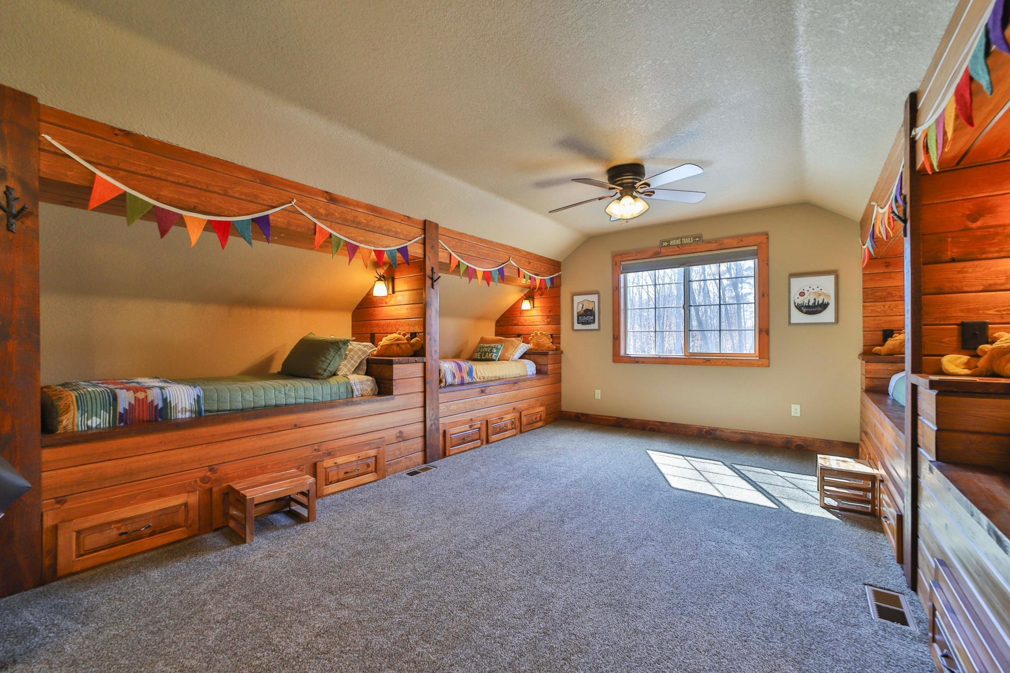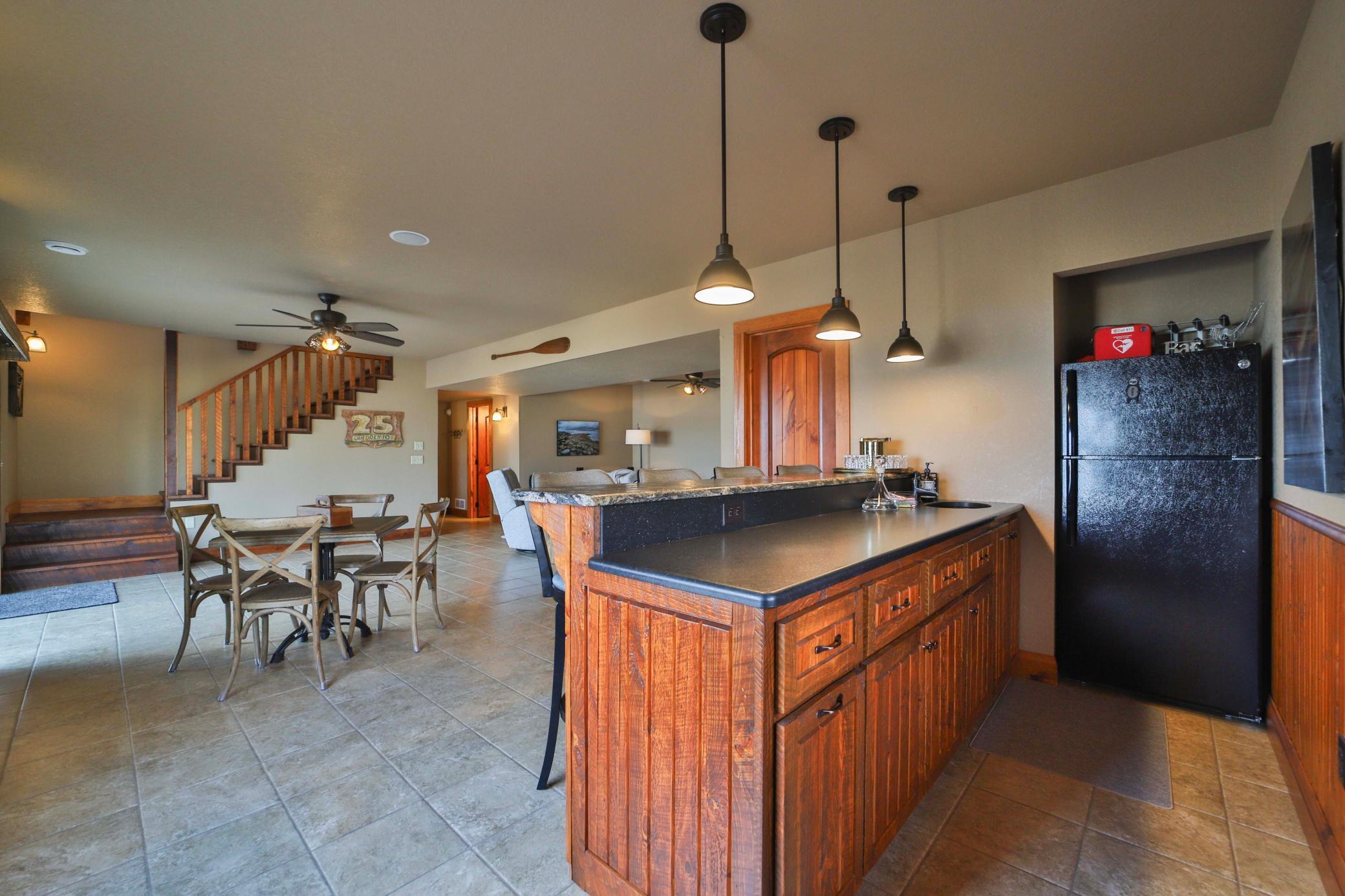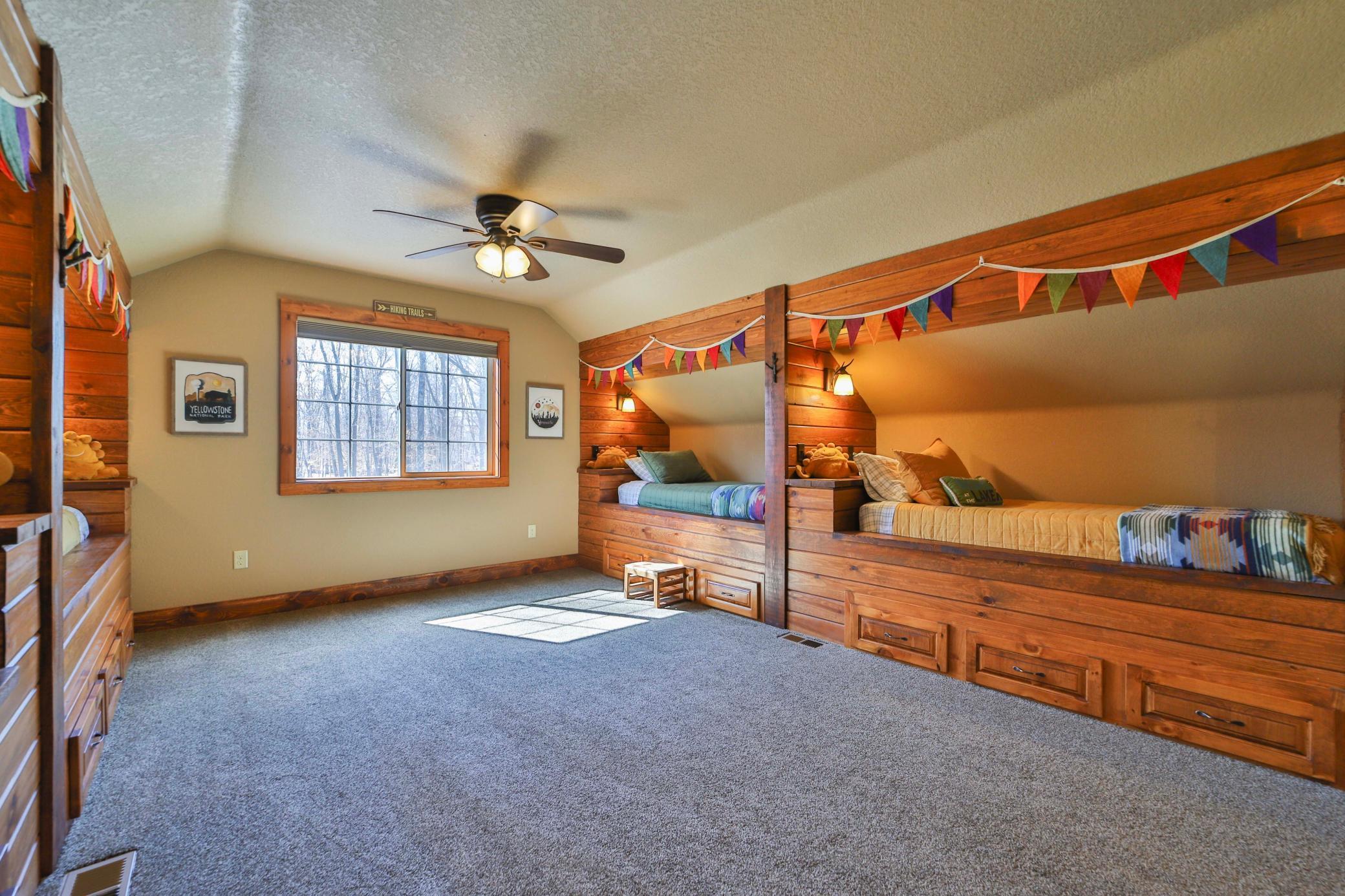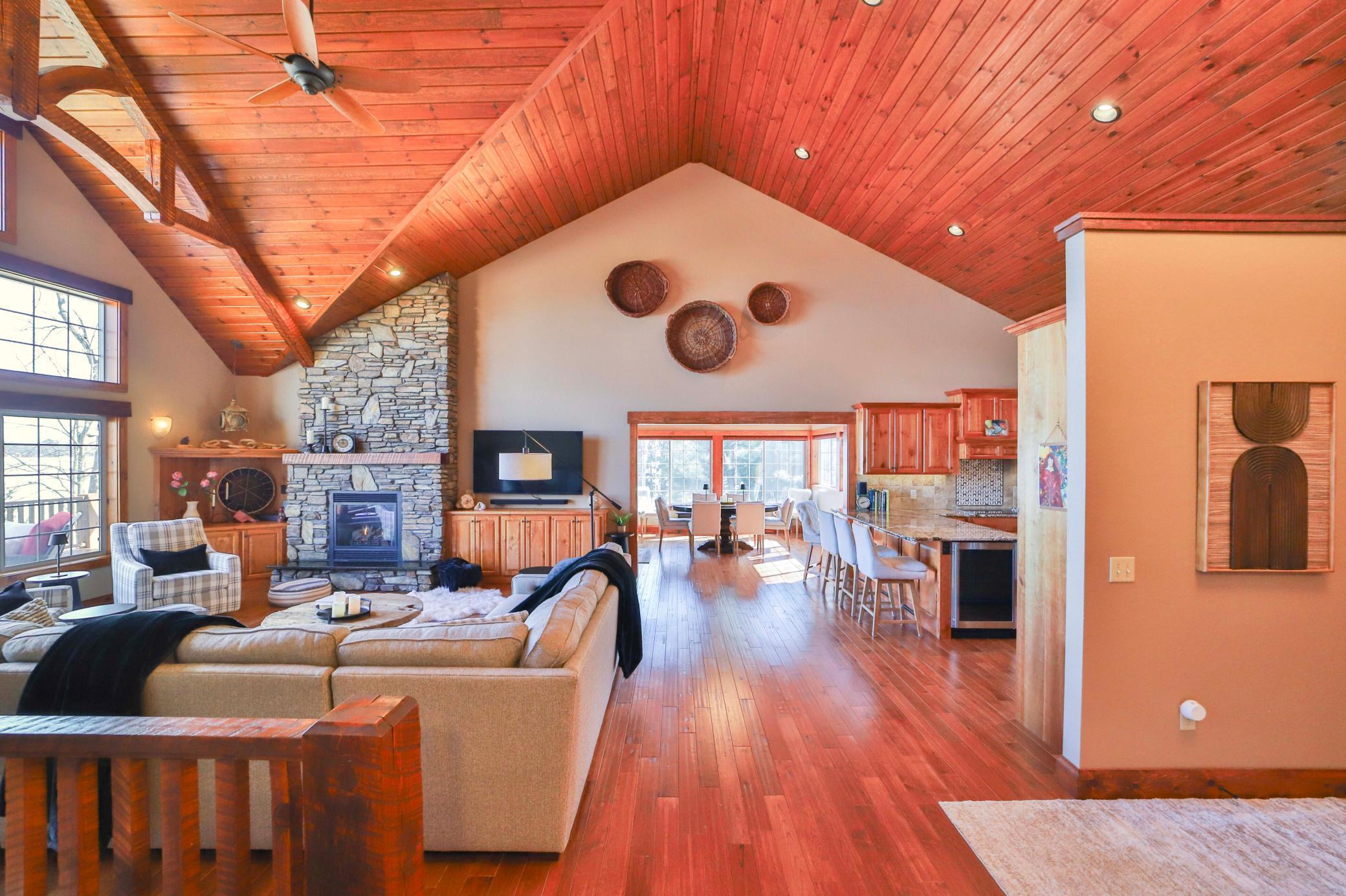 Discover an exquisite lakefront paradise on North Long Lake, boasting 130 feet of frontage and 2.2 acres of wooded splendor. This stunning VRBO property offers rental history and nearly $75k in bookings for this summer. Enjoy this as your primary lake home or vacation retreat with breathtaking views and effortless living in the open-concept layout featuring vaulted ceilings, custom kitchen, stone fireplace, and seamless indoor-outdoor living spaces. The main level includes a luxurious primary suite, additional bedroom, laundry, and two full bathrooms. The lower level offers a family room, wet bar, two bedrooms, and a full bathroom, while the upper level houses an additional living room, built-in beds, and a 3/4 bathroom. Relax on the lakeside deck or screened porch amidst meticulously landscaped grounds with a custom fire ring and gentle slope to the lake. The three-car finished, heated garage ensures ample storage for all your needs. Dont forget the lakeside tuck under garage stall for lake toys and your mower. Enjoy the lake view or private sand beach with a hard sand bottom out front by the dock. Perfectly located on a quiet dead end street, this fully furnished, turnkey property grants easy access to the best of the Brainerd Lakes area. Perfectly situated 15 mins to Baxter, Nisswa, and Breezy Point. Don't miss this chance to experience the ultimate lakefront lifestyle.