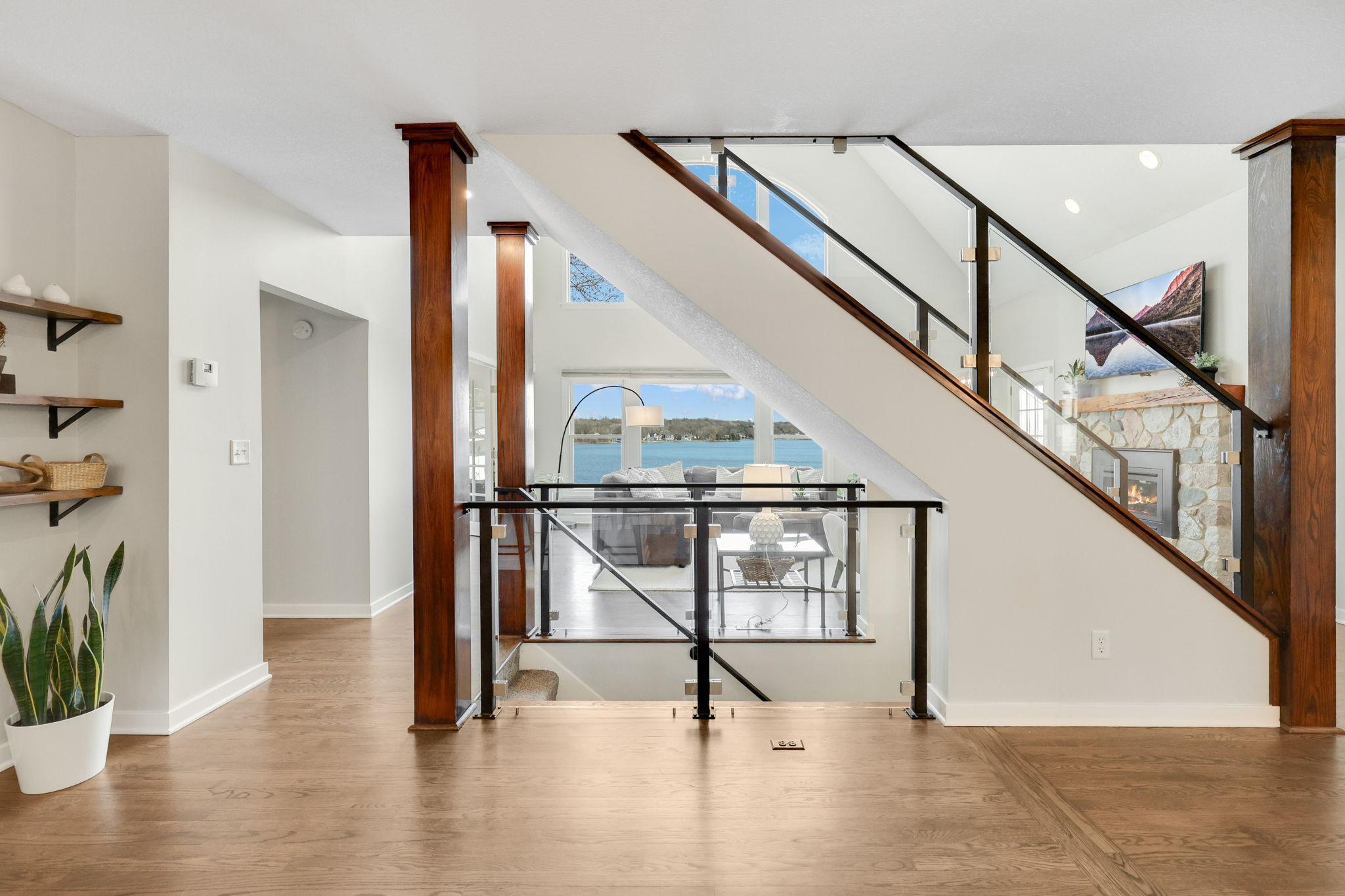 Welcome to 5670 Fairlawn Shores Trail SE—98 feet of prime Prior Lake shoreline with a beautiful sandy beach and big water views. This well-designed home features a dramatic two-story great room filled with natural light and an updated kitchen that opens to the main living spaces—ideal for everyday living and entertaining. All three bedrooms are located on the upper level, including a spacious primary suite with elevated lake views. Enjoy the lake from the maintenance-free deck and take advantage of the level lot leading to the shoreline. Additional highlights include five bathrooms, a 4-car garage, charming front porch, and abundant unfinished storage. A rare opportunity for quality lakeshore living in a highly sought-after location on lower Prior Lake.