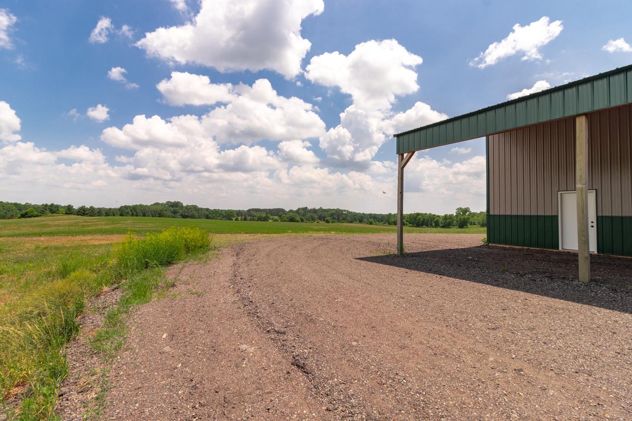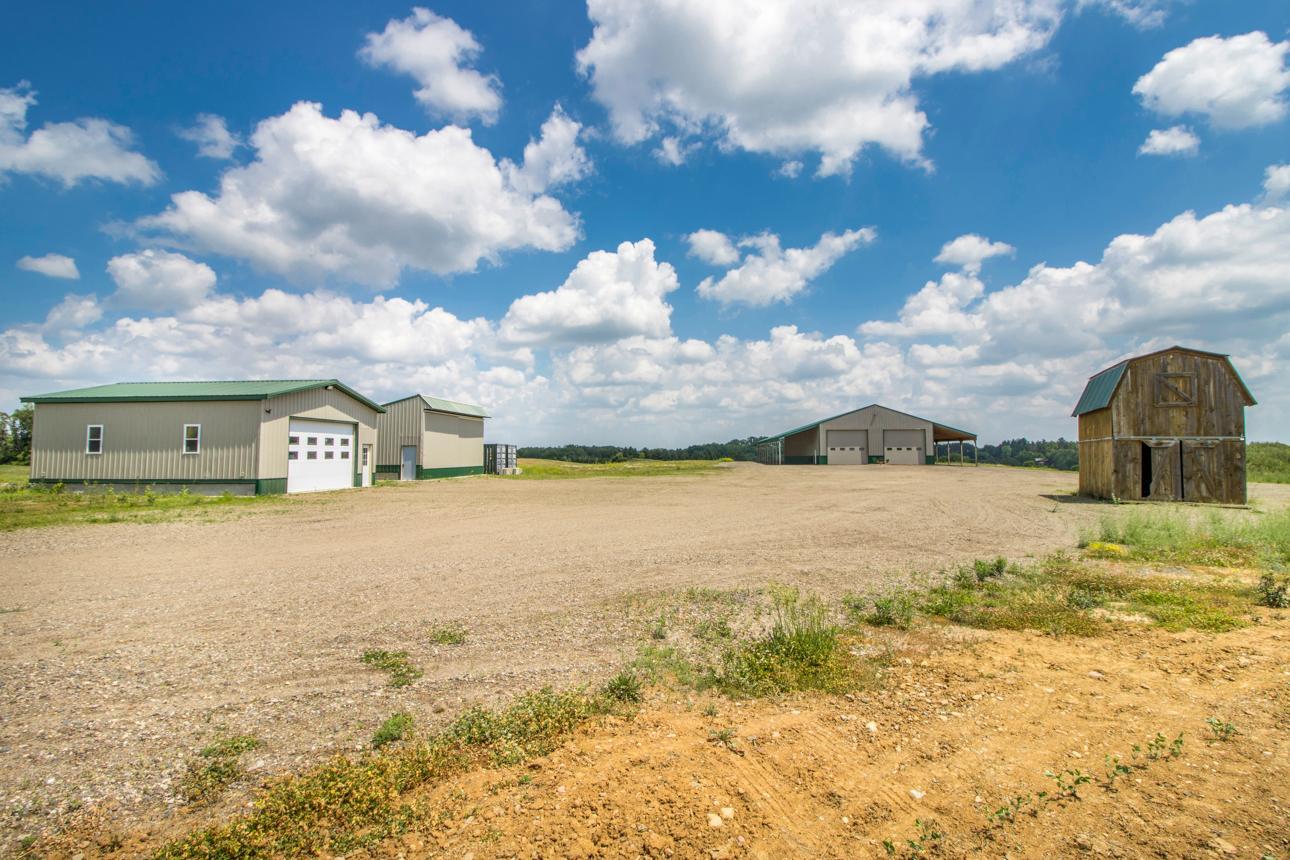 Fantastic location featuring 85.6 acres, 4 separate parcels being sold together. Currently being used and farmed for crops. The buildings are as follows: main pole bldg is 145x50 with 16x144 lean-to on each side of the building running the 144ft. 18 ft. sidewall with large 25x18.6 airport hanger style door on one end and 2 large 16x8 garage doors on the other end. Sufficent for large equipment, semi trucks or a motor coach. 2-220 outlets, fully wired 220 amp power, and inside and outside lights. Building 2) 34x28 garage with 12 ft side wall 16x10 door. Foam insulated walls and doors, concrete floor, 220 outlets 100 amp service & outside flood lights Building 3) 32x16 2 story garage, storage loft, 14 ft slider door, concrete floor. All the buildings are newer and in great condition. Outside power panel w/50 amp service, 110 outlets. All utilities are underground. Close to downtown Marine on the St. Croix. Gorgeous sunsets, a must see!
