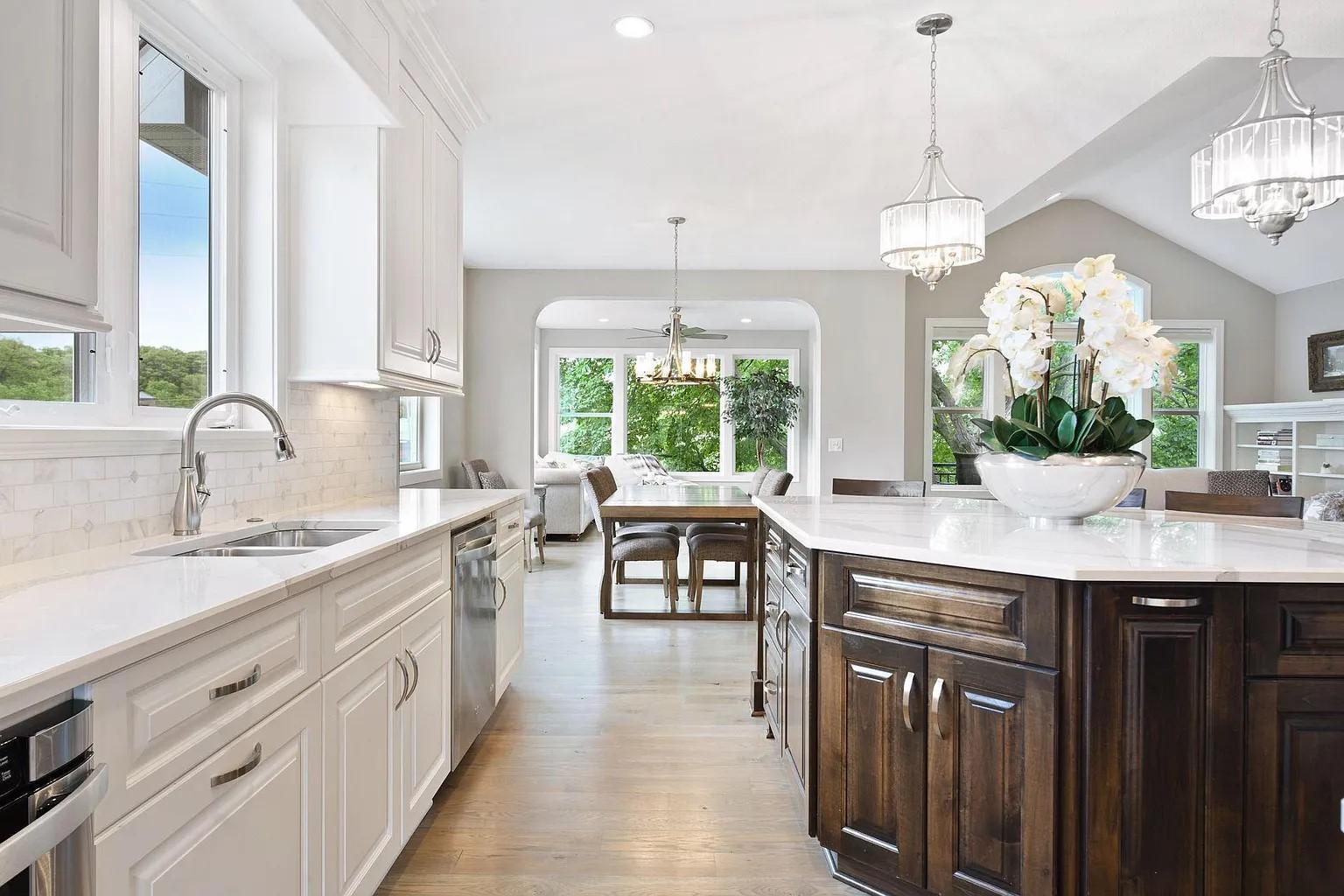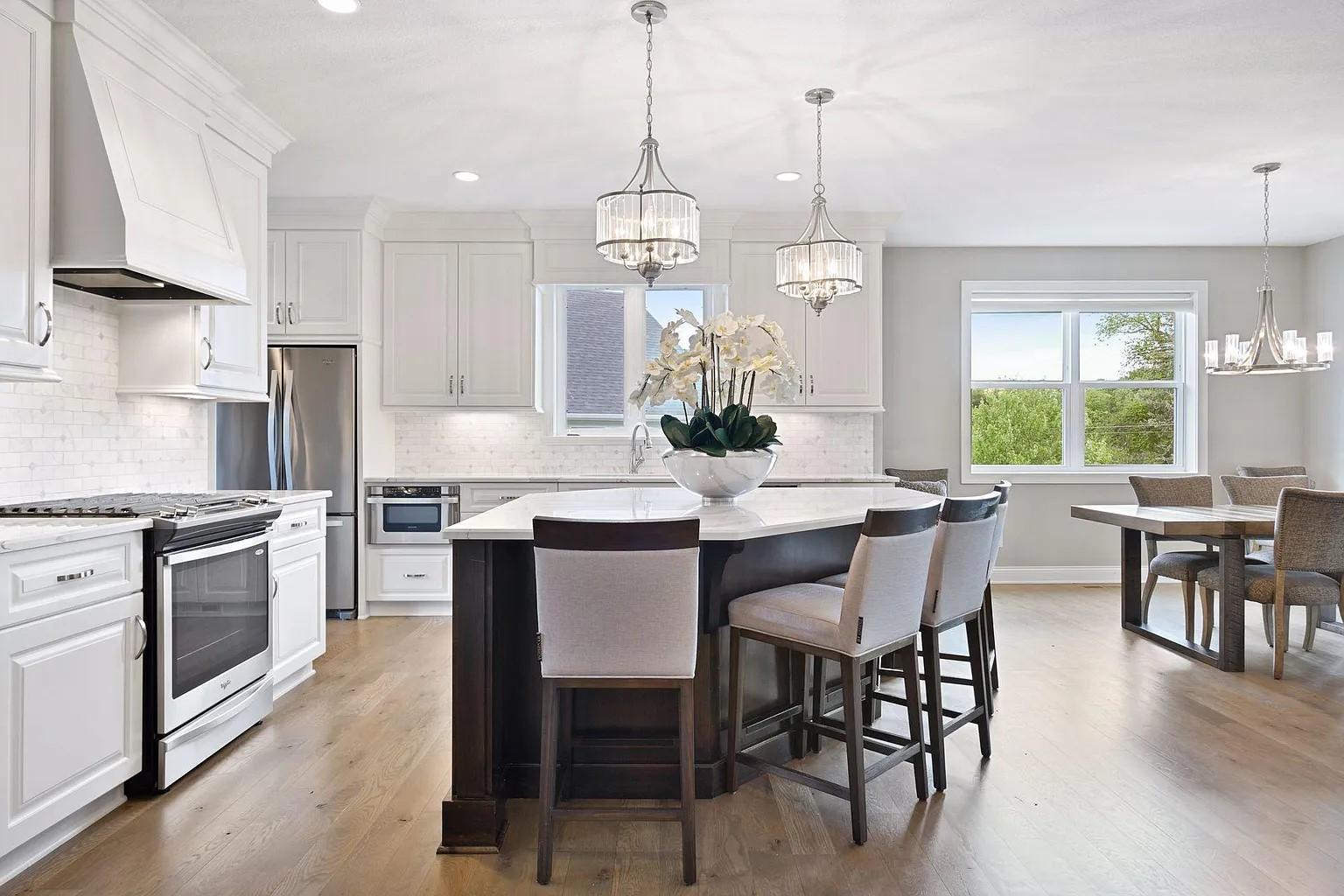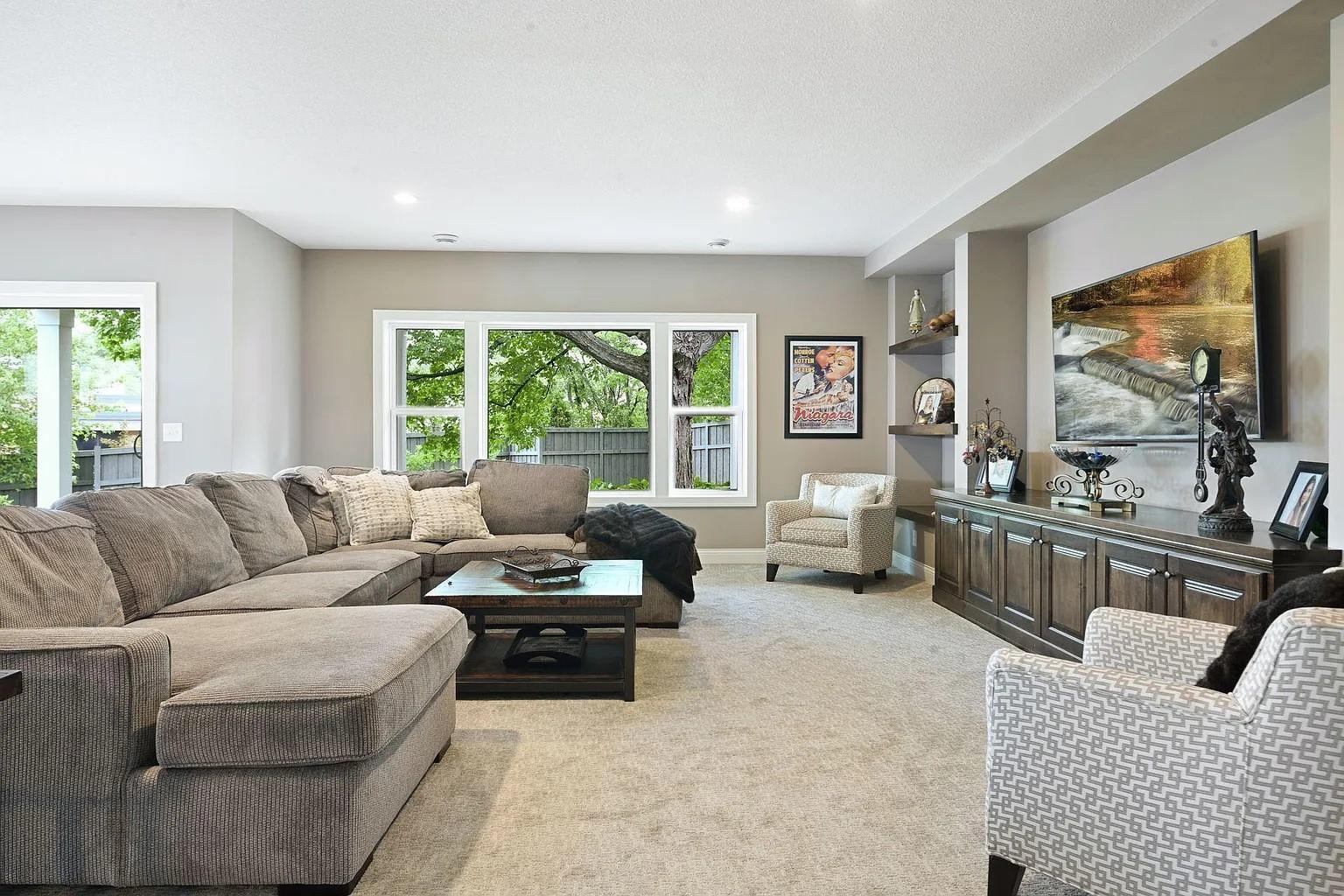 This exquisite one story home built by Wooddale Builders, Inc. is located in the newest Shoreview Neighborhood of Harbor Shores. This property features 3 bdr, 3 baths, 3 car fin. & heated garage and 3771 FSF. Stunning main floor MBR suite has designer master closet and private spa bath with soaking tub & large CT shower, w/heated flooring. The gourmet chefs kitchen features custom enameled cabinetry, CT backsplash, walk-in pantry, and Quartz counters throughout this amazing home. GR has 12 foot ceilings, built-ins, and impressive stone fireplace. Main floor Den with by-pass doors. The gorgeous four season porch features walls of windows w/patio door leading to the maintenance free deck. The lower level is an additional bdrs and a 3/4 bath w/large CT shower. A true masterpiece w/ architectural elements throughout.