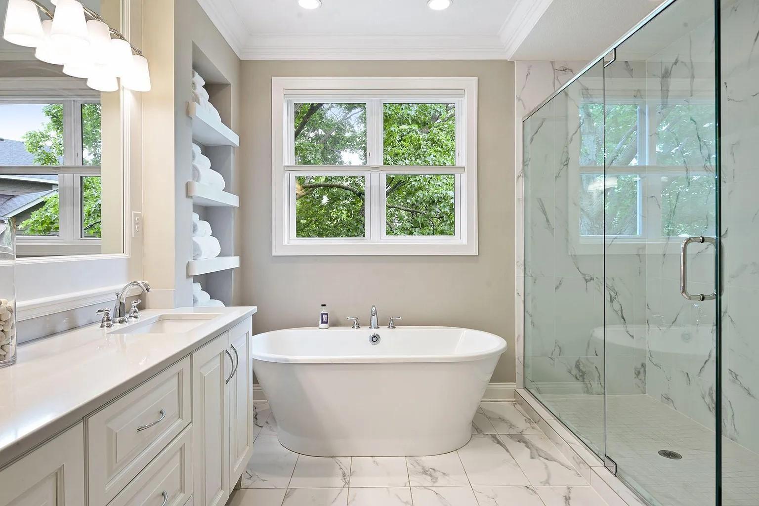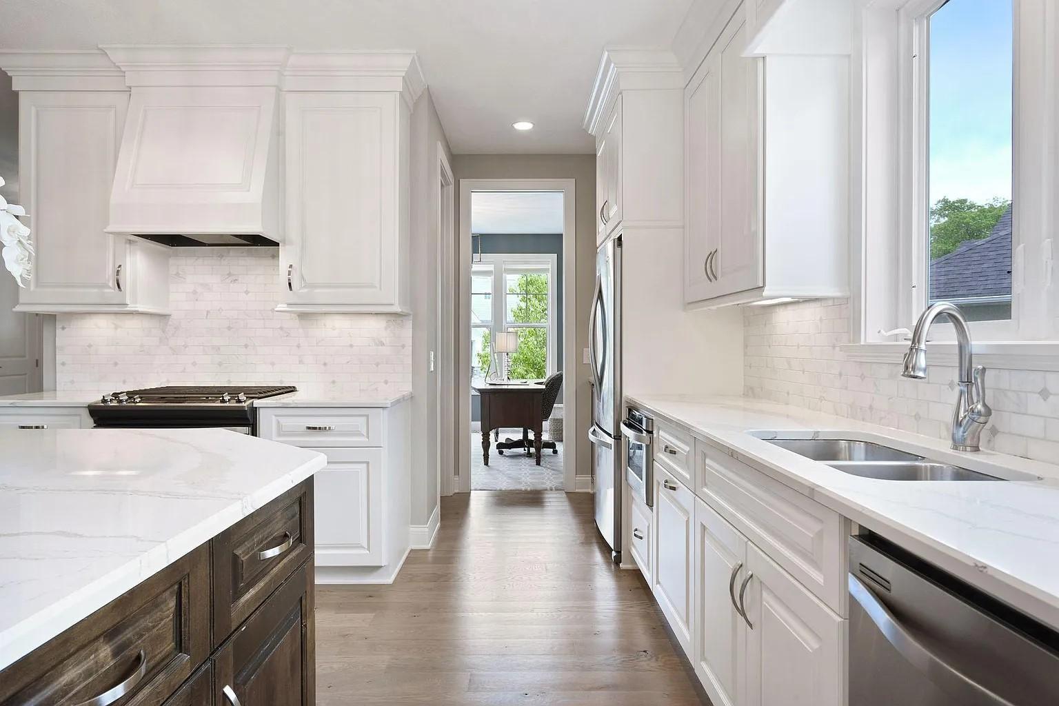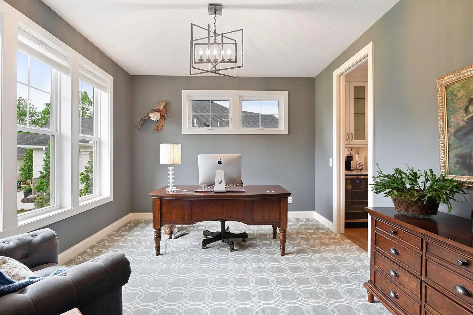 This exquisite one story home built by Wooddale Builders, Inc. is located in the newest Shoreview Neighborhood of Harbor Shores. This property features 3 bdr, 3 baths, 3 car fin. & heated garage and 3771 FSF. Stunning main floor MBR suite has designer master closet and private spa bath with soaking tub & large CT shower, w/heated flooring. The gourmet chefs kitchen features custom enameled cabinetry, CT backsplash, walk-in pantry, and Quartz counters throughout this amazing home. GR has 12 foot ceilings, built-ins, and impressive stone fireplace. Main floor Den with by-pass doors. The gorgeous four season porch features walls of windows w/patio door leading to the maintenance free deck. The lower level is an additional bdrs and a 3/4 bath w/large CT shower. A true masterpiece w/ architectural elements throughout.