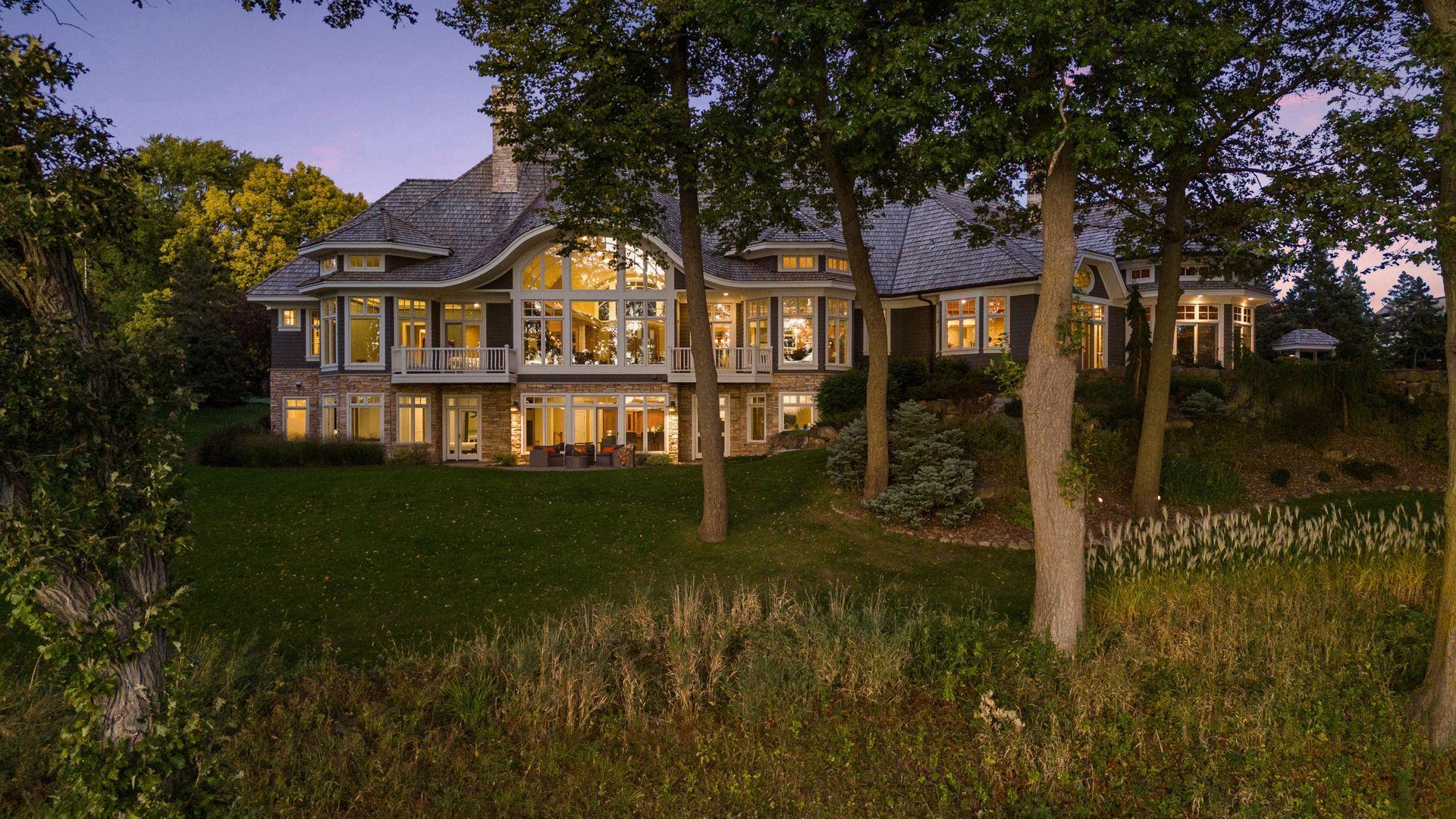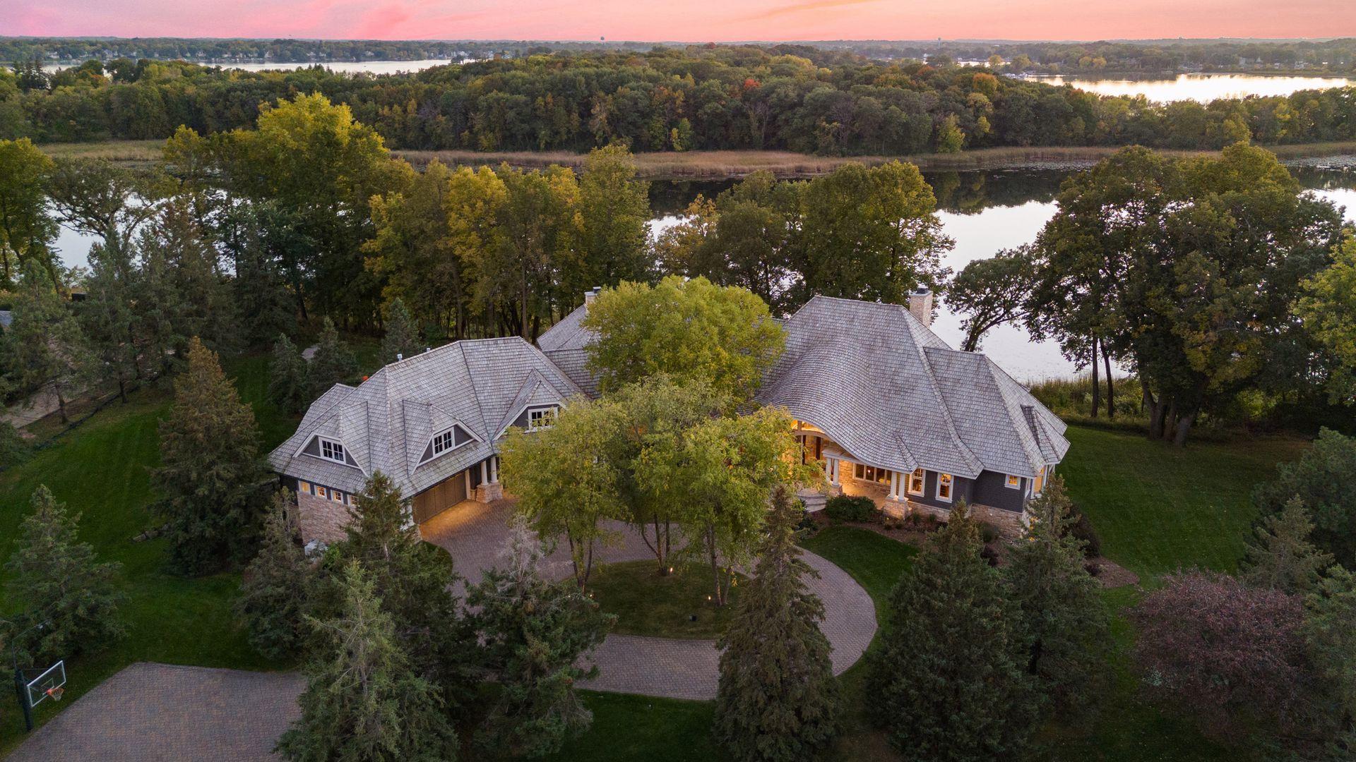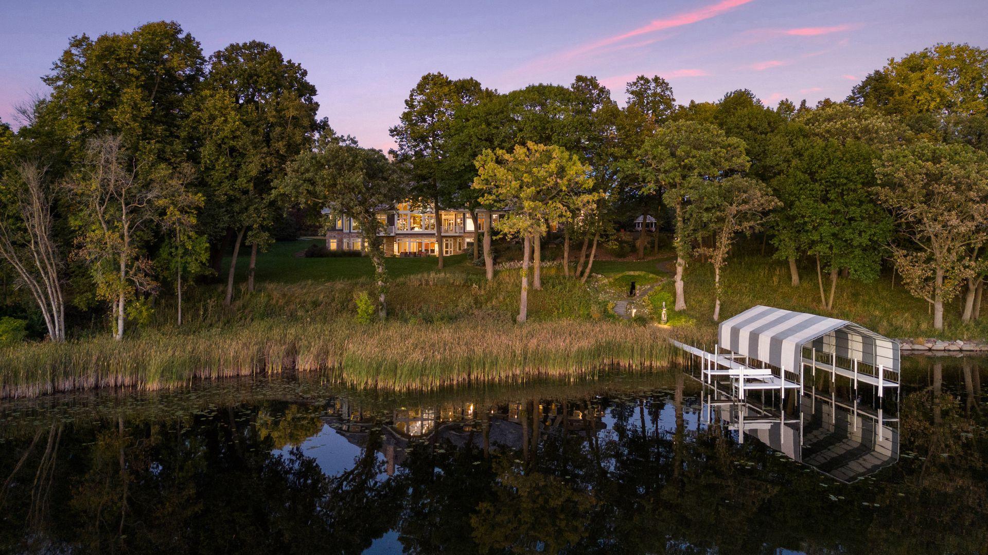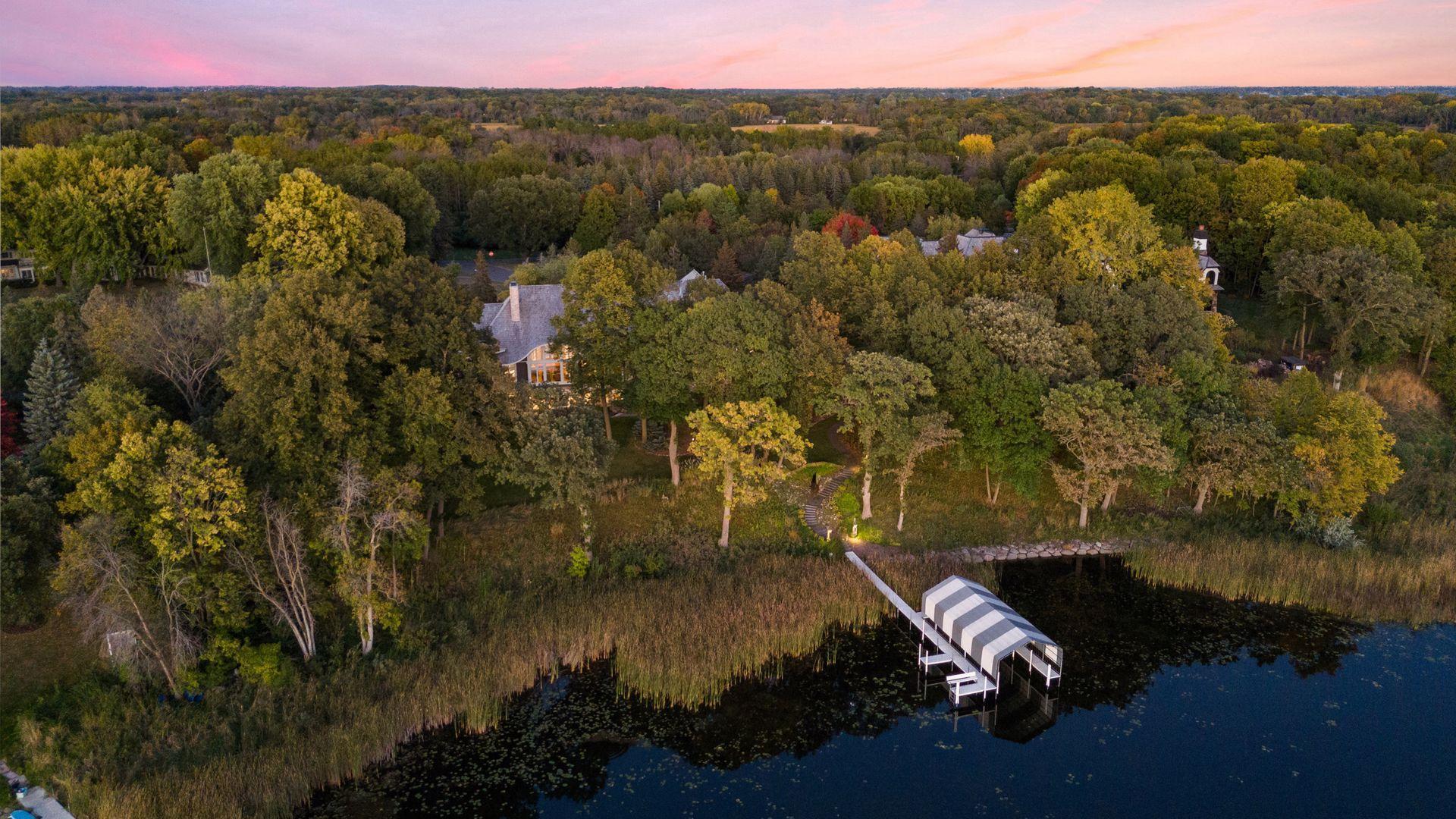 Nestled along the serene, west-facing shores of Lake Minnetonka’s Maxwell Bay, this exceptional estate offers unmatched privacy and breathtaking views. Set on 2.19 acres with over 300 feet of secluded shoreline, the property overlooks the 70-acre Noerenberg Gardens-ensuring unspoiled, wooded vistas across the bay. Inside, soaring ceilings and expansive walls of glass frame tranquil water views from nearly every room. The open-concept main level is designed for effortless living and entertaining, featuring a spacious great room and a gourmet kitchen that flows into a sun-drenched family room. Recent improvements include beautifully refinished hardwood floors, new carpet and fresh paint throughout, updated bathrooms and 3 brand new furnaces. The main floor primary suite is a private retreat, complete with its own lakeside deck, an expansive walk-in closet, and a luxurious newly remodeled Carrara marble ensuite bath with a steam shower and soaking tub. Perfect for year-round entertaining, the four-season porch offers heated floors, a fireplace, wine fridge, and indoor grill. The walk-out lower level includes a full bar, two ensuite guest bedrooms, a game room, home theater, office, and an additional heated 2-car garage with expansive storage. Spacious guest or nanny quarters offers great separation from the rest of the home. Ideally located—just 4 minutes to award-winning Orono Schools and 6 minutes to downtown Wayzata—this extraordinary home is a rare opportunity for refined lakeside living.