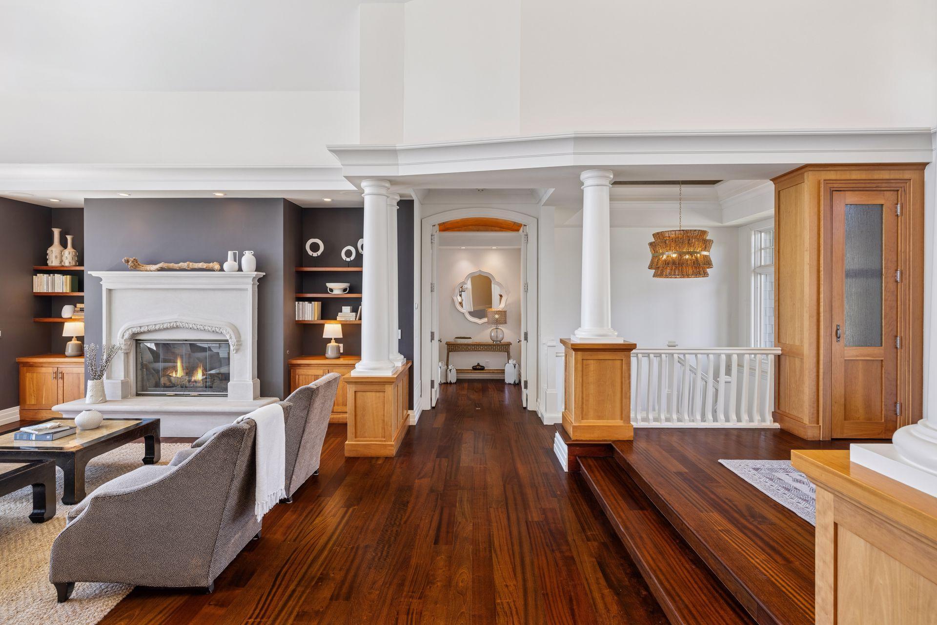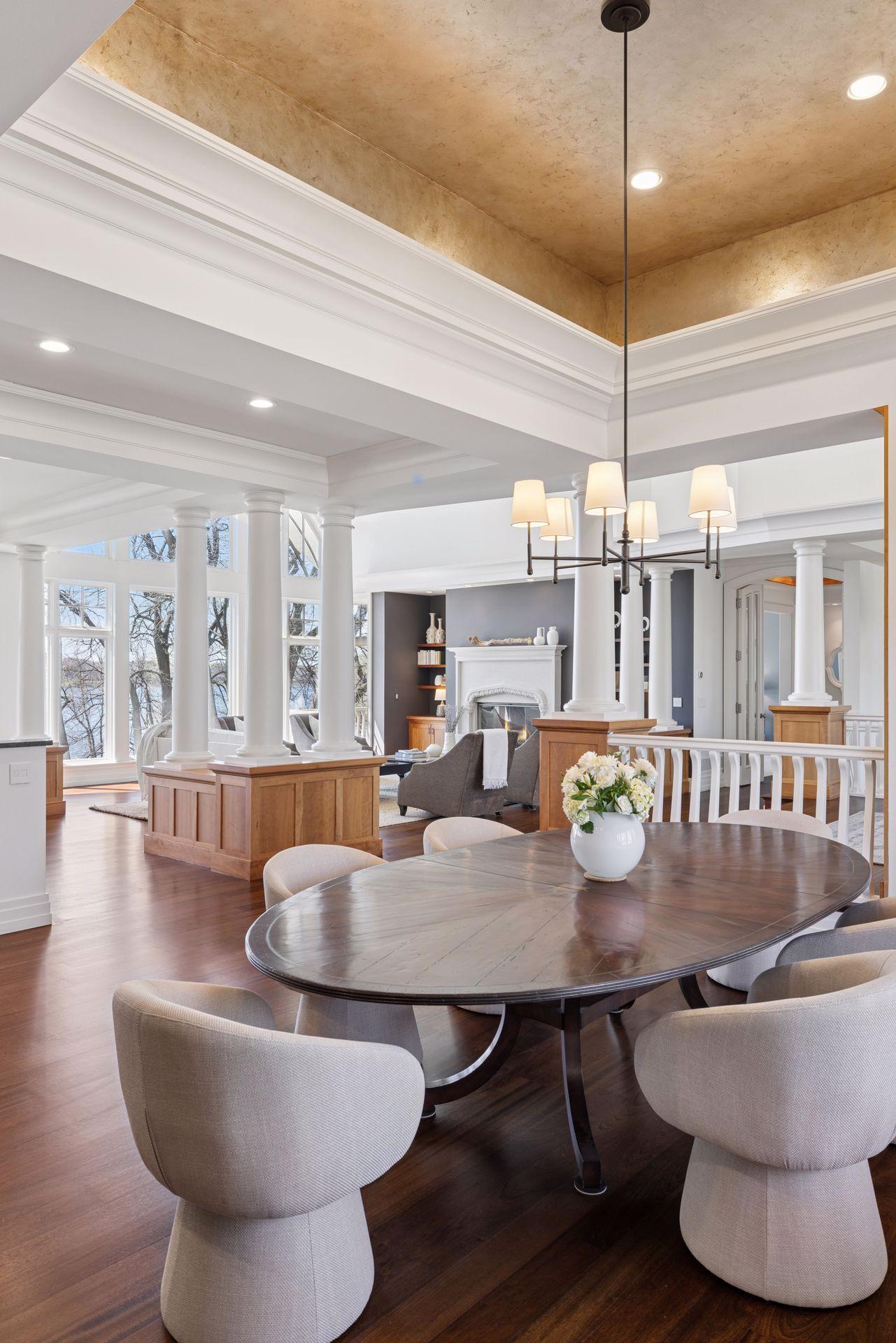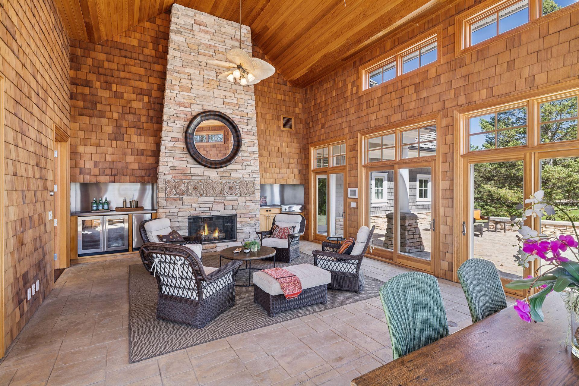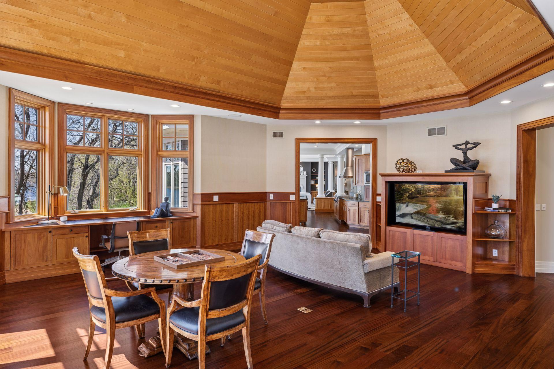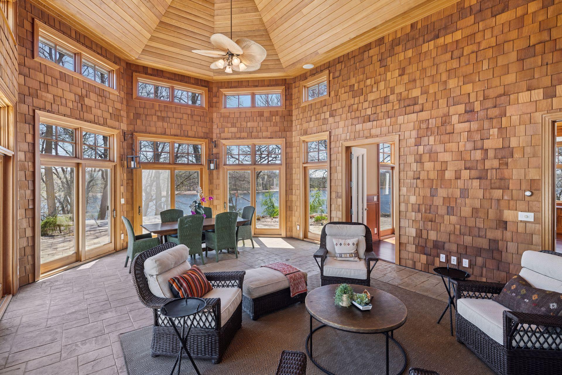 Nestled along the serene, west-facing shores of Lake Minnetonka’s Maxwell Bay, this exceptional estate offers unmatched privacy and breathtaking views. Set on 2.19 acres with over 300 feet of secluded shoreline, the property overlooks the 70-acre Noerenberg Gardens-ensuring unspoiled, wooded vistas across the bay. Inside, soaring ceilings and expansive walls of glass frame tranquil water views from nearly every room. The open-concept main level is designed for effortless living and entertaining, featuring a spacious great room and a gourmet kitchen that flows into a sun-drenched family room. Recent improvements include beautifully refinished hardwood floors, new carpet and fresh paint throughout, updated bathrooms and 3 brand new furnaces. The main floor primary suite is a private retreat, complete with its own lakeside deck, an expansive walk-in closet, and a luxurious newly remodeled Carrara marble ensuite bath with a steam shower and soaking tub. Perfect for year-round entertaining, the four-season porch offers heated floors, a fireplace, wine fridge, and indoor grill. The walk-out lower level includes a full bar, two ensuite guest bedrooms, a game room, home theater, office, and an additional heated 2-car garage with expansive storage. Spacious guest or nanny quarters offers great separation from the rest of the home. Ideally located—just 4 minutes to award-winning Orono Schools and 6 minutes to downtown Wayzata—this extraordinary home is a rare opportunity for refined lakeside living.