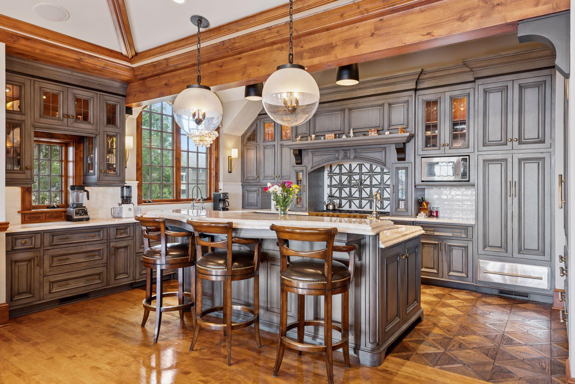 Astounding 120ft of Lakeshore opportunity! The epitome of craftsmanship and beauty with just under two acres of privacy and exquisite sweeping views of Lake Minnetonka. Enjoy amazing entertaining spaces both inside and out! Rare materials are used throughout this beautifully designed home. When winding up the curved driveway, a separate guest house greets you.
