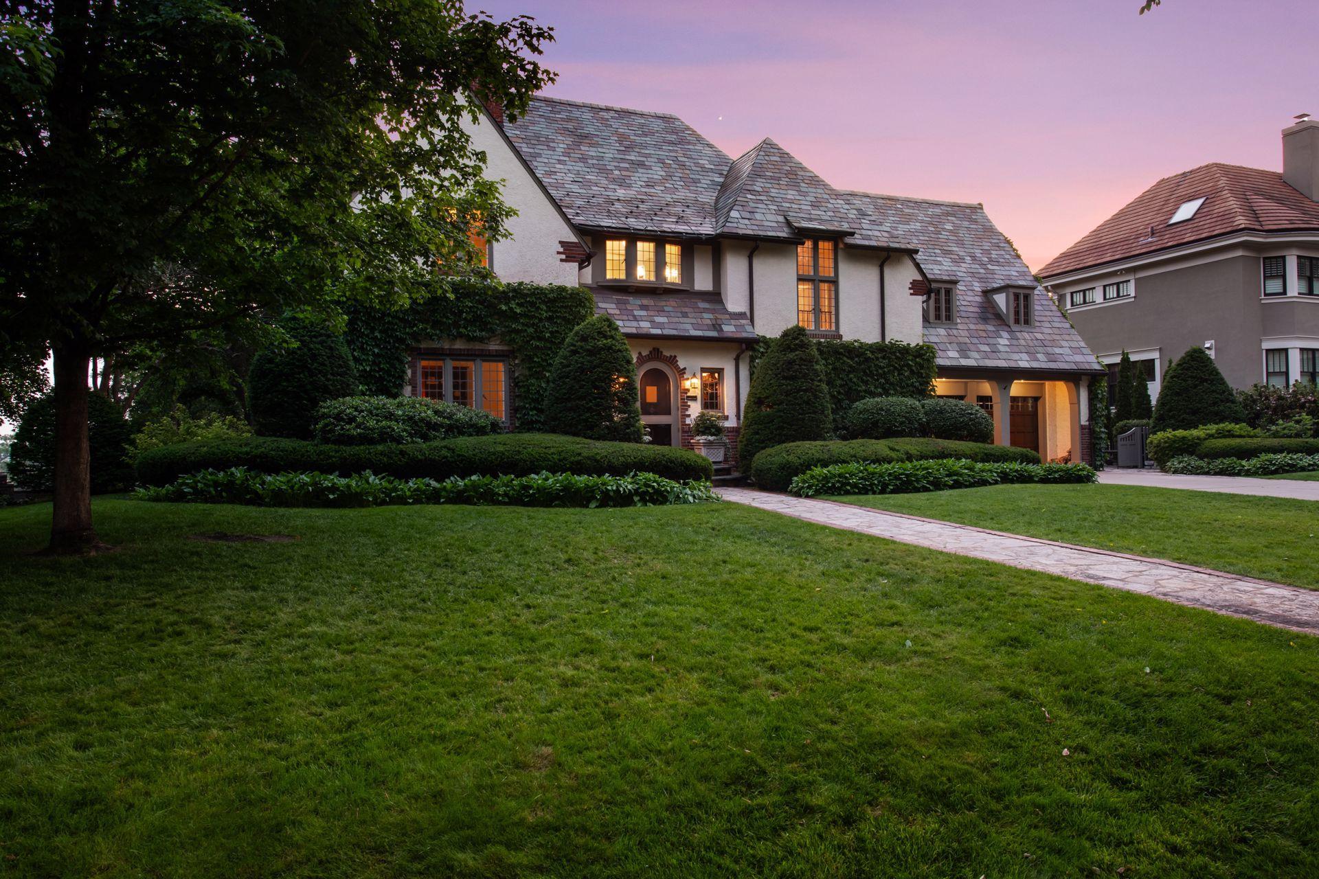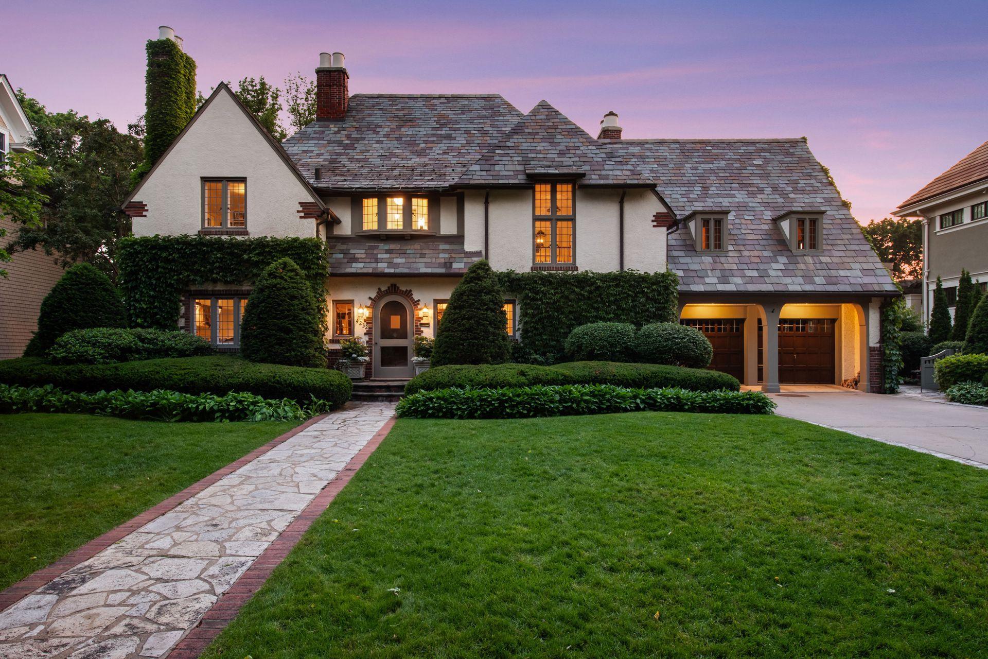 Enchanting historic home located on highly sought-after Fremont Avenue with its wide setbacks, notable homes, generous lots, and idyllic proximity to Lake Harriet, the famous Rose Garden, and numerous walking destinations. Timeless original features including arched doorways, decorative moldings, high ceilings, original pewter door hardware, solid wood doors, built-in window seats, and pristine leaded glass windows have been meticulously cared for and restored. The old-world charm, craftsmanship, and quality combine with a thoughtful renovation, designer finishes, and amenities expected by the most discerning Buyers. Five bedrooms on the upper level with three en-suite bedrooms including a serene primary suite. A separate bedroom wing offers a full hall bath for the fourth and fifth bedrooms. Excellent room circulation throughout the main floor and between levels with an elegant front staircase and a convenient back staircase that leads to the kitchen. Inviting spaces for family living and an entertainer's dream both indoors and out. Finished lower-level rec room with 10' ceilings and wet bar. Fitness room with half-bath. Abundant storage. Large laundry room with half bath. Professionally landscaped double lot. Private backyard with a large stone patio, wide and flat lawn, and manicured gardens. Low maintenance brick and stucco exterior with a gorgeous slate roof. 2-car attached, heated garage. Move-in ready. Seasonal views of Lake Harriet.