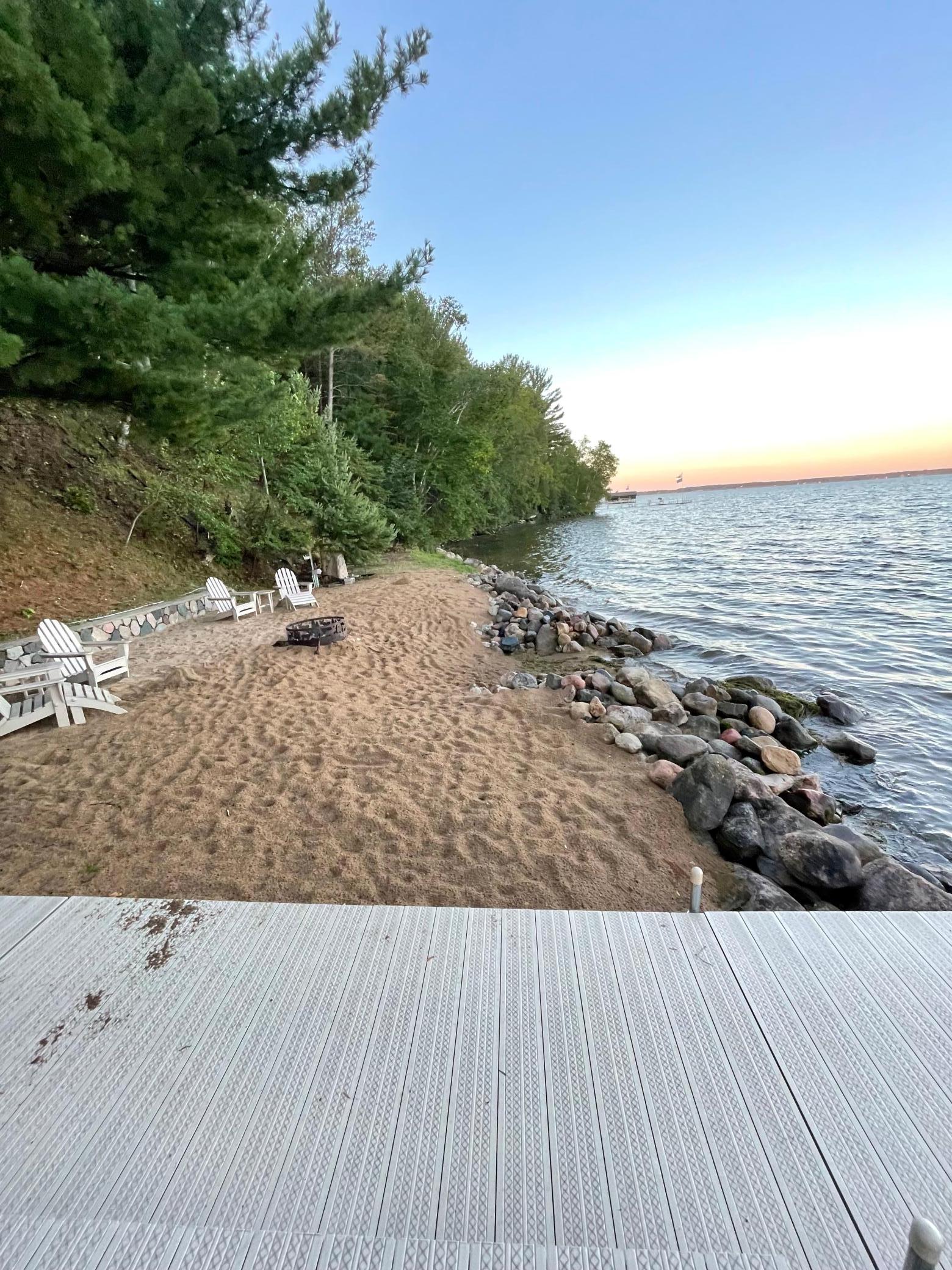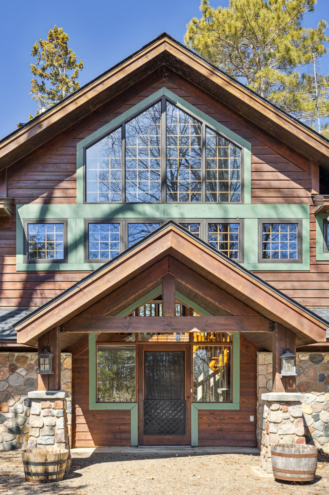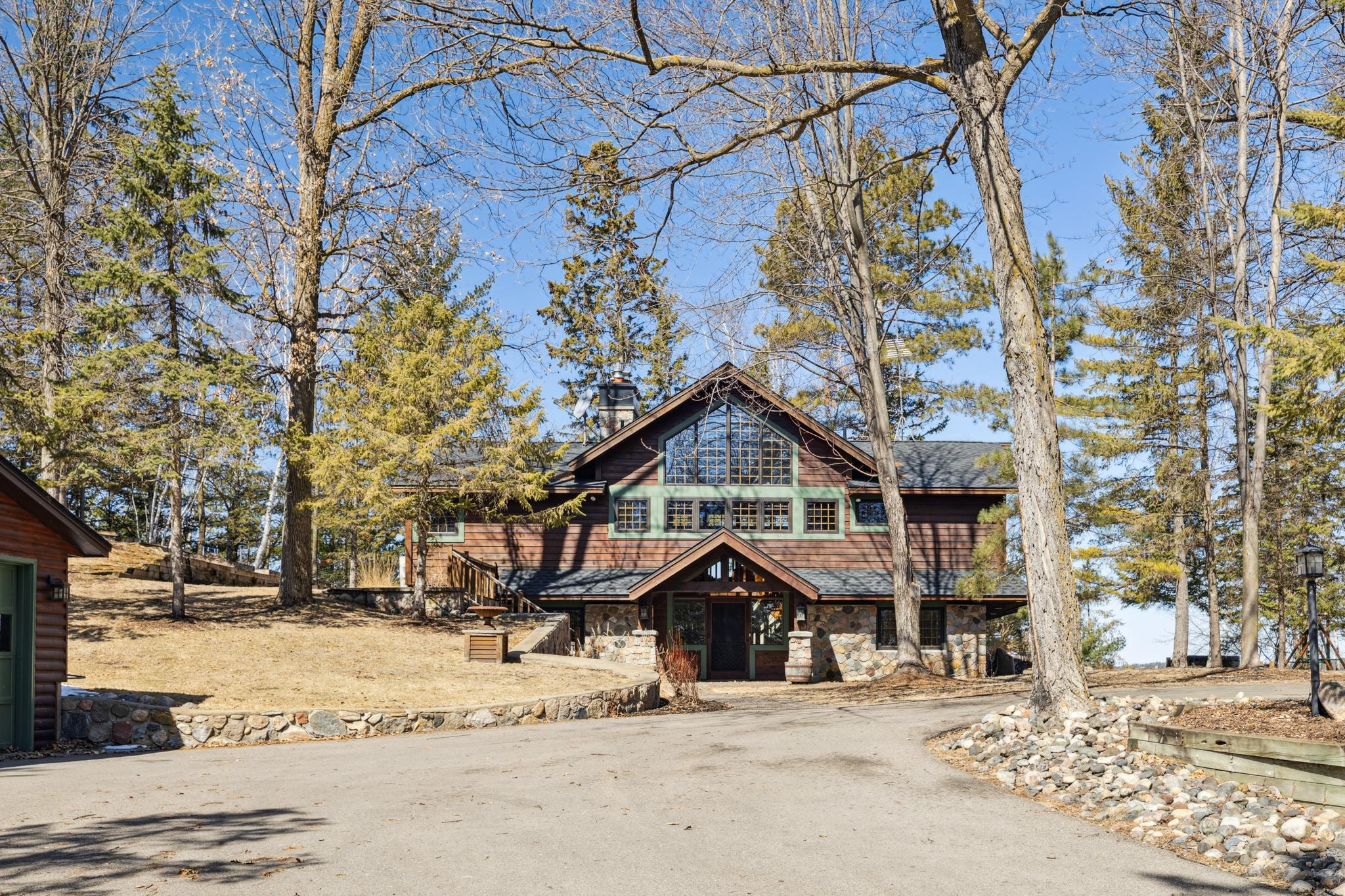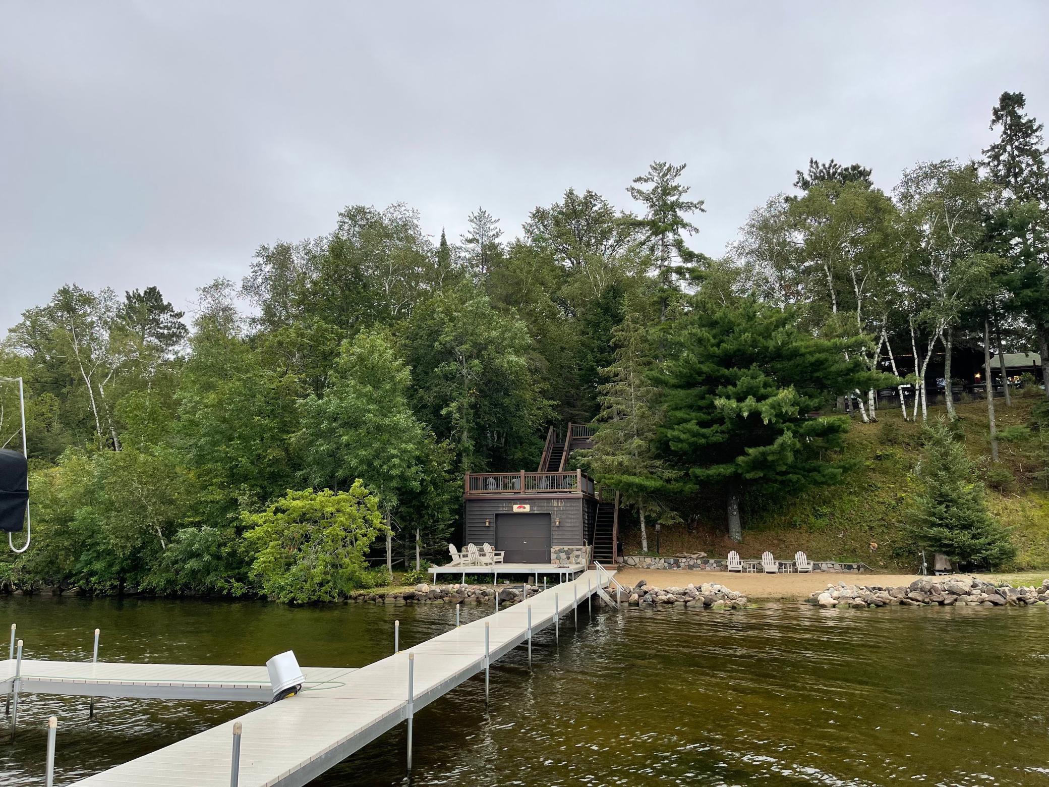 Nestled along the serene shores of Big Whitefish lake, this exquisite property epitomizes Northwoods luxury. A meticulously crafted retreat, the residence blends rustic charm with modern elegance, offering panoramic sunsets with 1.5 acres and 200 feet of sandy beach. Features include four bedrooms, three baths, stunning real stone fireplace, main floor primary suite, large gourmet kitchen, vaulted wood ceilings with exposed trusses, expansive windows framing the natural beauty, hardwood floors, open-concept making this the perfect home for entertaining, spacious stone deck with fire pit, perfect sand beach and that priceless boat house at the waters edge.