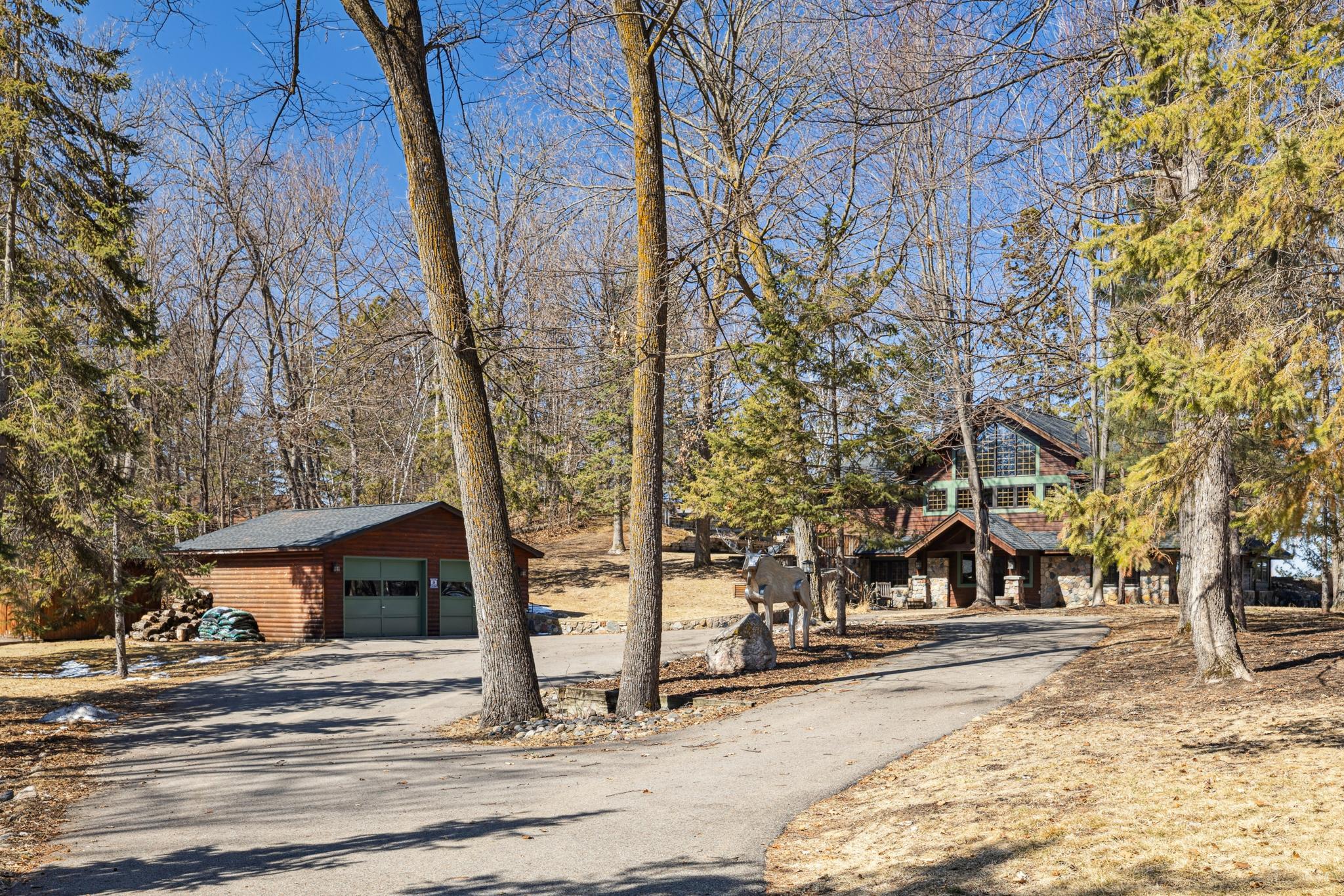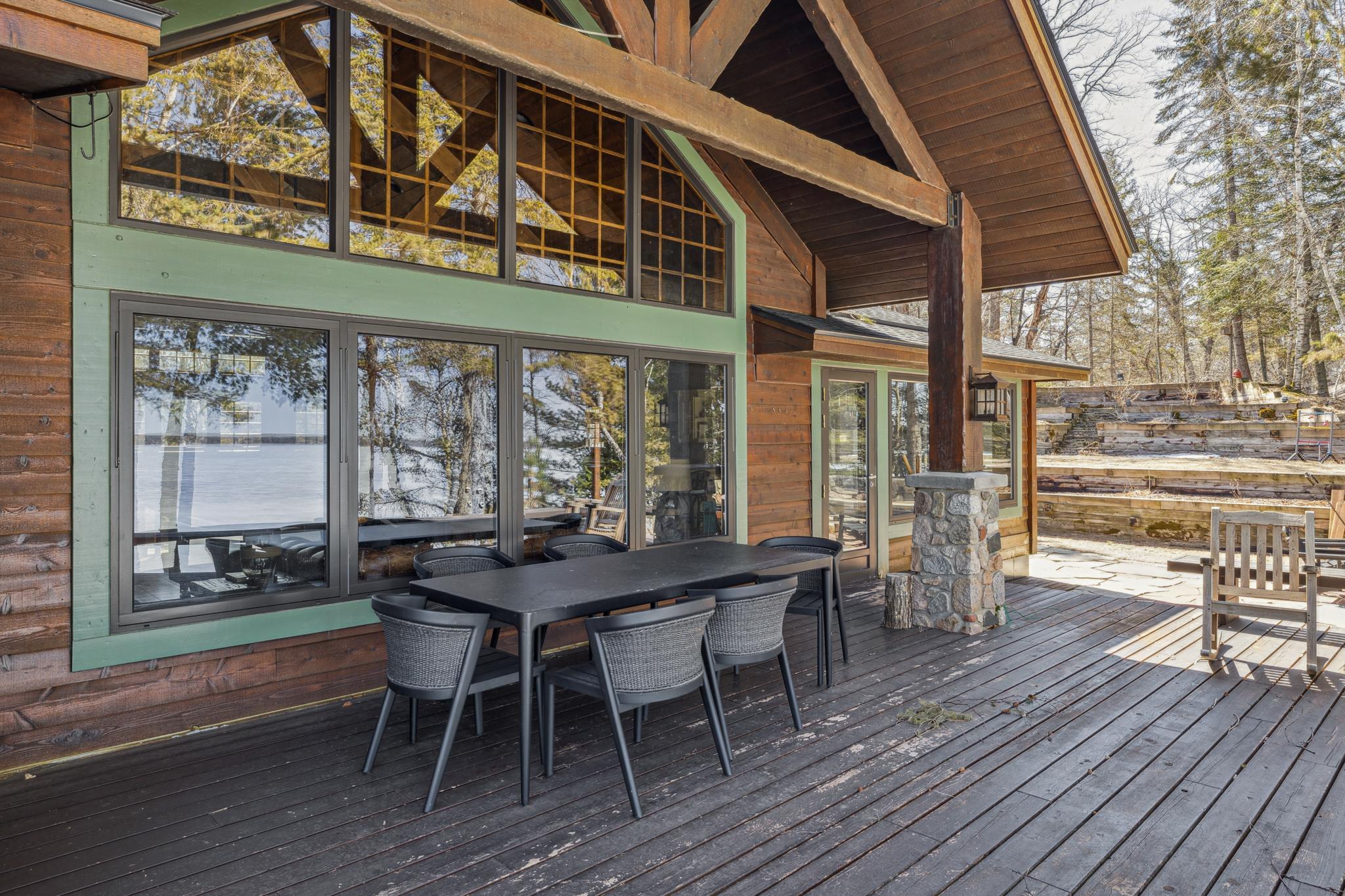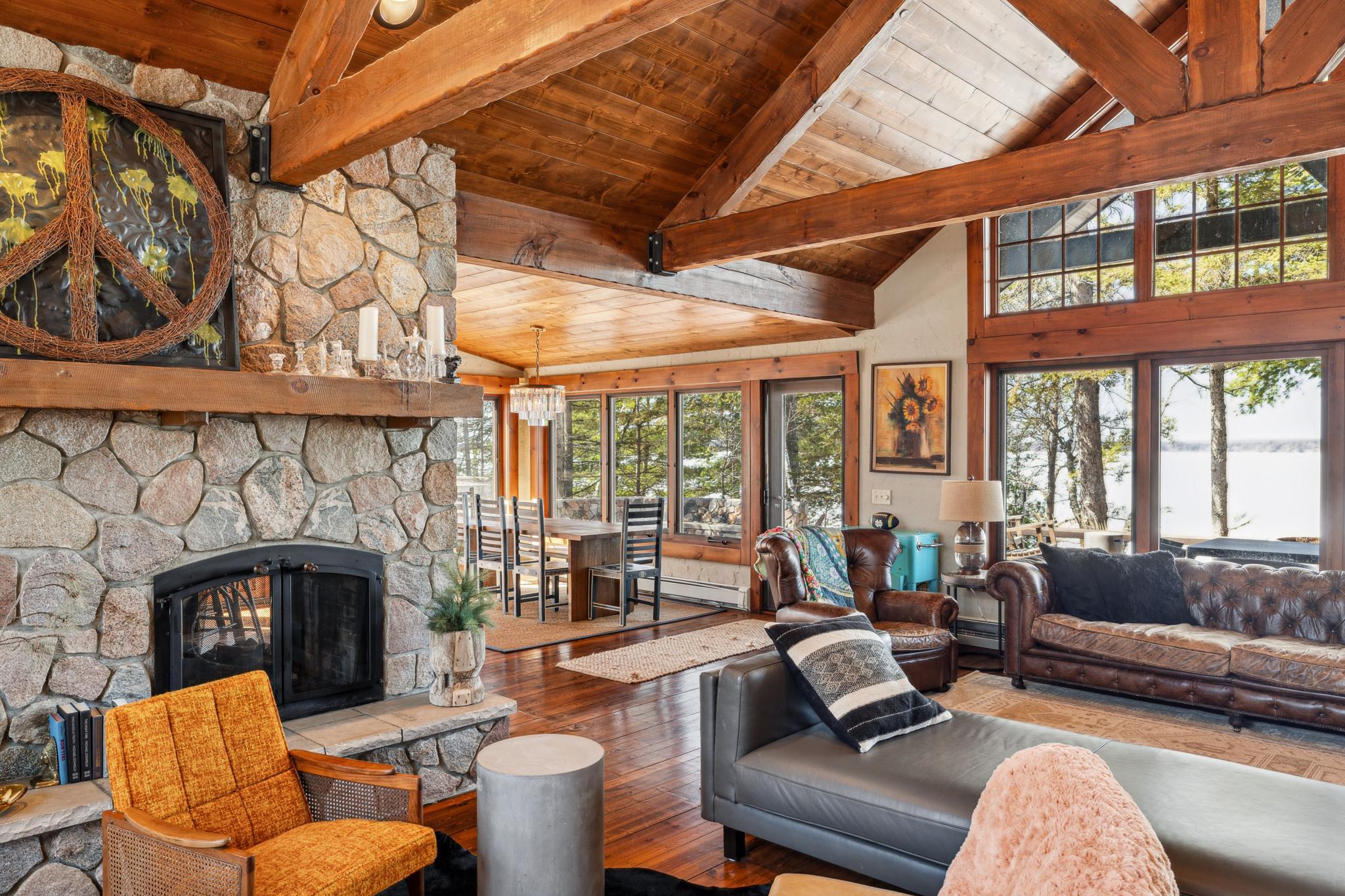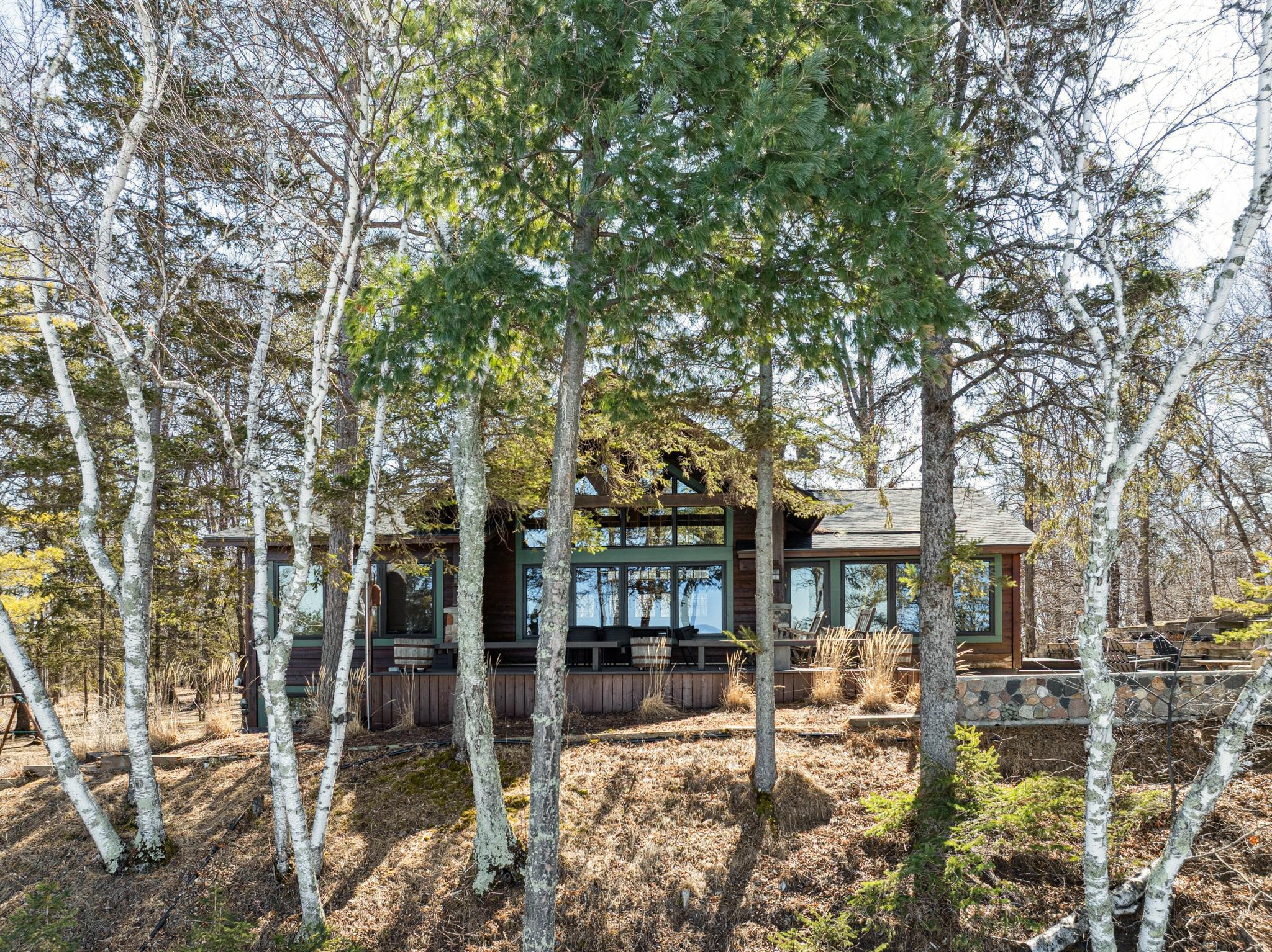 Nestled along the serene shores of Big Whitefish lake, this exquisite property epitomizes Northwoods luxury. A meticulously crafted retreat, the residence blends rustic charm with modern elegance, offering panoramic sunsets with 1.5 acres and 200 feet of sandy beach. Features include four bedrooms, three baths, stunning real stone fireplace, main floor primary suite, large gourmet kitchen, vaulted wood ceilings with exposed trusses, expansive windows framing the natural beauty, hardwood floors, open-concept making this the perfect home for entertaining, spacious stone deck with fire pit, perfect sand beach and that priceless boat house at the waters edge.