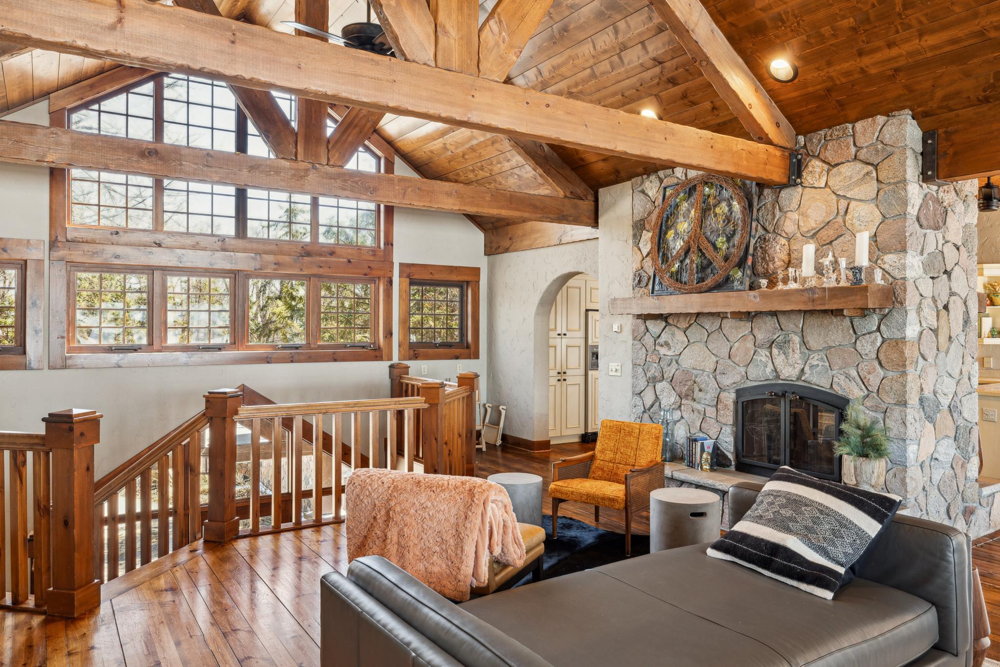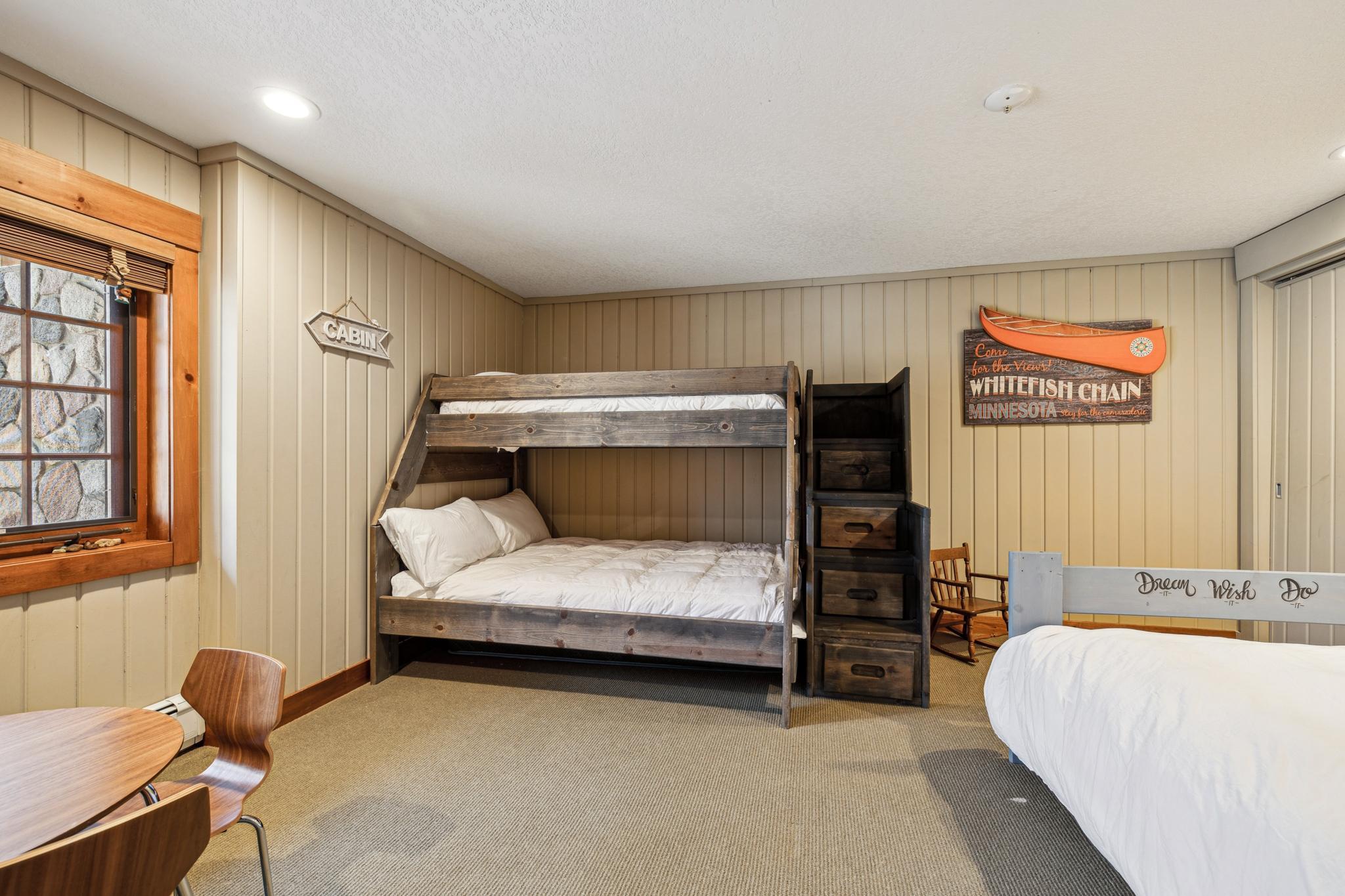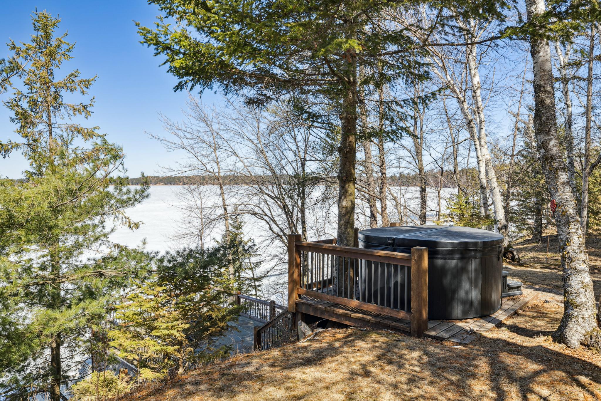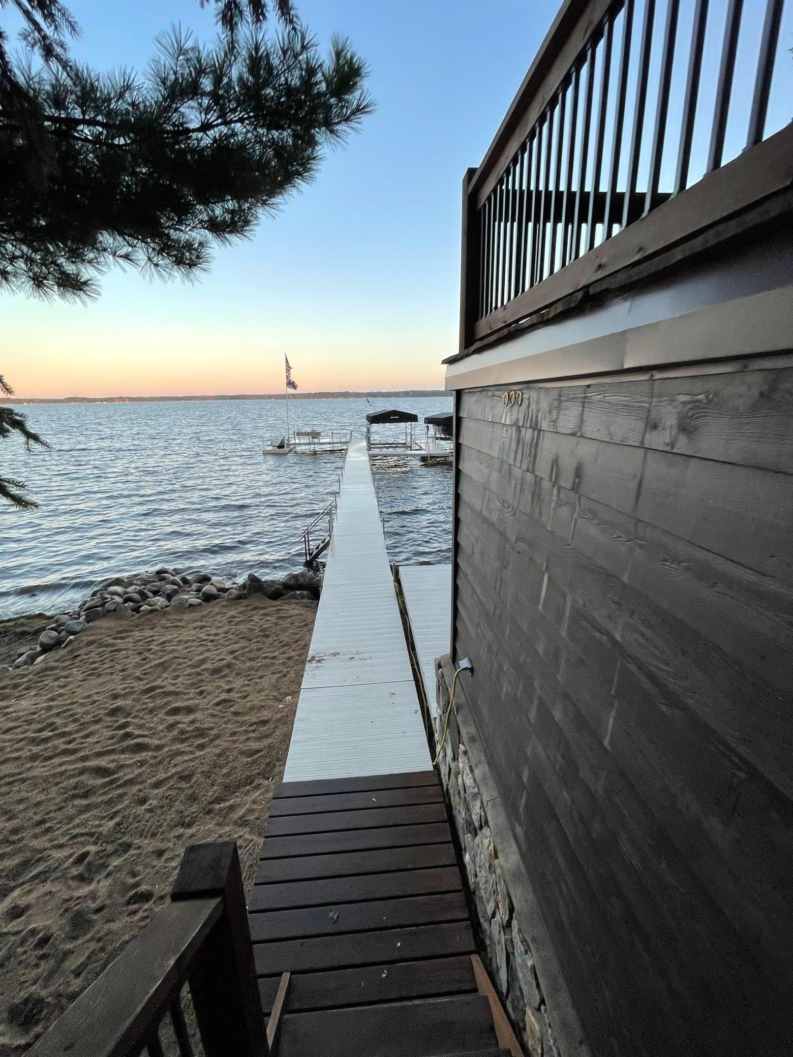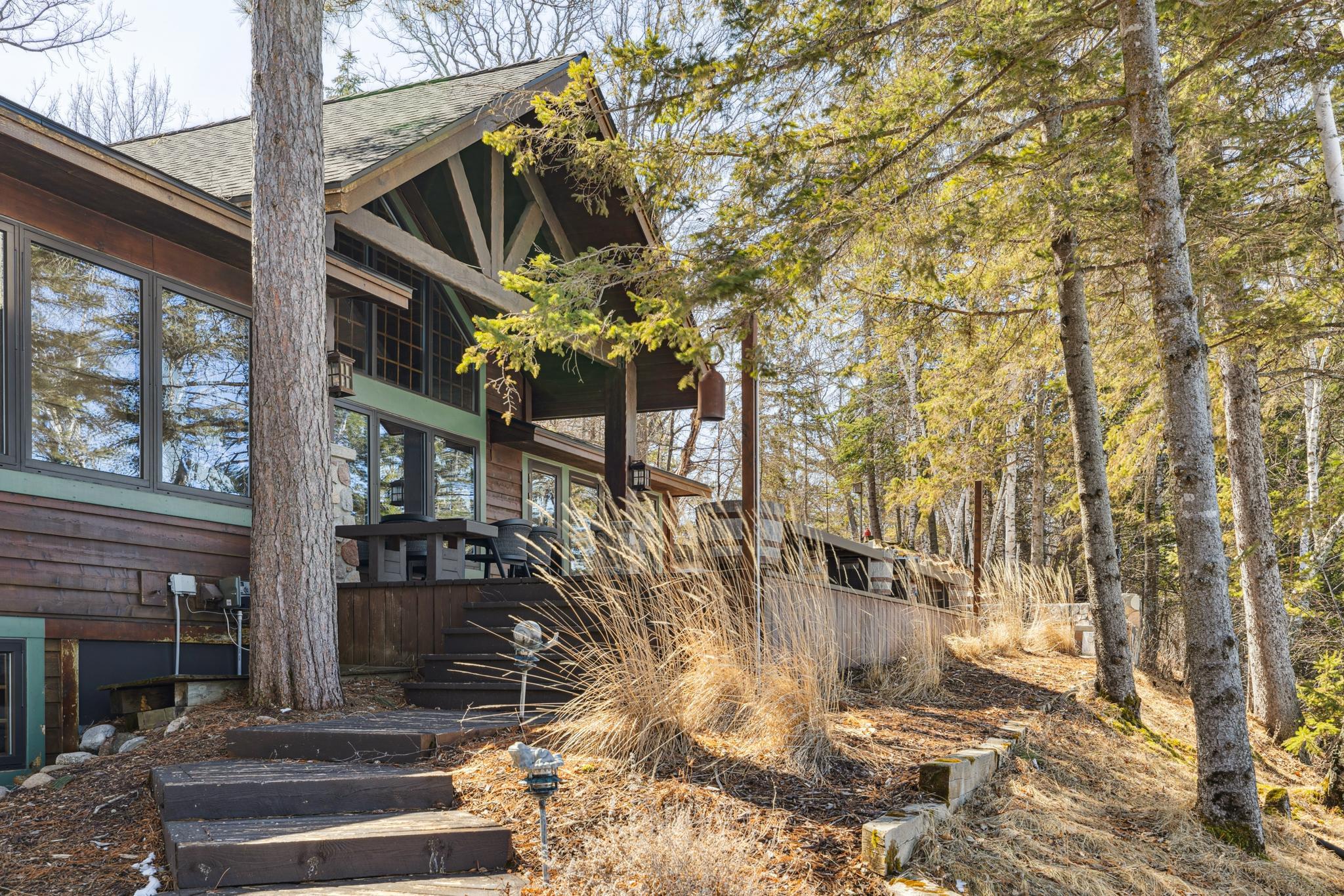Nestled along the serene shores of Big Whitefish lake, this exquisite property epitomizes Northwoods luxury. A meticulously crafted retreat, the residence blends rustic charm with modern elegance, offering panoramic sunsets with 1.5 acres and 200 feet of sandy beach. Features include four bedrooms, three baths, stunning real stone fireplace, main floor primary suite, large gourmet kitchen, vaulted wood ceilings with exposed trusses, expansive windows framing the natural beauty, hardwood floors, open-concept making this the perfect home for entertaining, spacious stone deck with fire pit, perfect sand beach and that priceless boat house at the waters edge.