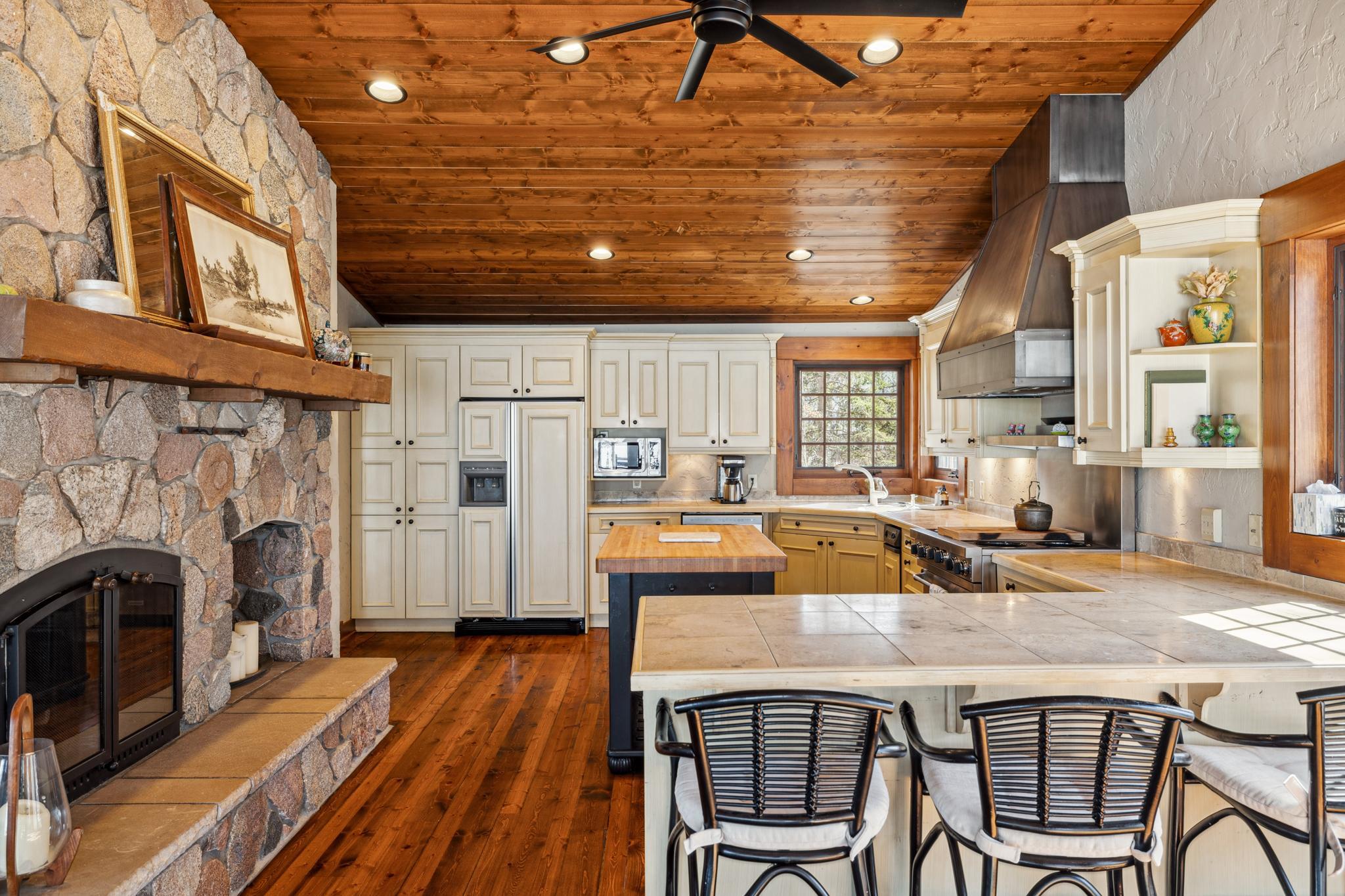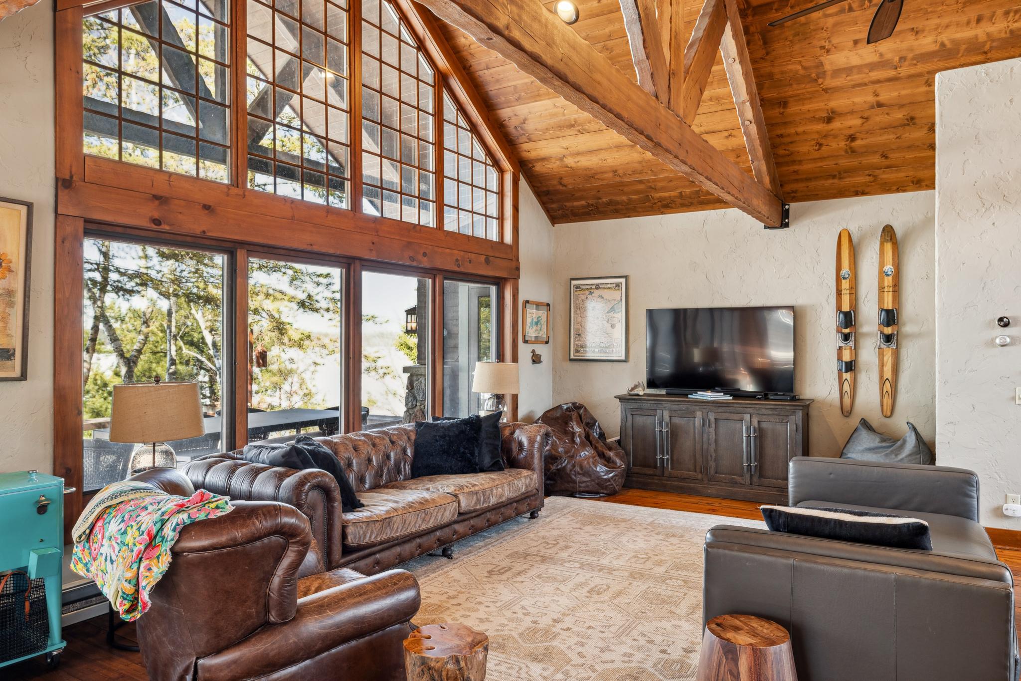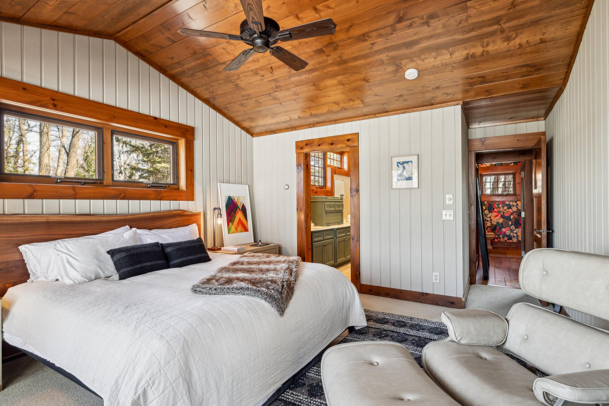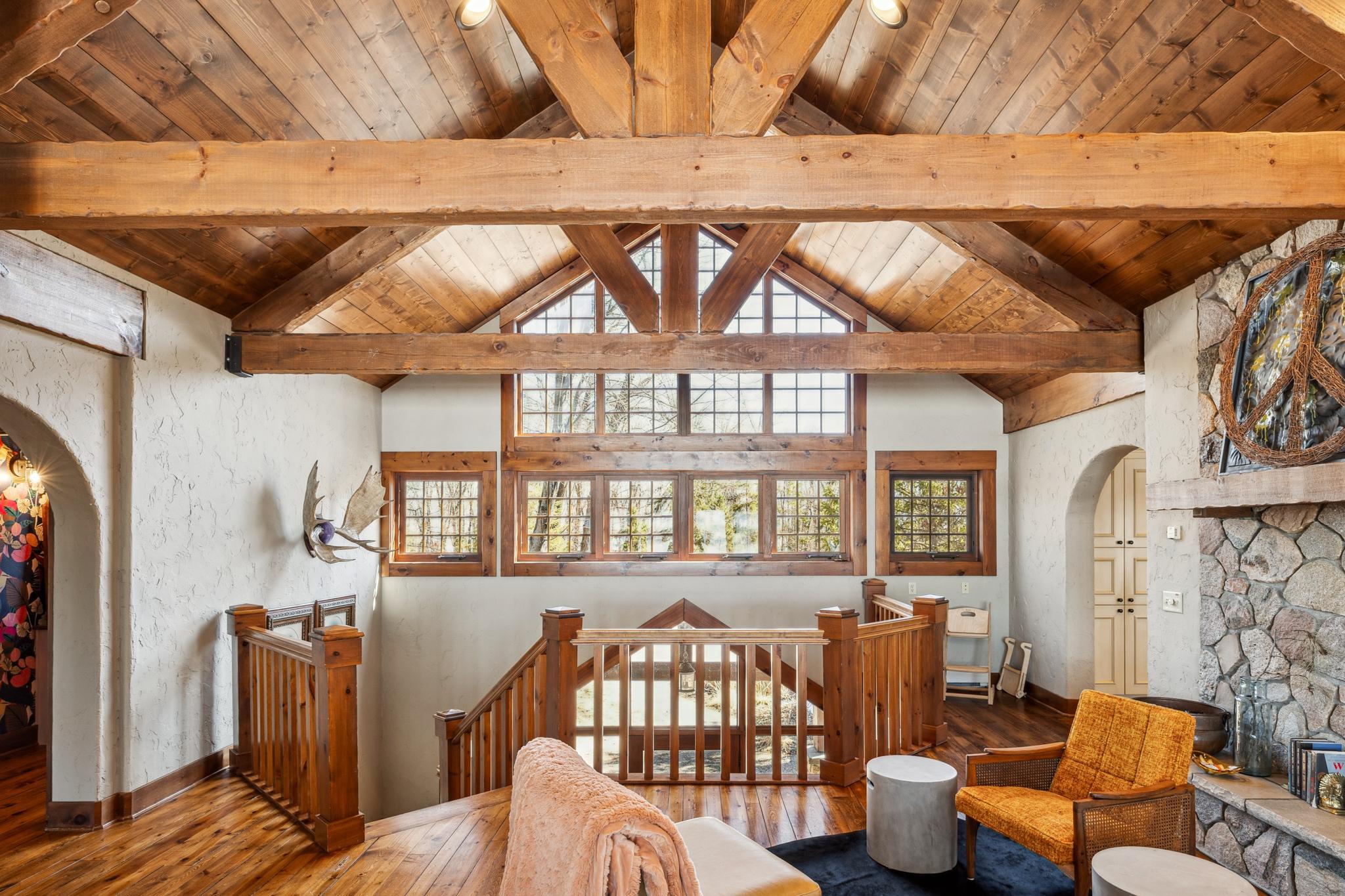 Nestled along the serene shores of Big Whitefish lake, this exquisite property epitomizes Northwoods luxury. A meticulously crafted retreat, the residence blends rustic charm with modern elegance, offering panoramic sunsets with 1.5 acres and 200 feet of sandy beach. Features include four bedrooms, three baths, stunning real stone fireplace, main floor primary suite, large gourmet kitchen, vaulted wood ceilings with exposed trusses, expansive windows framing the natural beauty, hardwood floors, open-concept making this the perfect home for entertaining, spacious stone deck with fire pit, perfect sand beach and that priceless boat house at the waters edge.