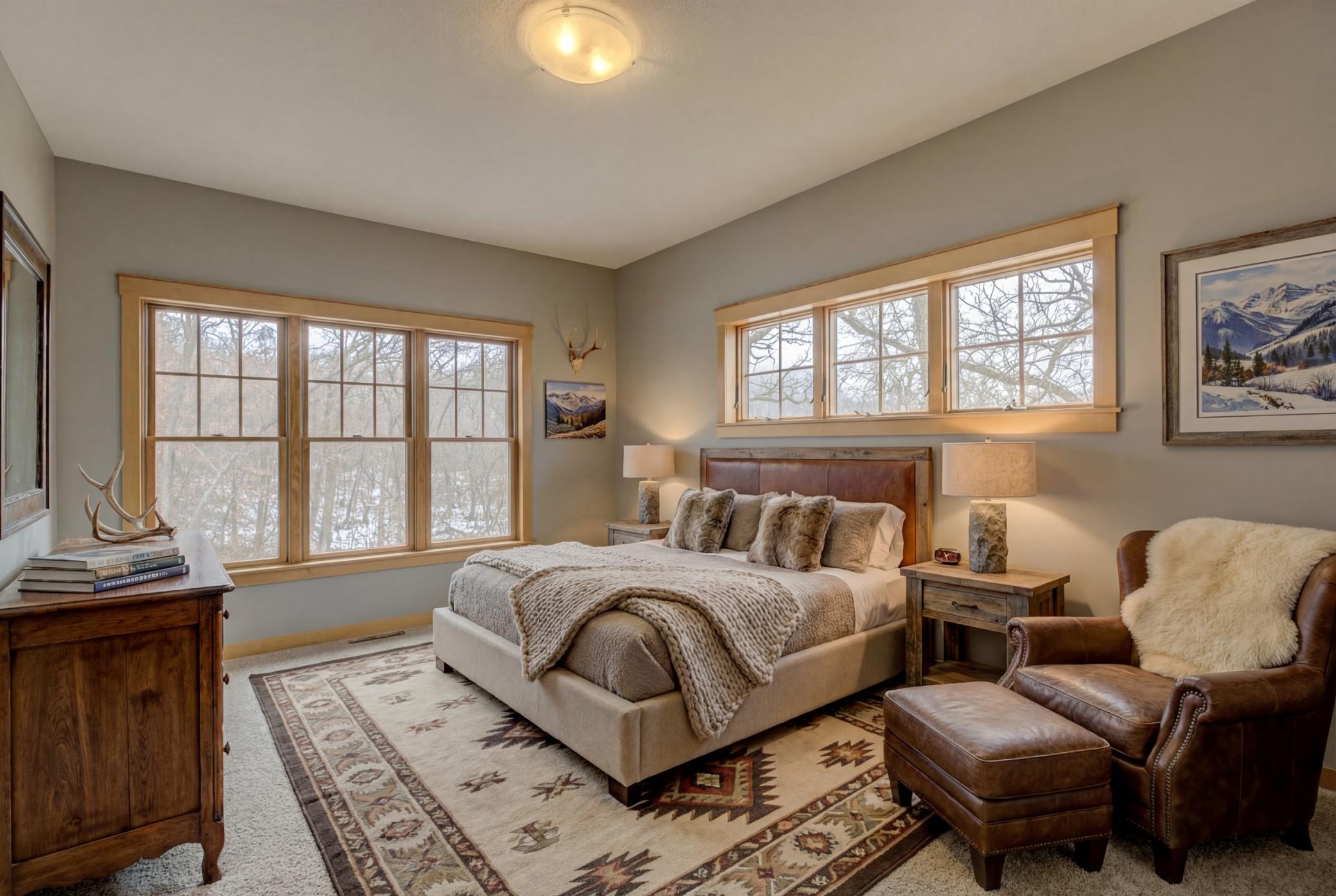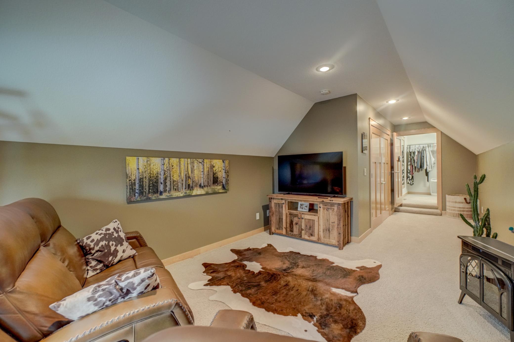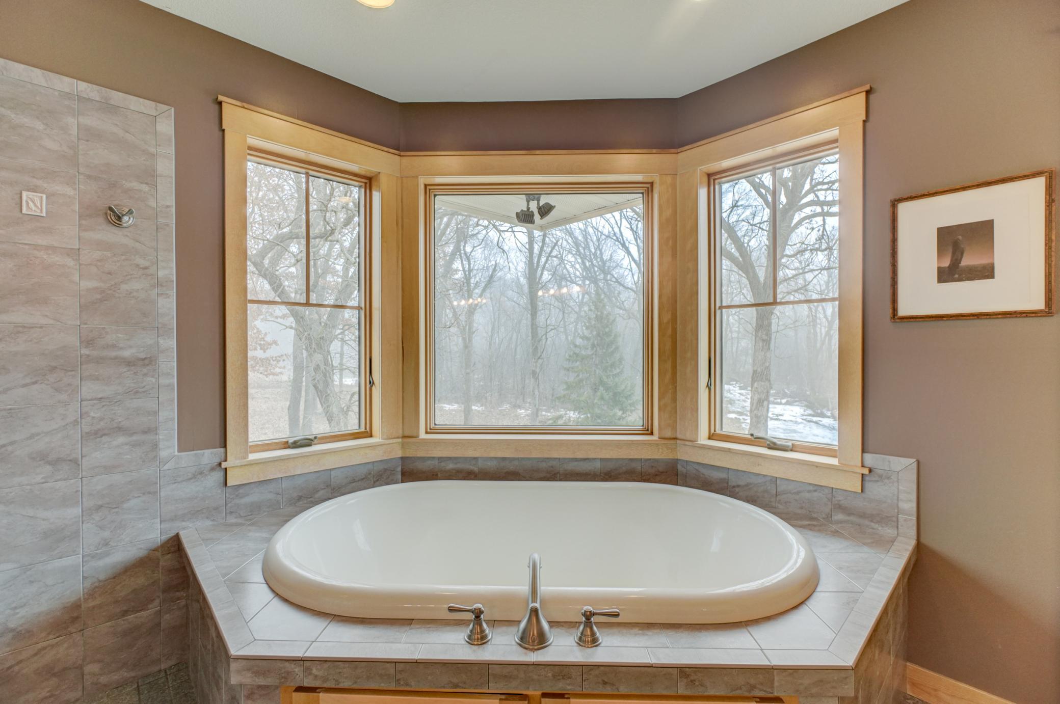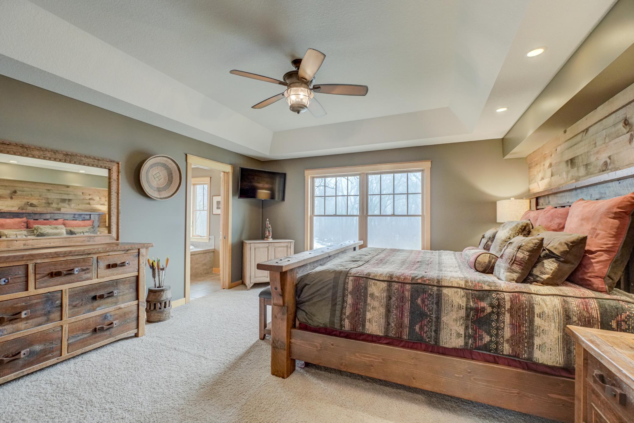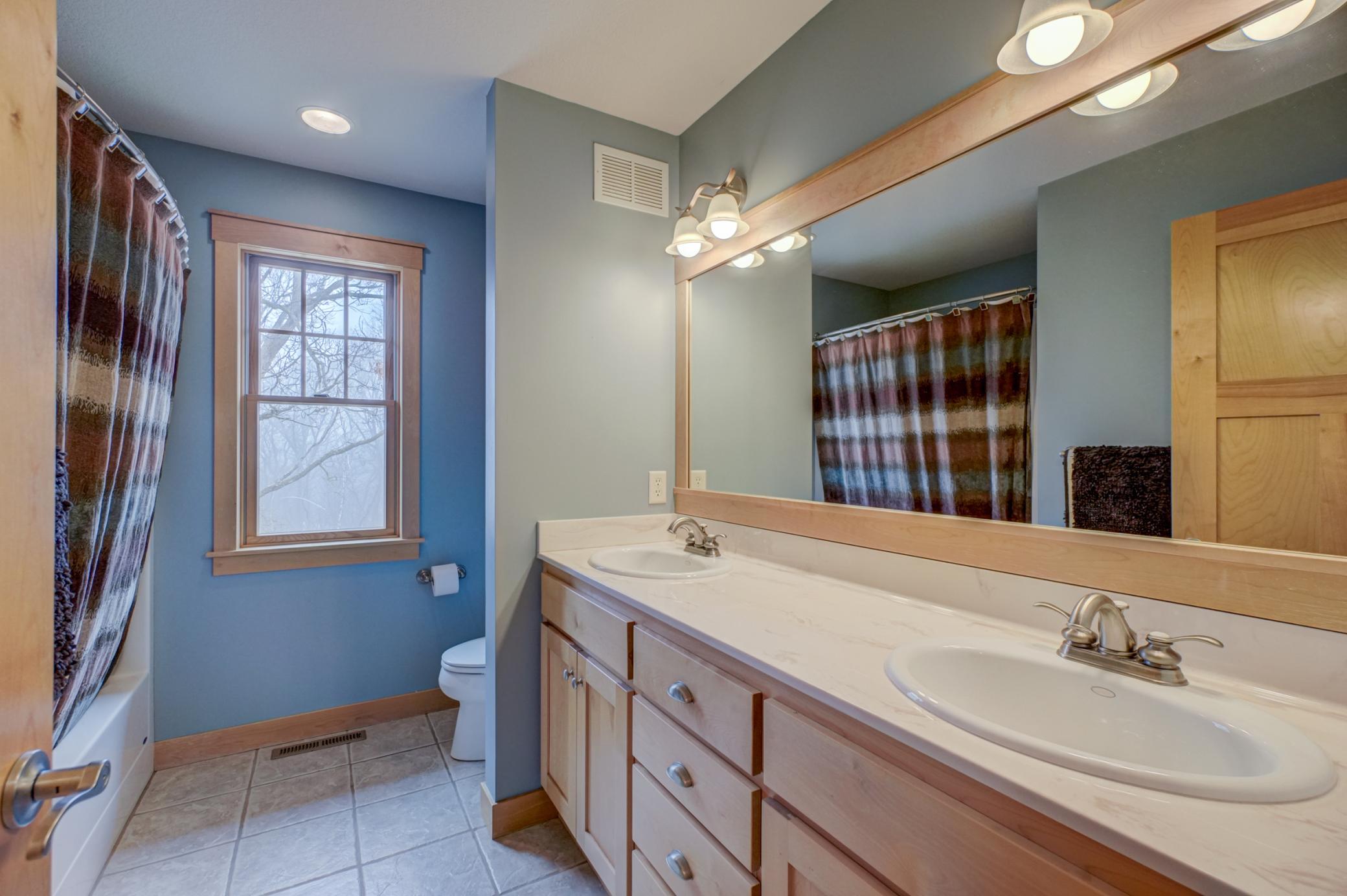 Expertly crafted by Al Hines, this stunning 5 bed, 4 bath home blends timeless design with warm, rustic charm offering an exceptional living experience inside and out. Step into a welcoming open layout defined by soaring ceilings, rich hardwood floors, and natural light pouring through oversized windows. The living room, open to the upper level balcony, features a striking fireplace and flows effortlessly into the eat in kitchen, complete with granite countertops, stainless steel appliances, a walk in pantry, and direct access to the expansive, maintenance free walkout deck. A formal dining room, dedicated office, generous mudroom, and spacious laundry room add ease and functionality to everyday living. Upstairs, enjoy light filled bedrooms with generous closets, including a serene primary suite with a spa like bath featuring in floor heat, a soaking tub, and a massive walk in closet. The bonus living space above the garage offers endless versatility-perfect for work, play, or guests. The walkout lower level is an entertainer’s dream, showcasing a roomy living area with a cozy fireplace, a theater room with projector and screen, and a stunning rustic bar outfitted with granite counters, a sink, fridge, and wine fridge. Relax in the sauna, recharge in the home gym, or host unforgettable gatherings—this level is designed for comfort and fun. Outside, your private retreat awaits on 9 wooded acres complete with a sprawling yard, a 24x36 outbuilding with 10 ft doors and concrete floors, and a 3 car garage featuring in floor heat, a floor drain, and basement access. Whether you're hosting a summer barbecue or soaking up the peaceful surroundings, the outdoor space is designed to elevate every season. Ideally located between Hudson and Stillwater, and just minutes from White Eagle & St. Croix National Golf Courses, this home offers the perfect blend of country privacy and convenient access to everything you need. A rare opportunity that truly checks all the boxes. Schedule your showing today!