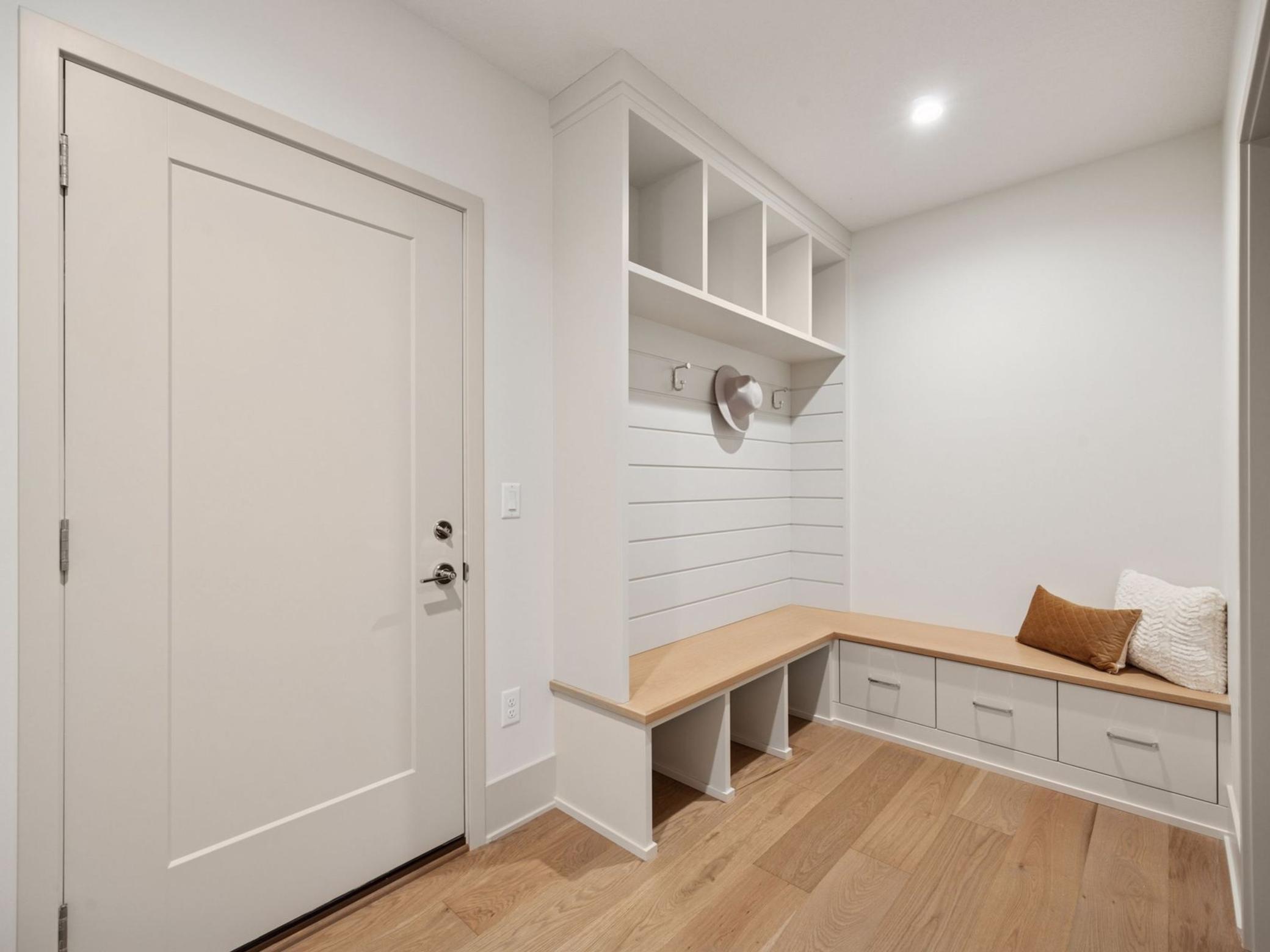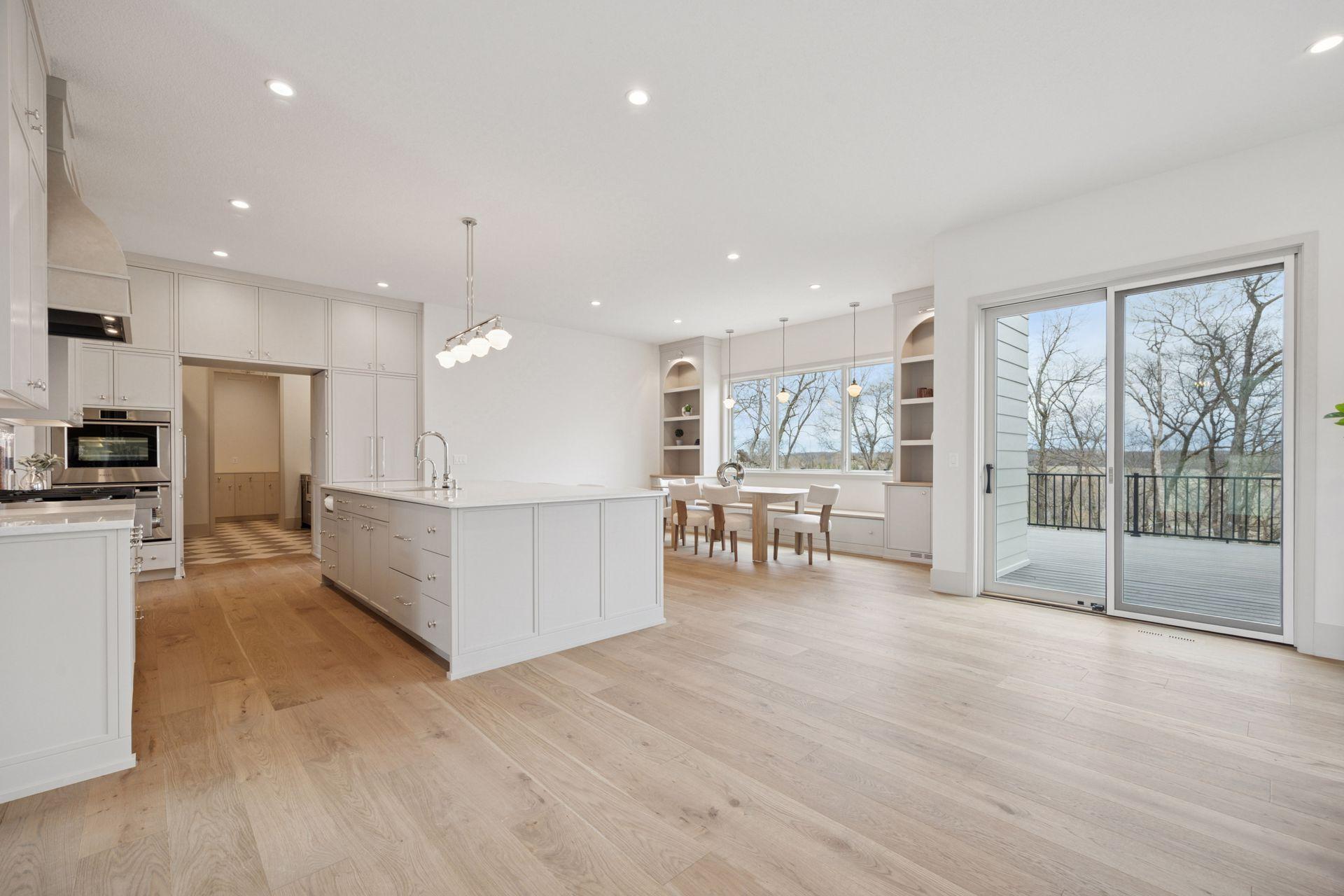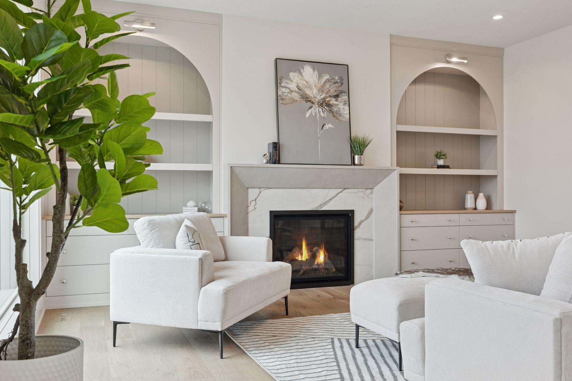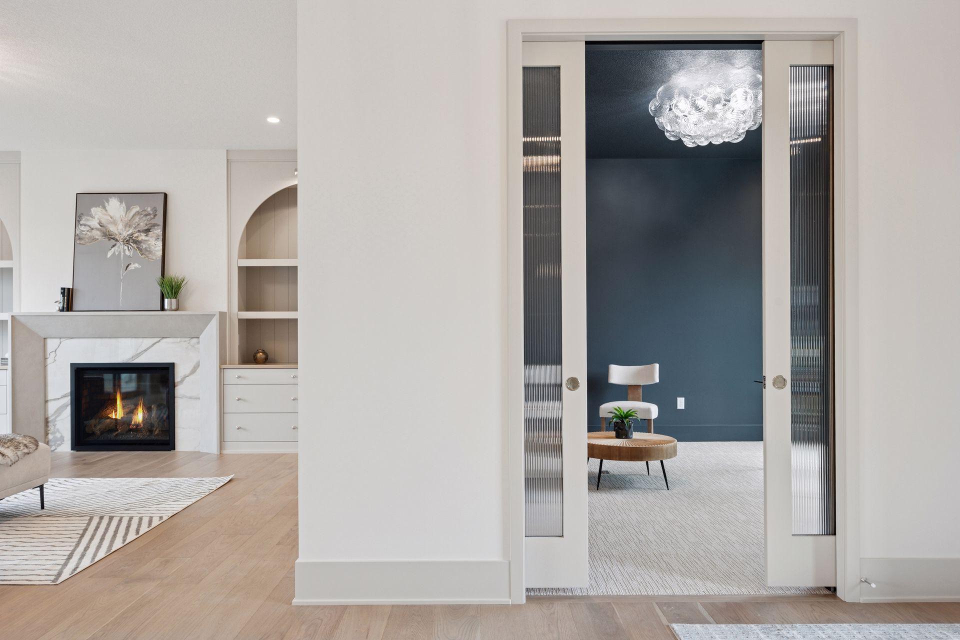 The light-filled main level features soaring 10 ft. ceilings, European white oak floors, and expansive windows. The designer kitchen includes a premium Fisher-Paykel appliance package, an oversized walk-in pantry, and a hidden scullery kitchen—perfect for discreet prep work. A custom plaster fireplace adds warmth and timeless style to the living space.